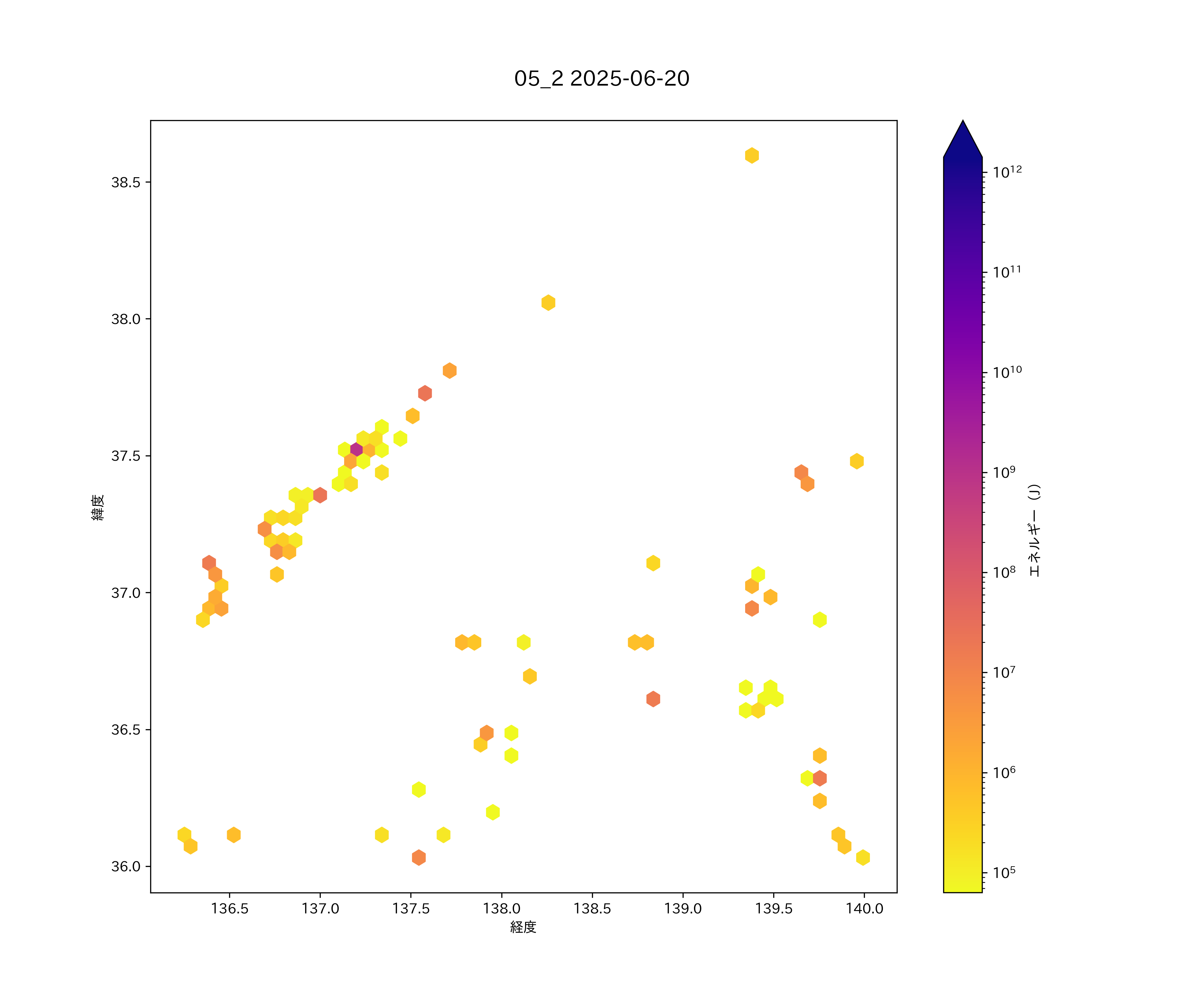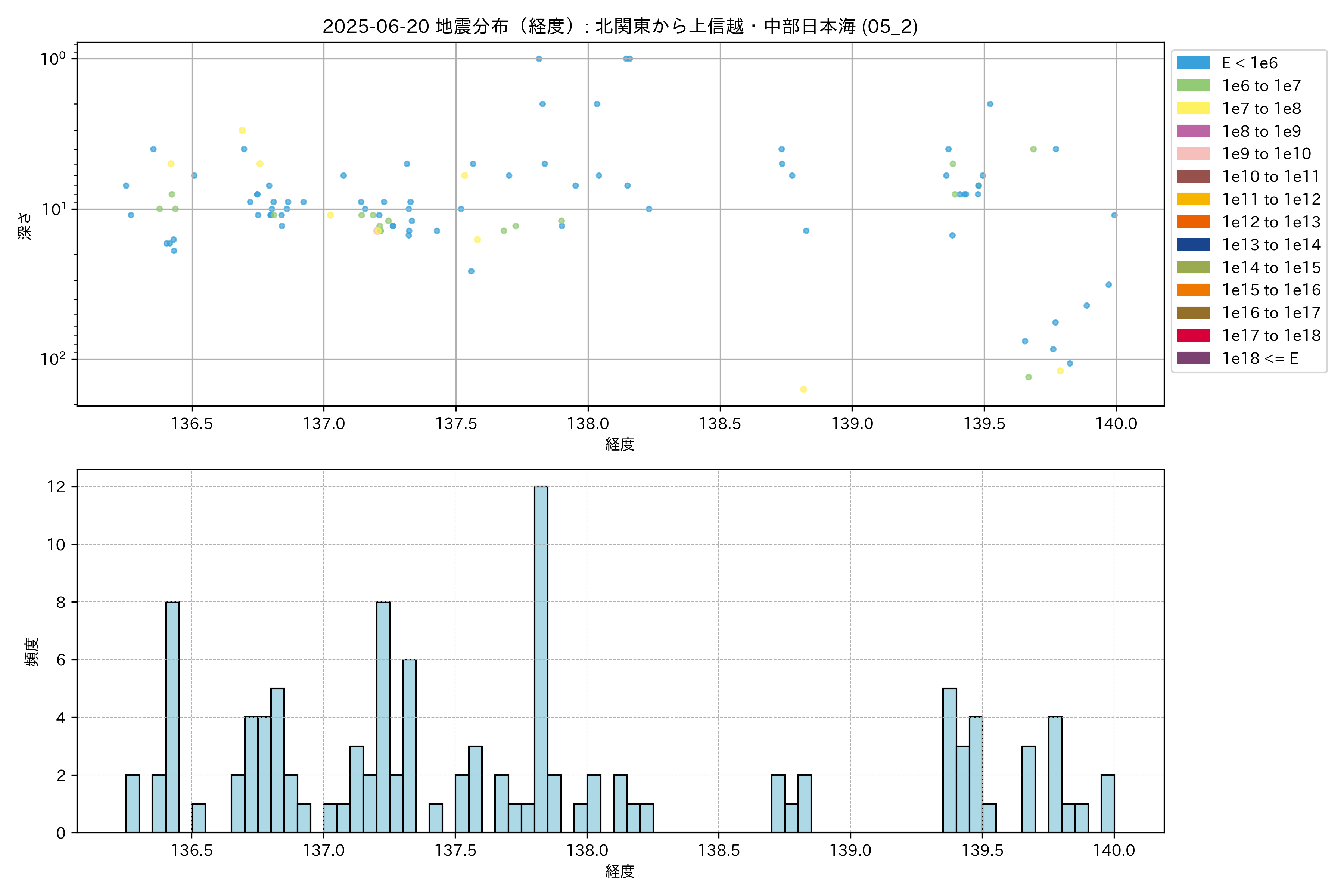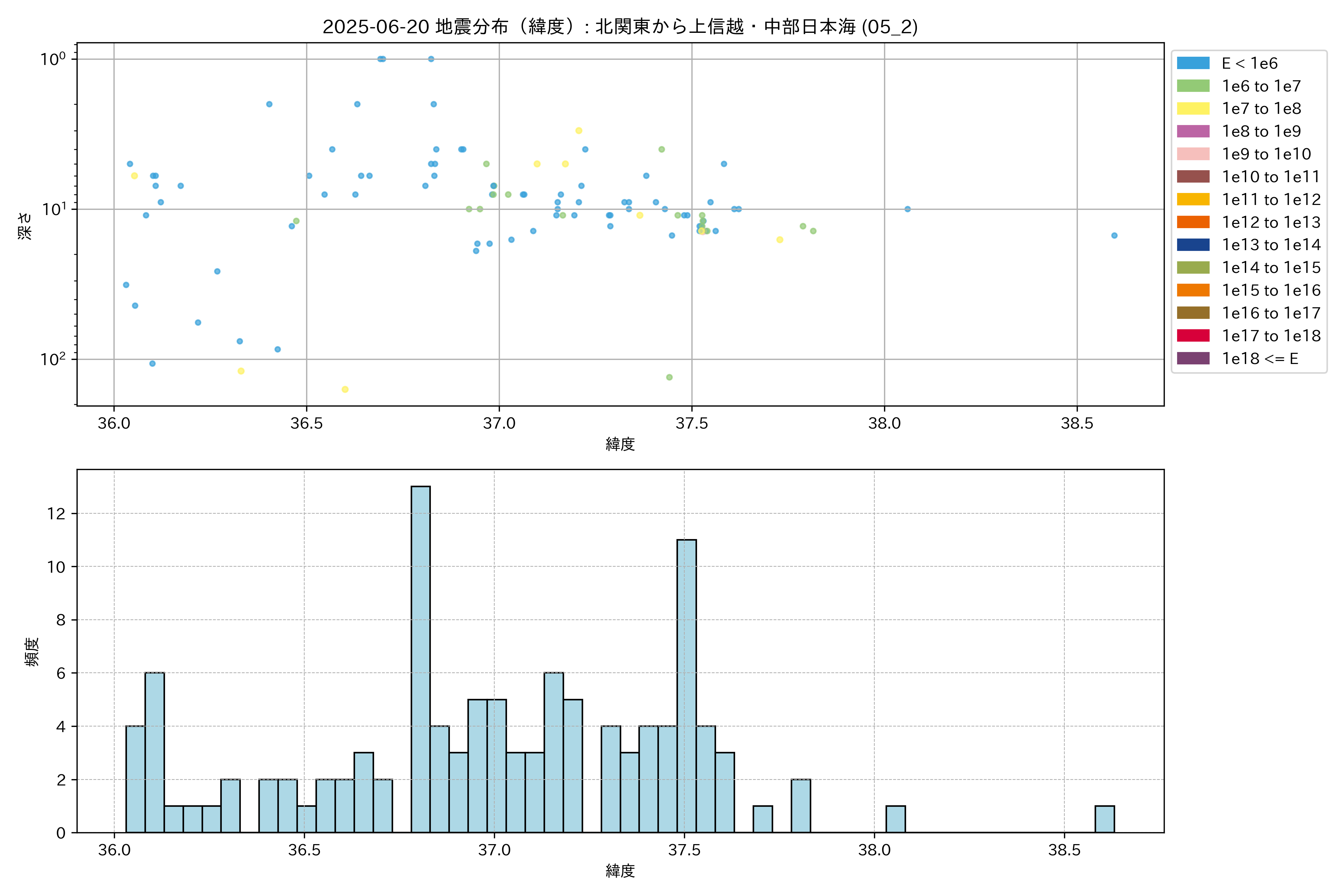 2025年06月20日 北関東から上信越・中部日本海 エリア震源マップ