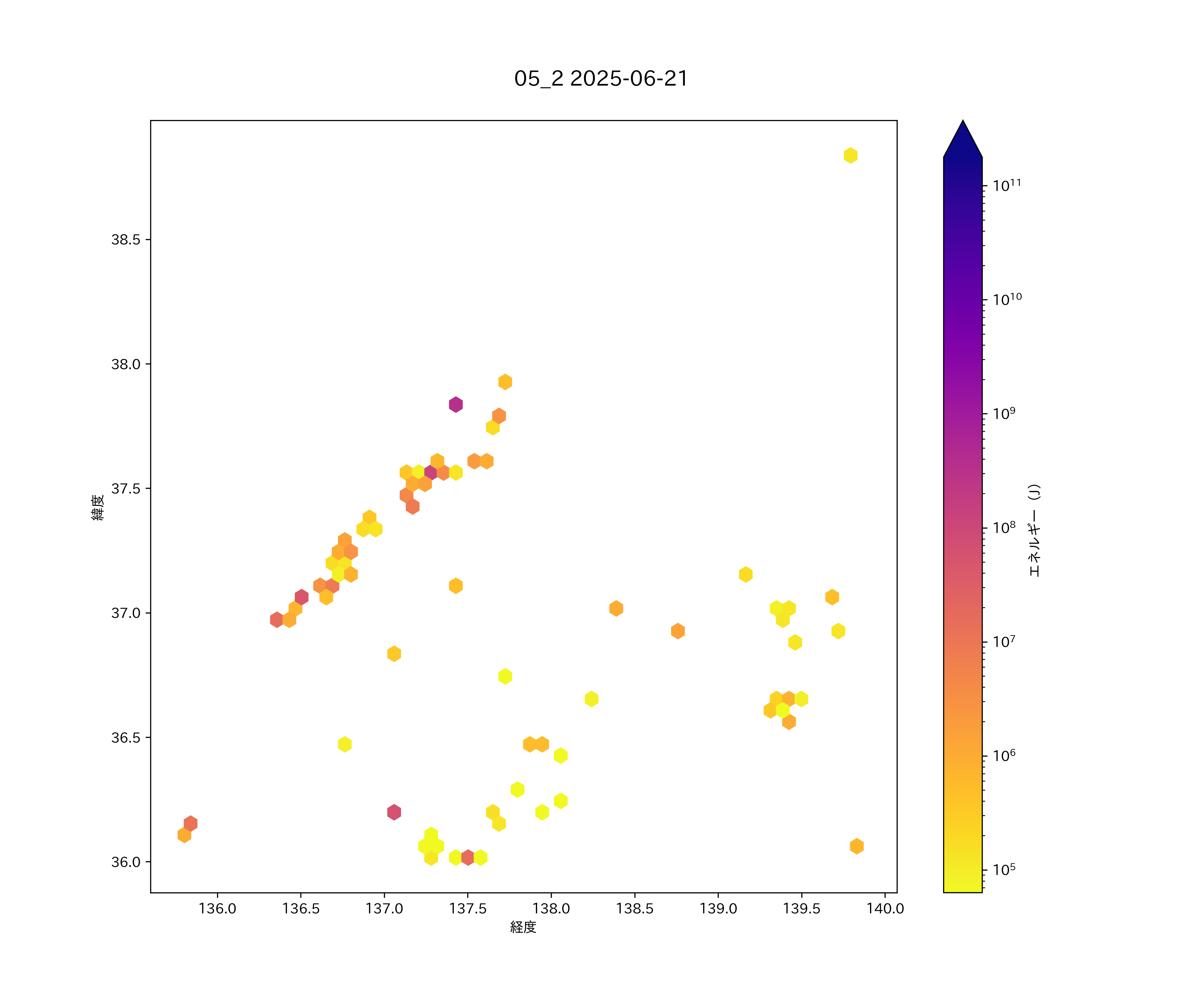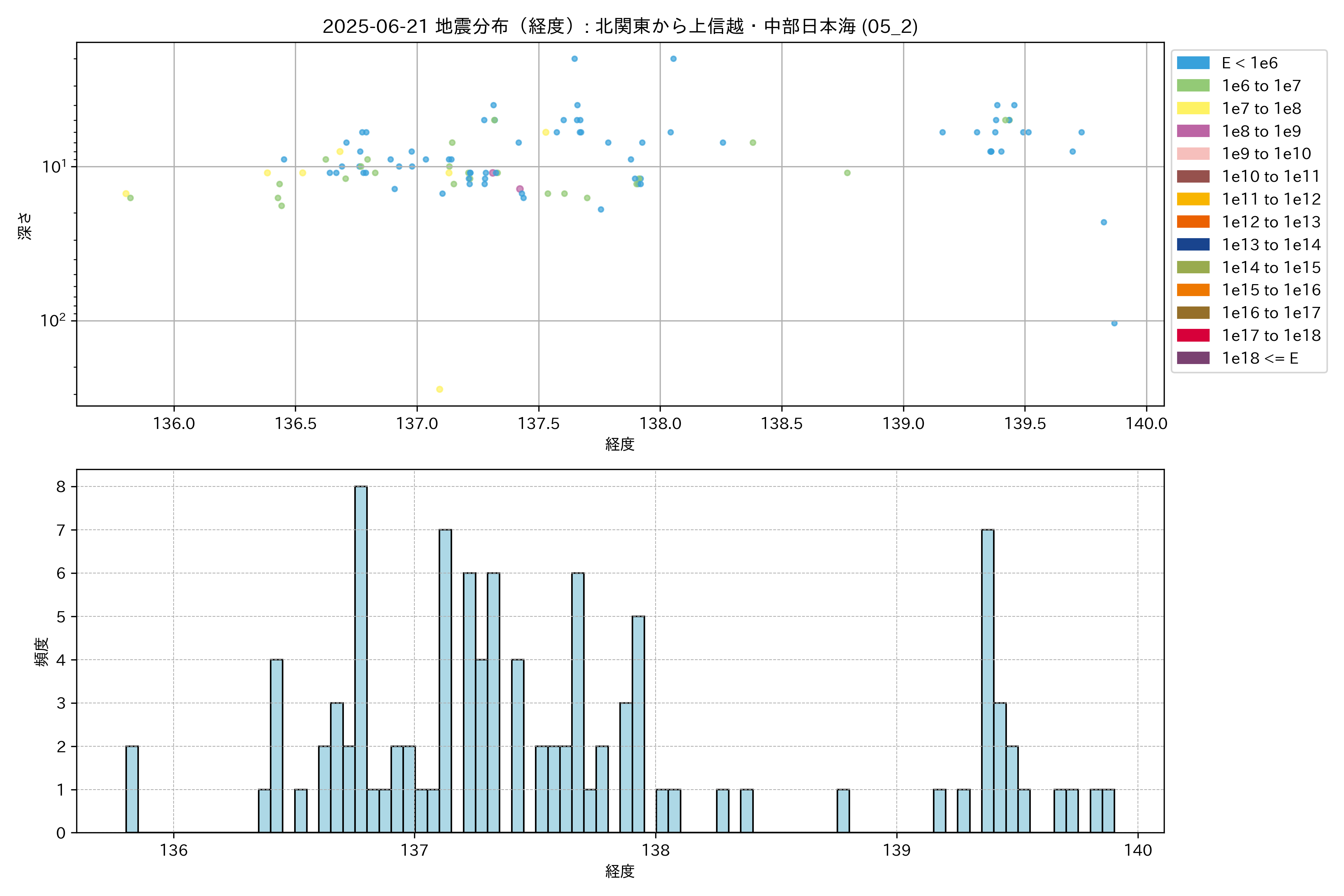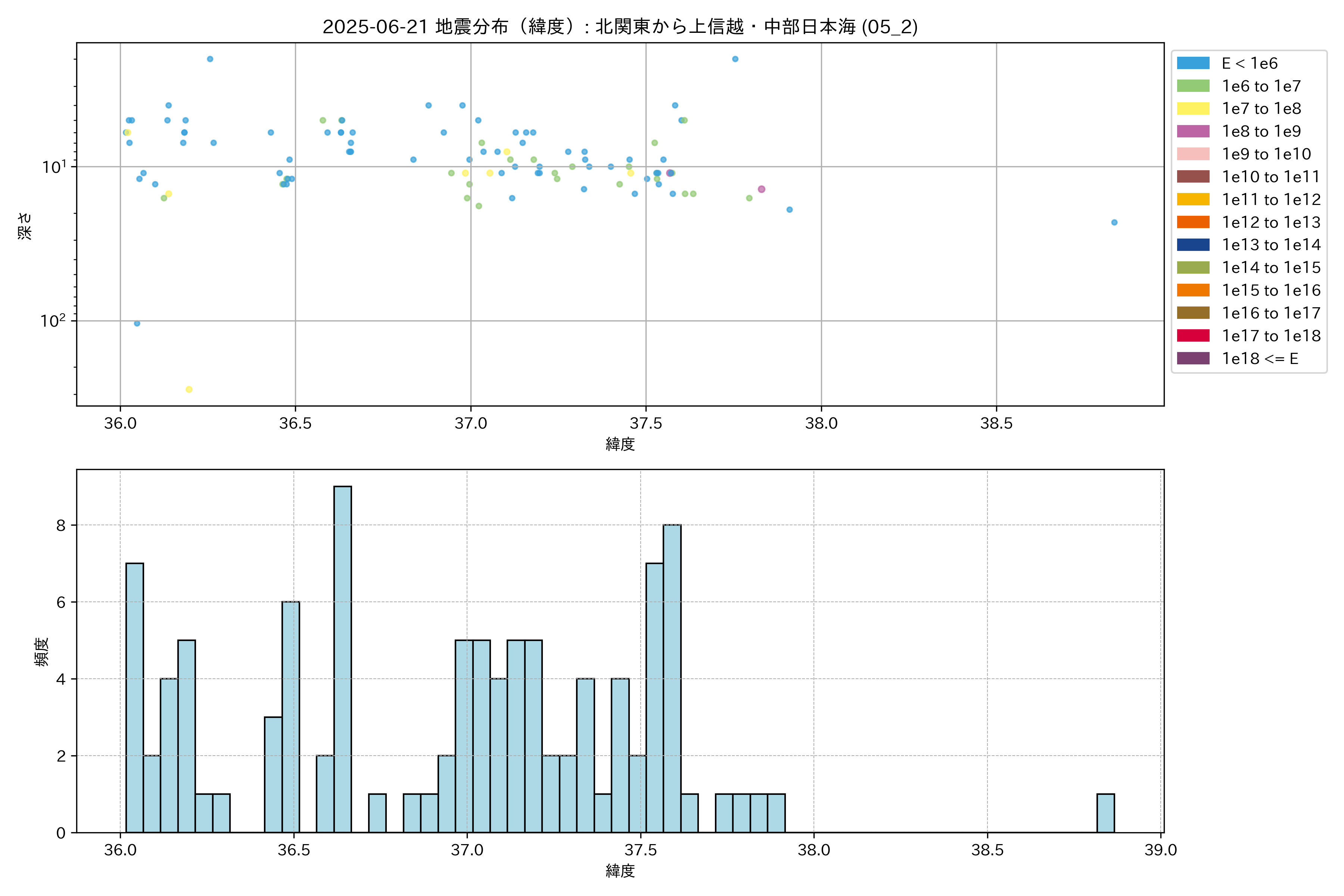 2025年06月21日 北関東から上信越・中部日本海 エリア震源マップ
