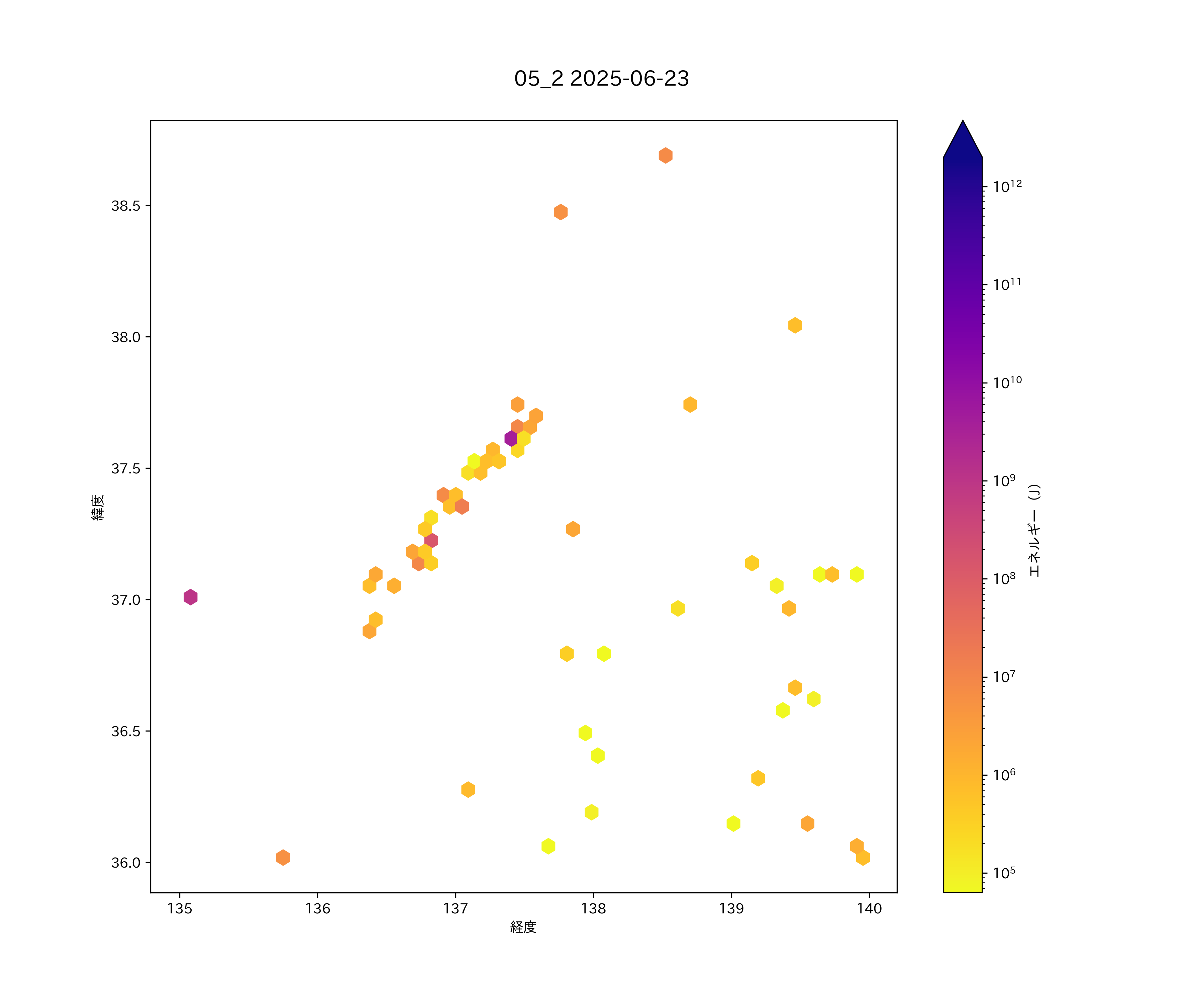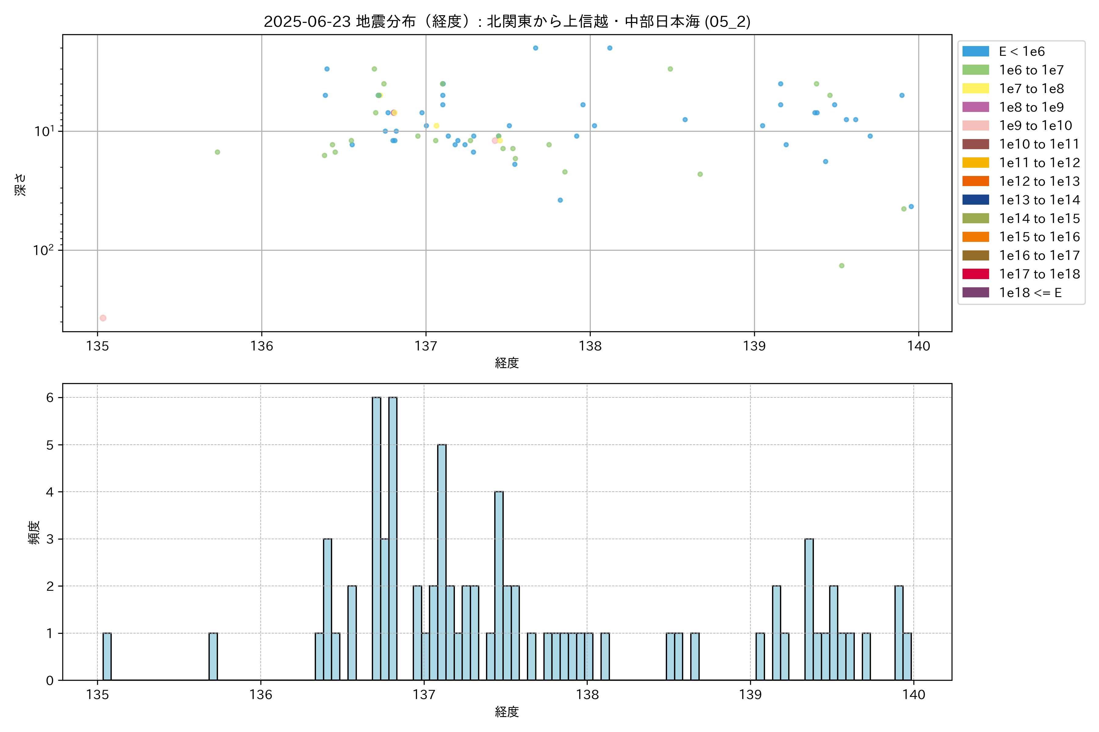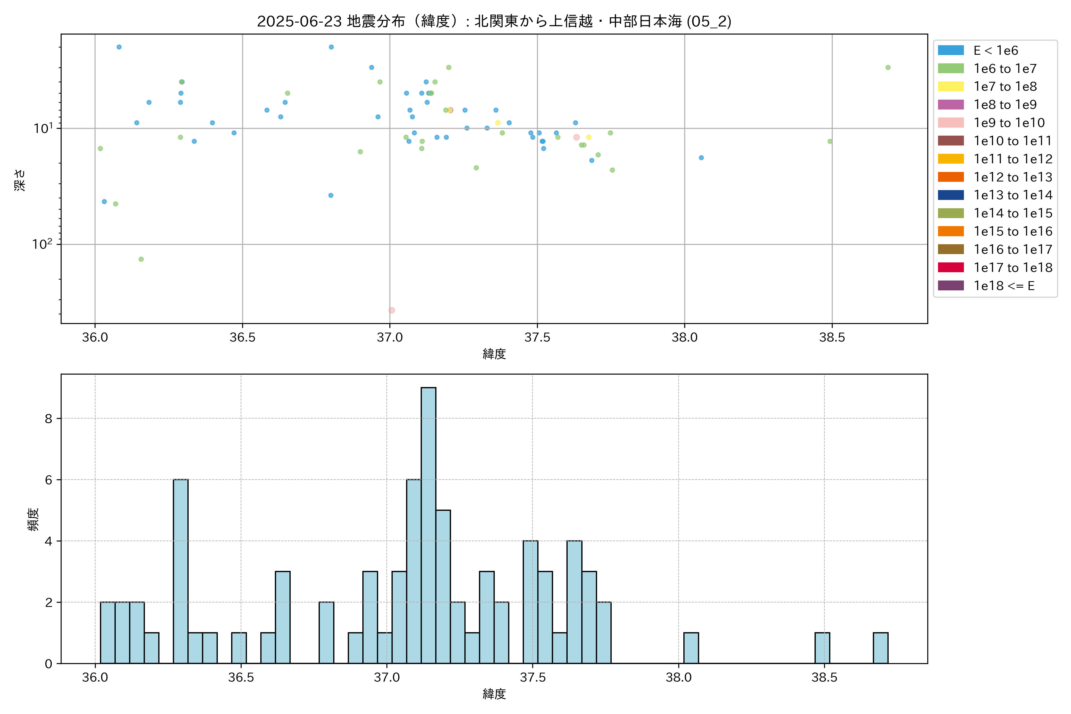 2025年06月23日 北関東から上信越・中部日本海 エリア震源マップ