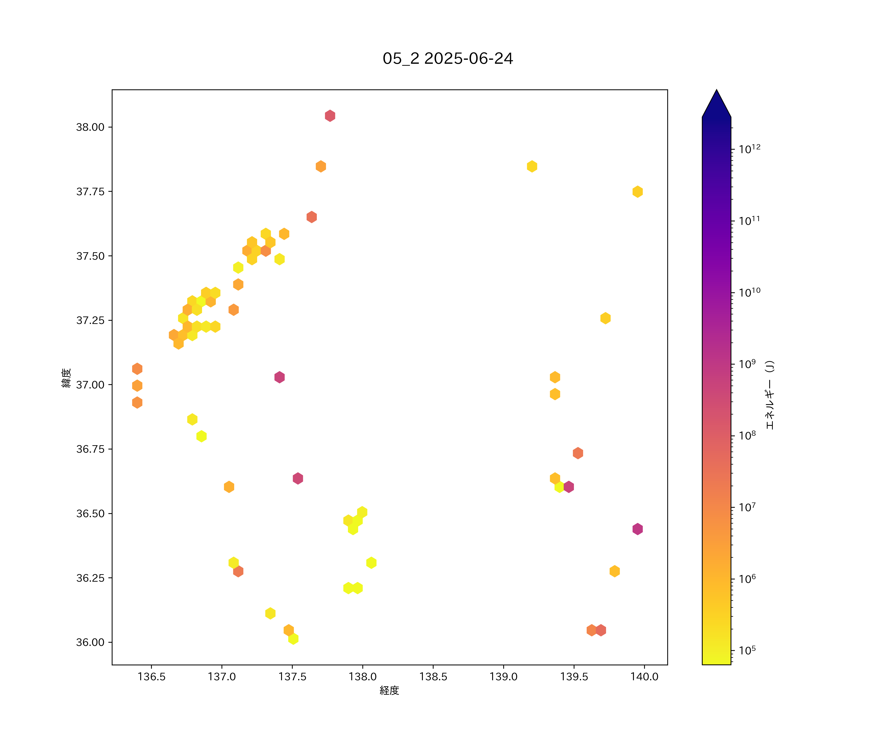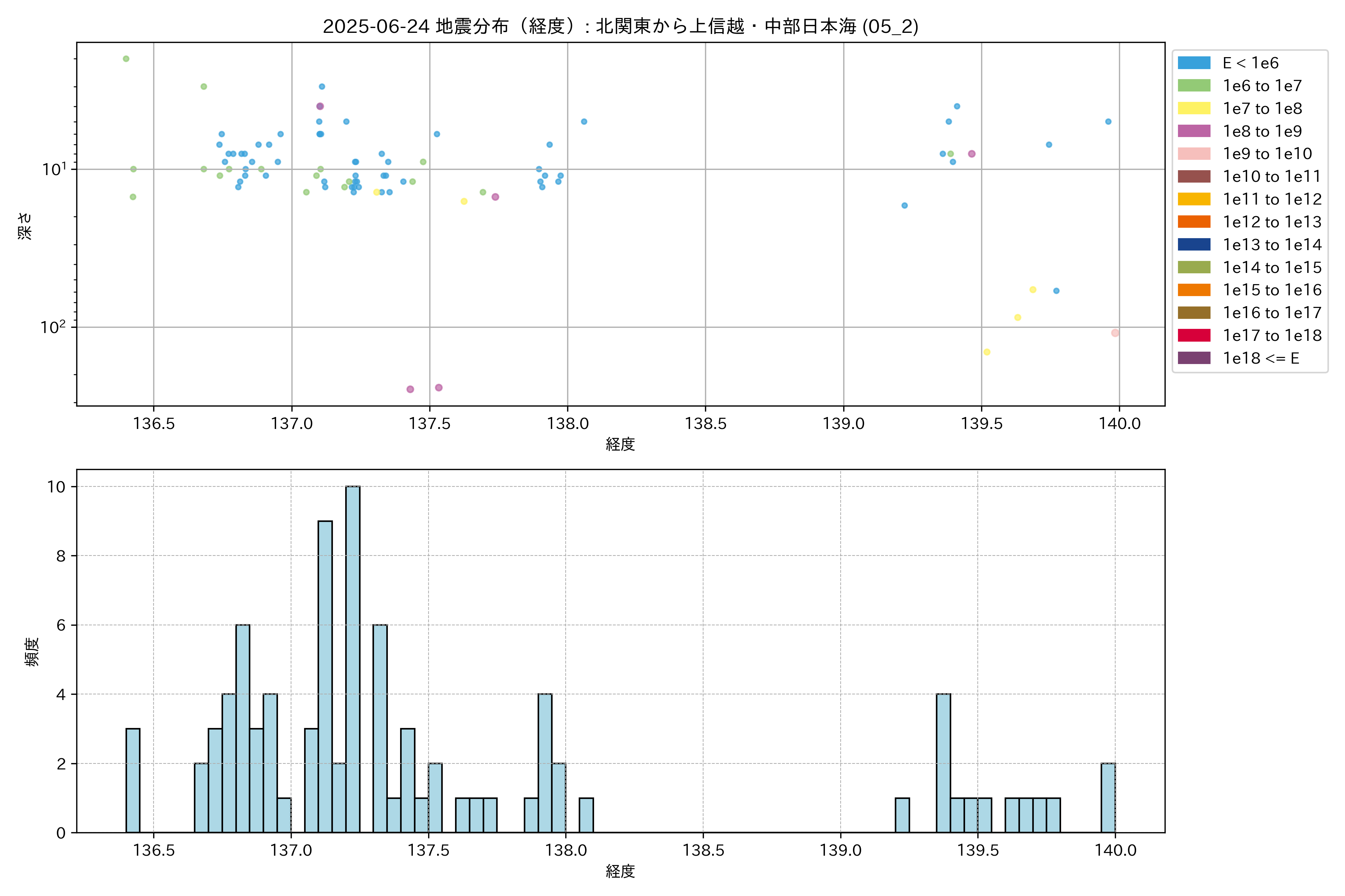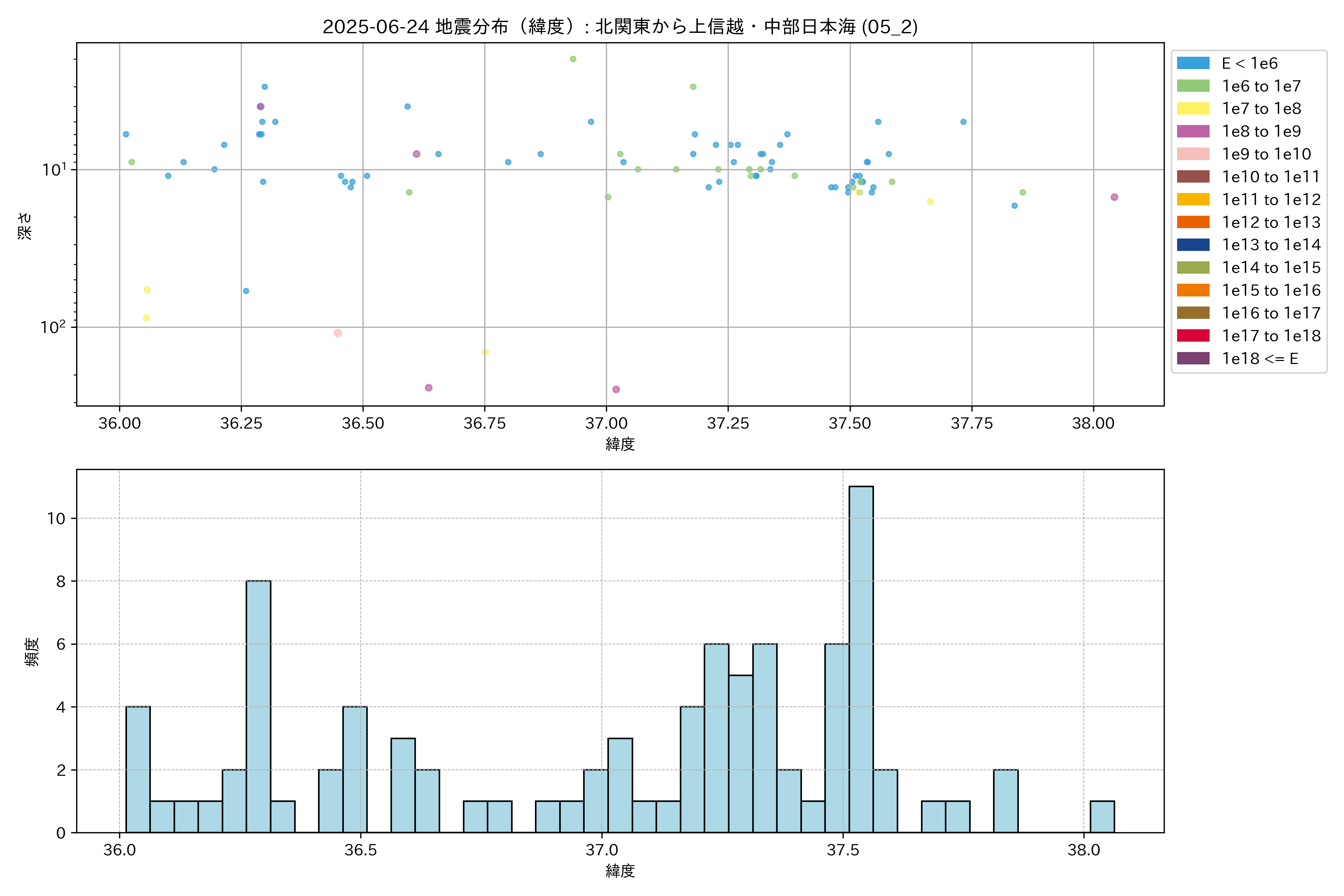 2025年06月24日 北関東から上信越・中部日本海 エリア震源マップ