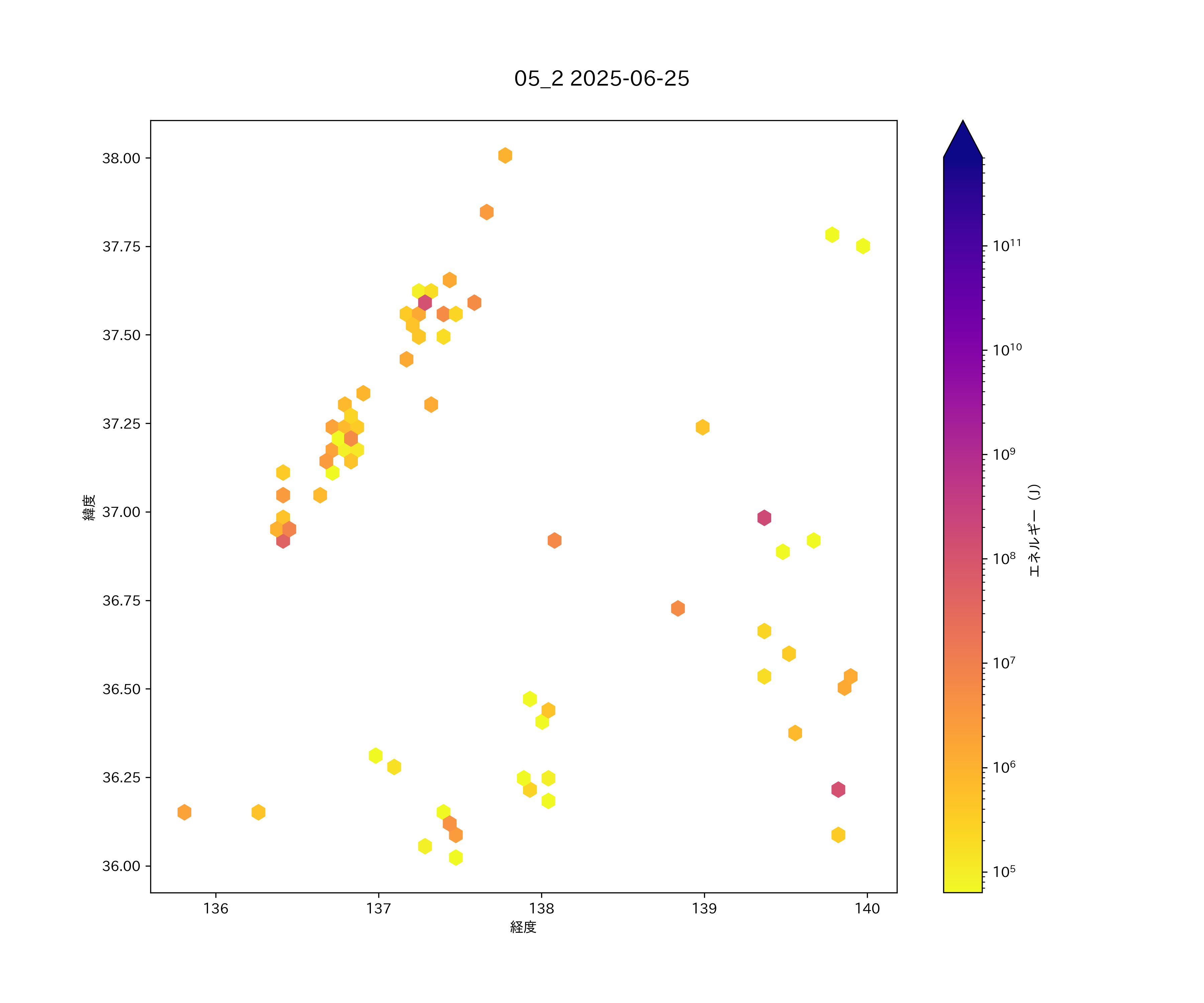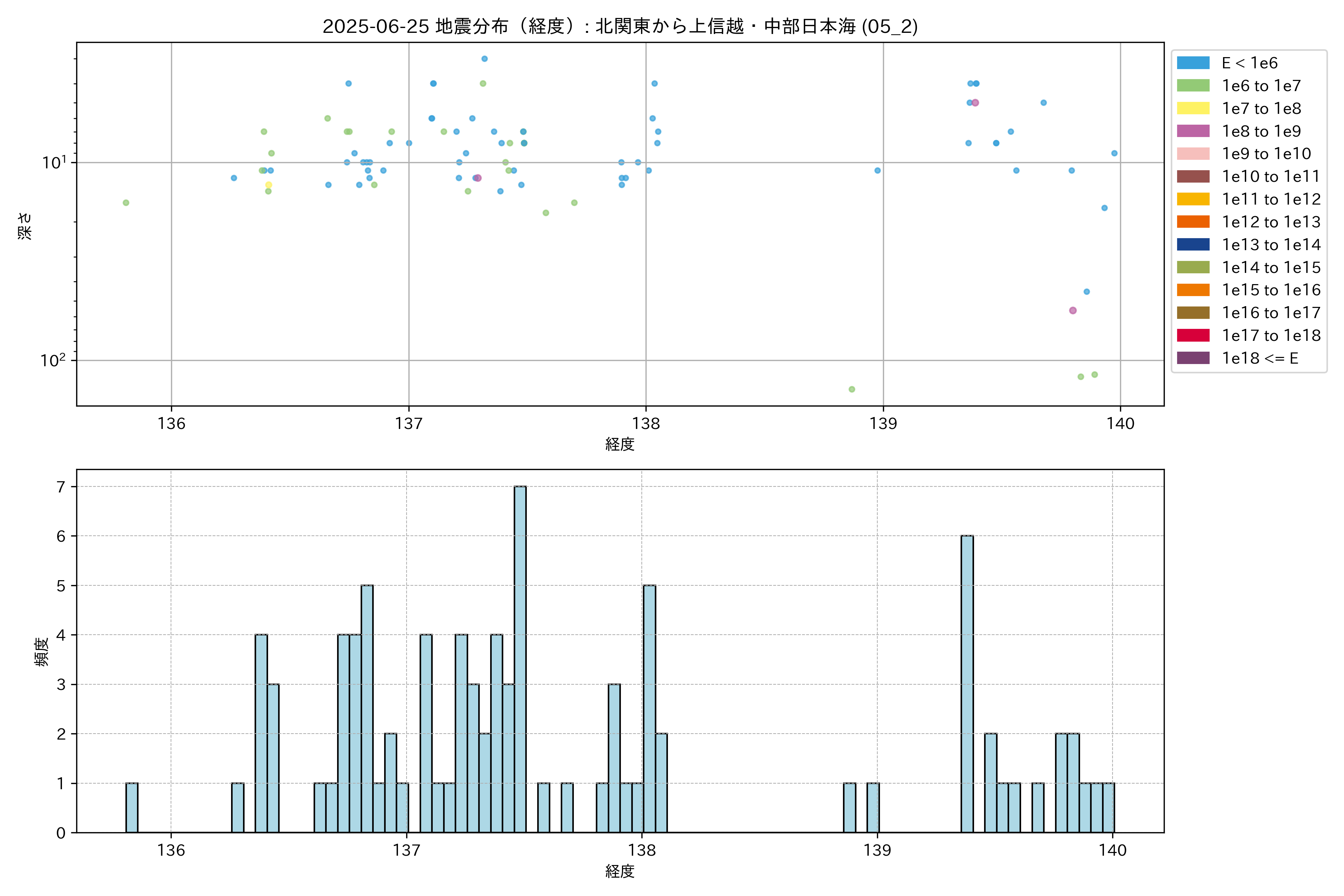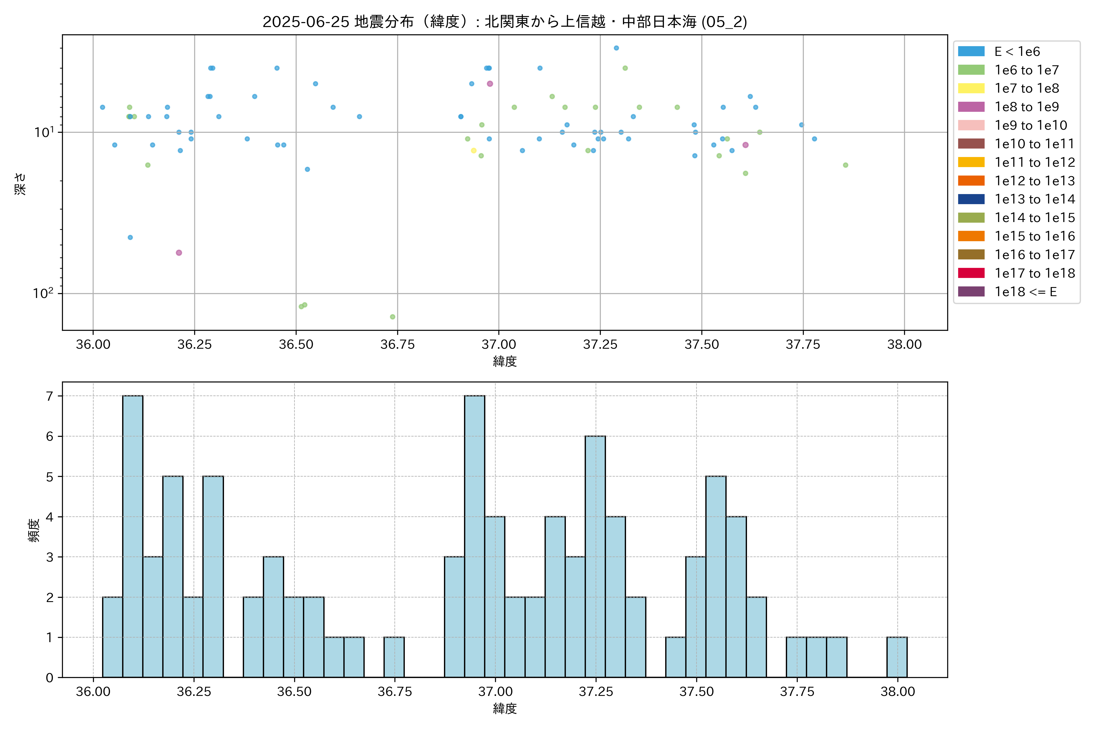 2025年06月25日 北関東から上信越・中部日本海 エリア震源マップ