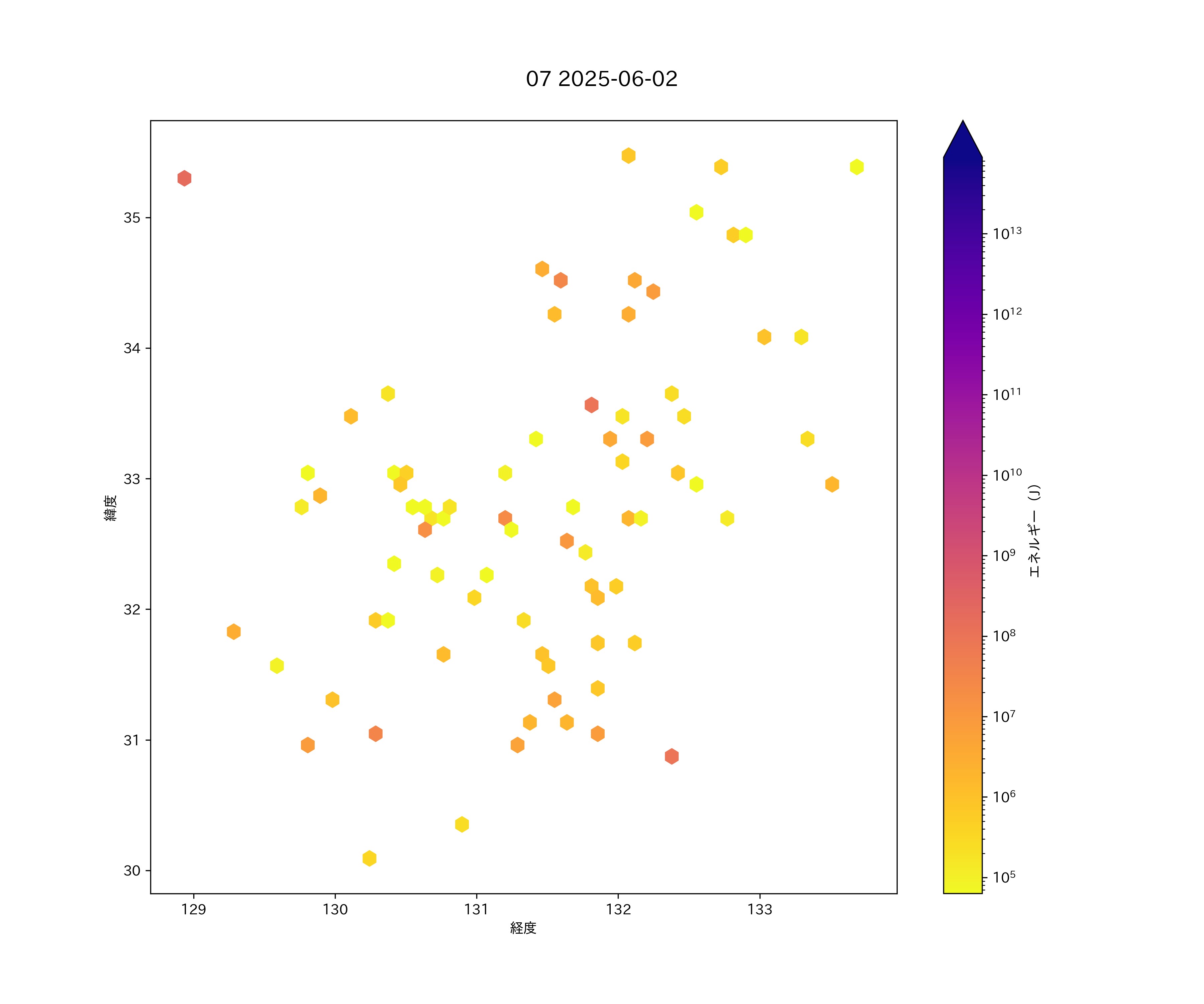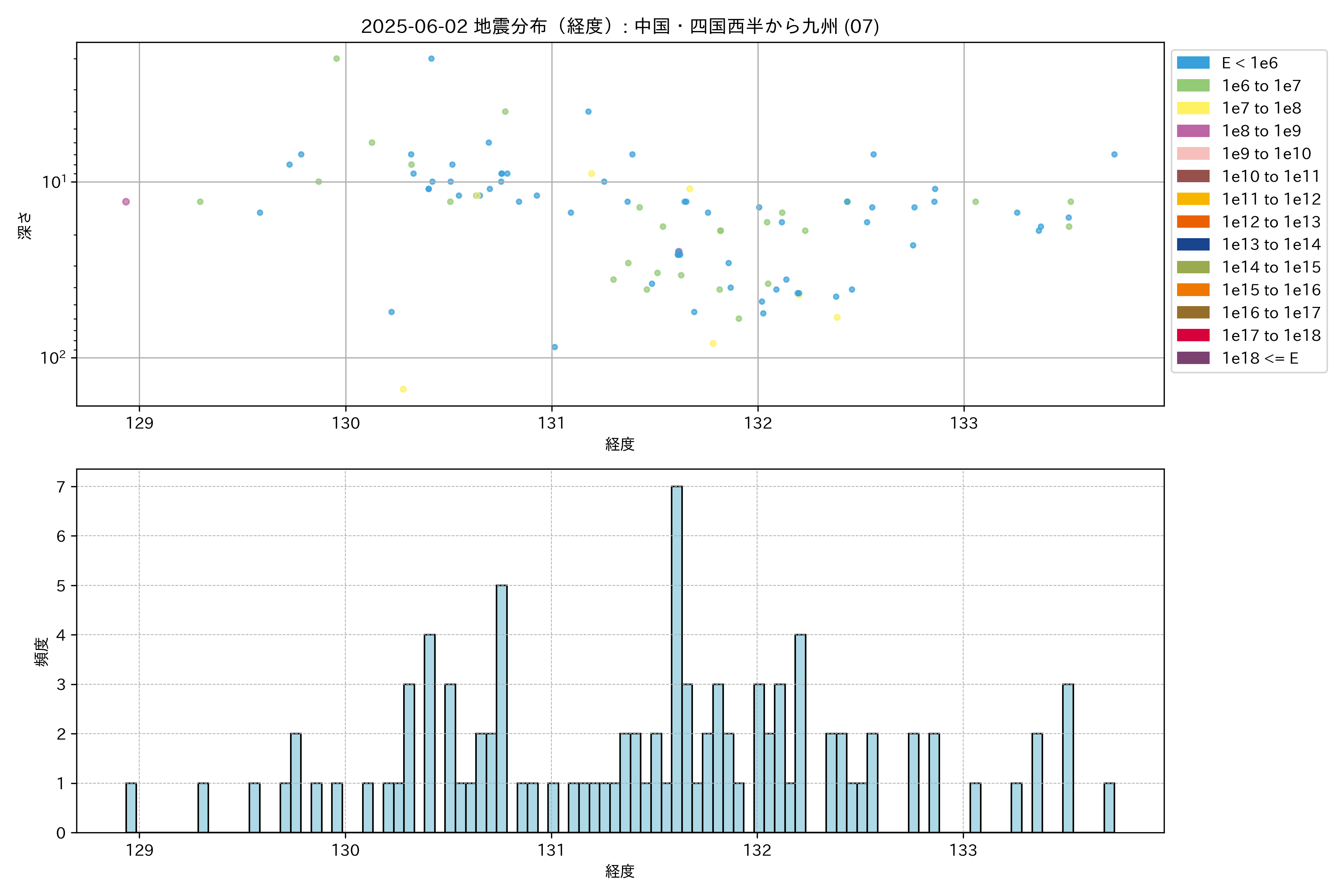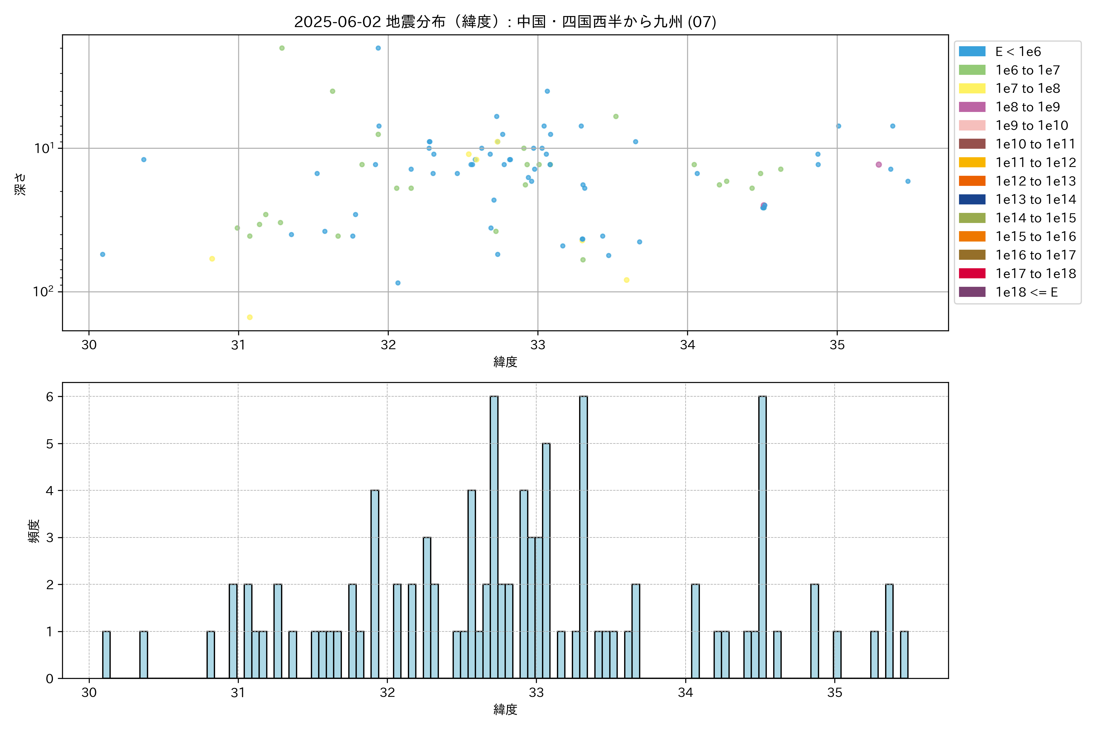 2025年06月02日 中国・四国西半から九州 エリア震源マップ