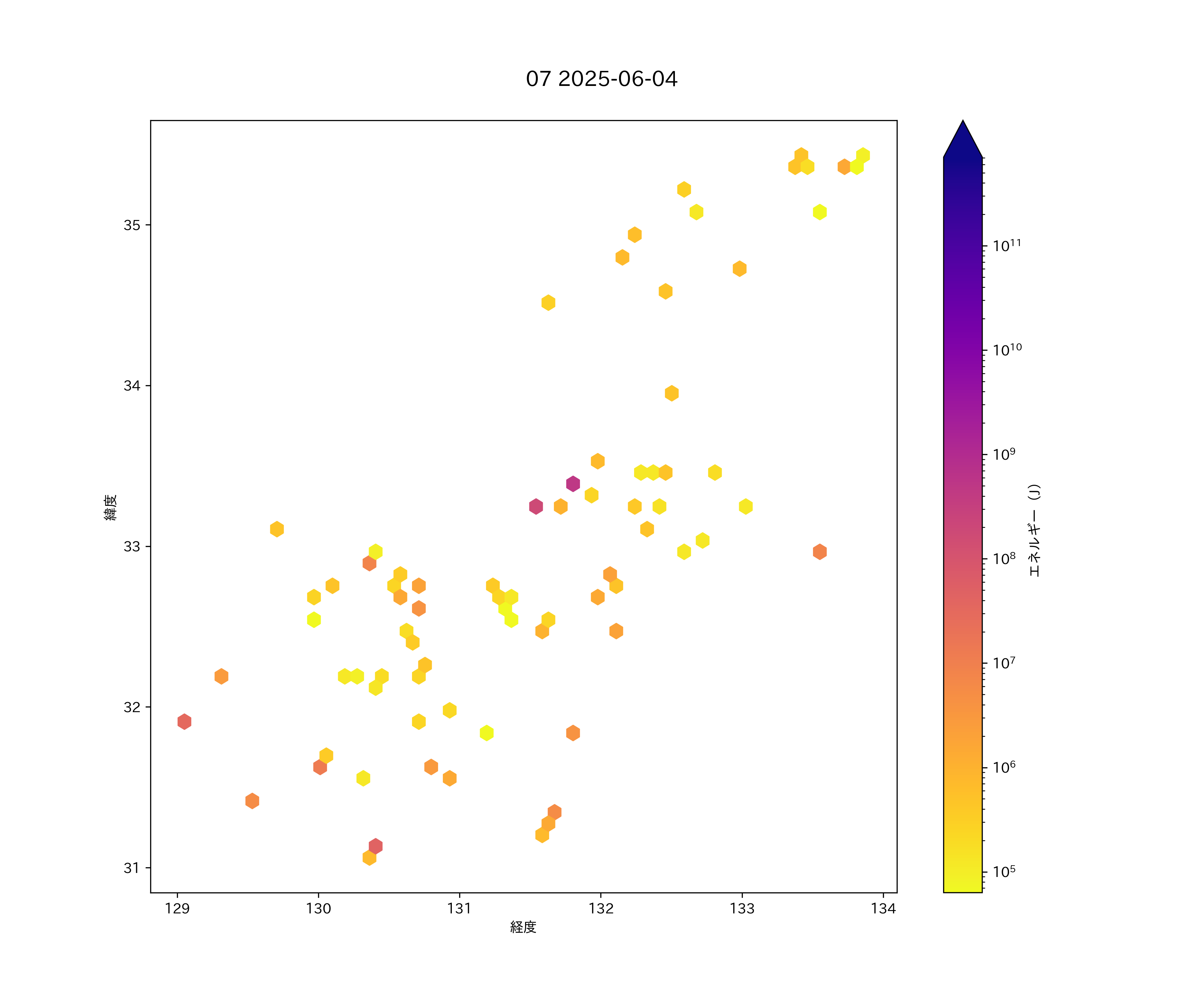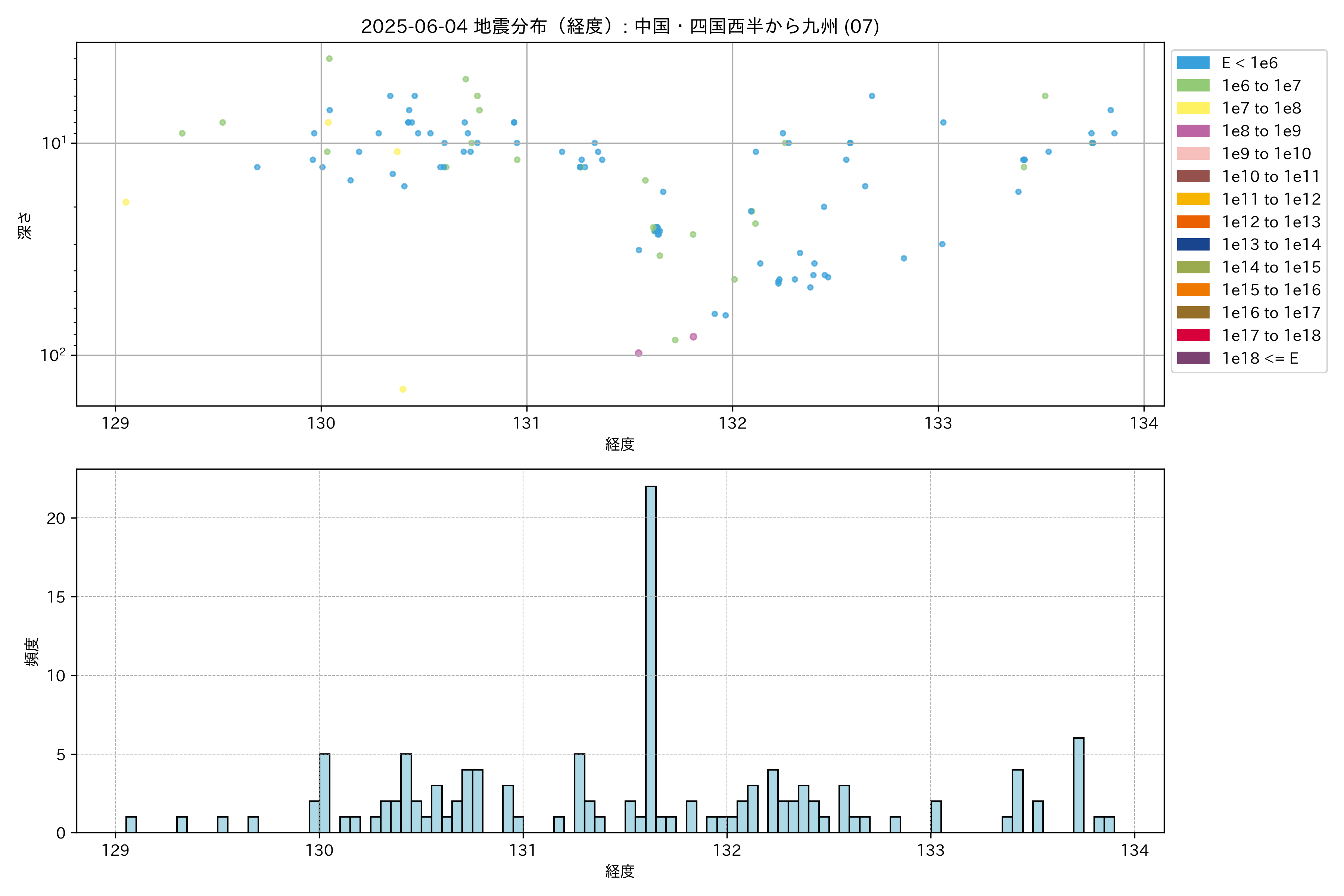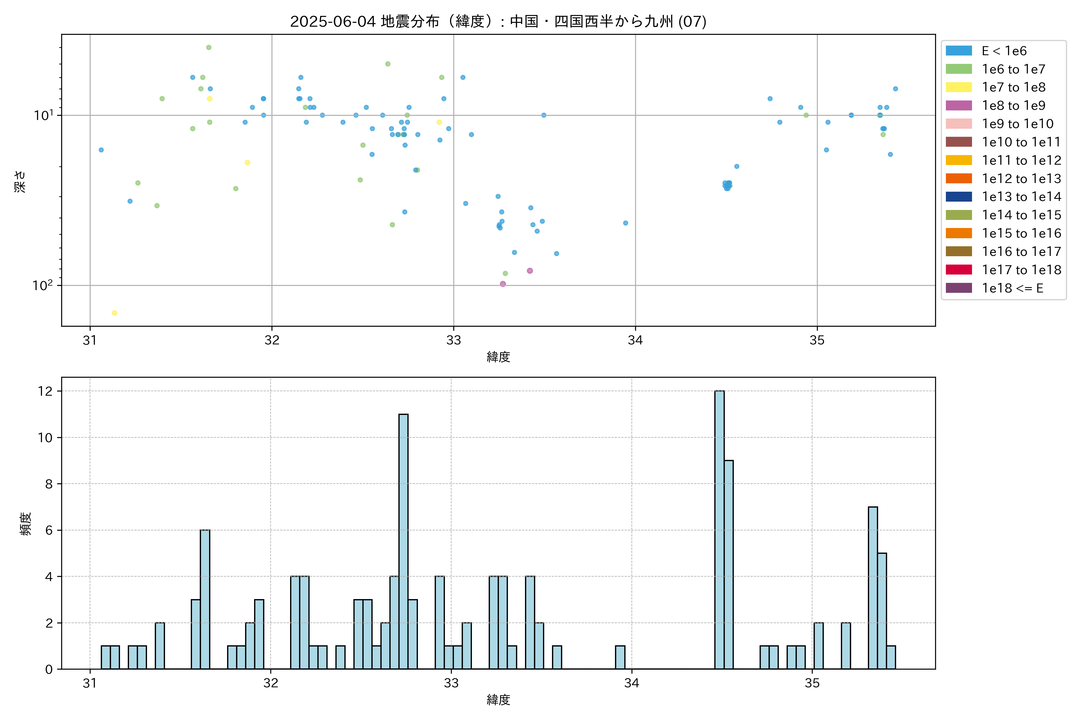 2025年06月04日 中国・四国西半から九州 エリア震源マップ