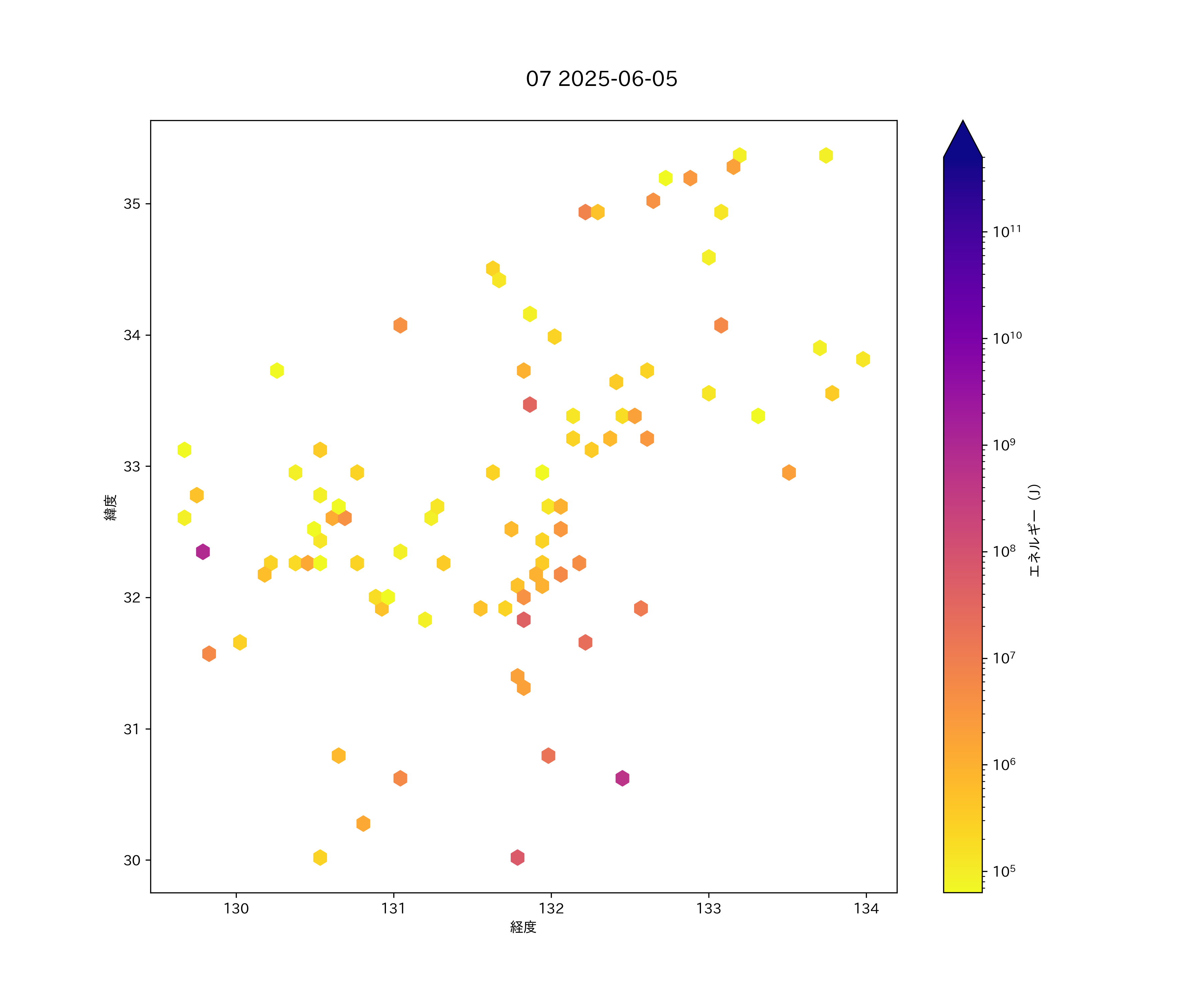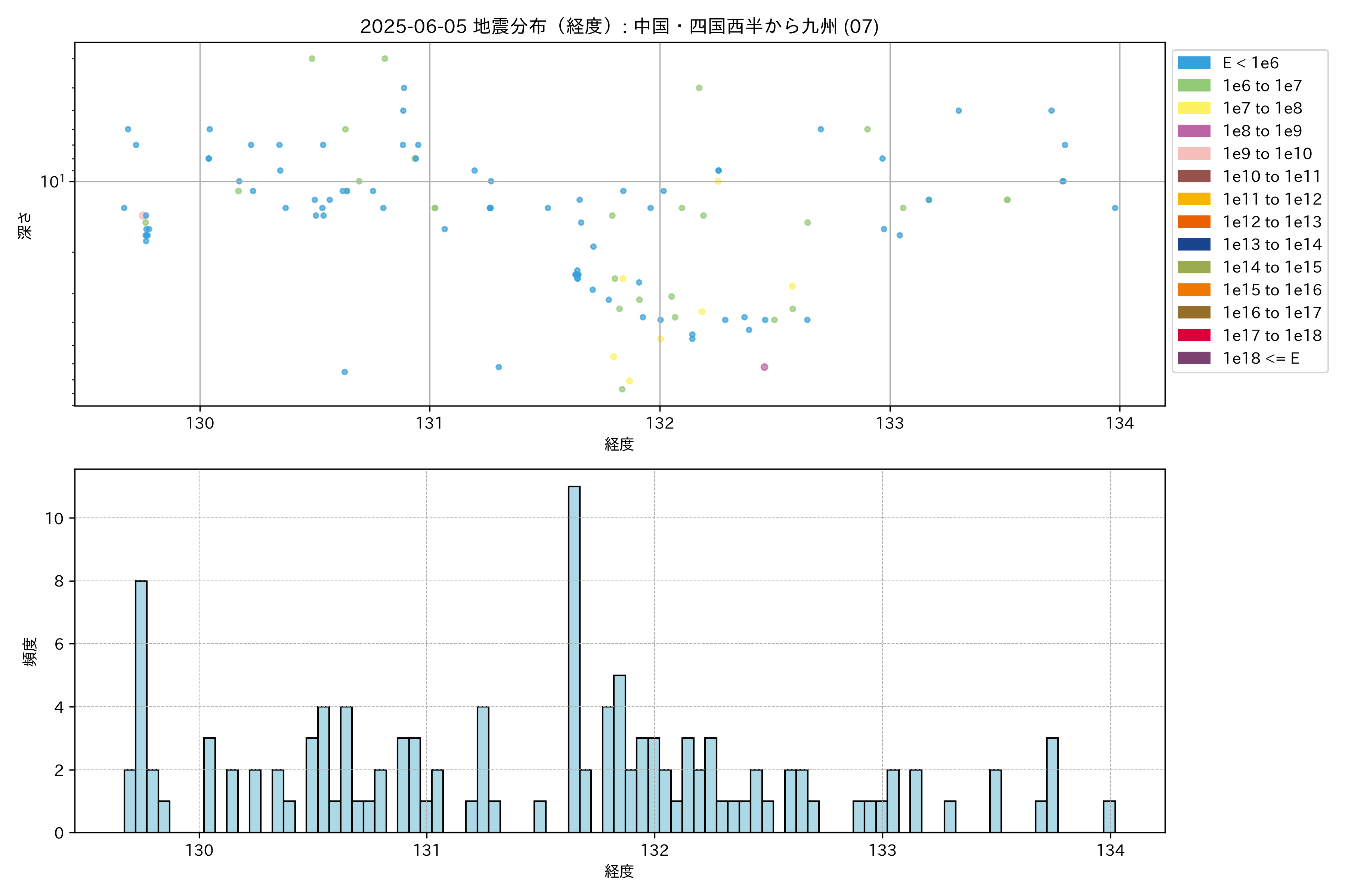 2025年06月05日 中国・四国西半から九州 エリア震源マップ