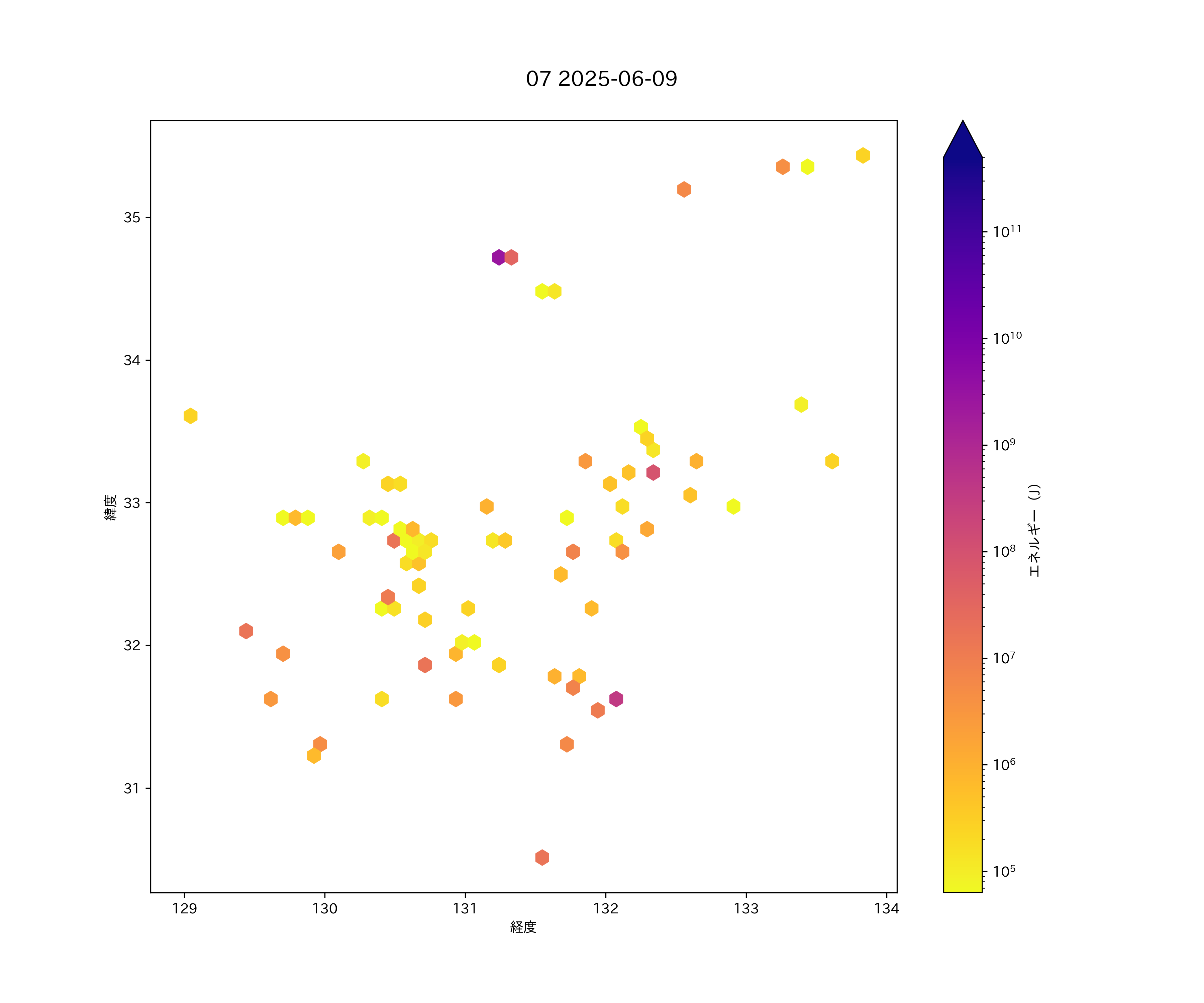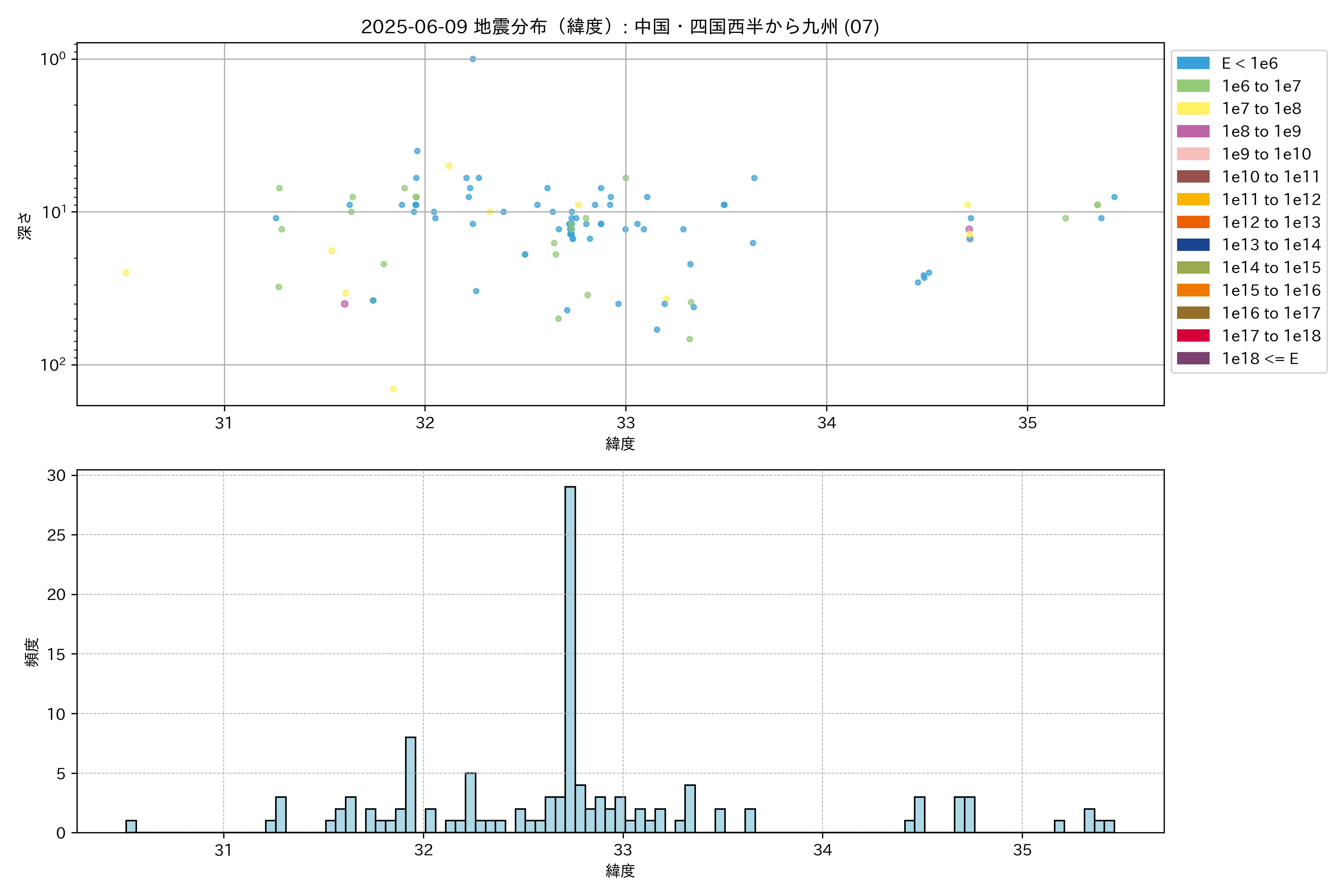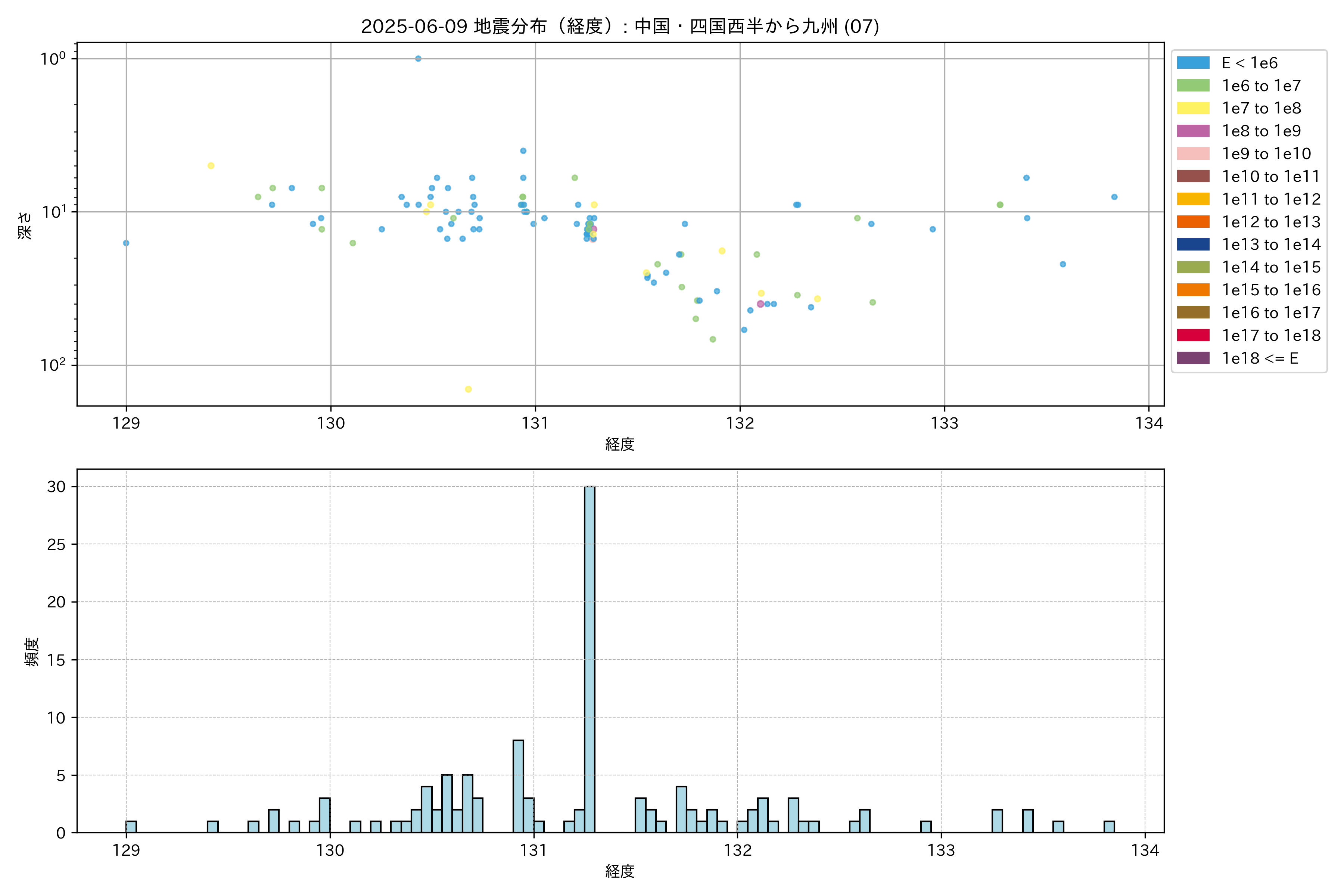 2025年06月09日 中国・四国西半から九州 エリア震源マップ