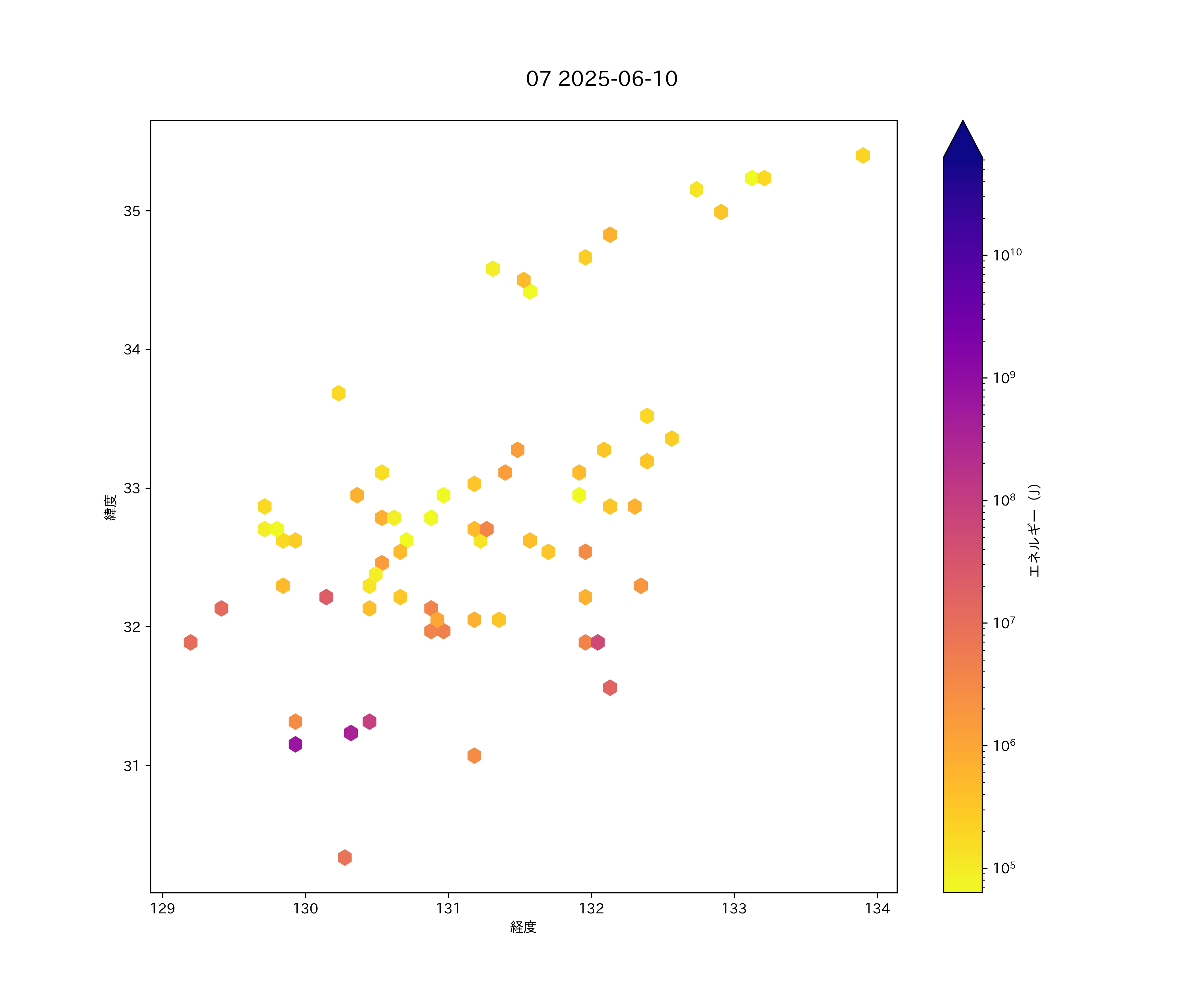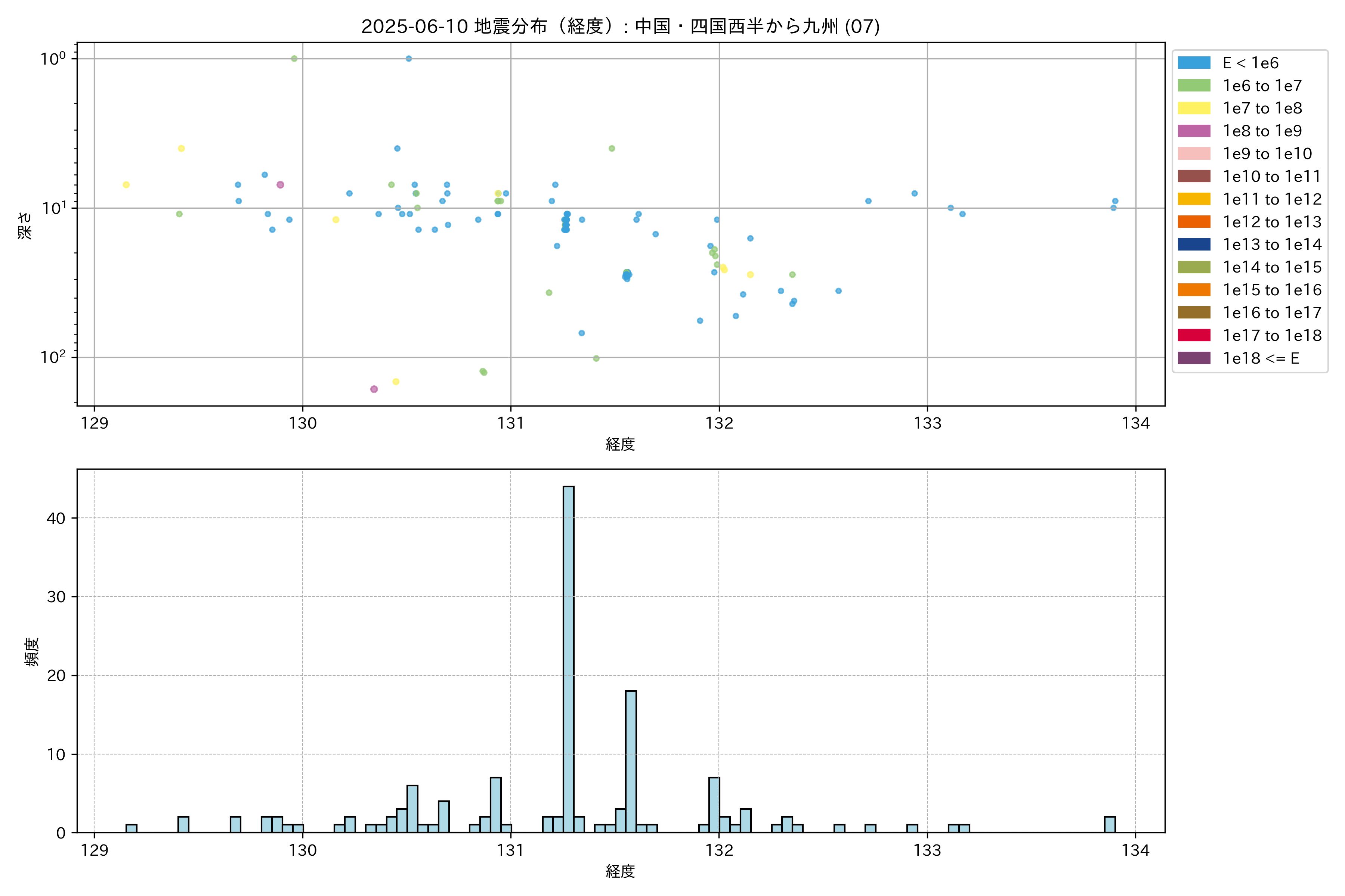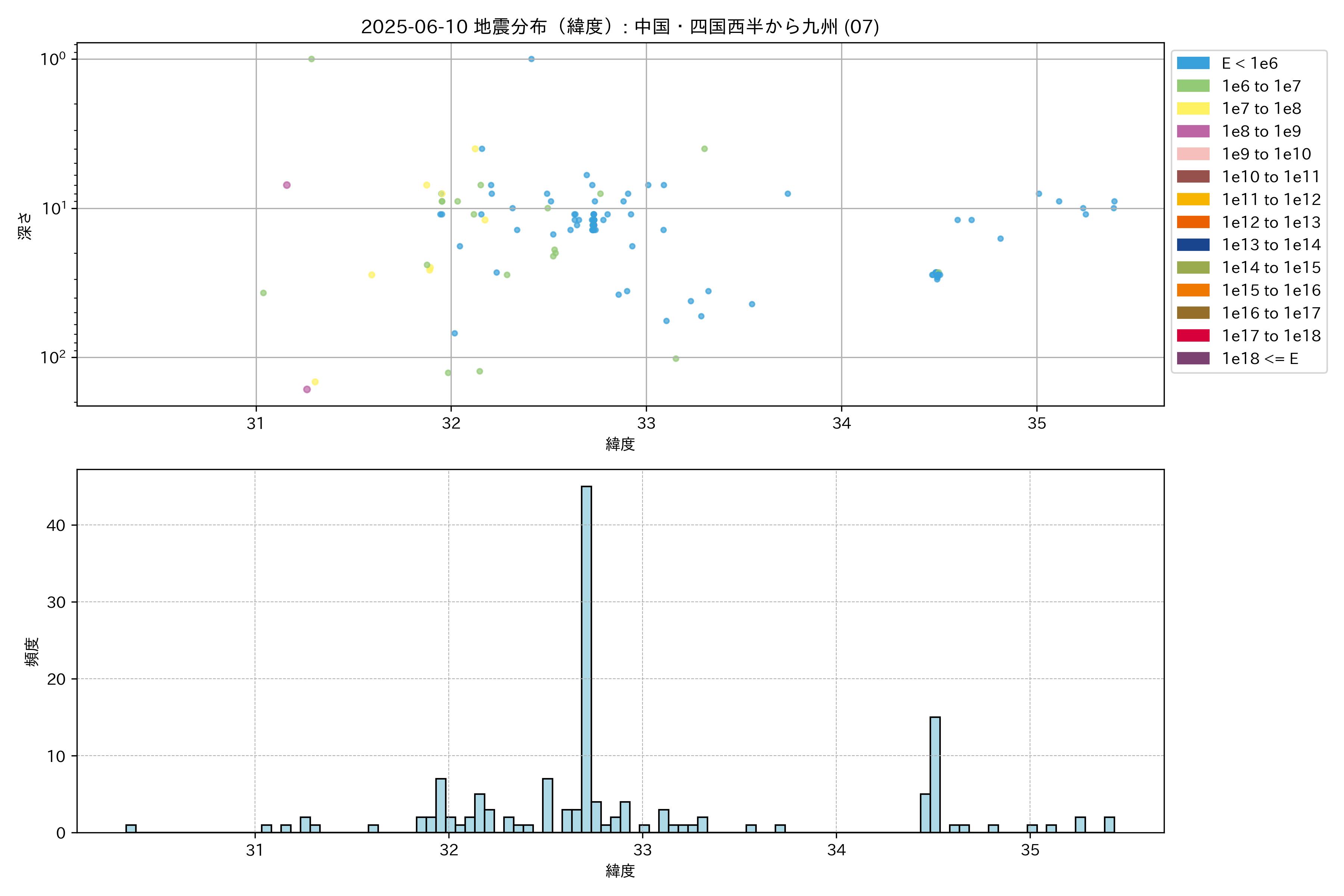 2025年06月10日 中国・四国西半から九州 エリア震源マップ