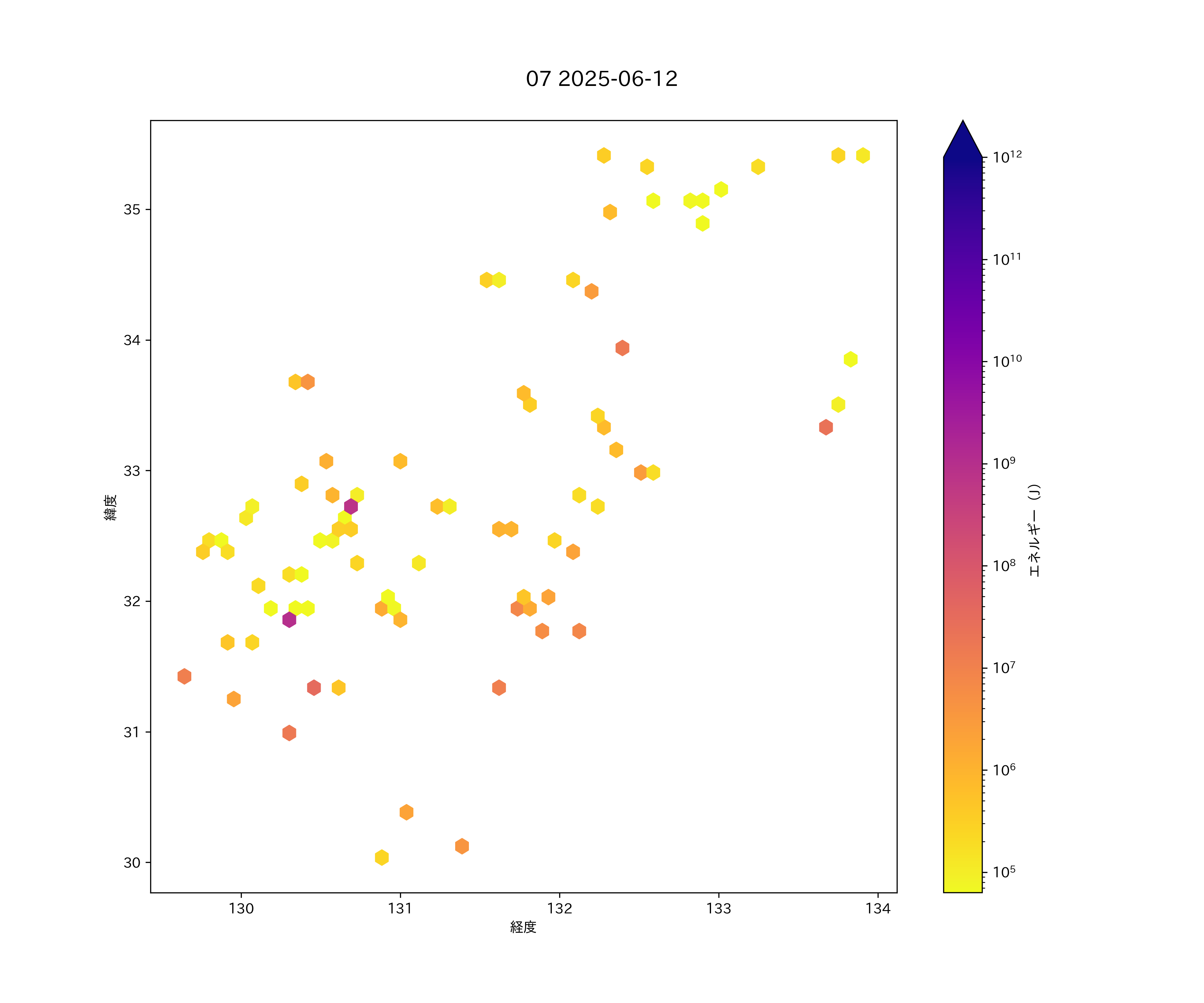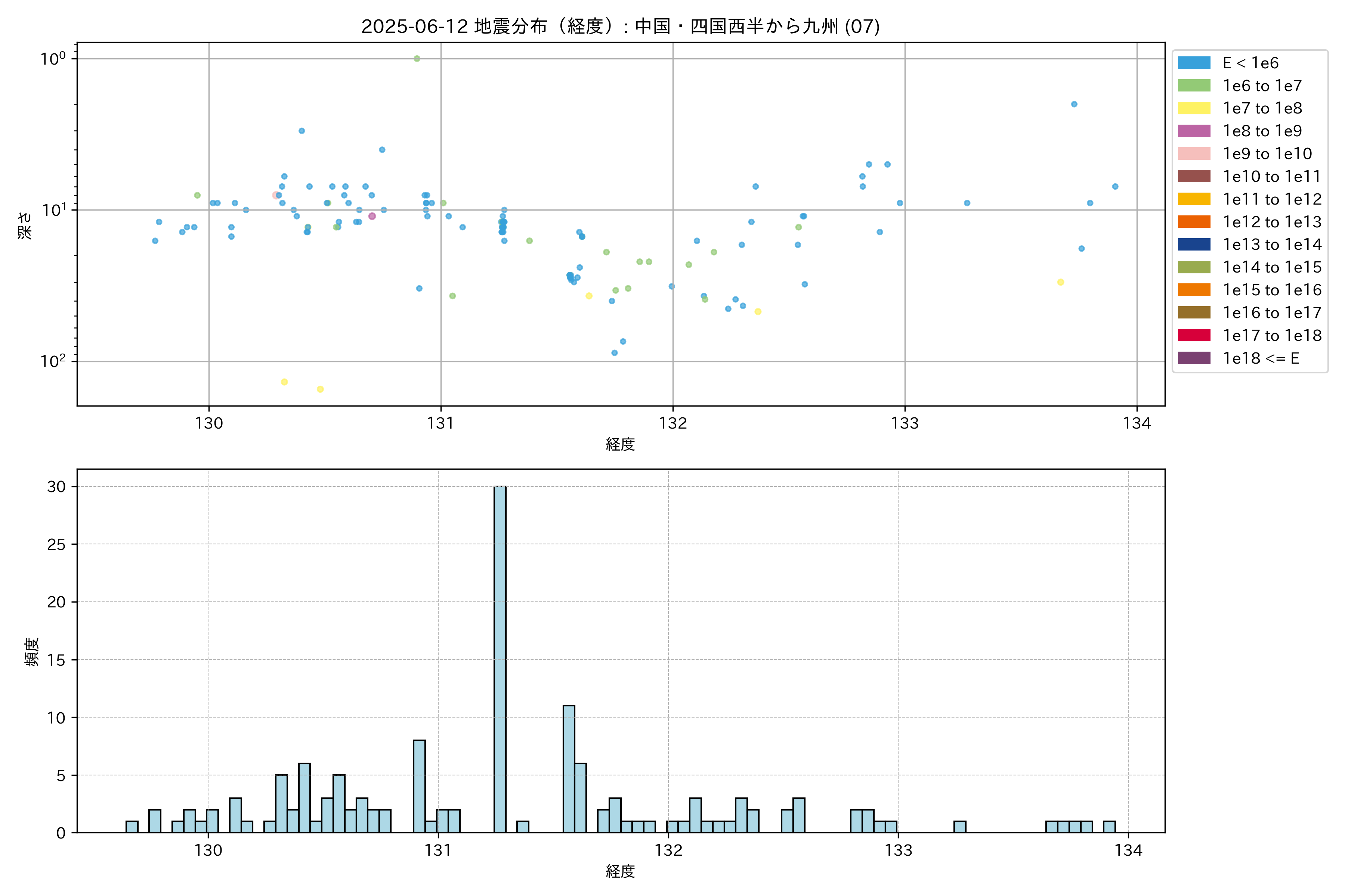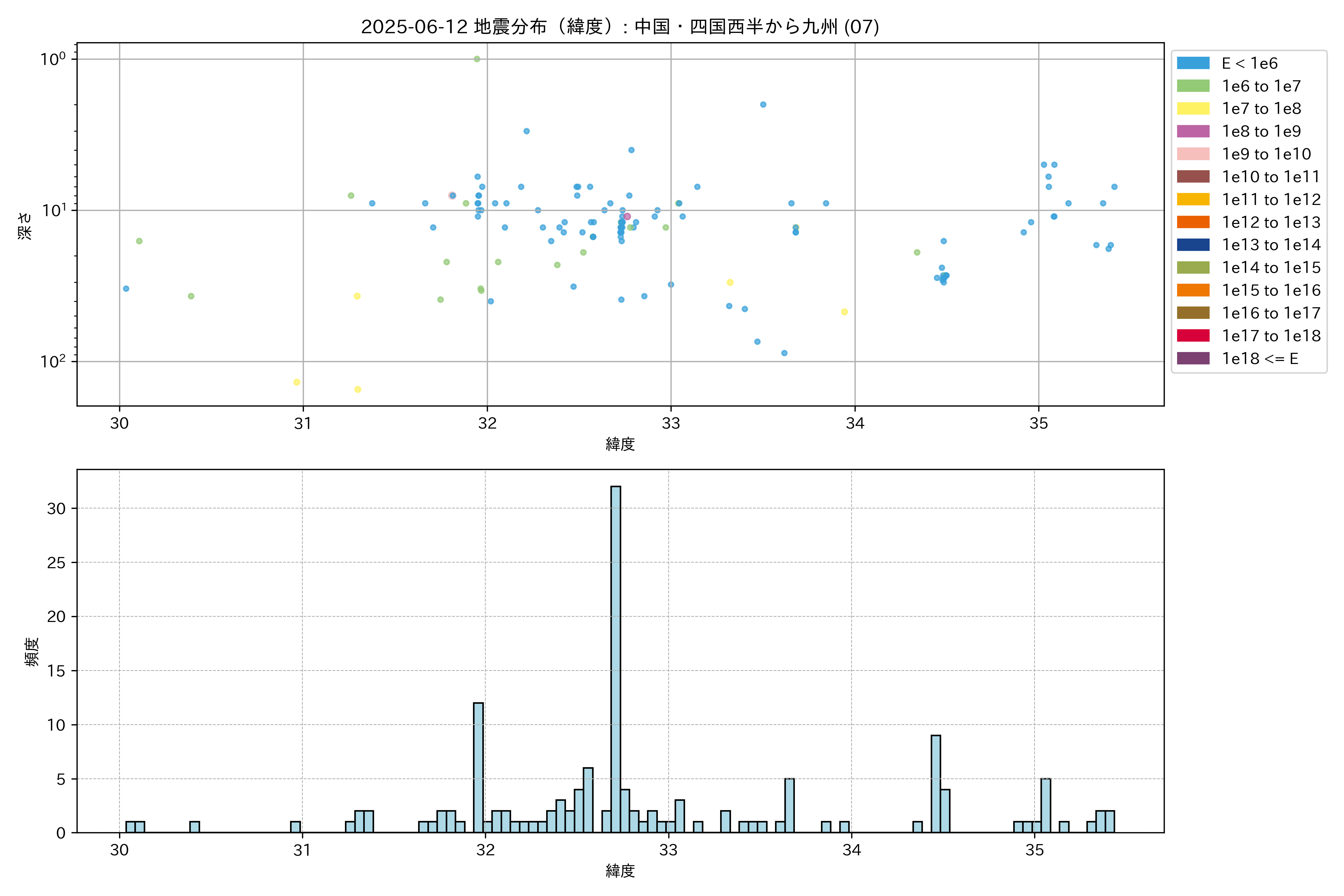 2025年06月12日 中国・四国西半から九州 エリア震源マップ