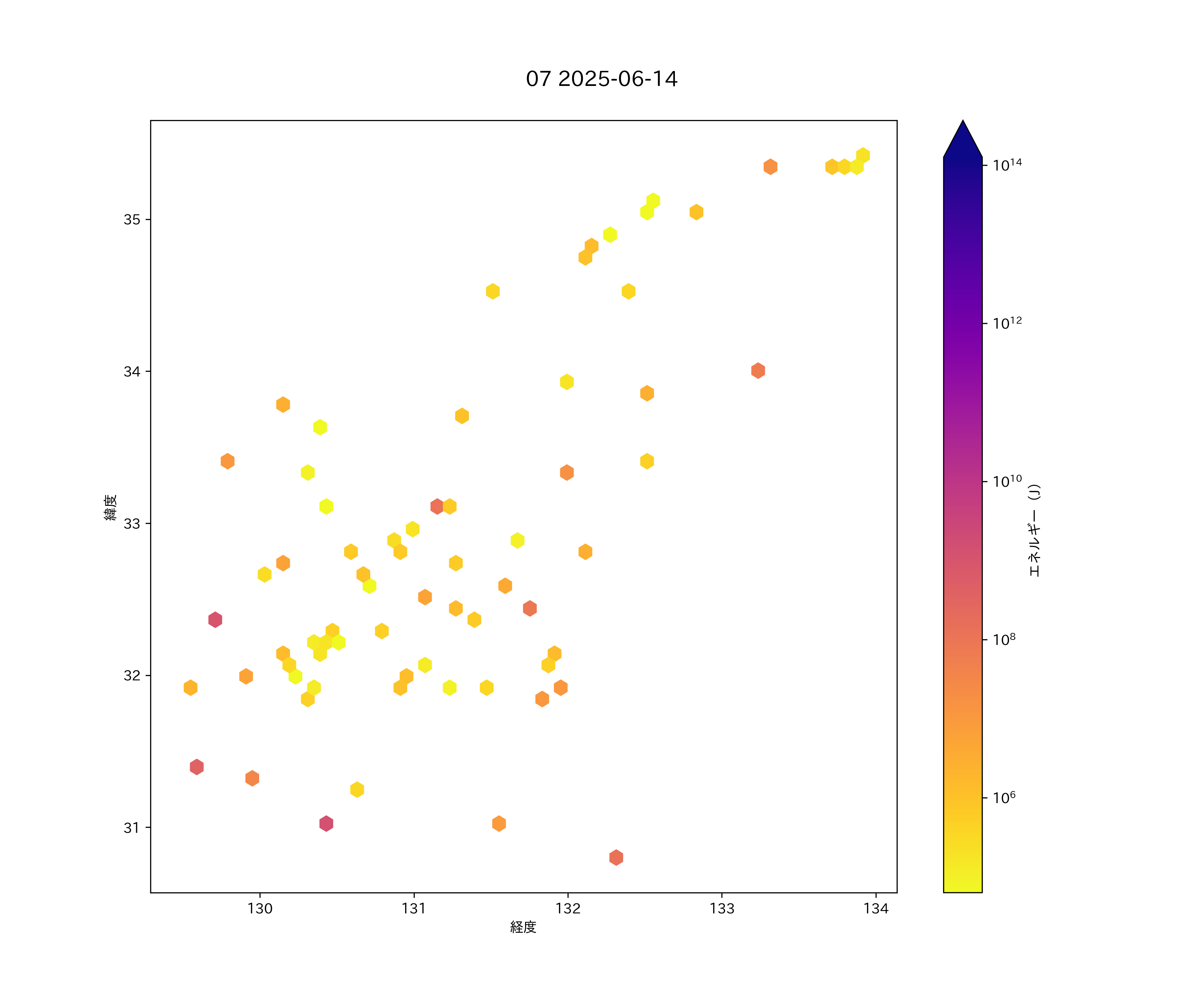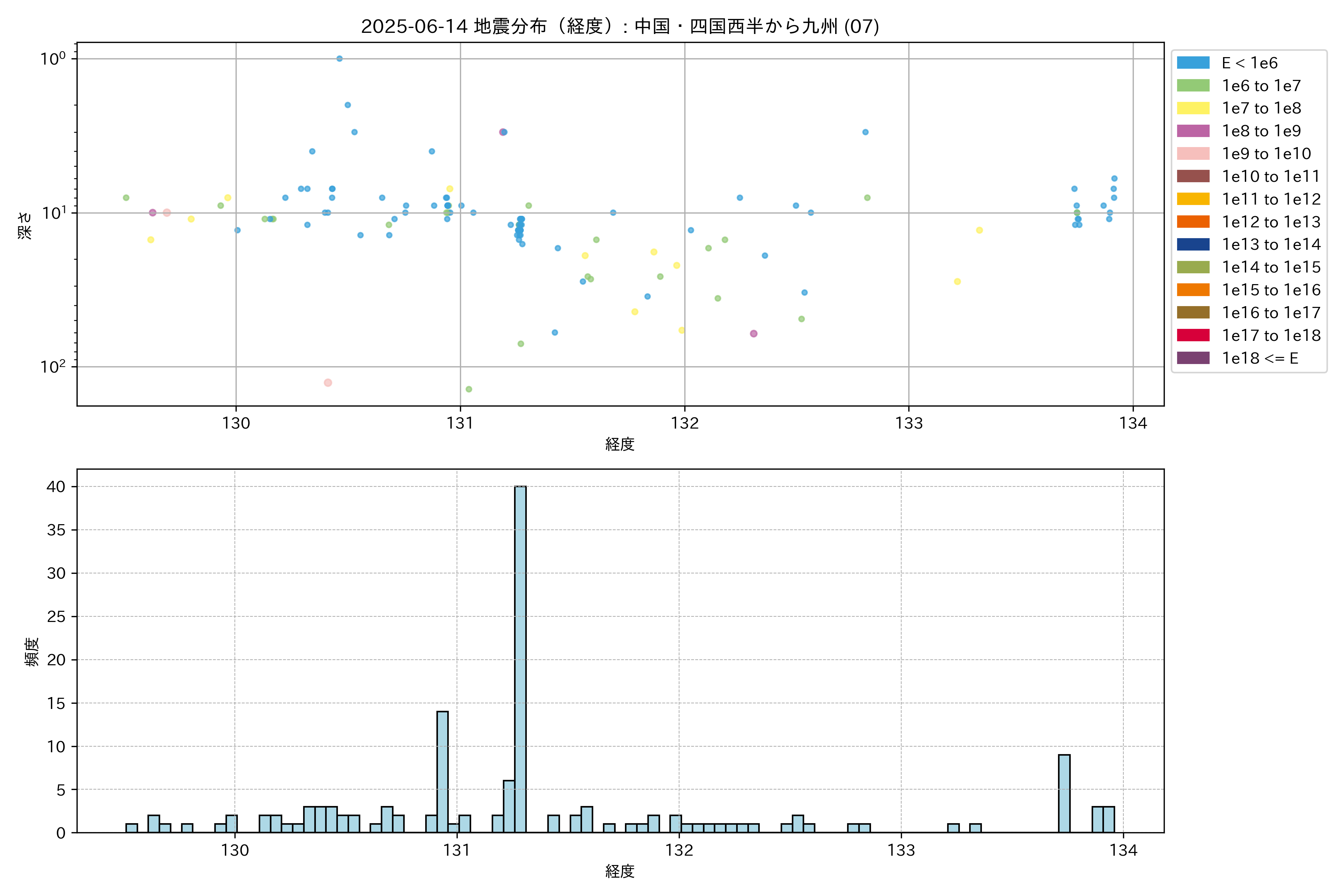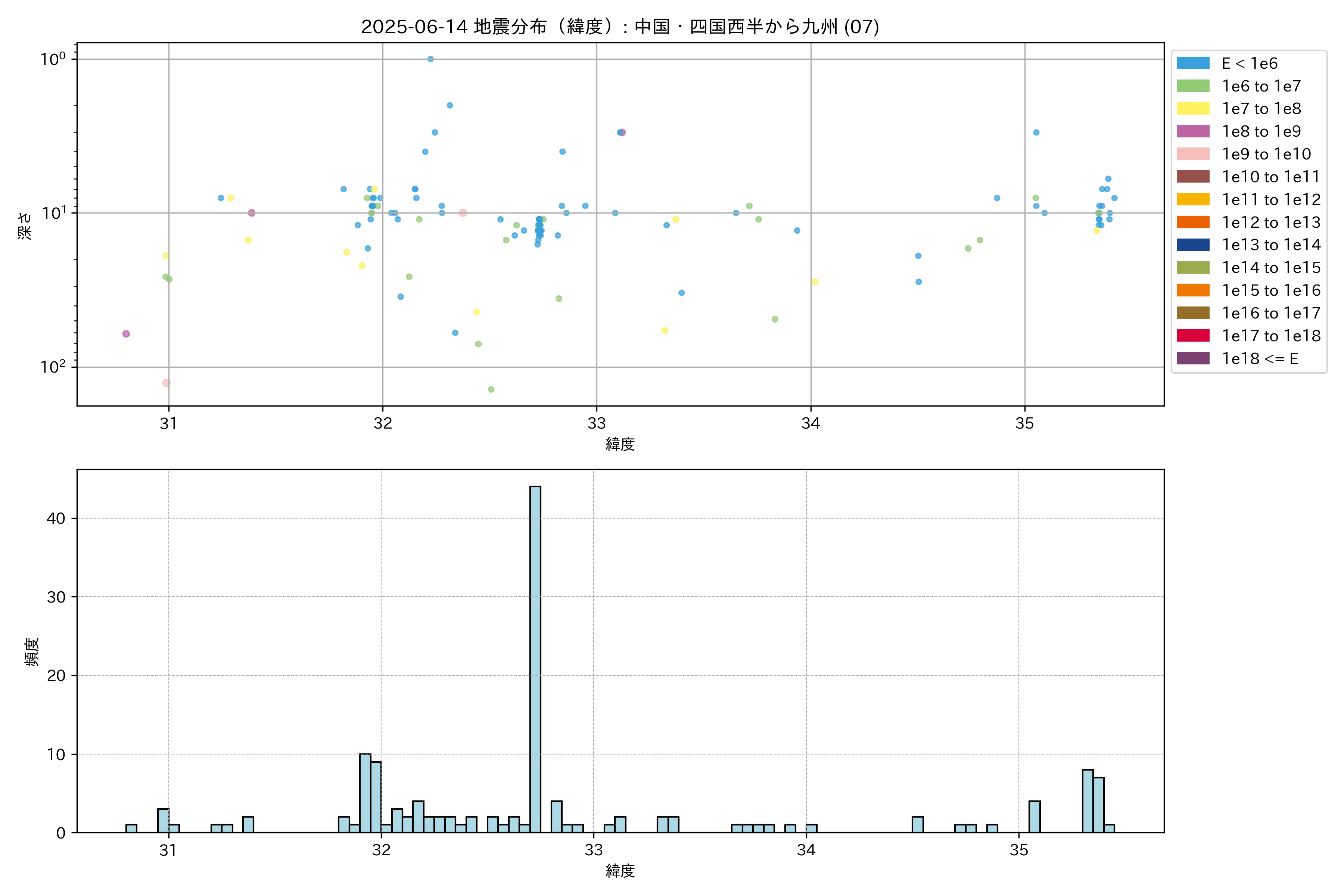 2025年06月14日 中国・四国西半から九州 エリア震源マップ