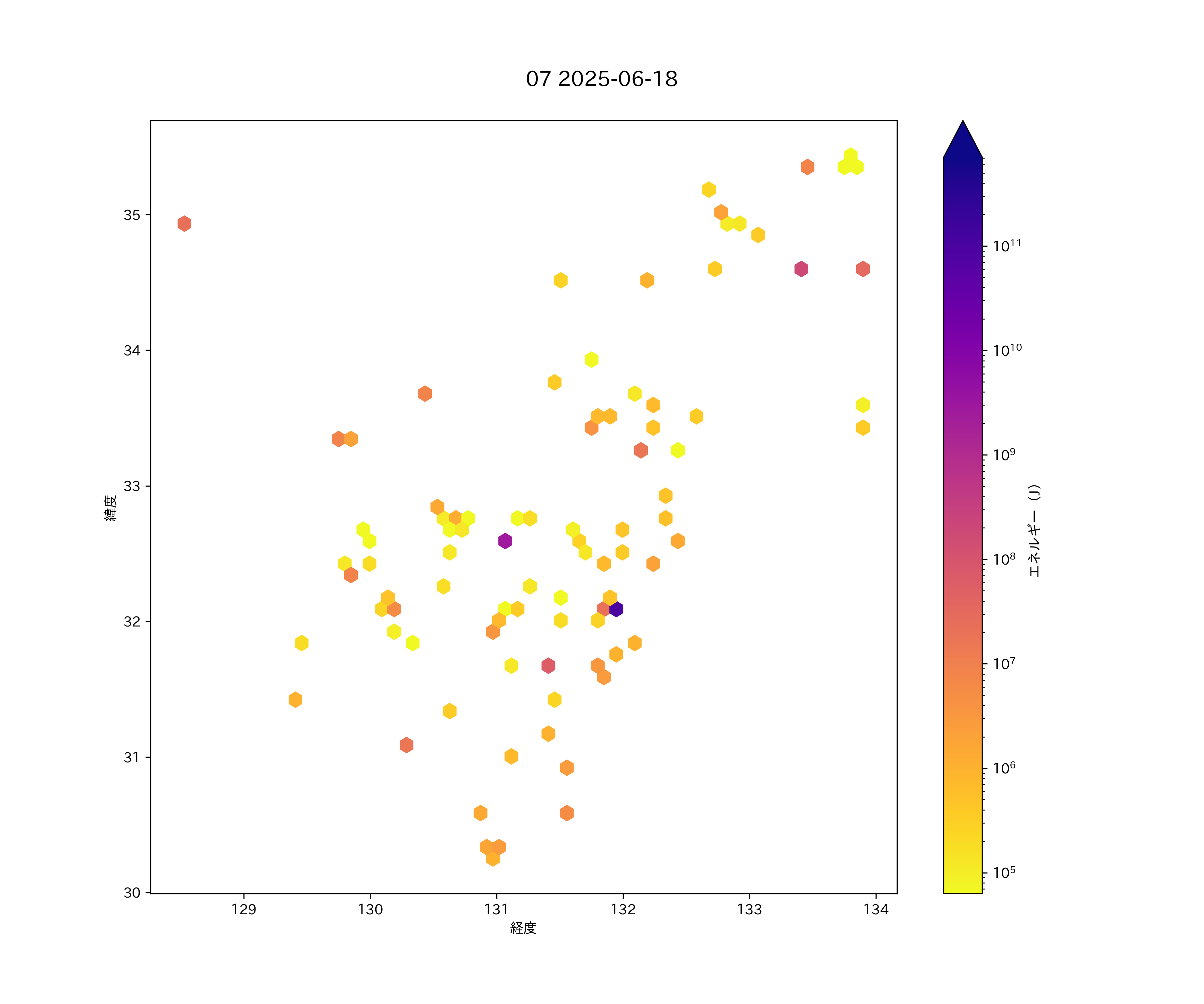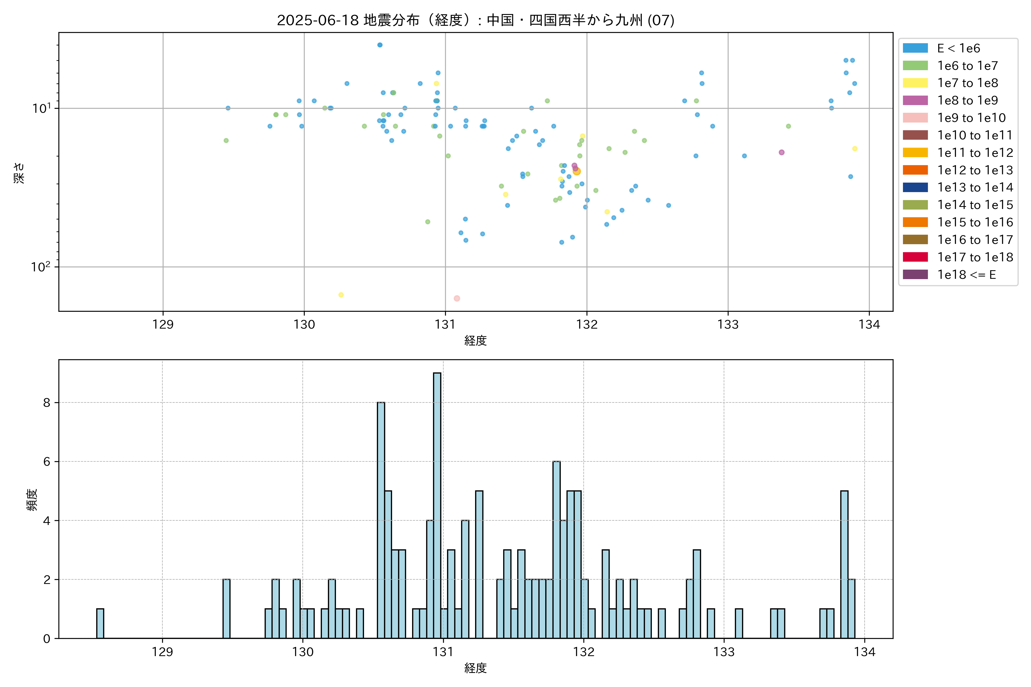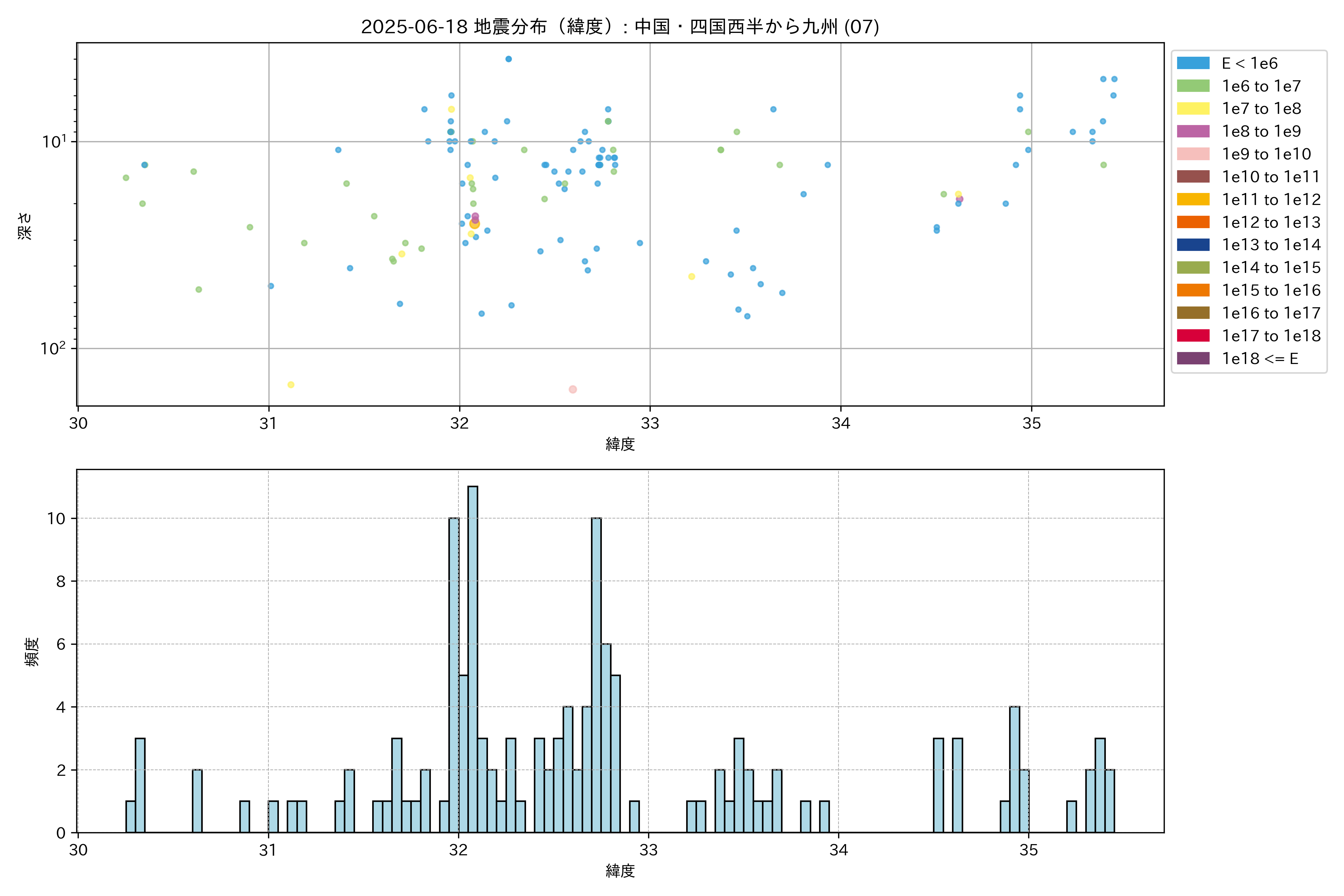 2025年06月18日 中国・四国西半から九州 エリア震源マップ