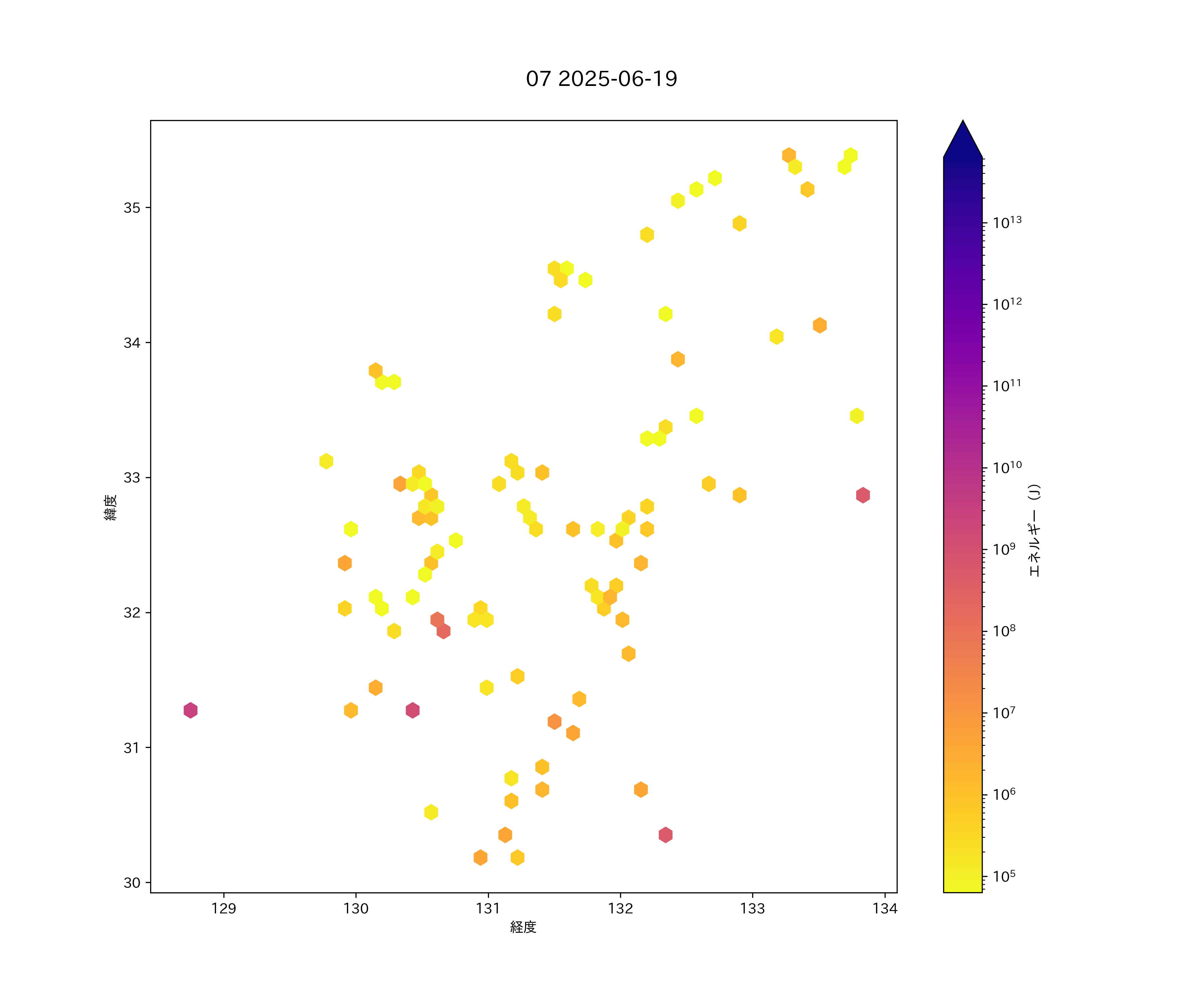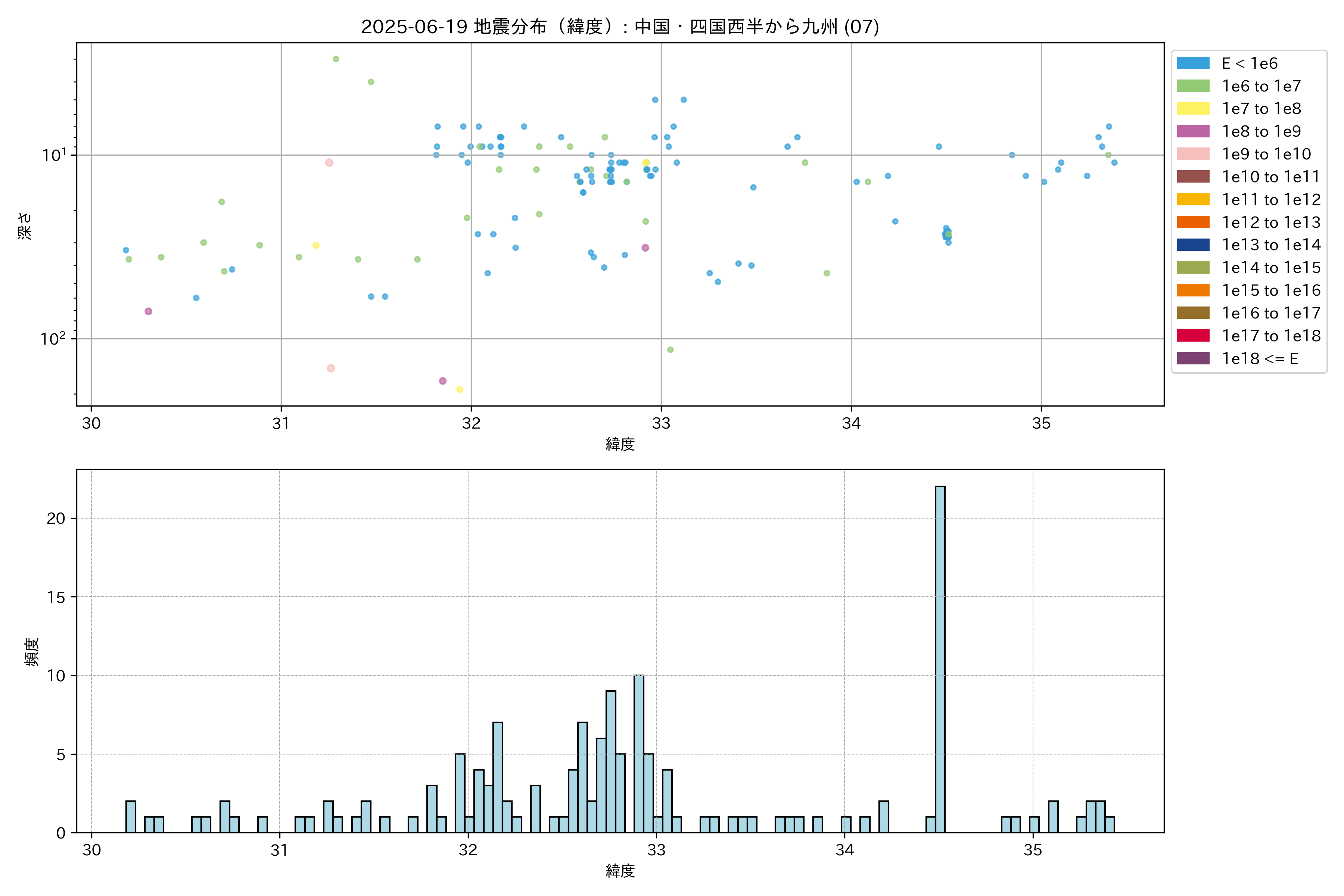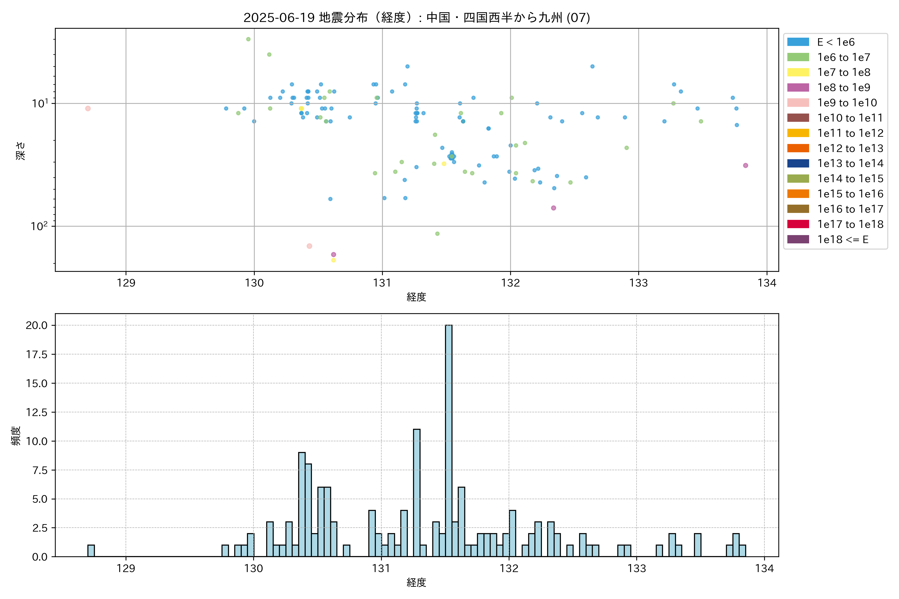 2025年06月19日 中国・四国西半から九州 エリア震源マップ