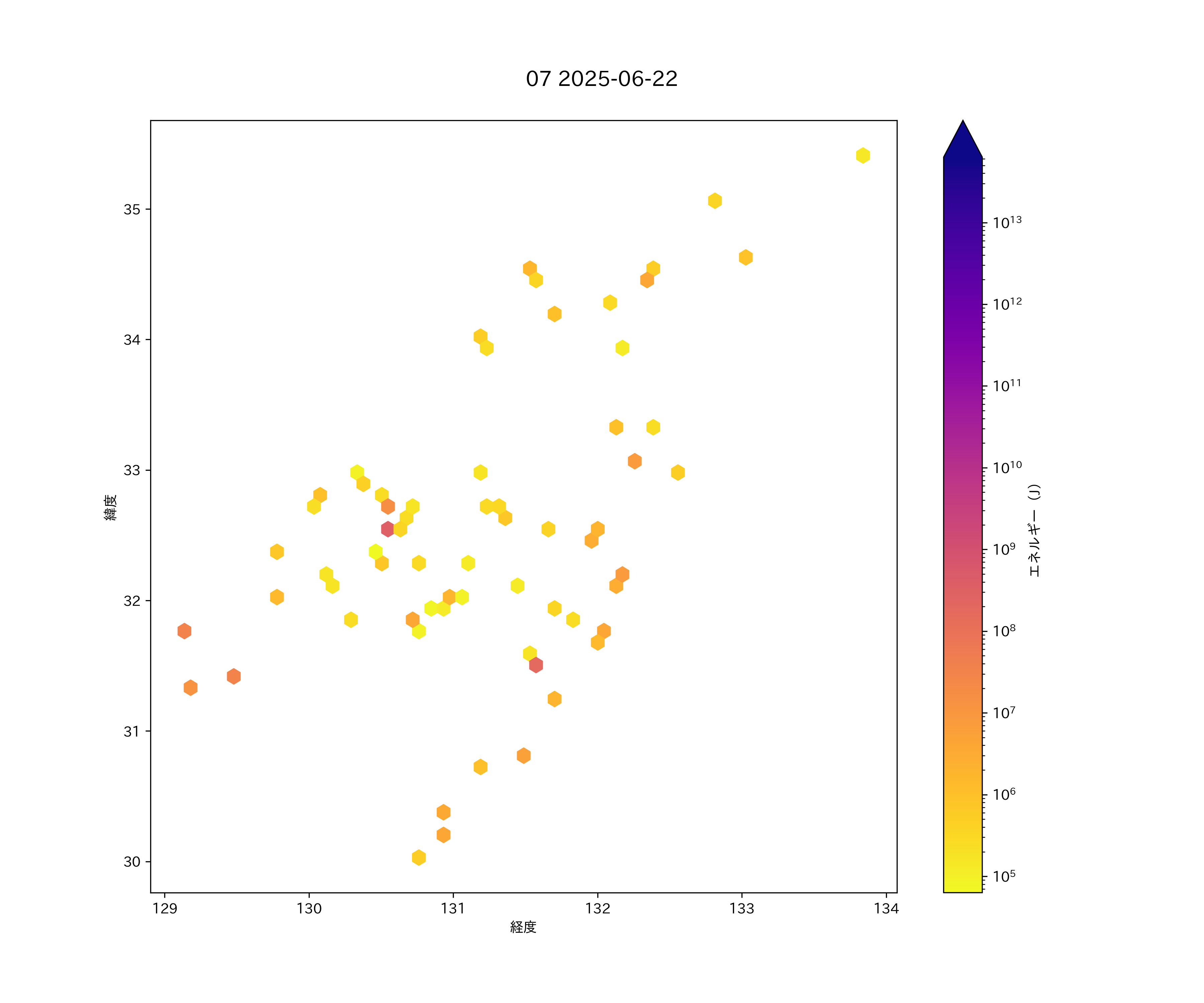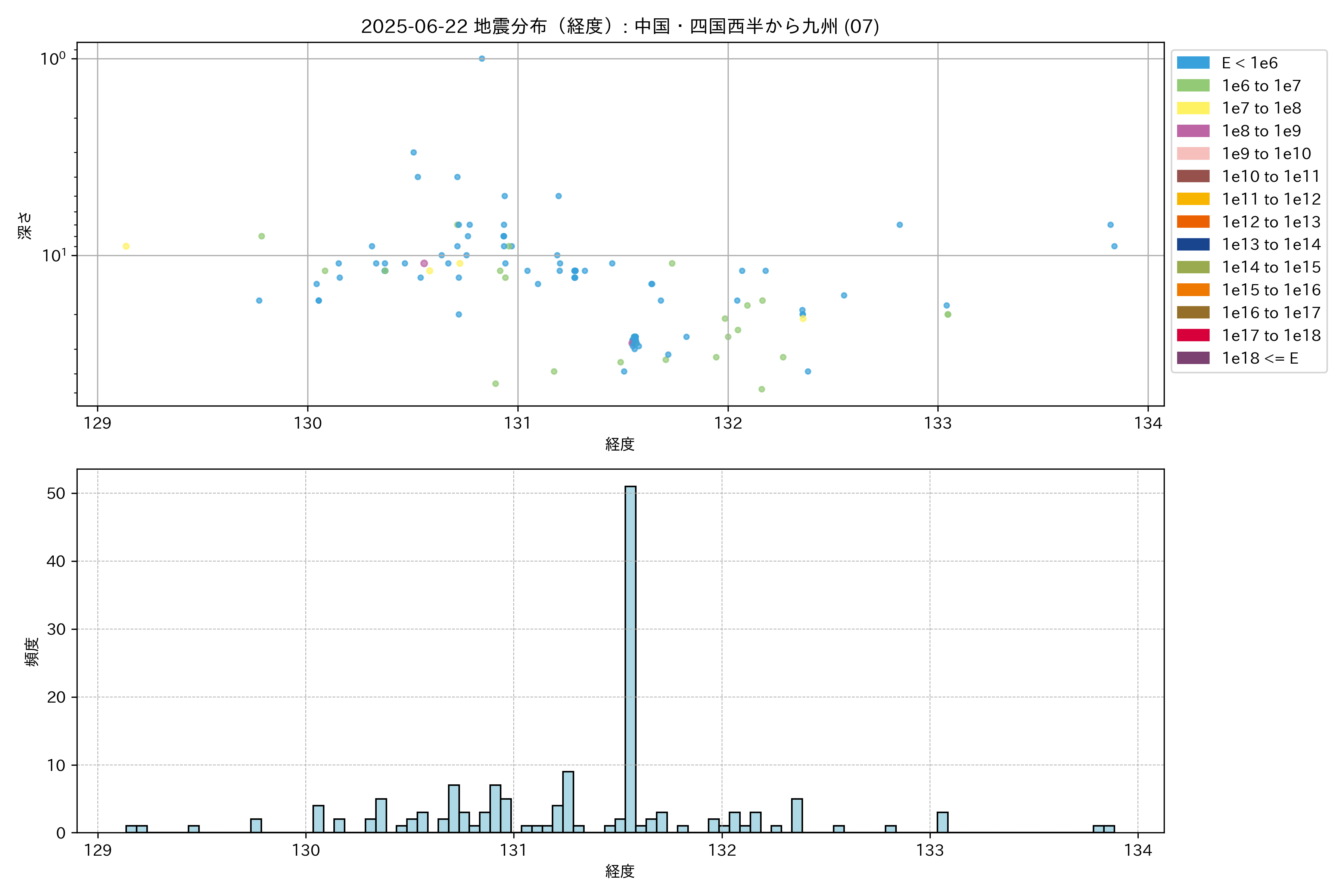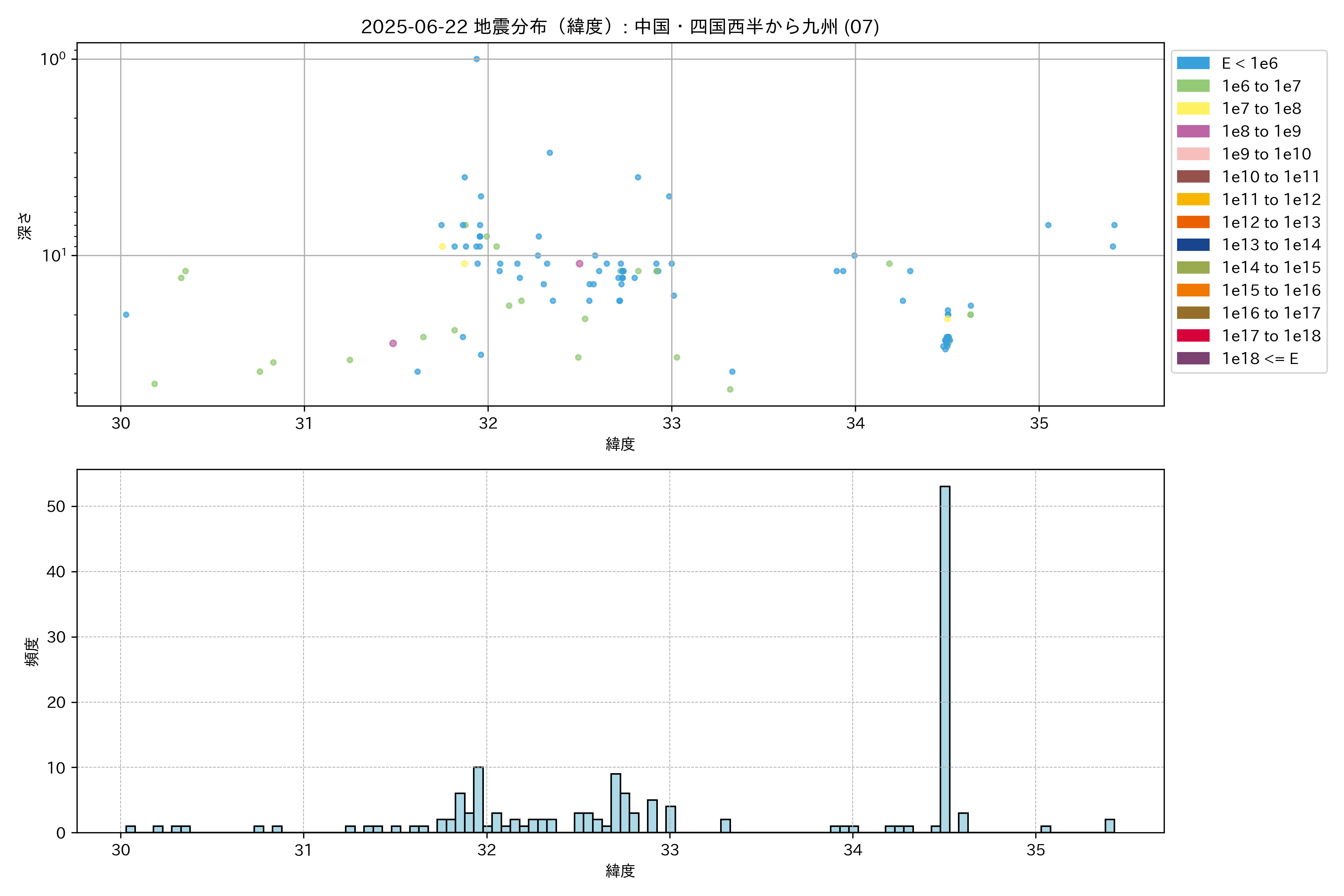 2025年06月22日 中国・四国西半から九州 エリア震源マップ