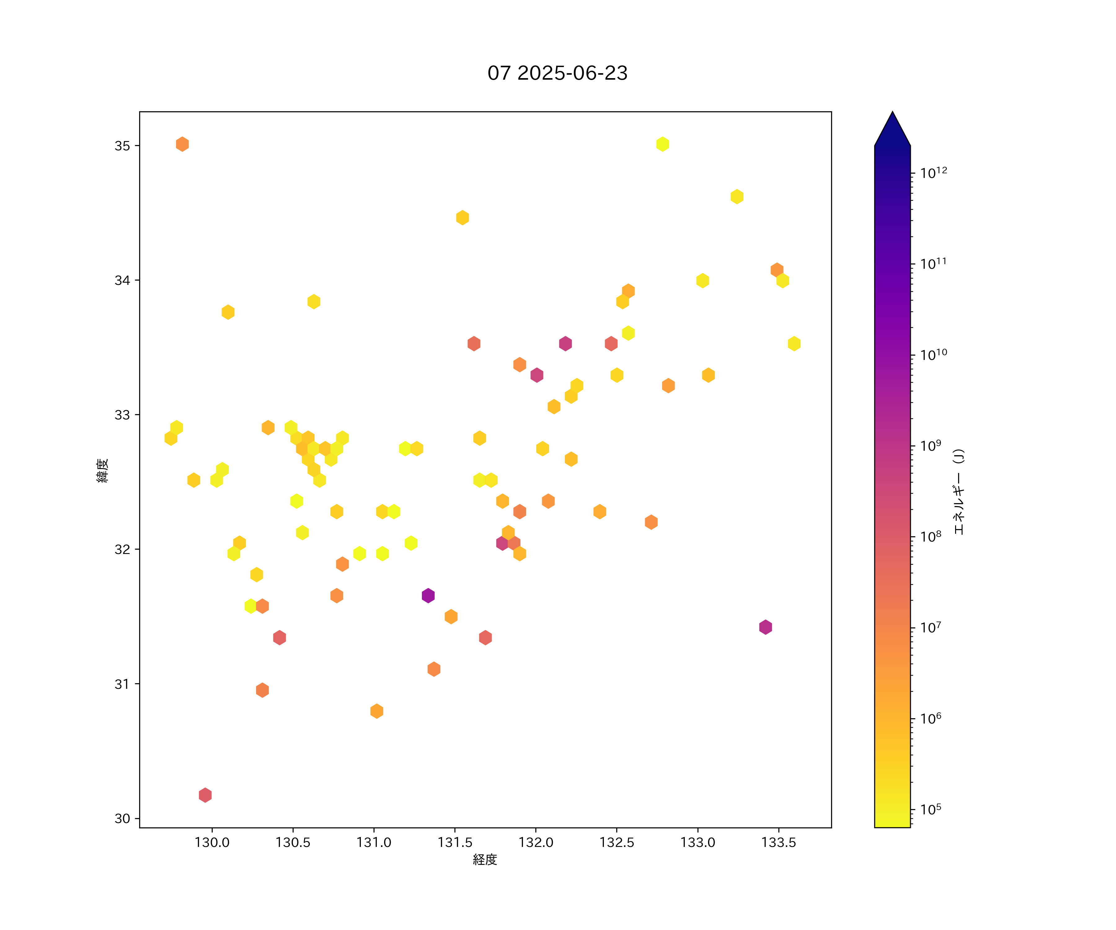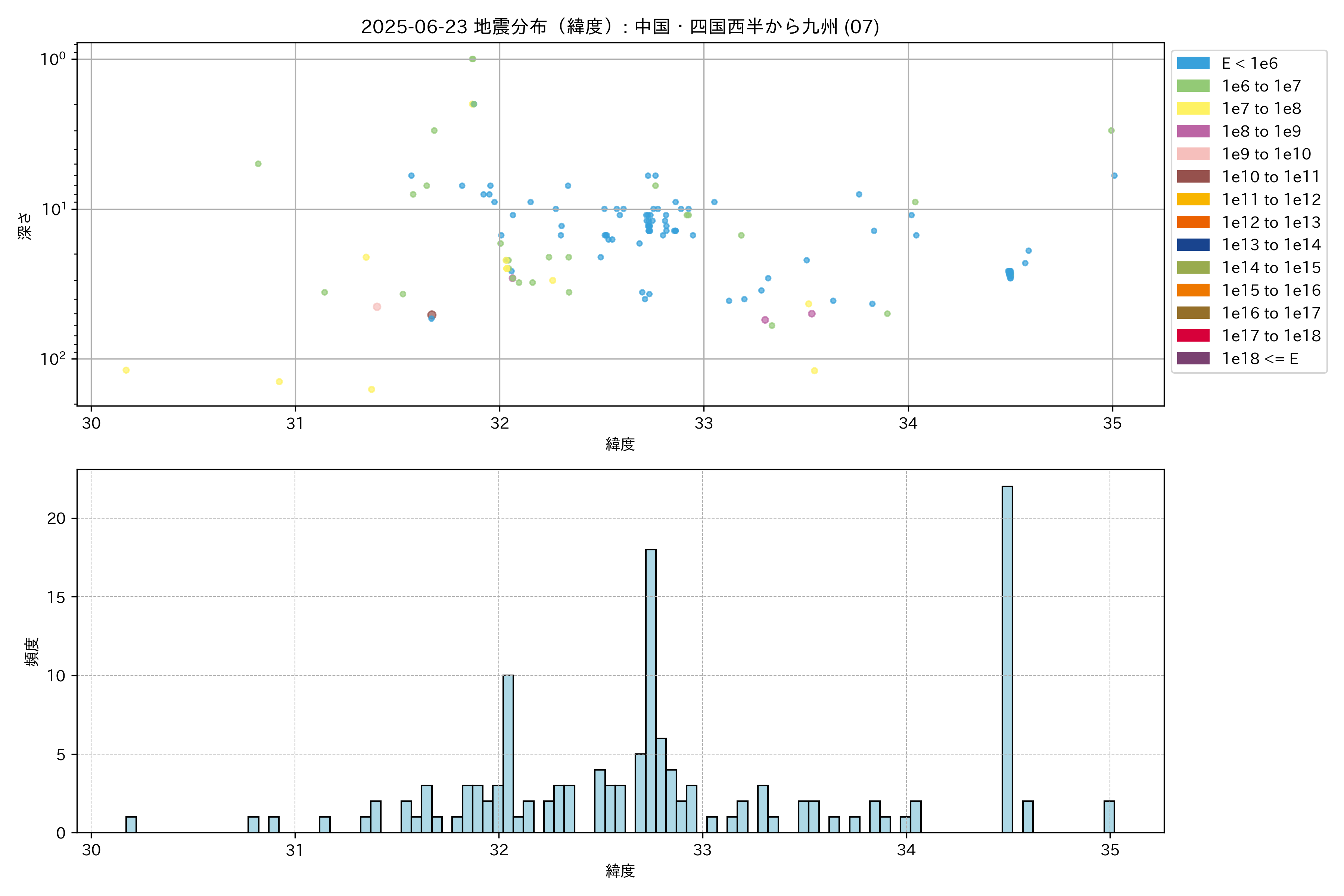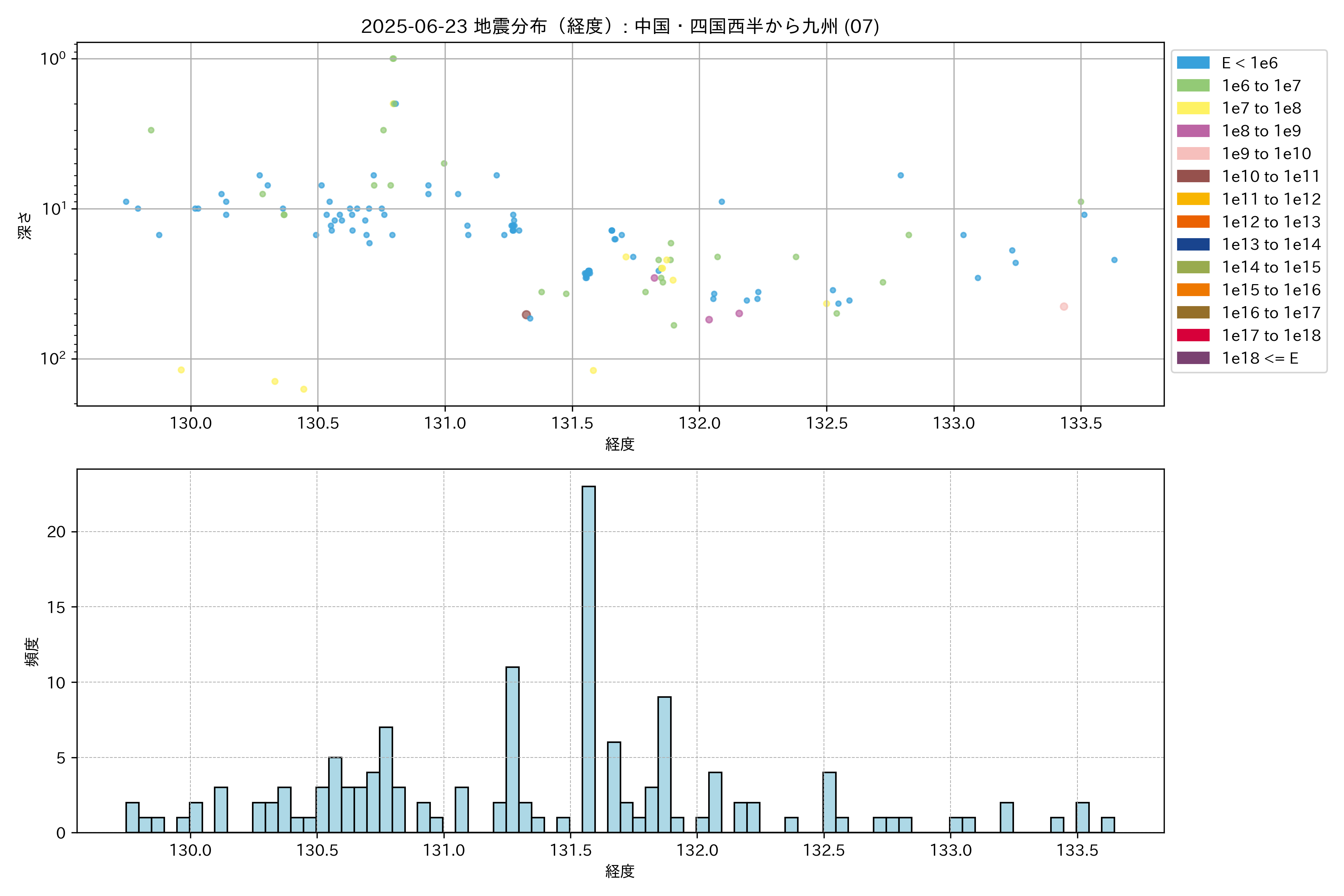 2025年06月23日 中国・四国西半から九州 エリア震源マップ