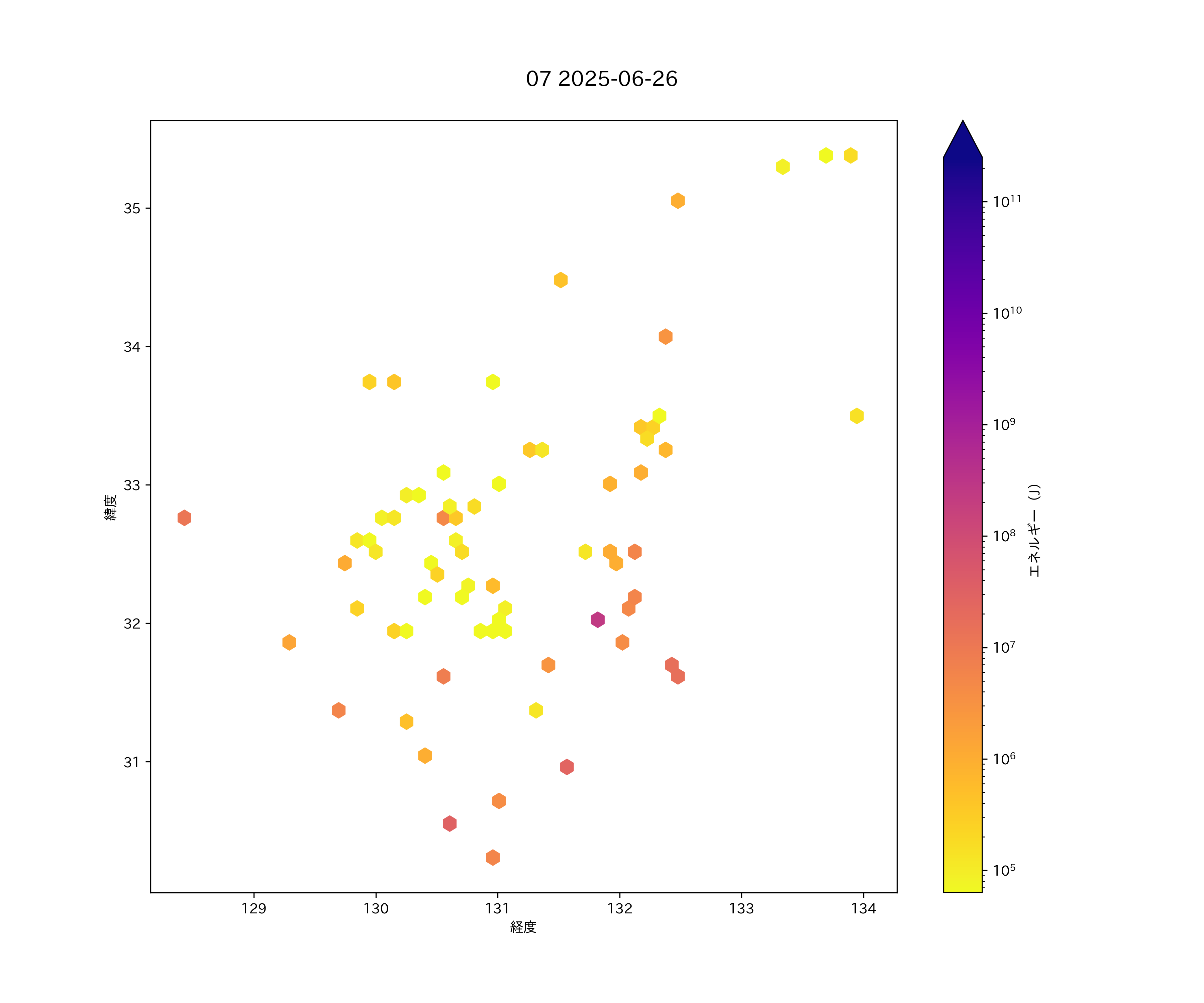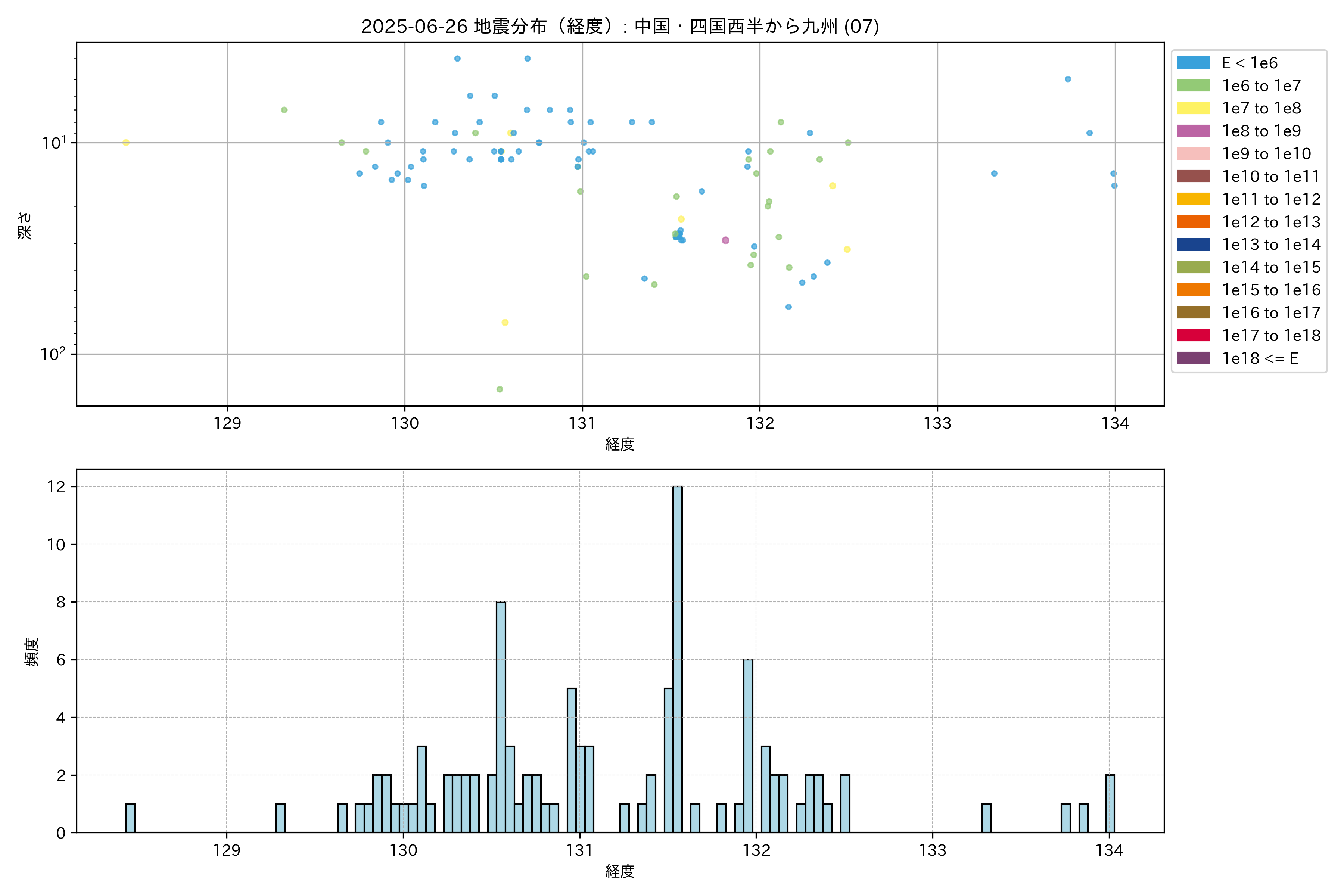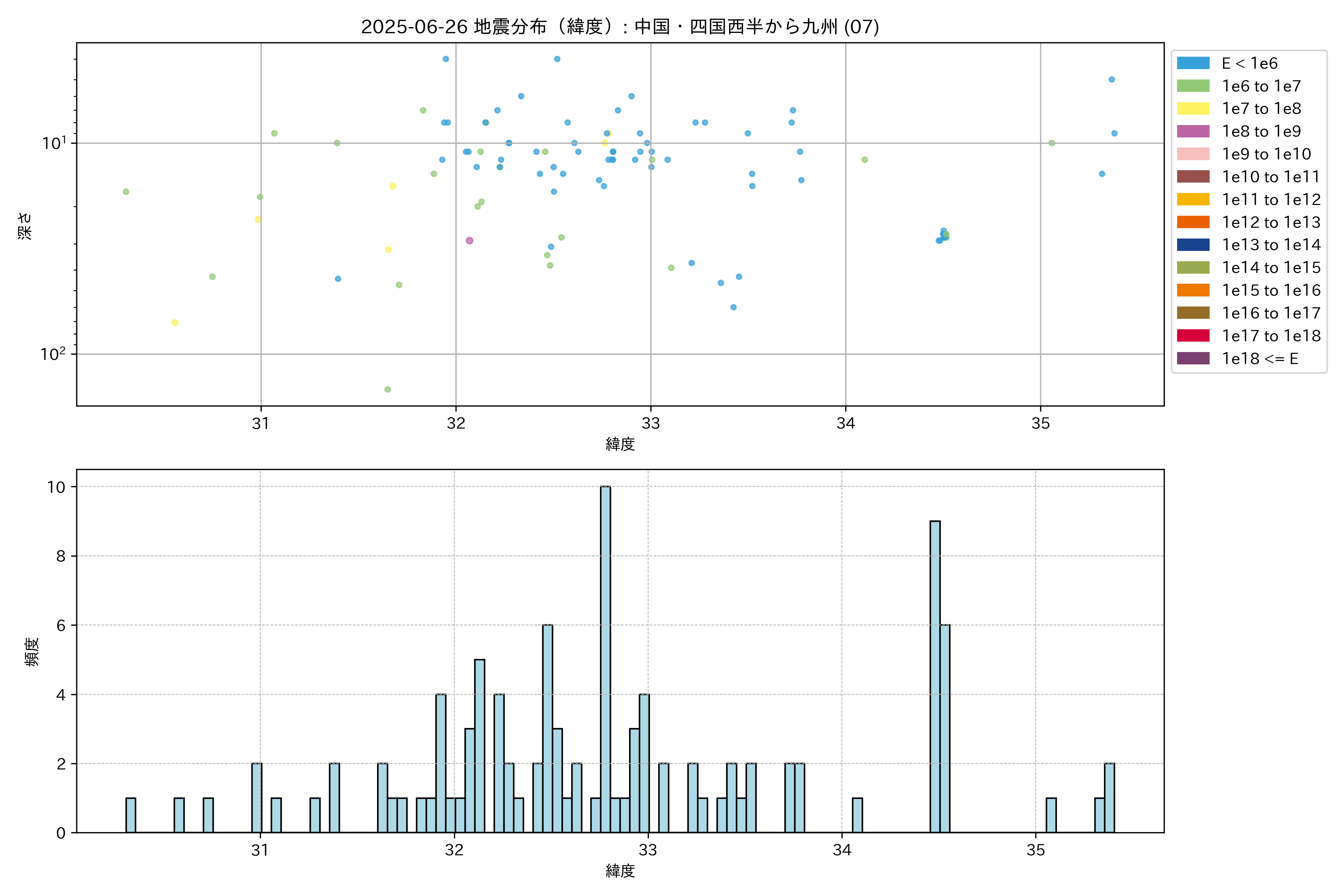 2025年06月26日 中国・四国西半から九州 エリア震源マップ