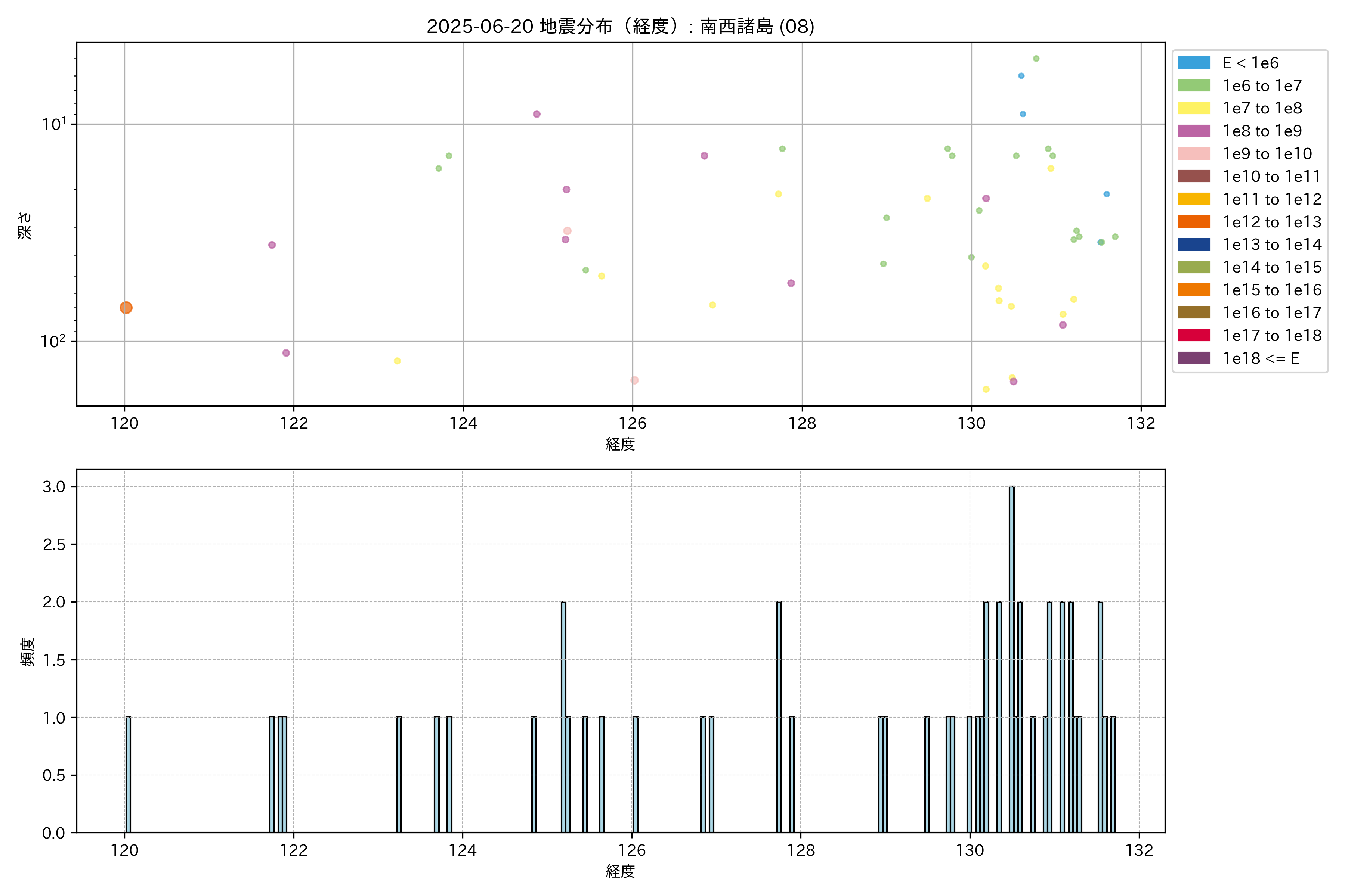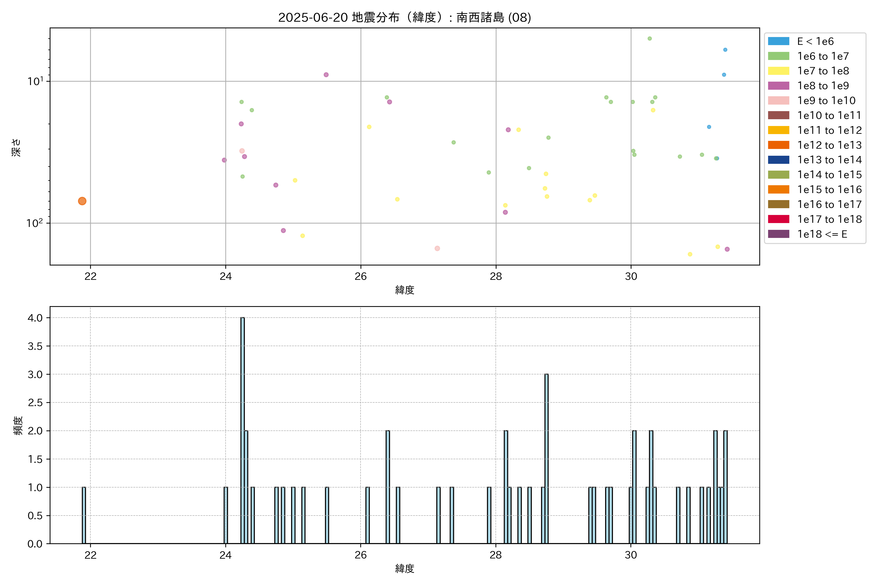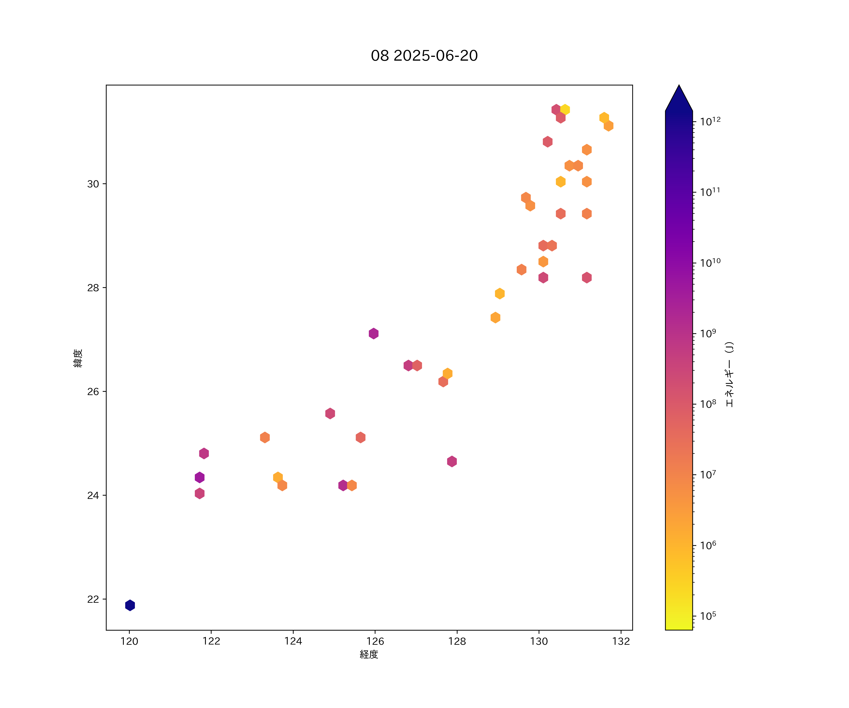 2025年06月20日 南西諸島 エリア震源マップ