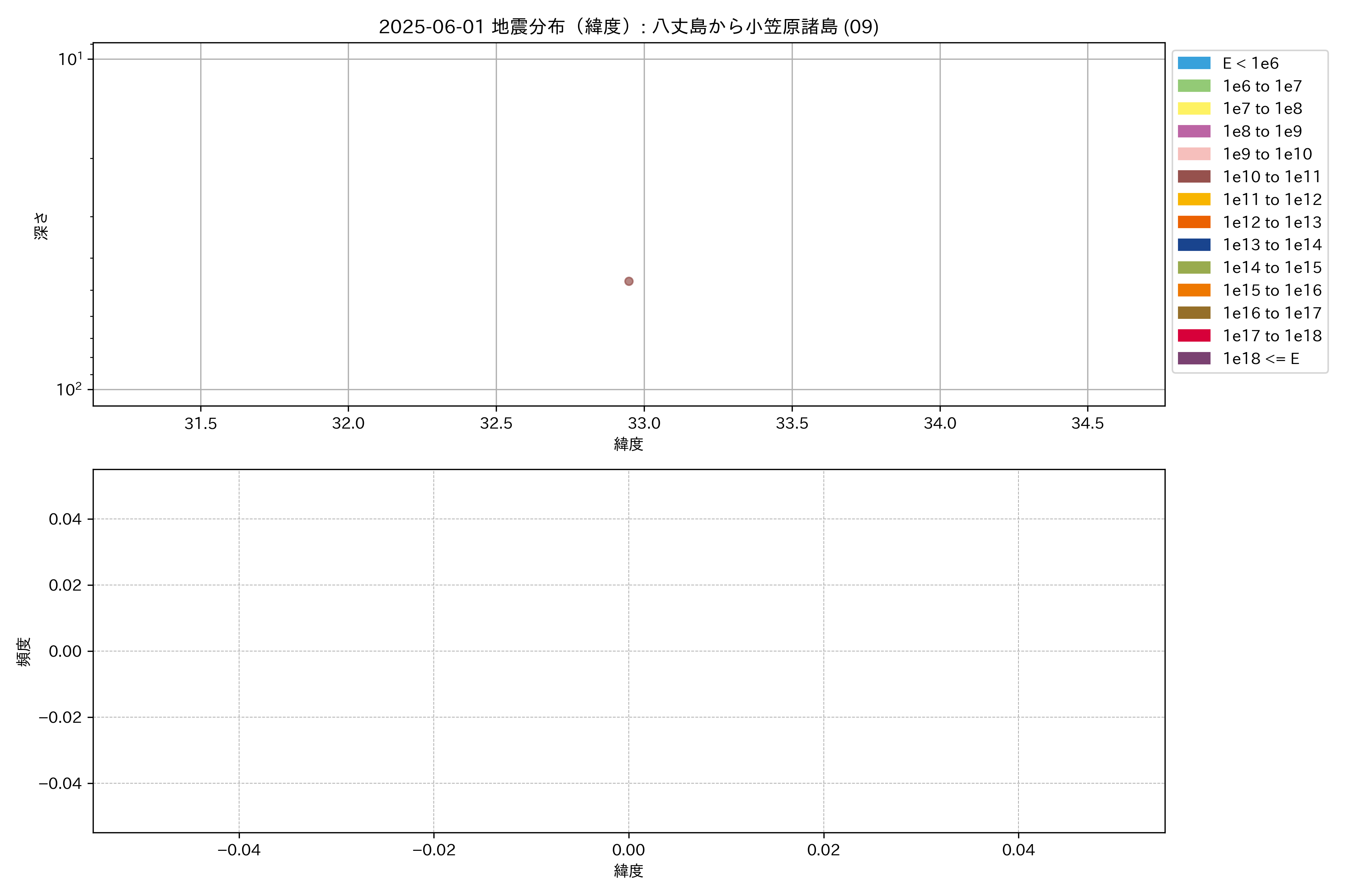 2025年06月01日 八丈島から小笠原諸島 エリア震源マップ