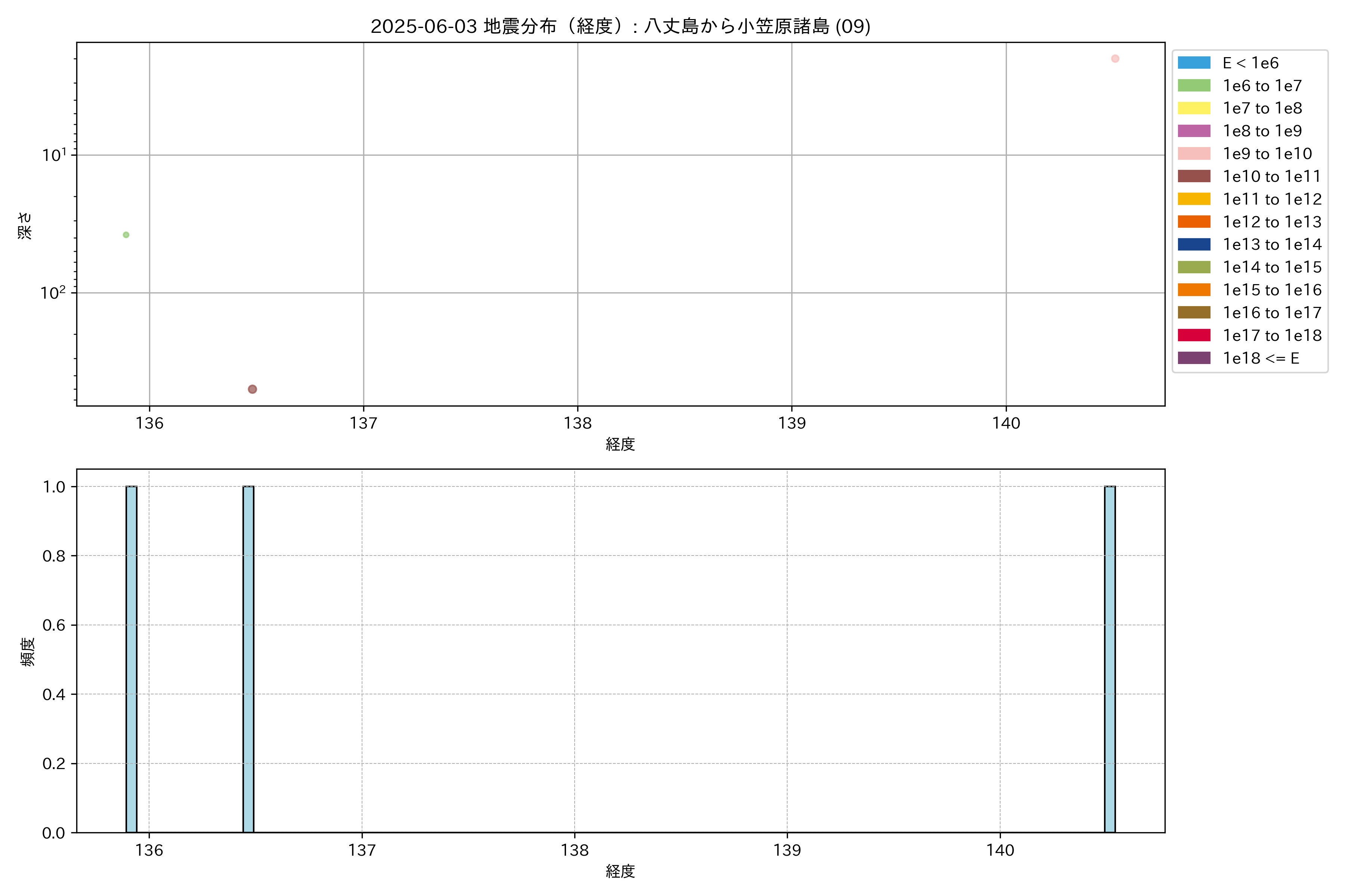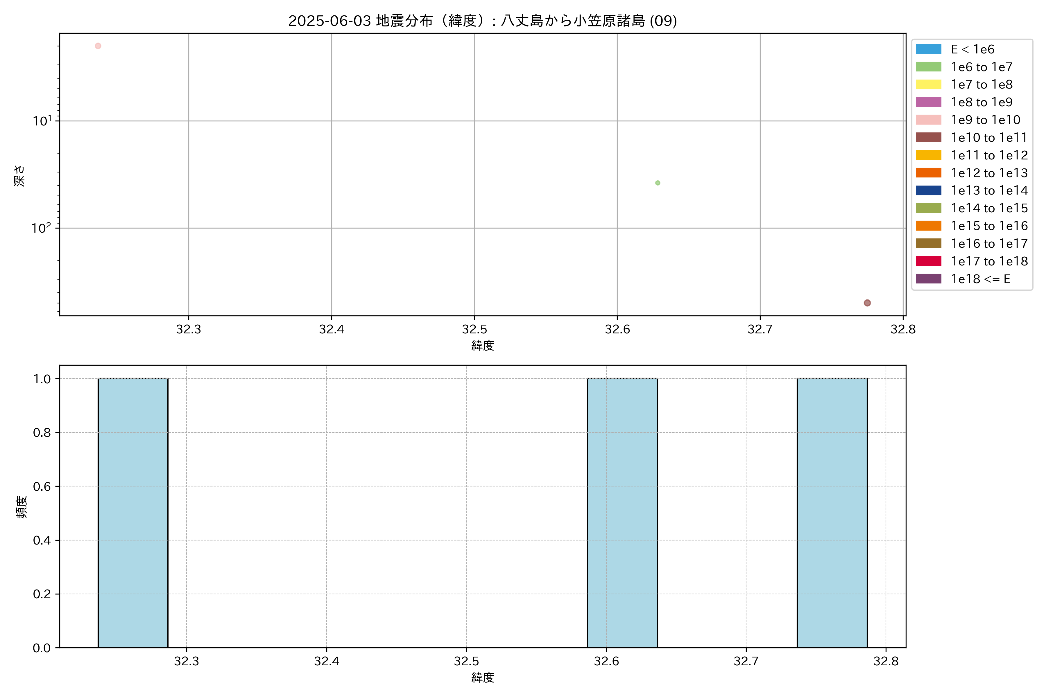 2025年06月03日 八丈島から小笠原諸島 エリア震源マップ