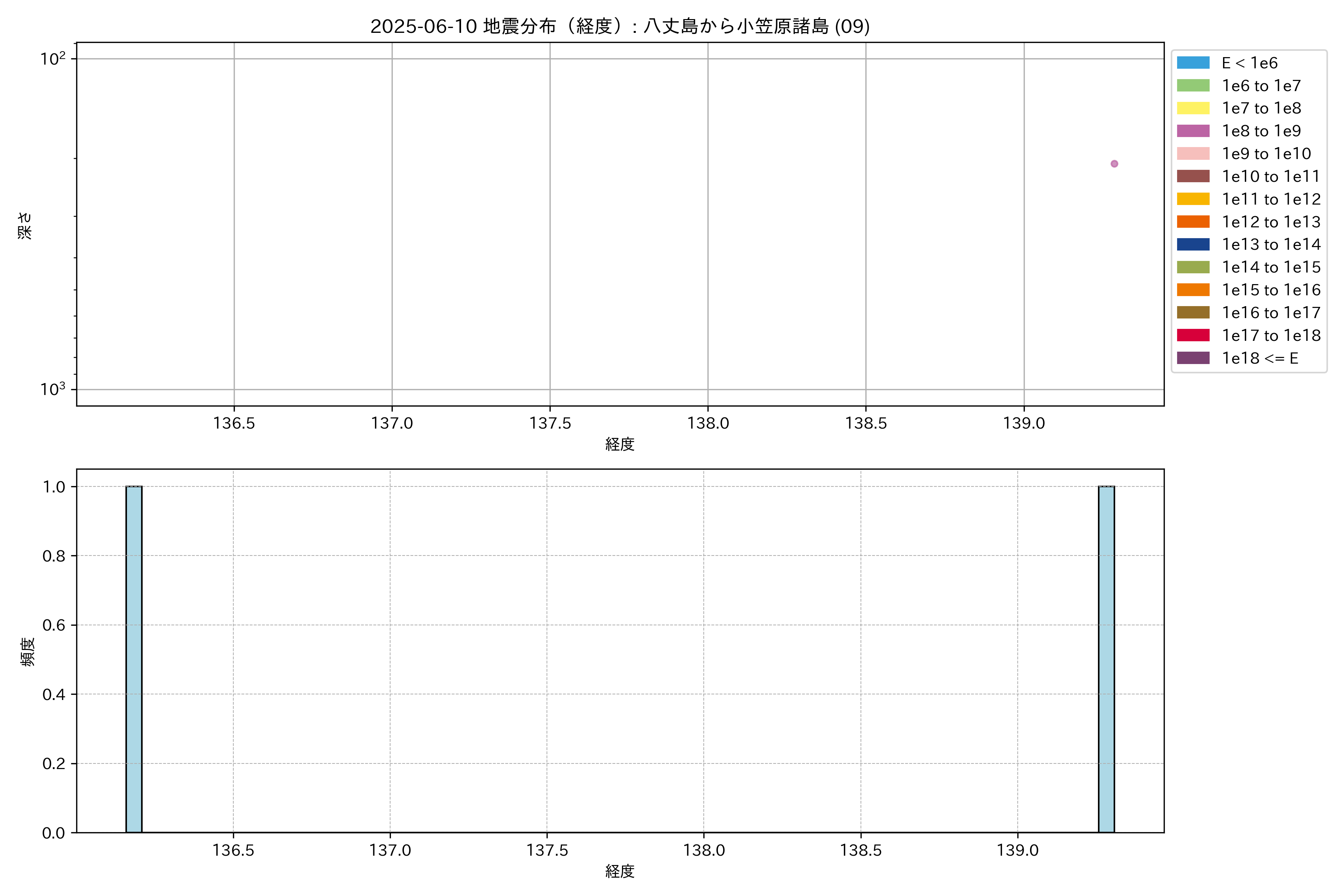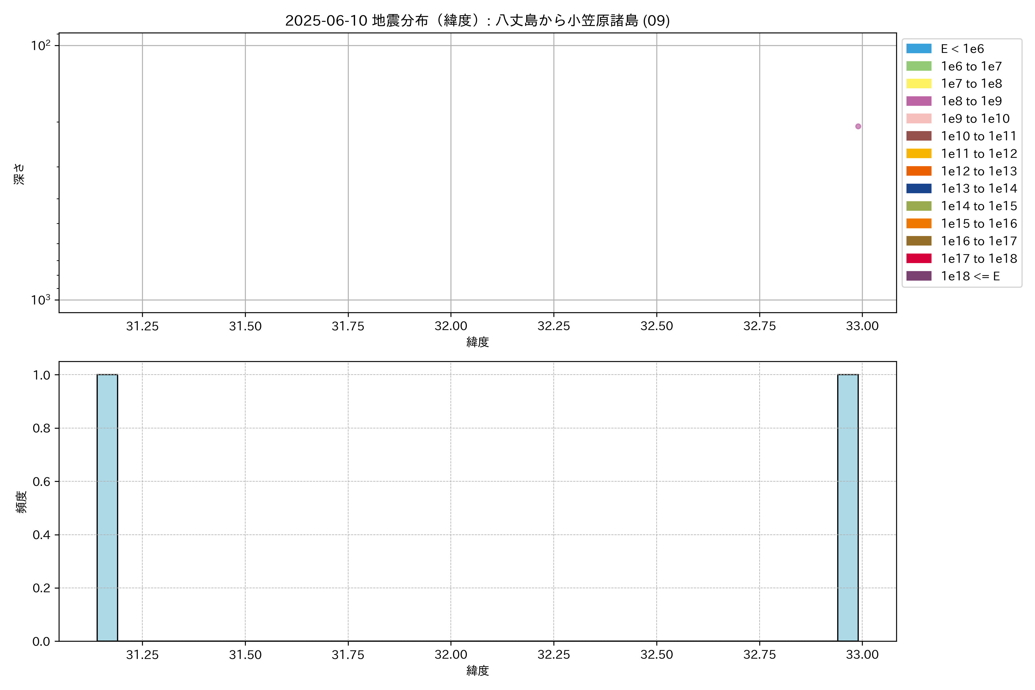 2025年06月10日 八丈島から小笠原諸島 エリア震源マップ