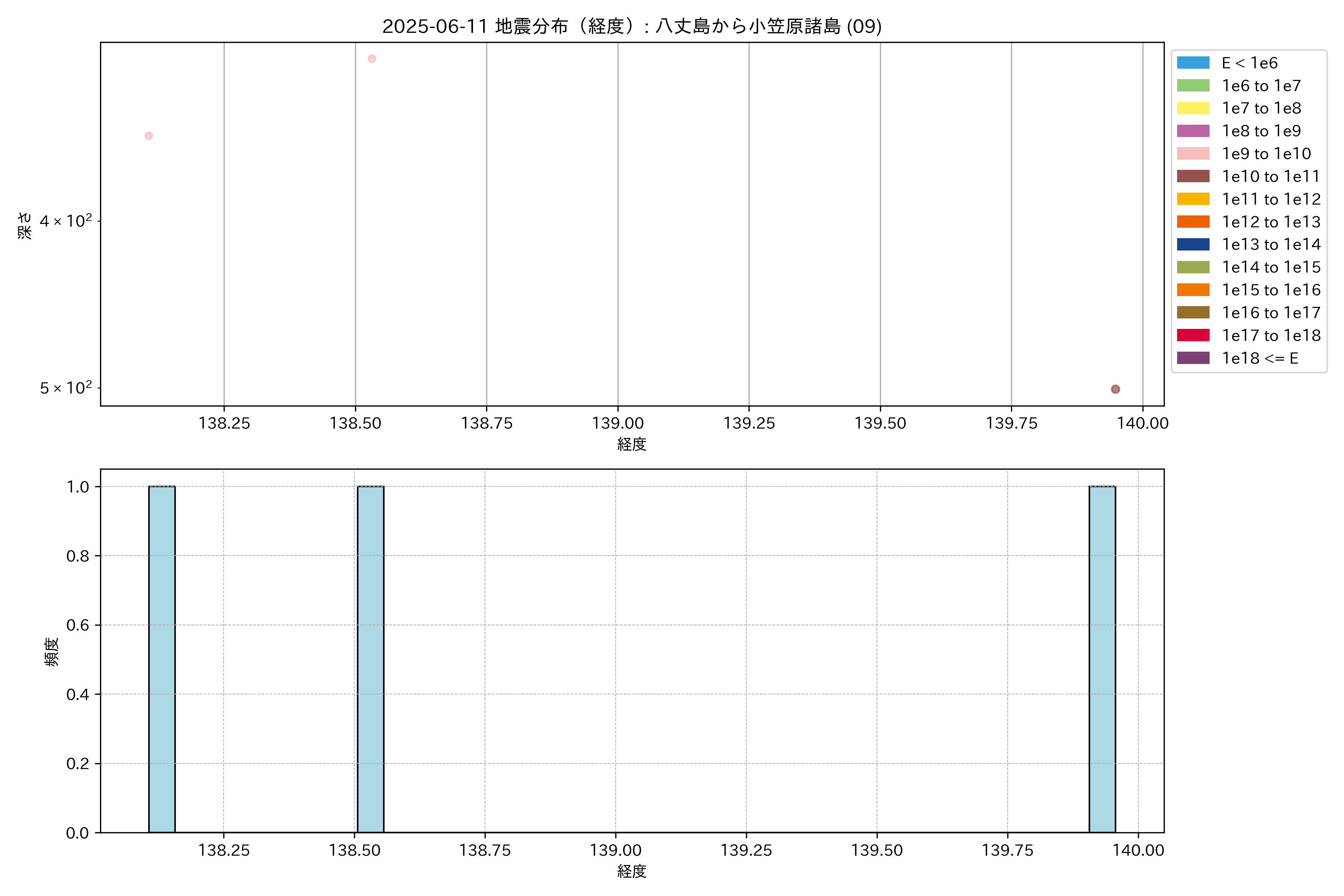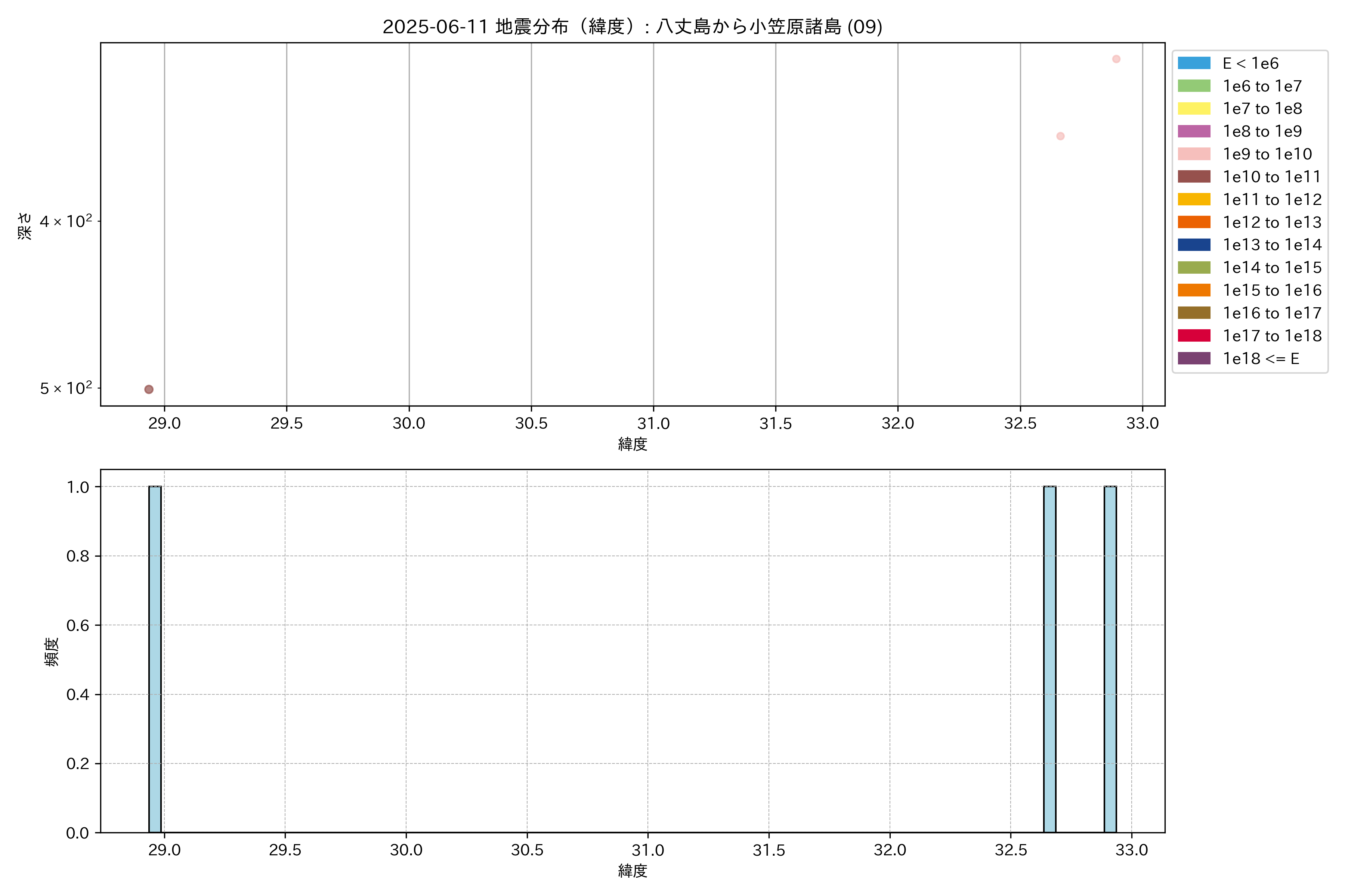 2025年06月11日 八丈島から小笠原諸島 エリア震源マップ