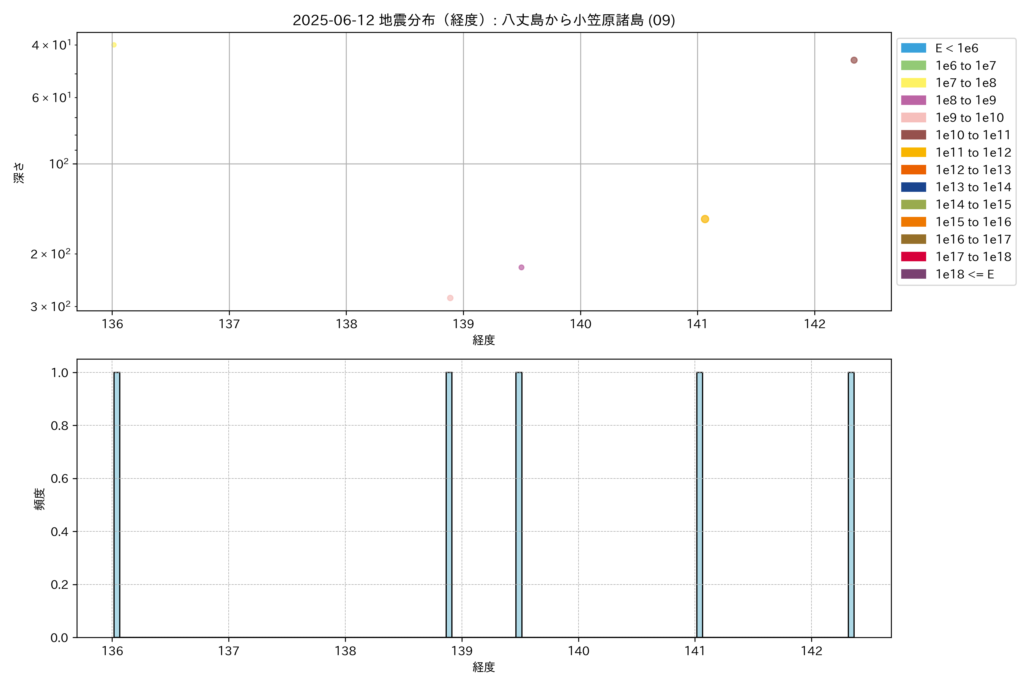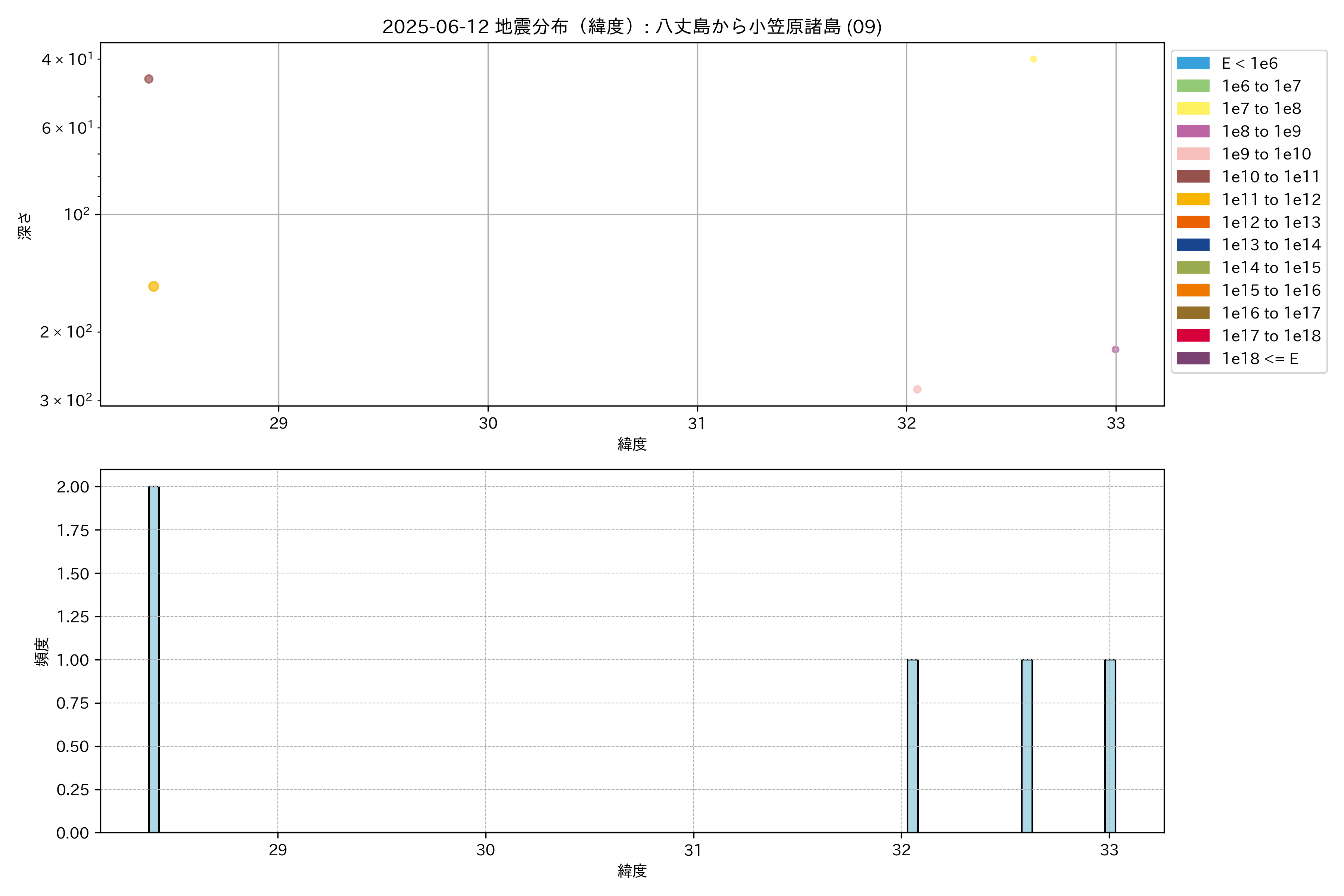 2025年06月12日 八丈島から小笠原諸島 エリア震源マップ
