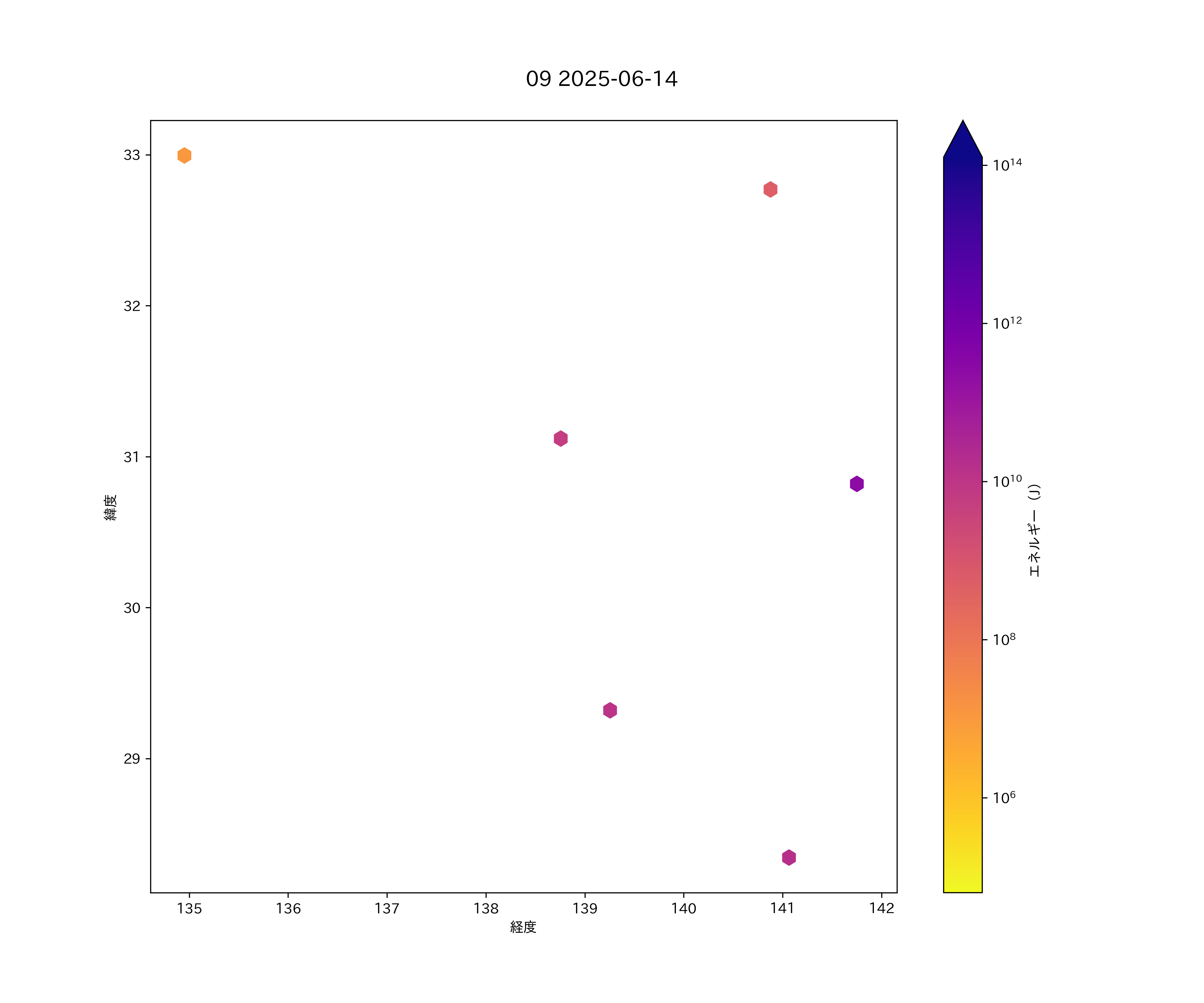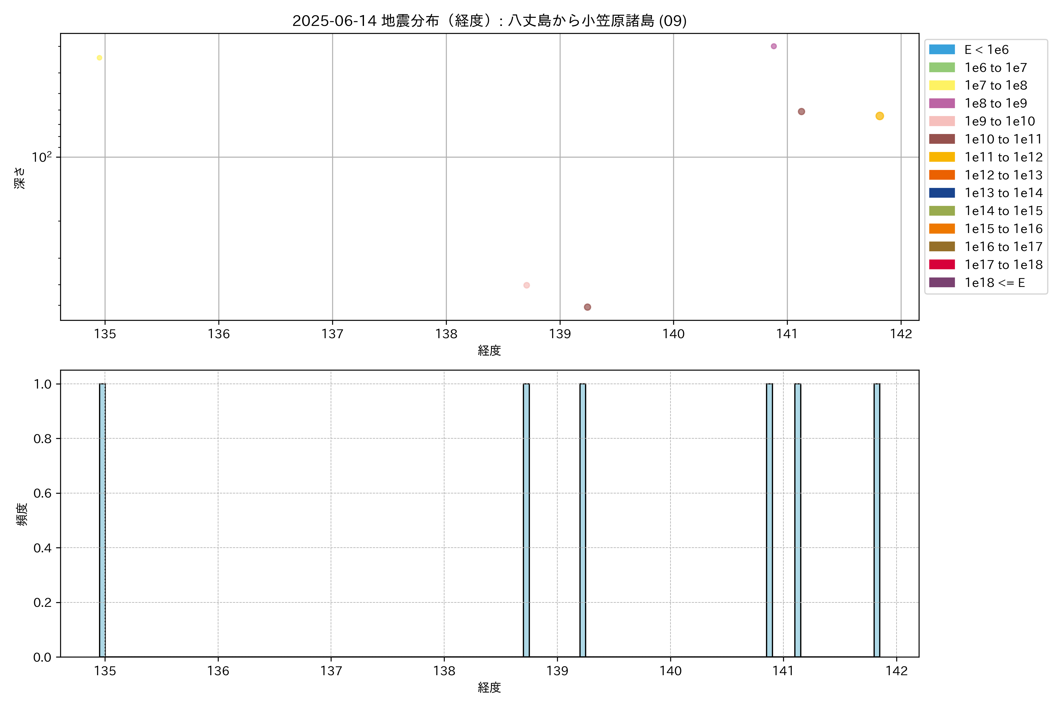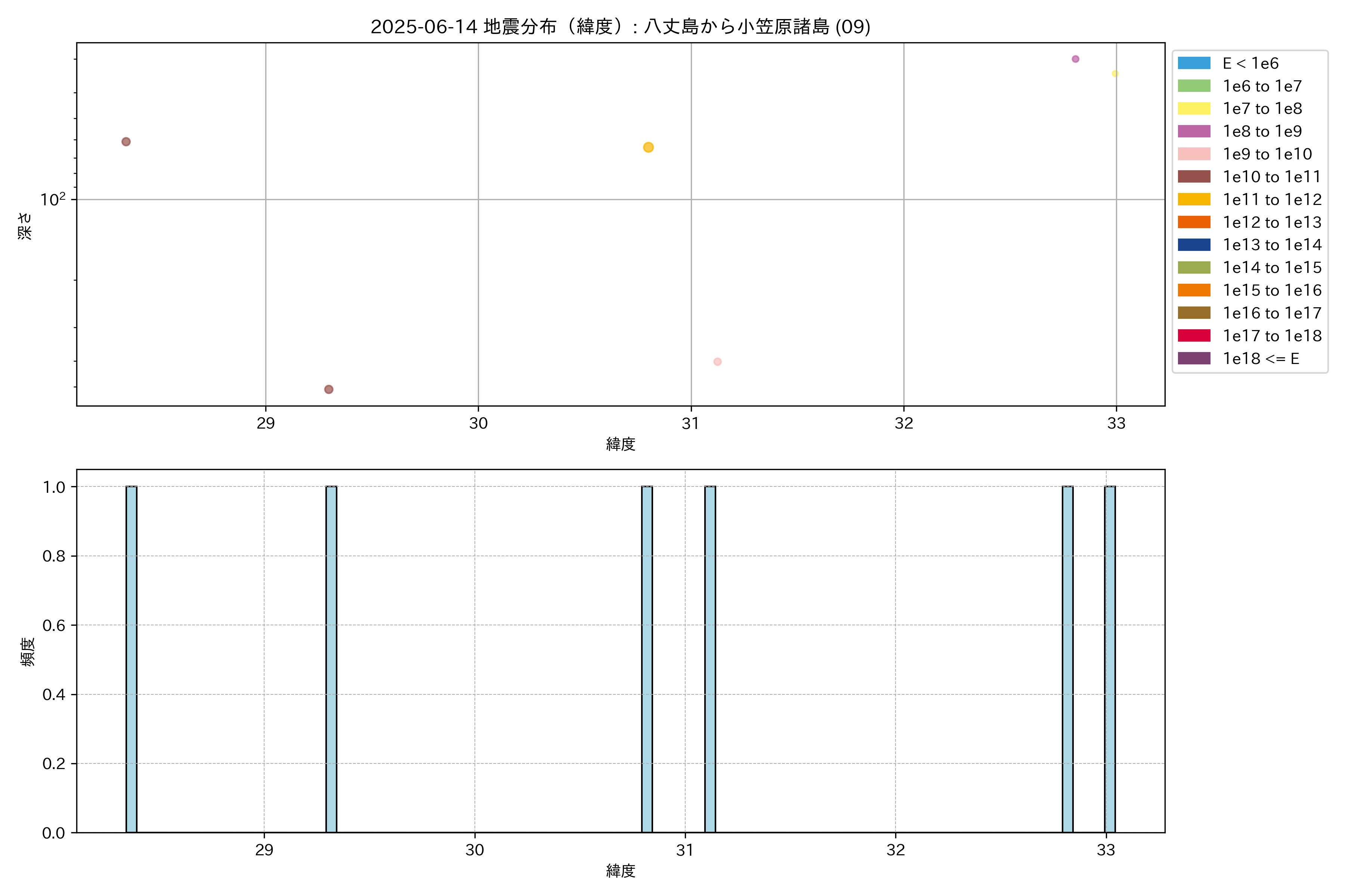 2025年06月14日 八丈島から小笠原諸島 エリア震源マップ
