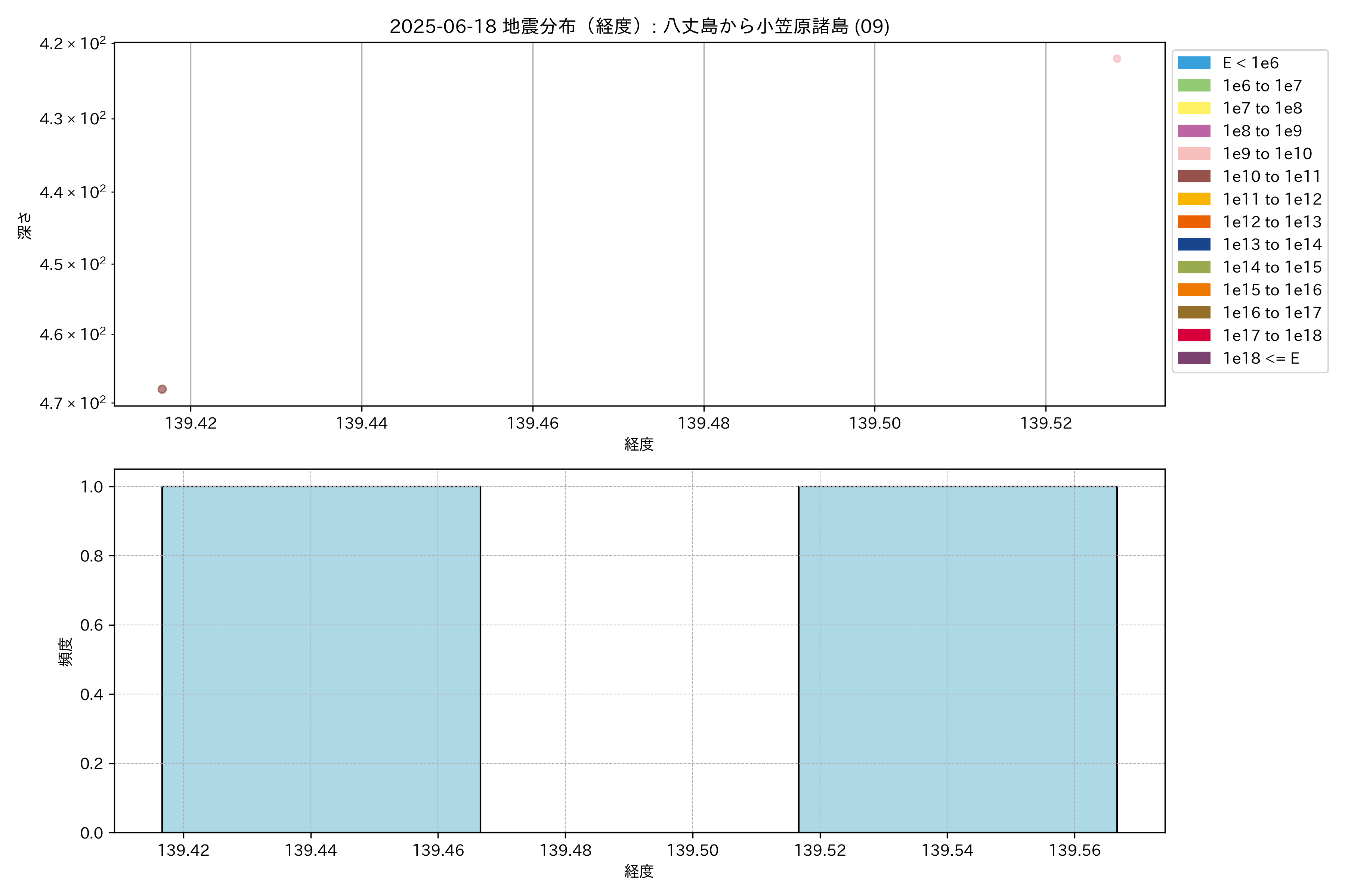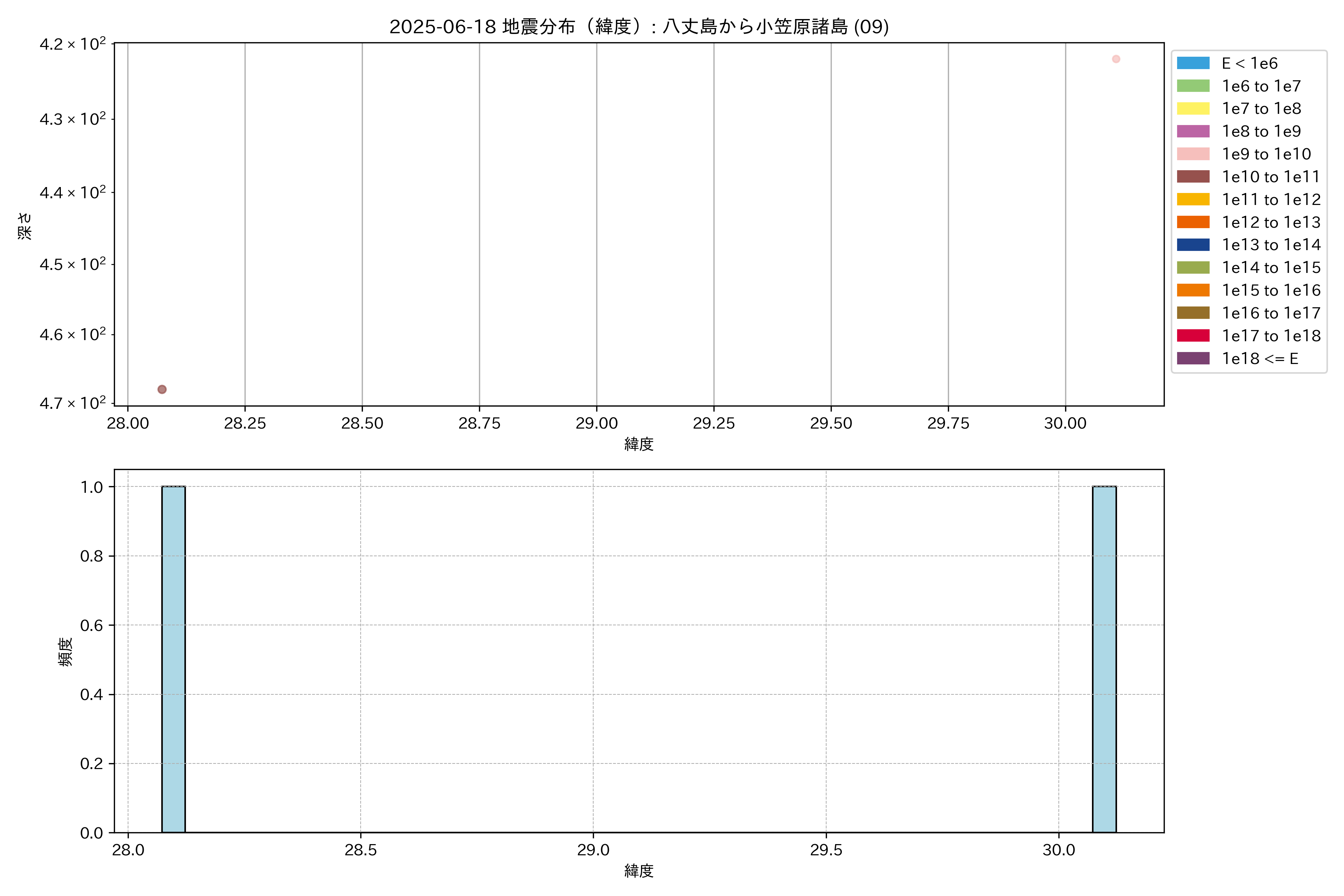 2025年06月18日 八丈島から小笠原諸島 エリア震源マップ