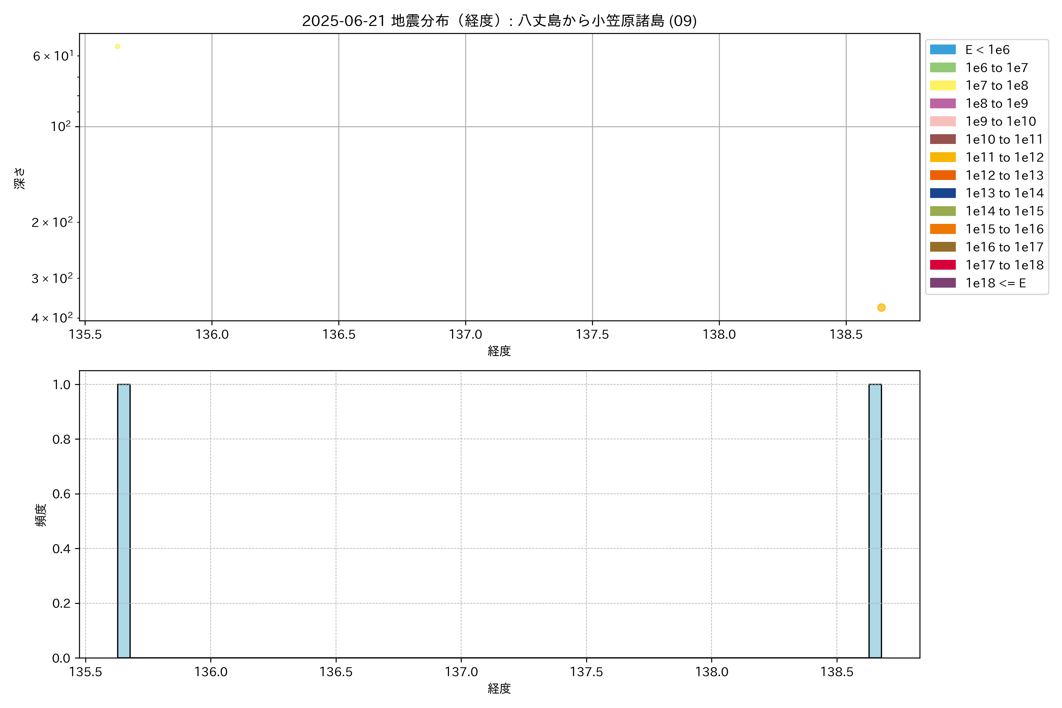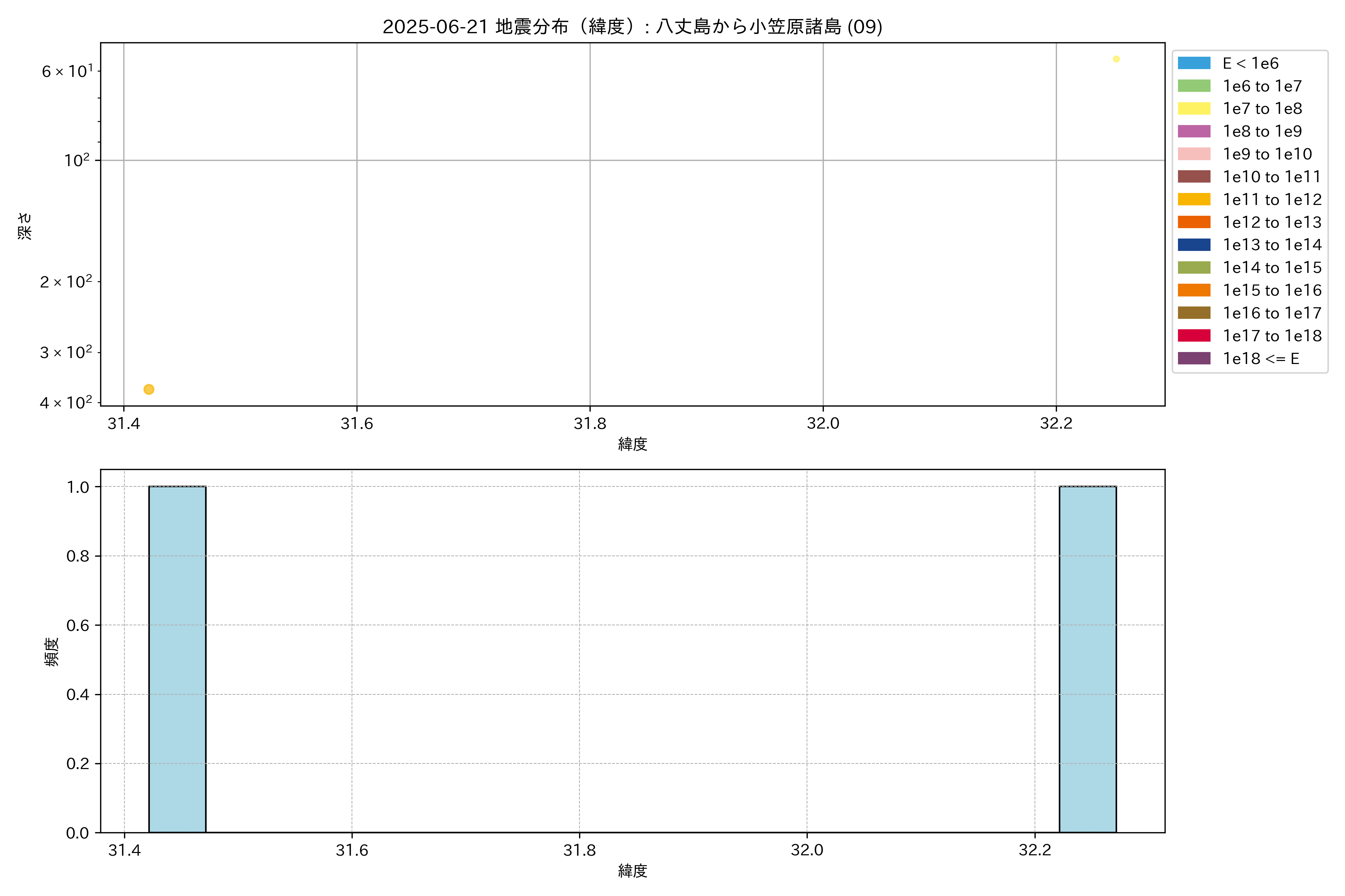 2025年06月21日 八丈島から小笠原諸島 エリア震源マップ