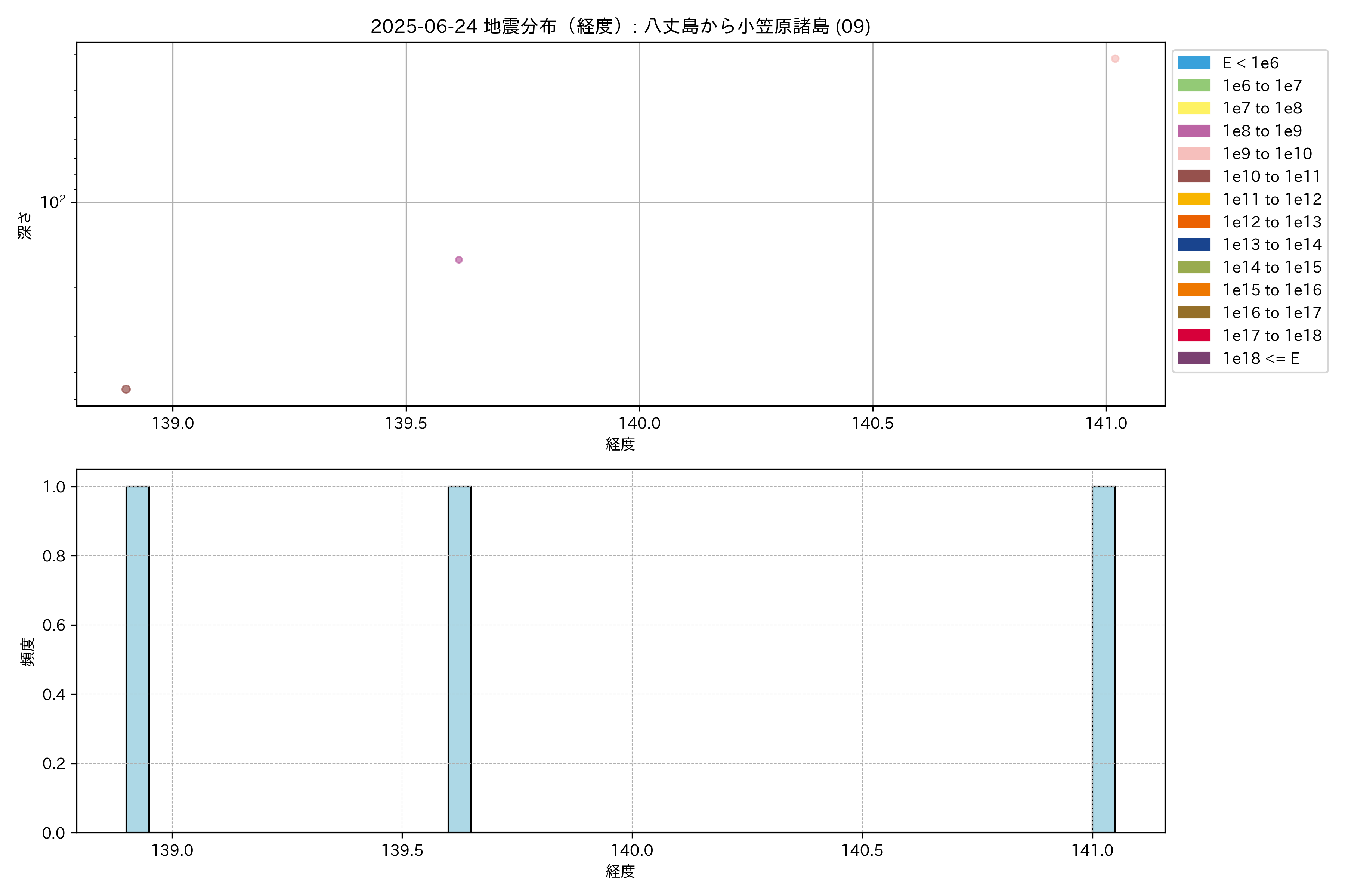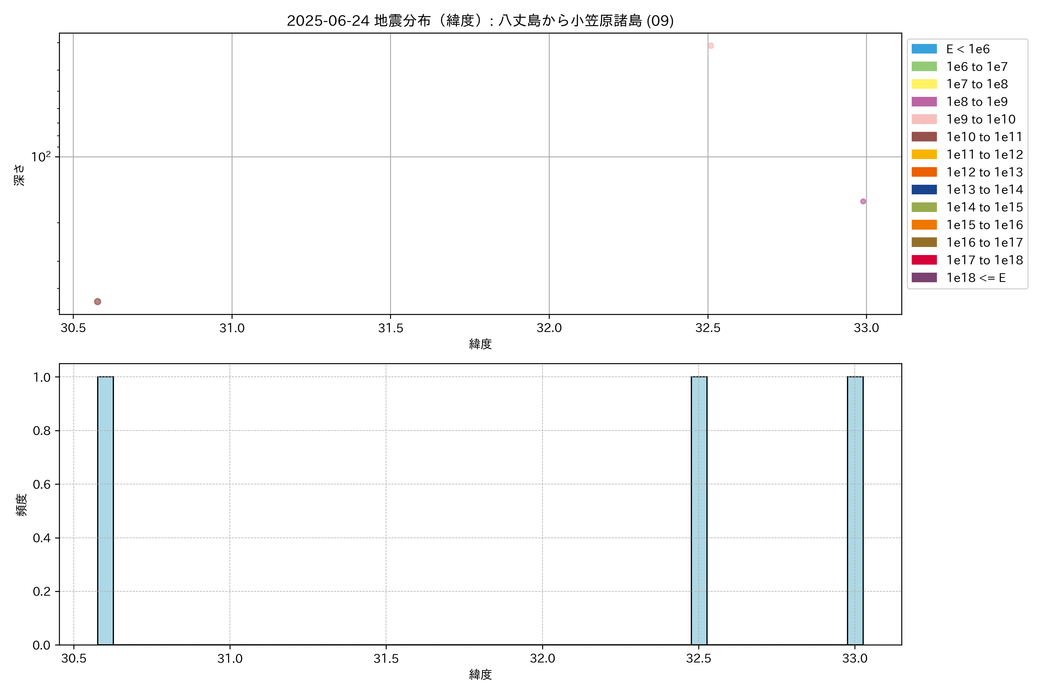 2025年06月24日 八丈島から小笠原諸島 エリア震源マップ