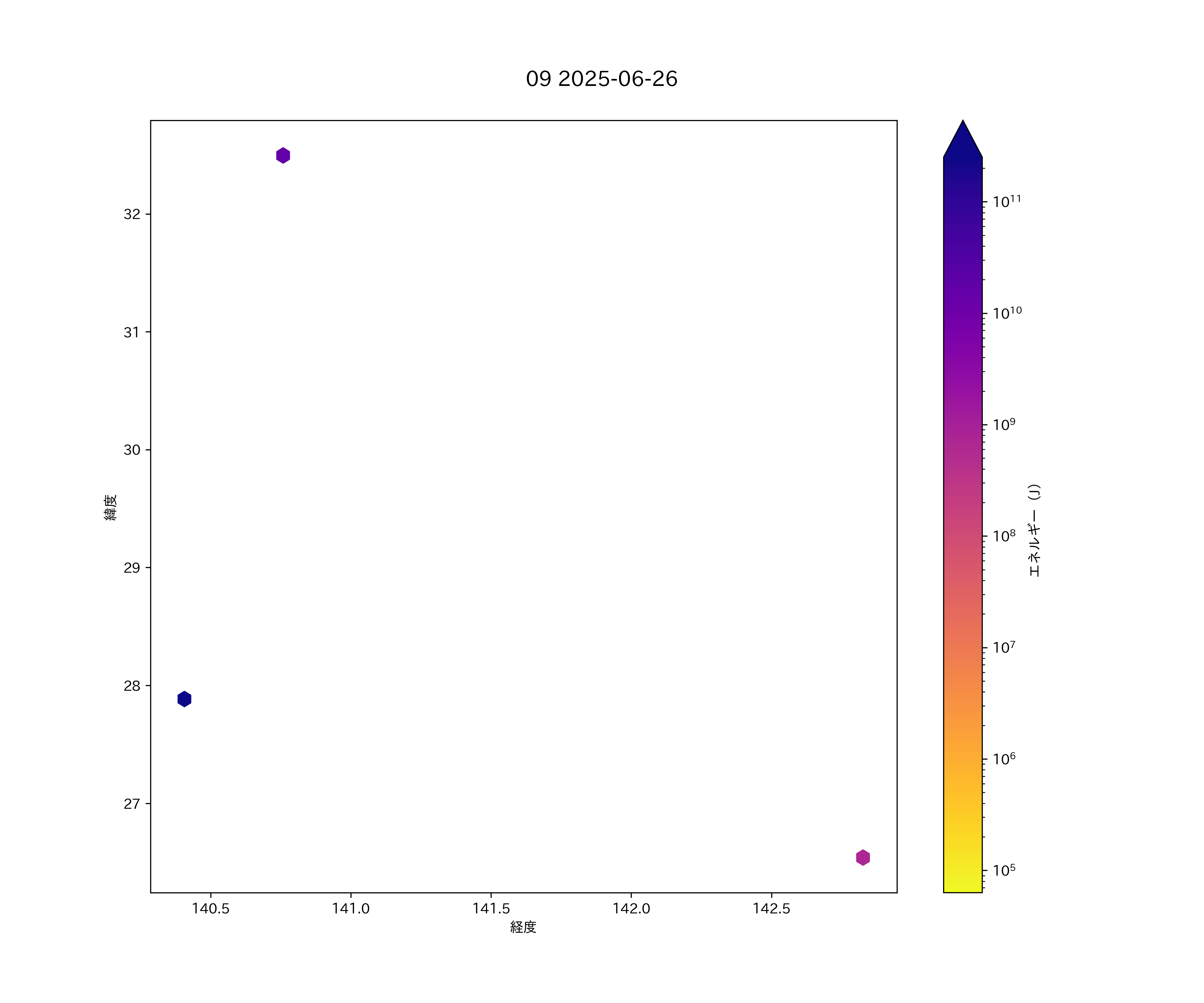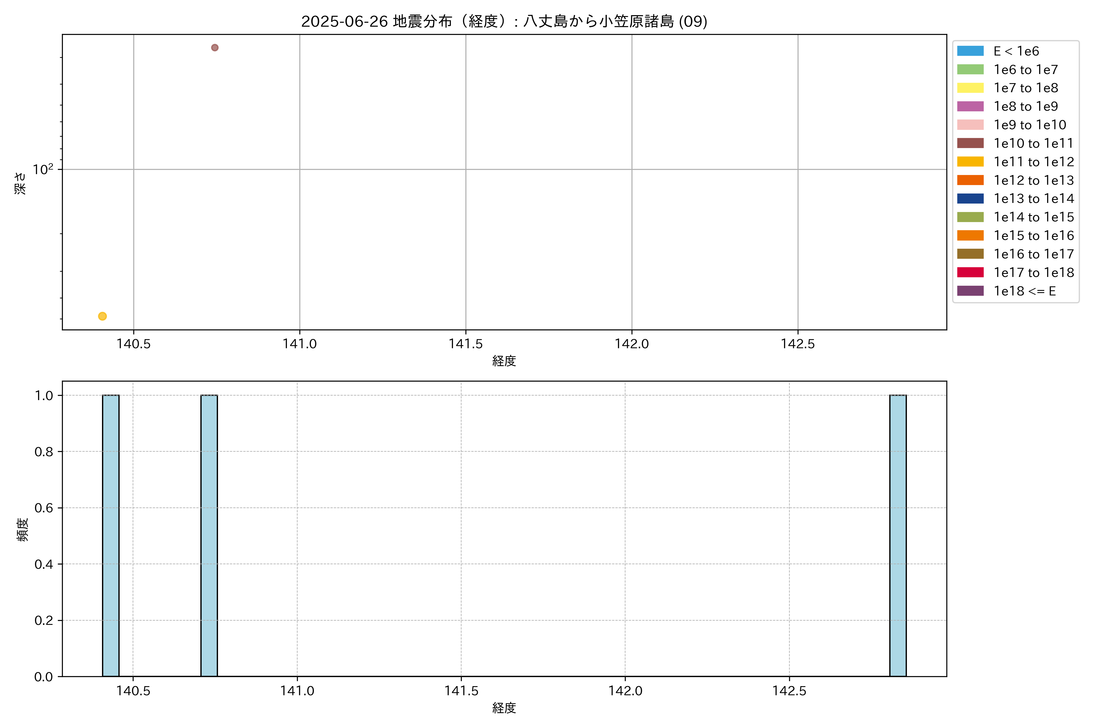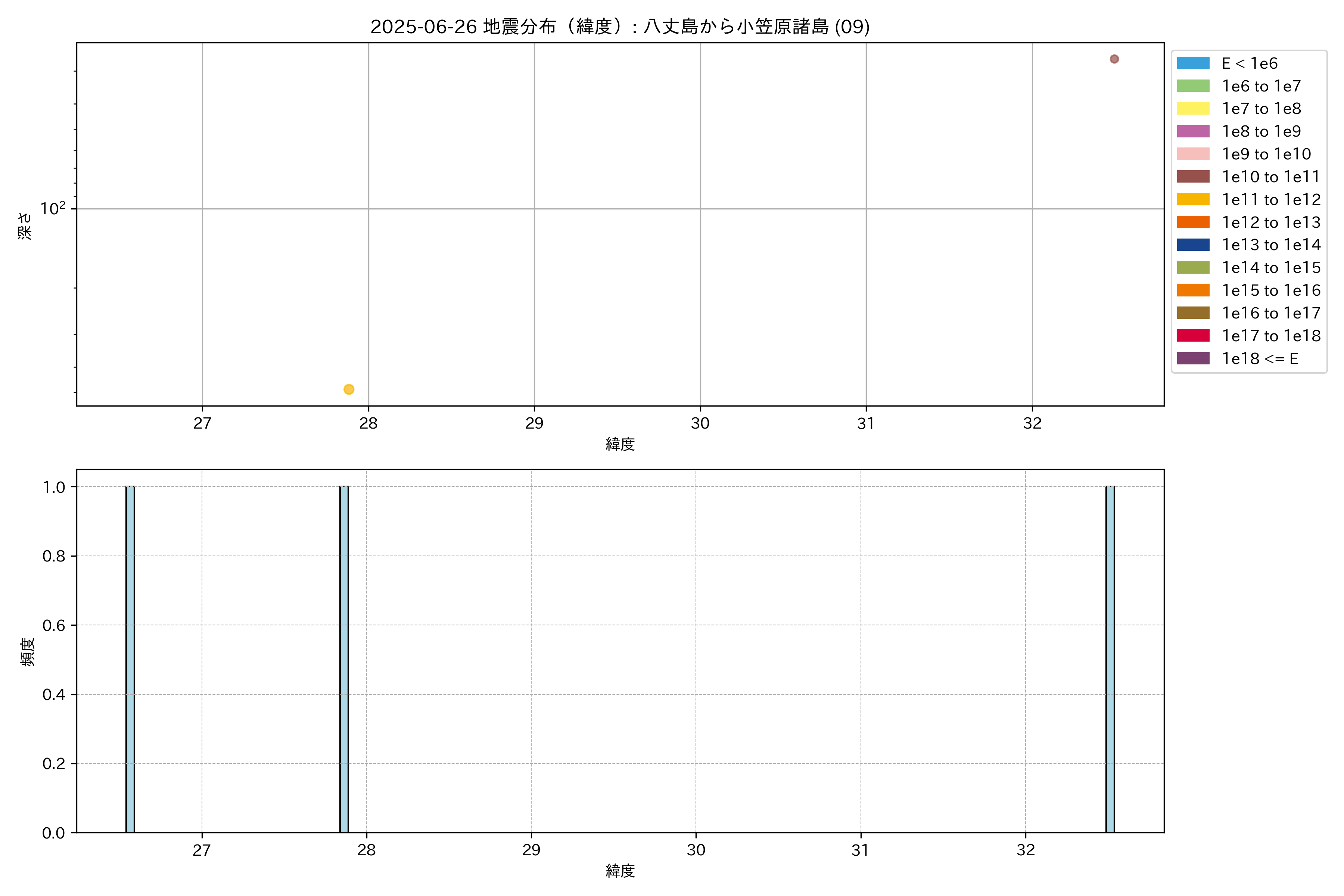 2025年06月26日 八丈島から小笠原諸島 エリア震源マップ