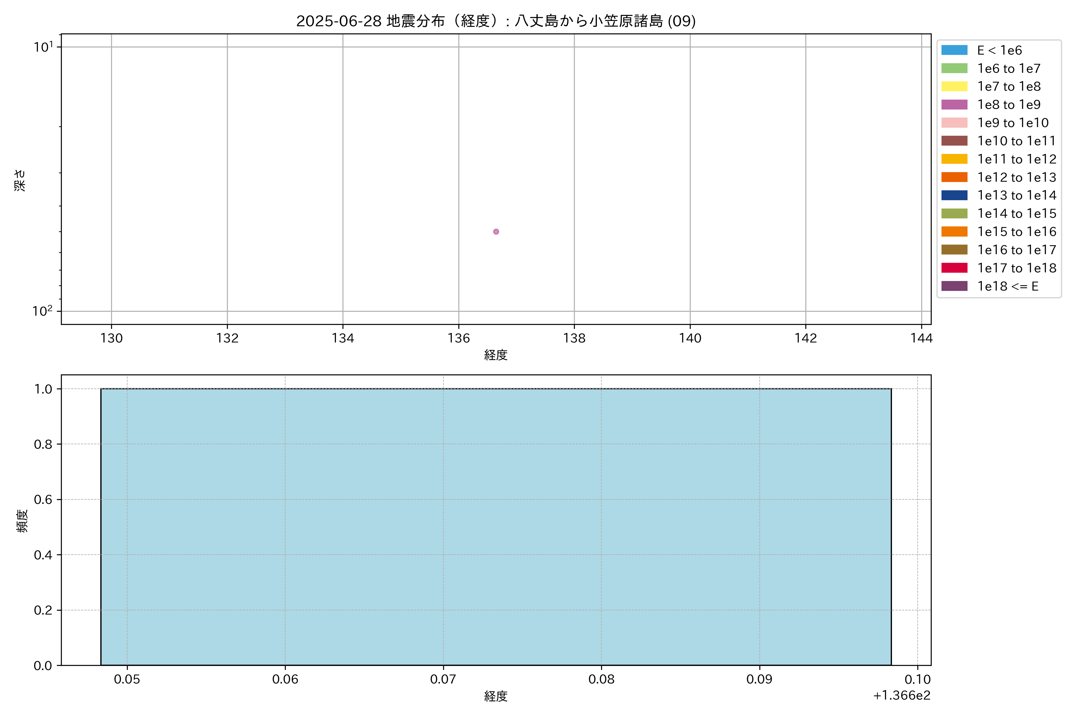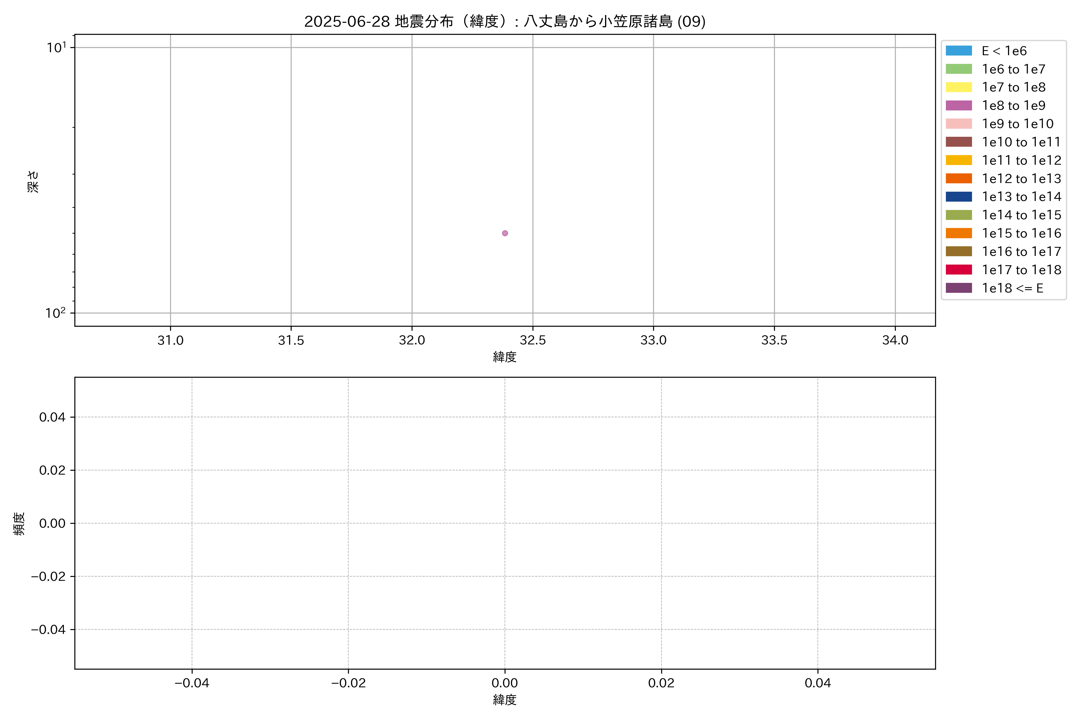2025年06月28日 八丈島から小笠原諸島 エリア震源マップ