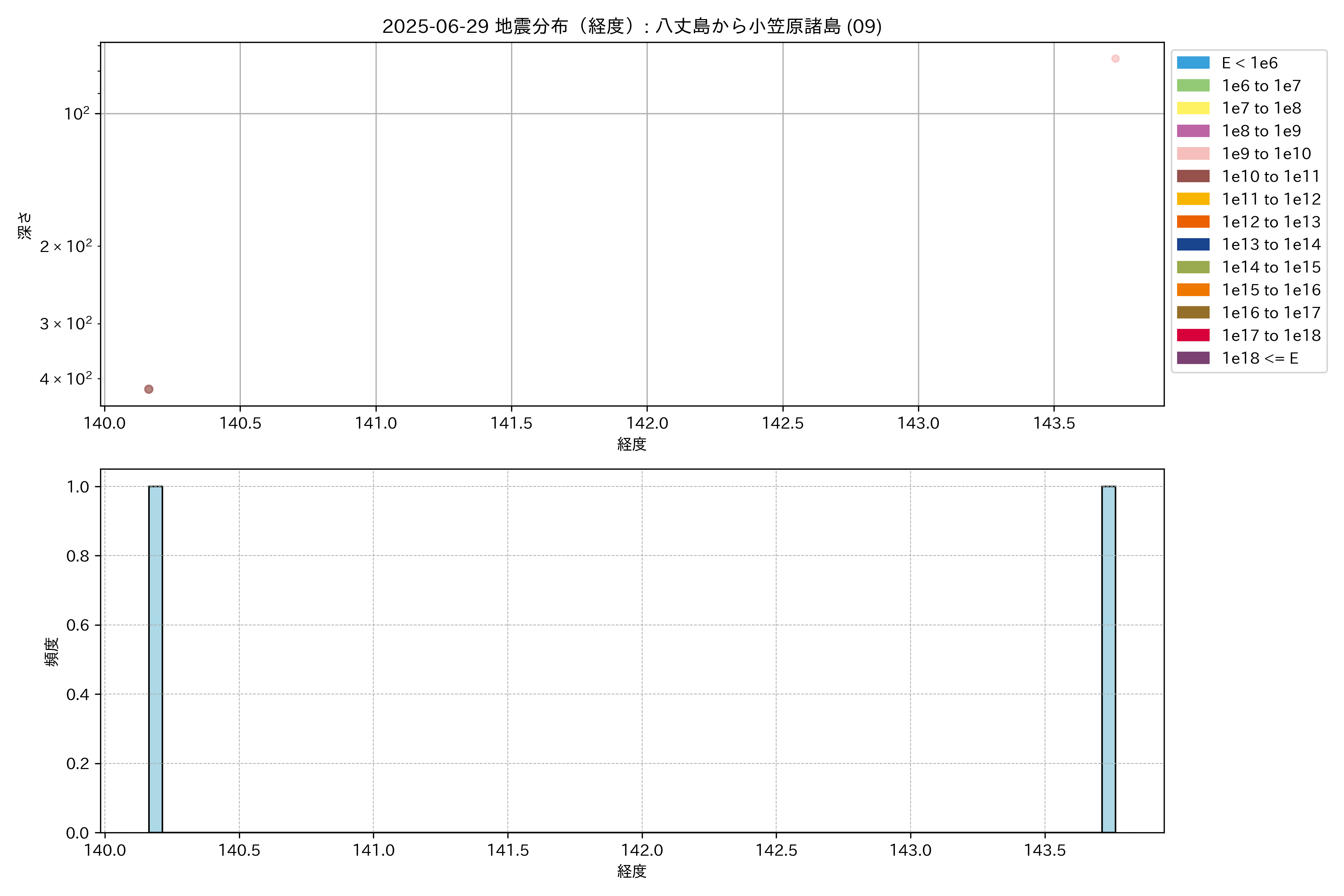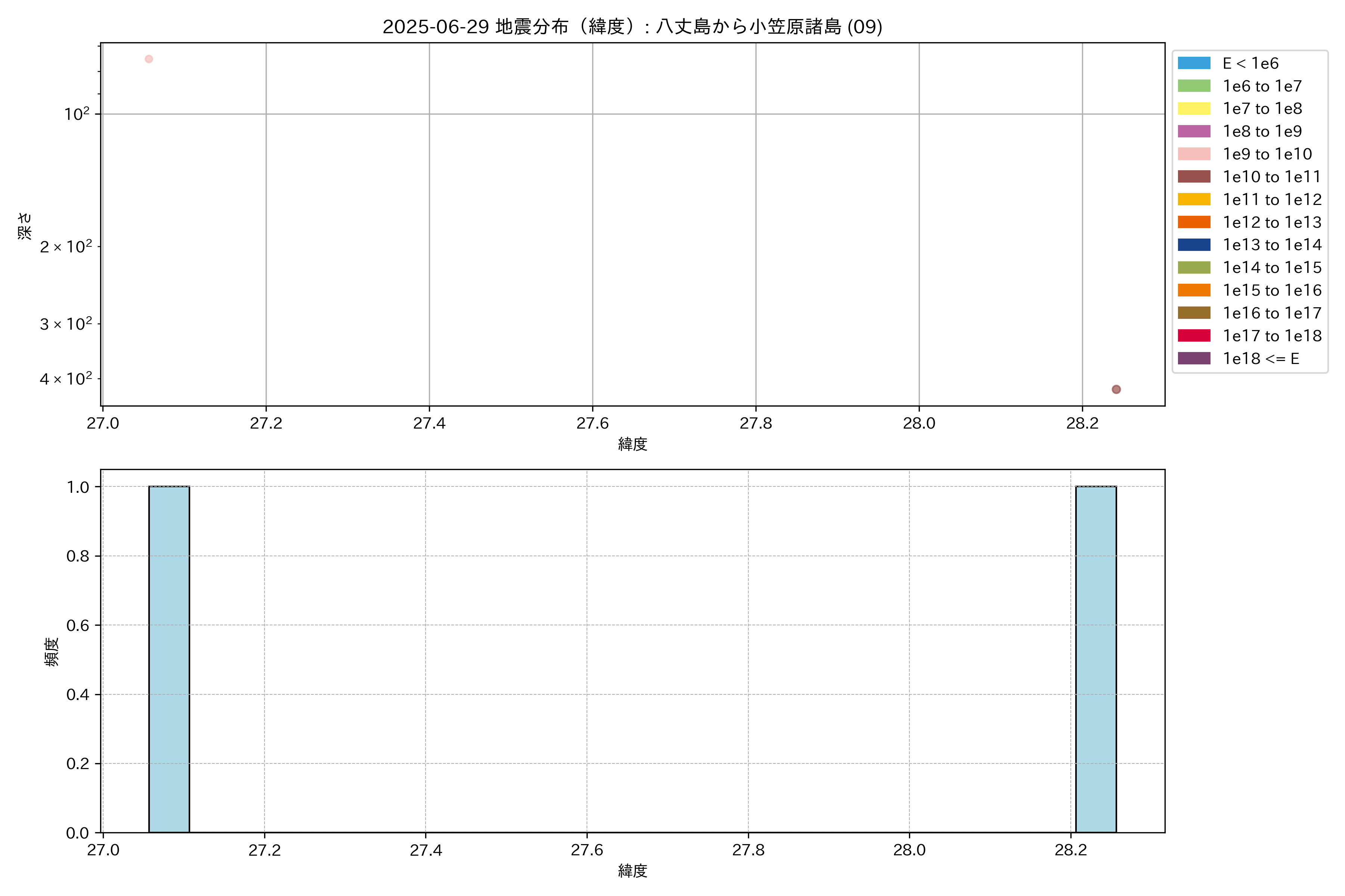 2025年06月29日 八丈島から小笠原諸島 エリア震源マップ