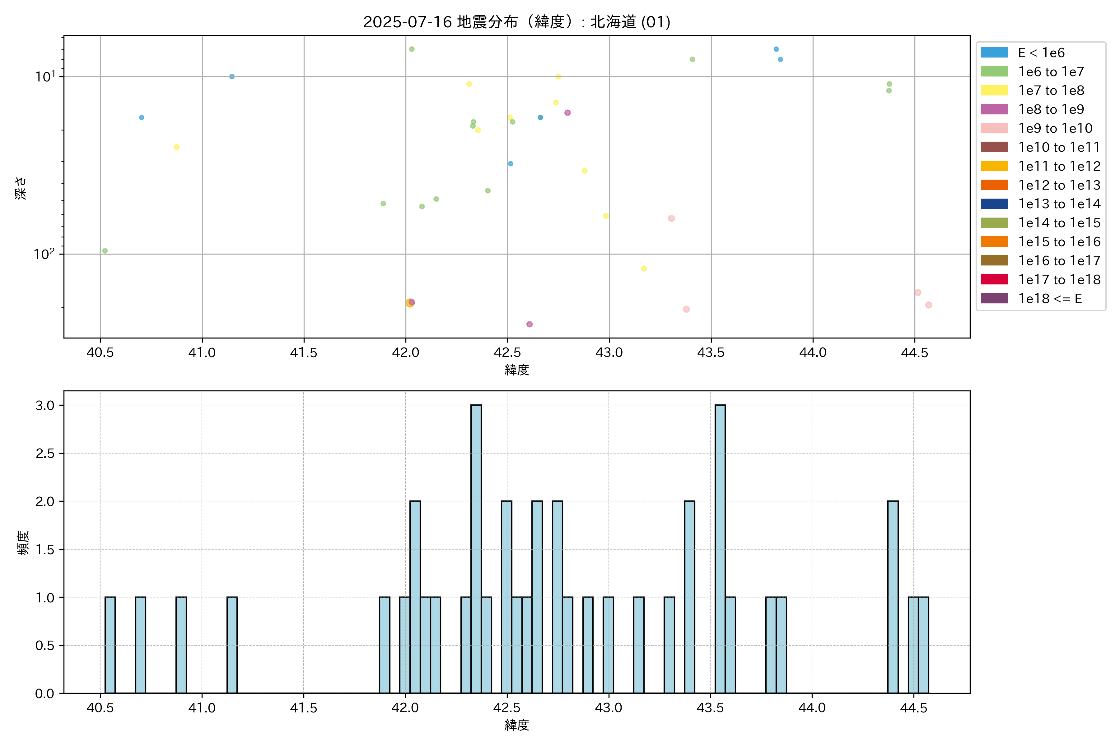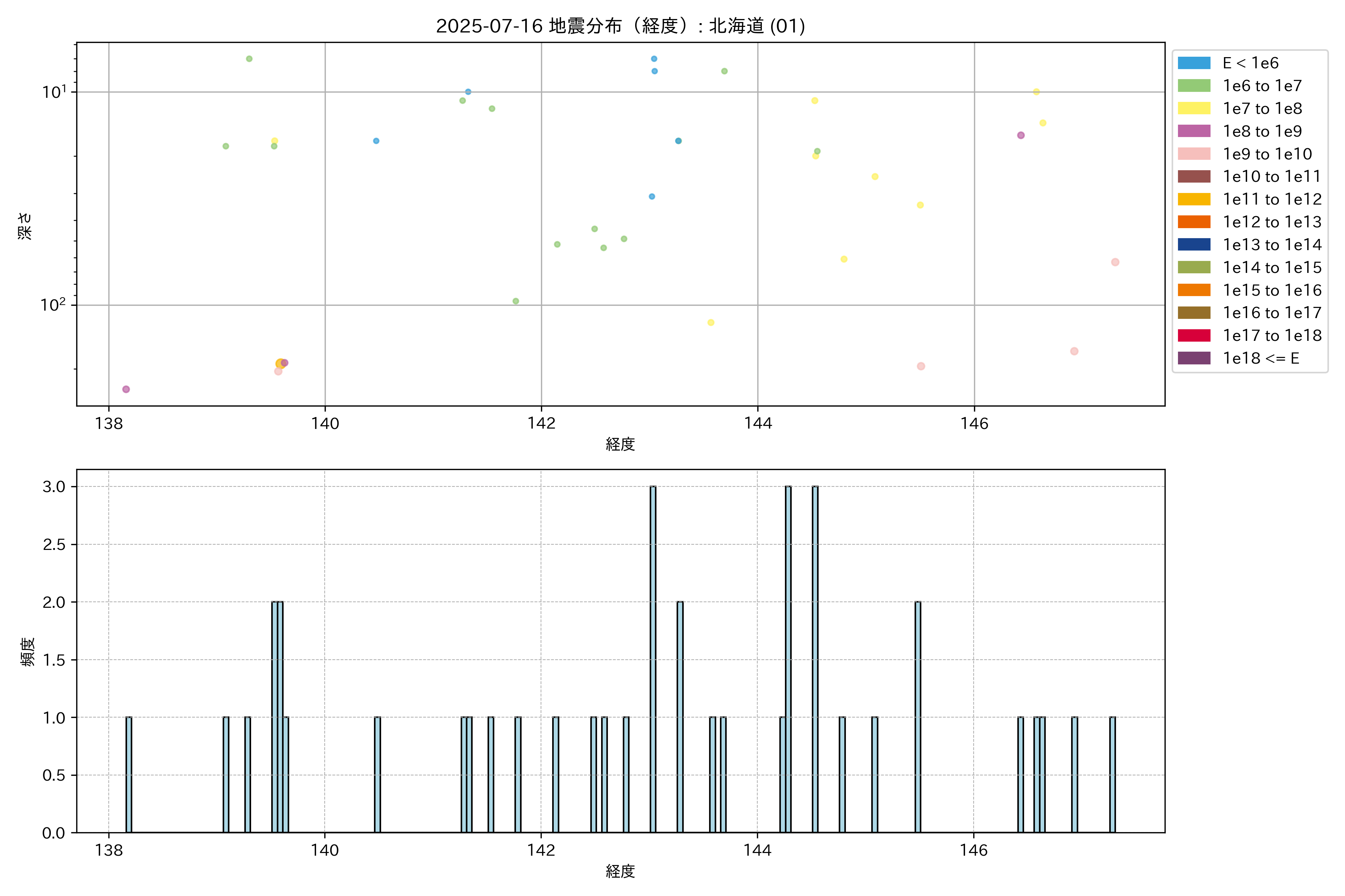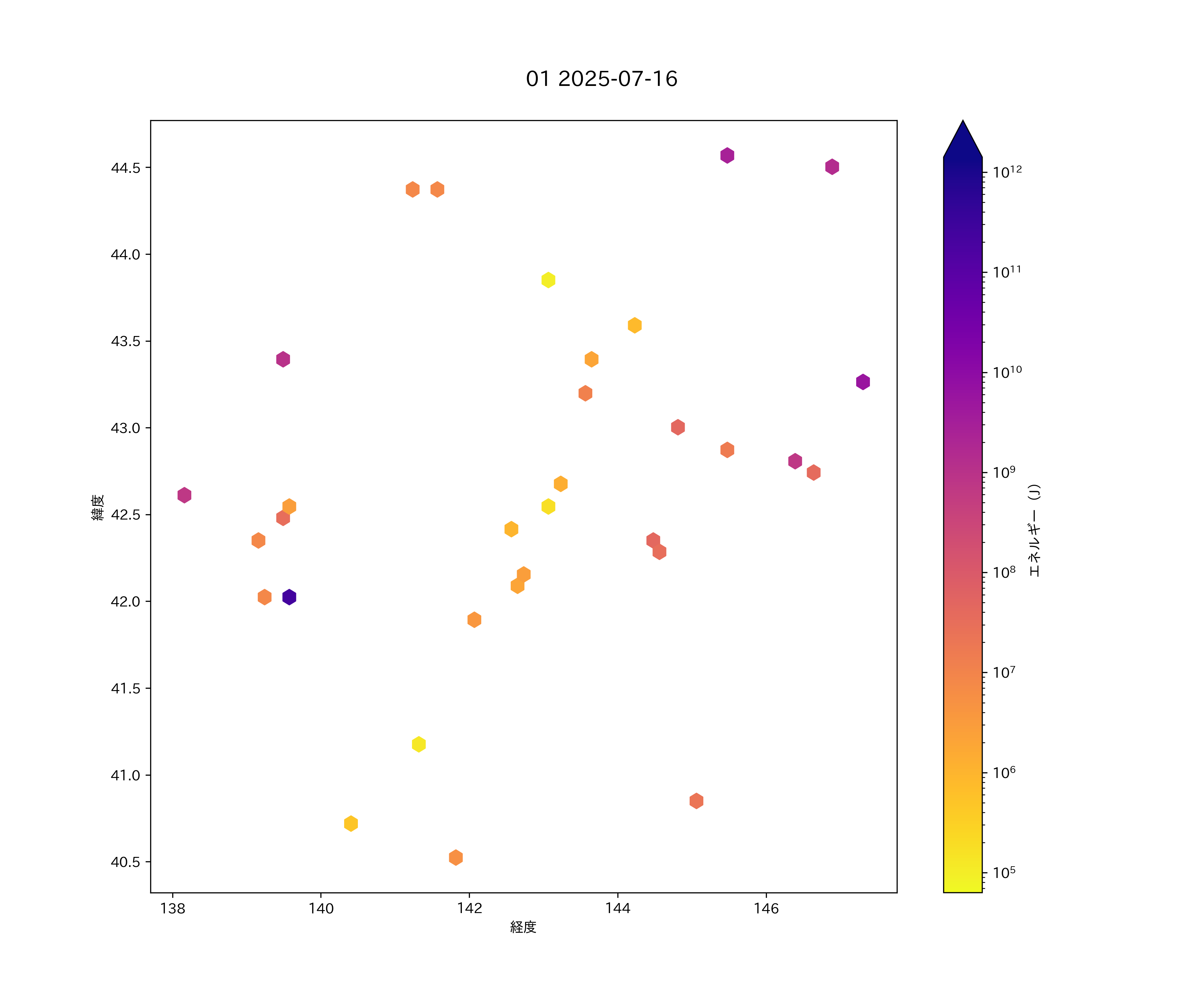 2025年07月16日 北海道 エリア震源マップ