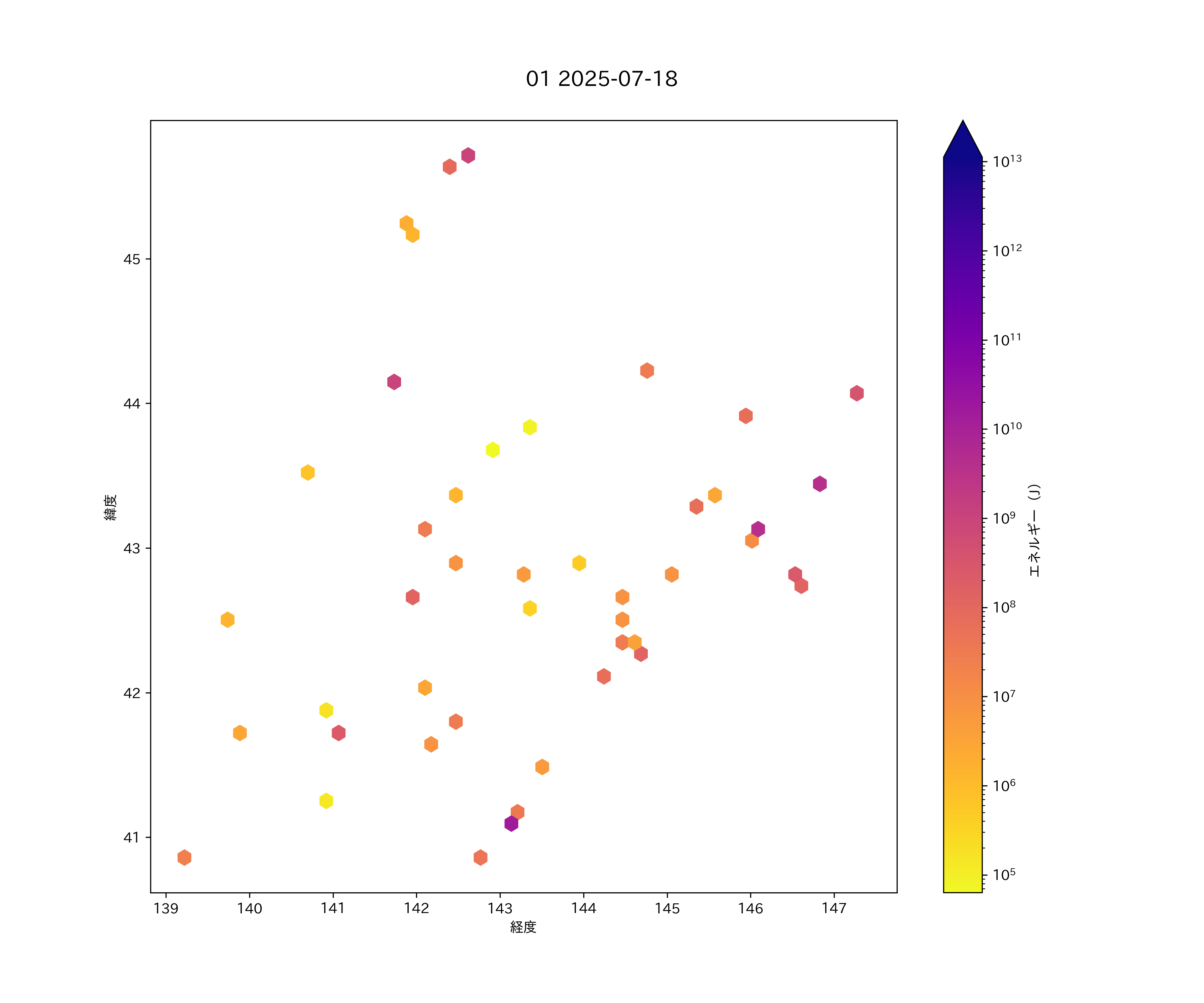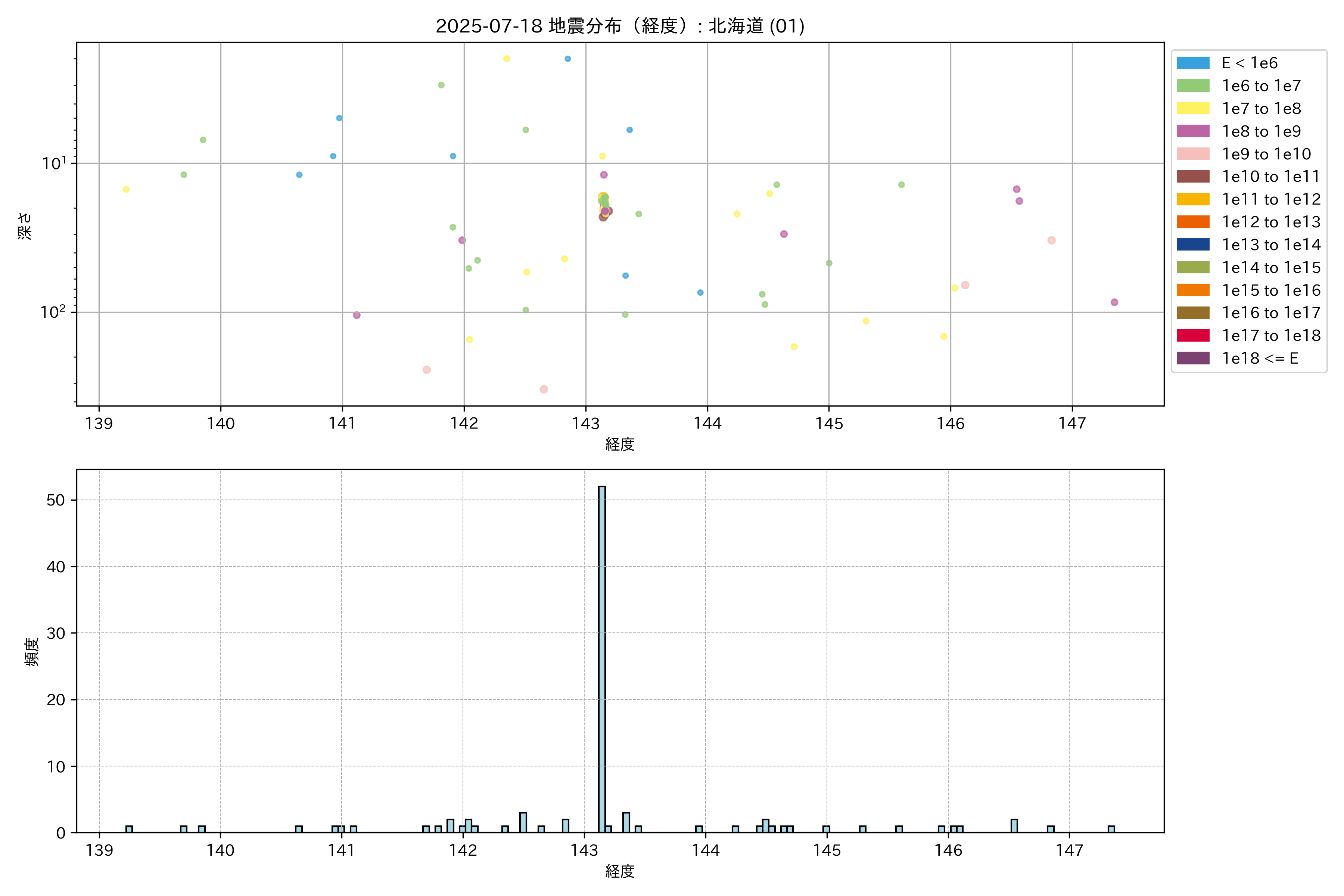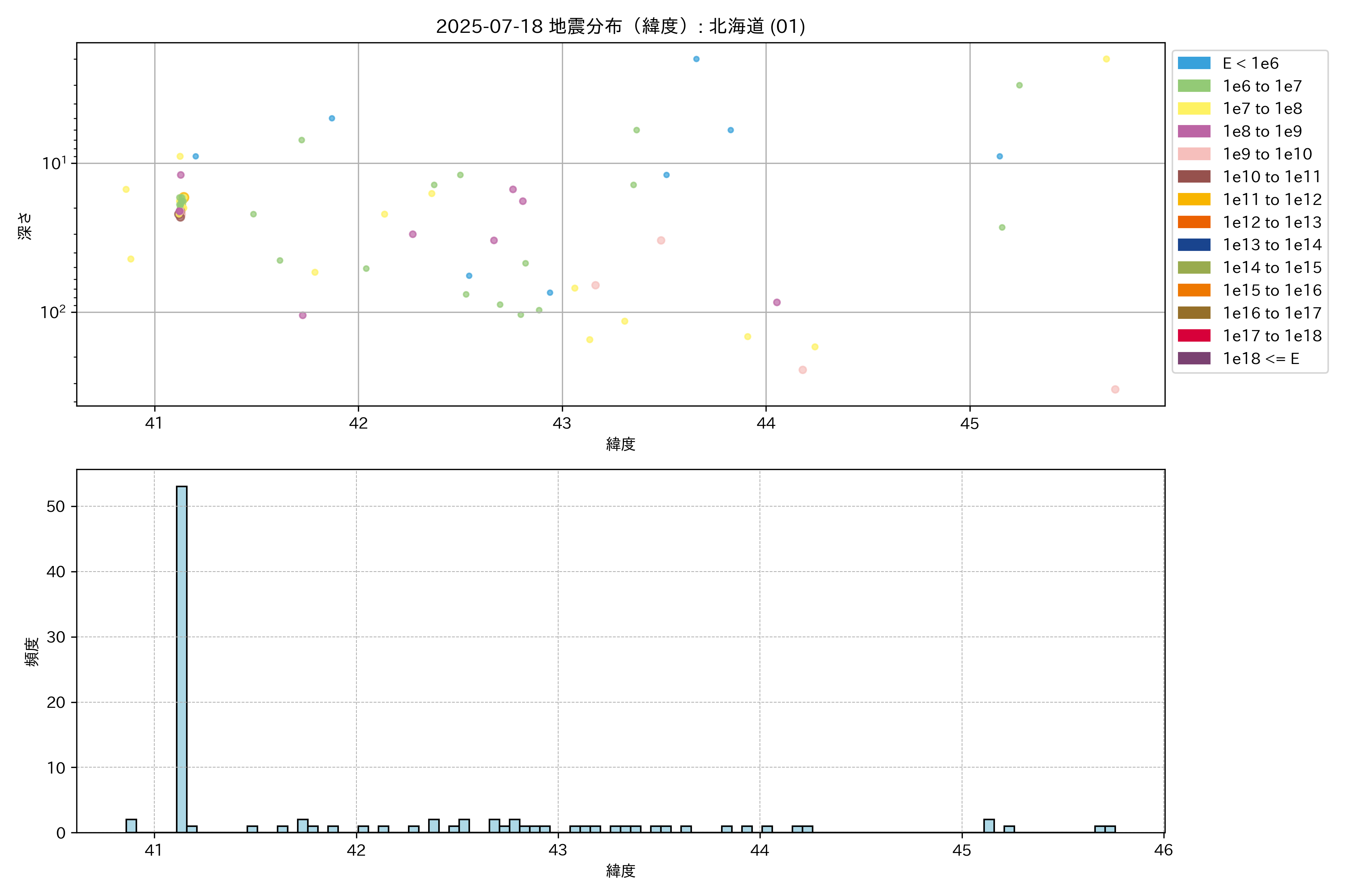 2025年07月18日 北海道 エリア震源マップ