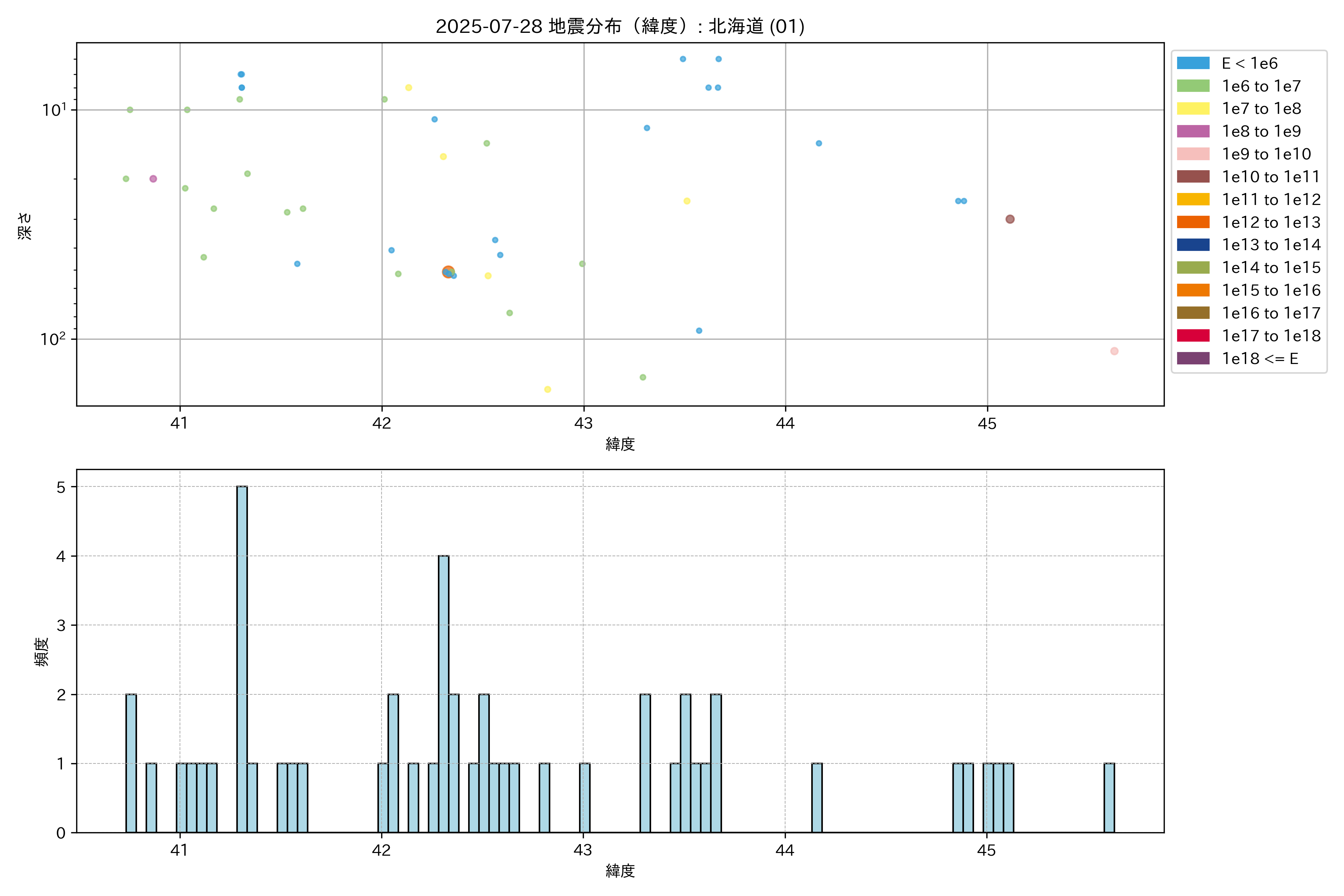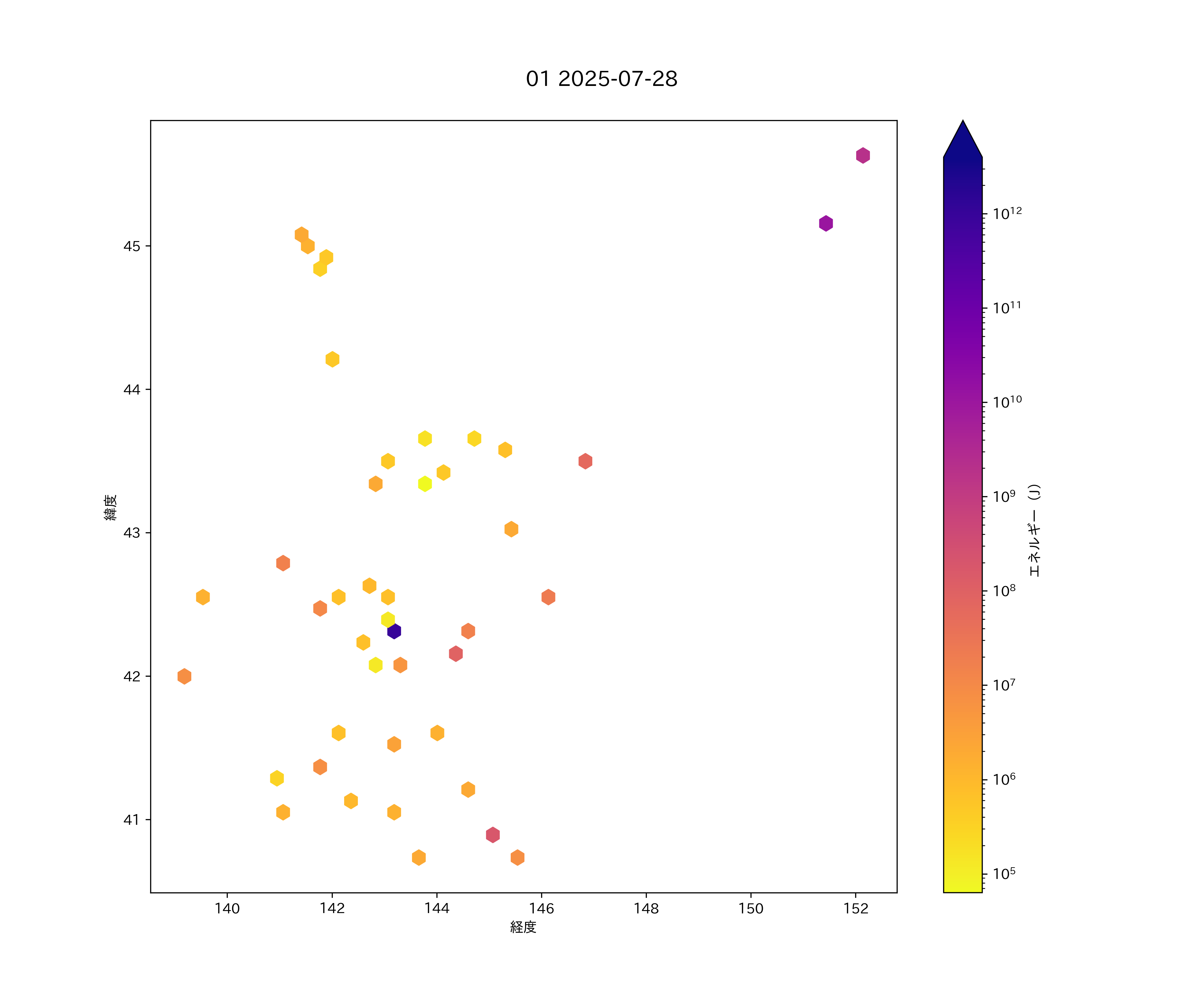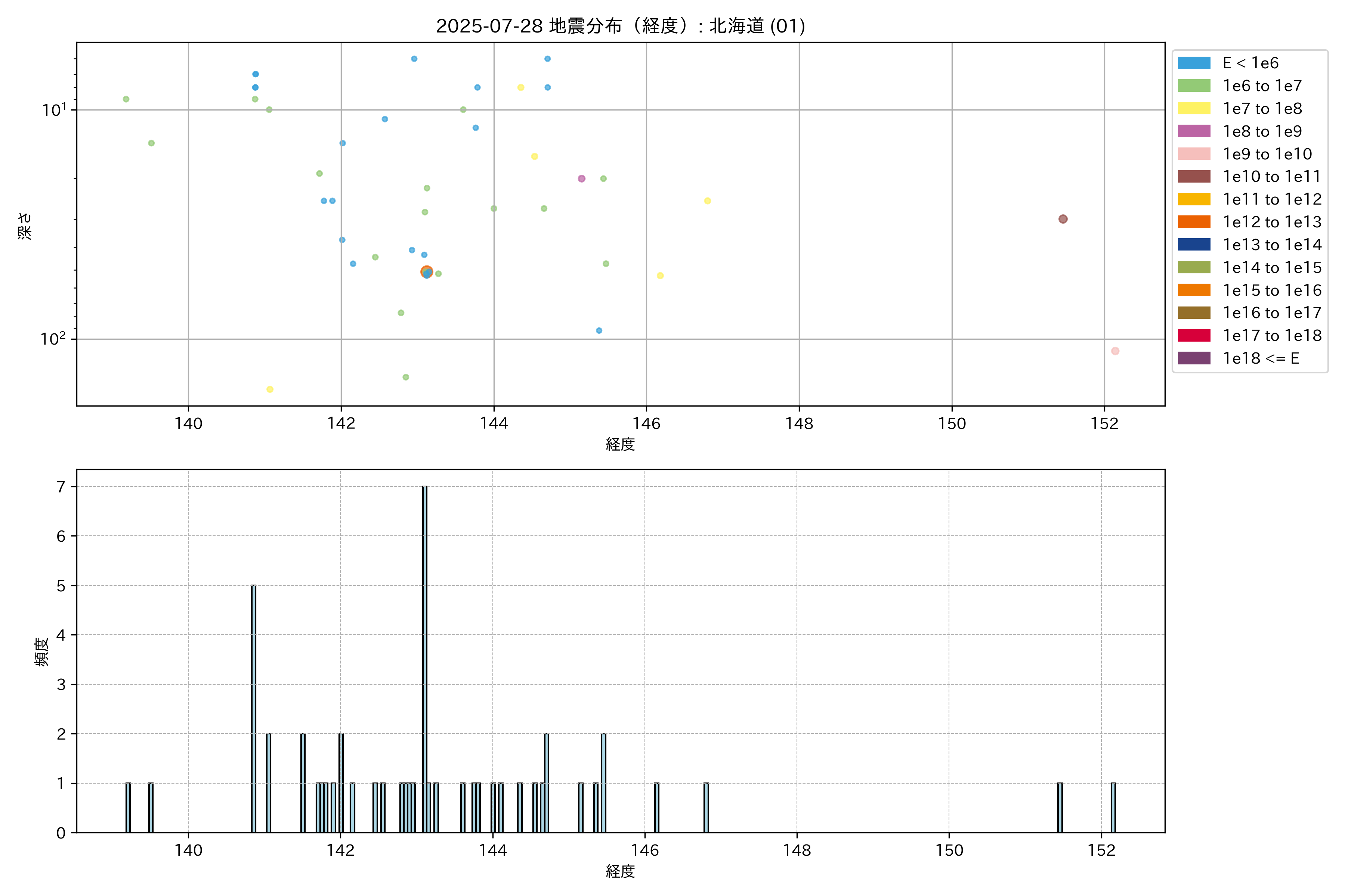 2025年07月28日 北海道 エリア震源マップ