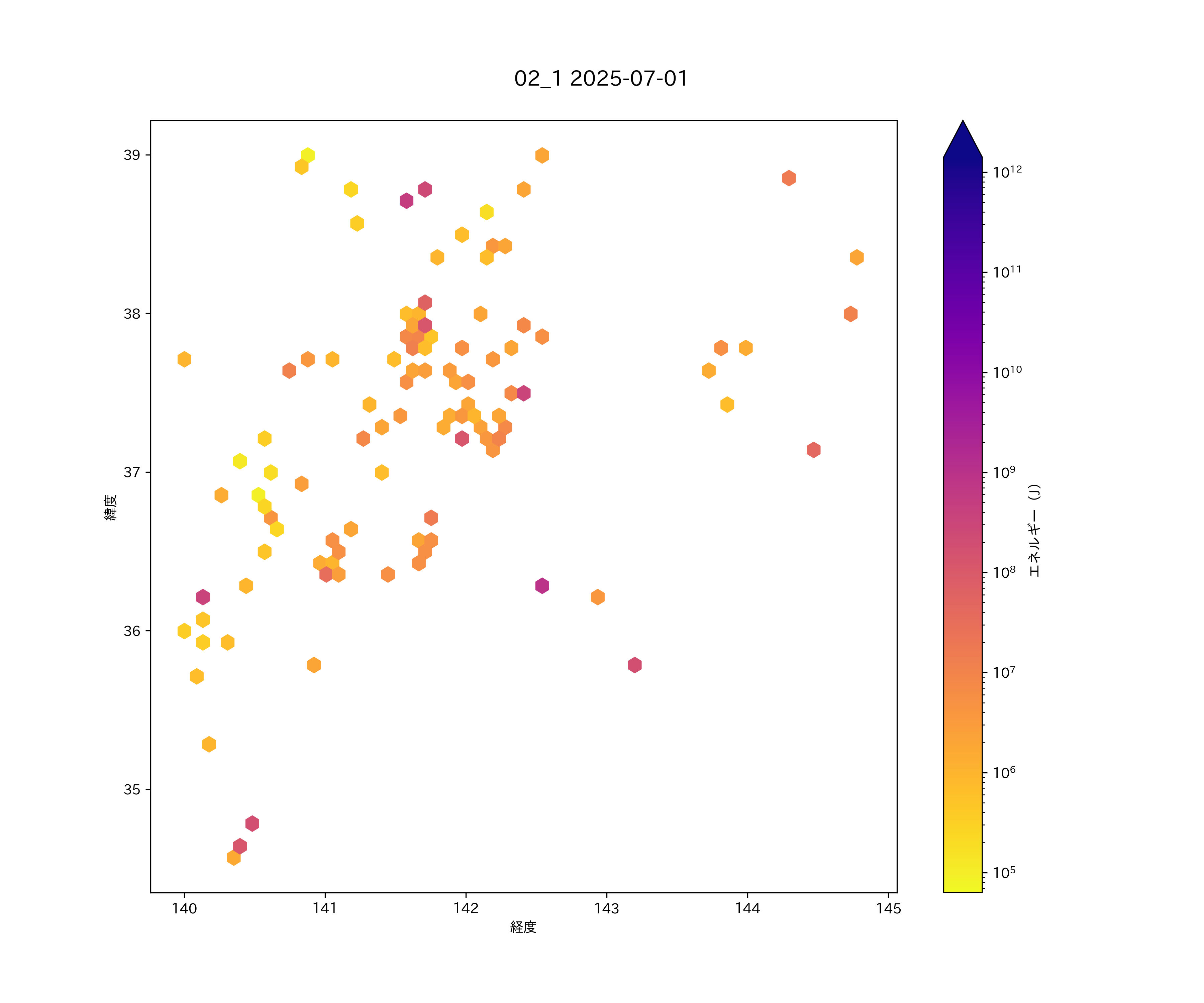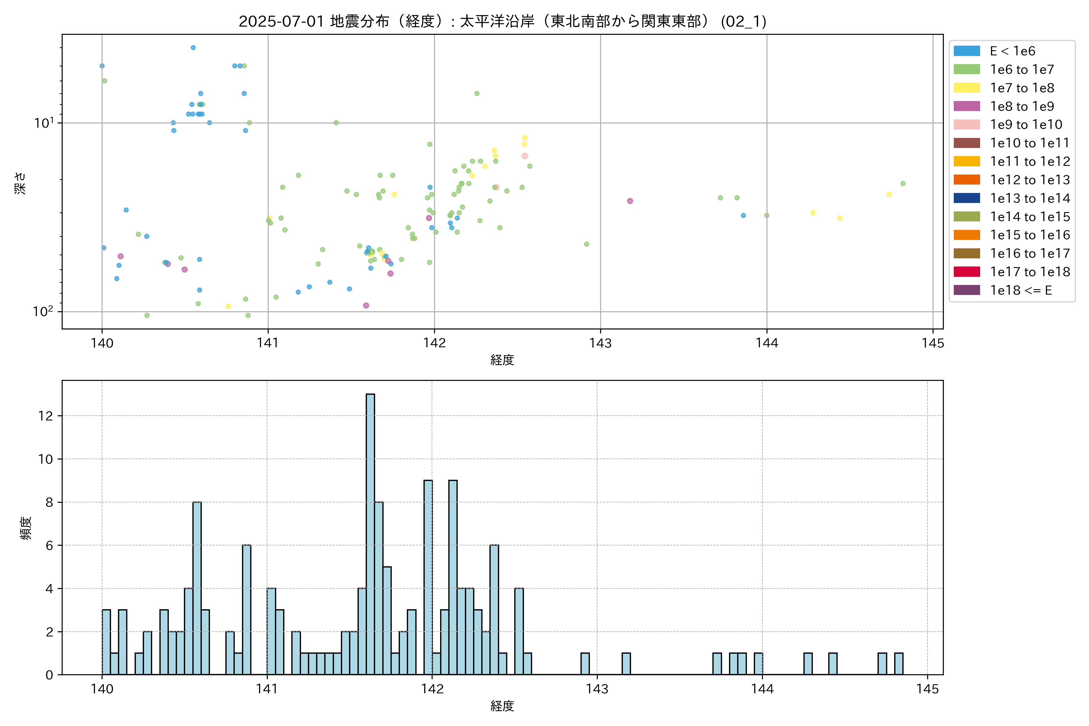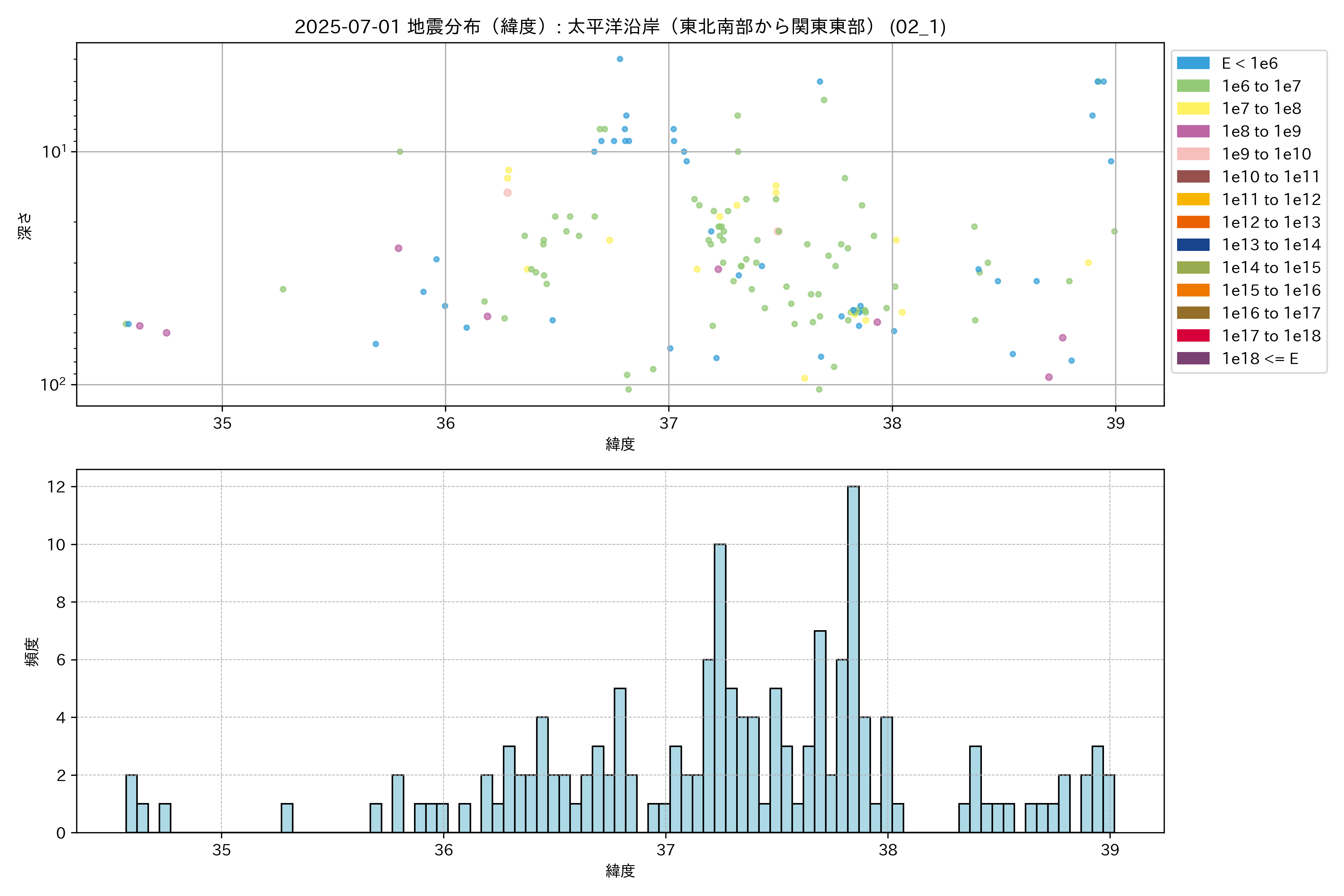 2025年07月01日 太平洋沿岸(東北南部から関東東部) エリア震源マップ