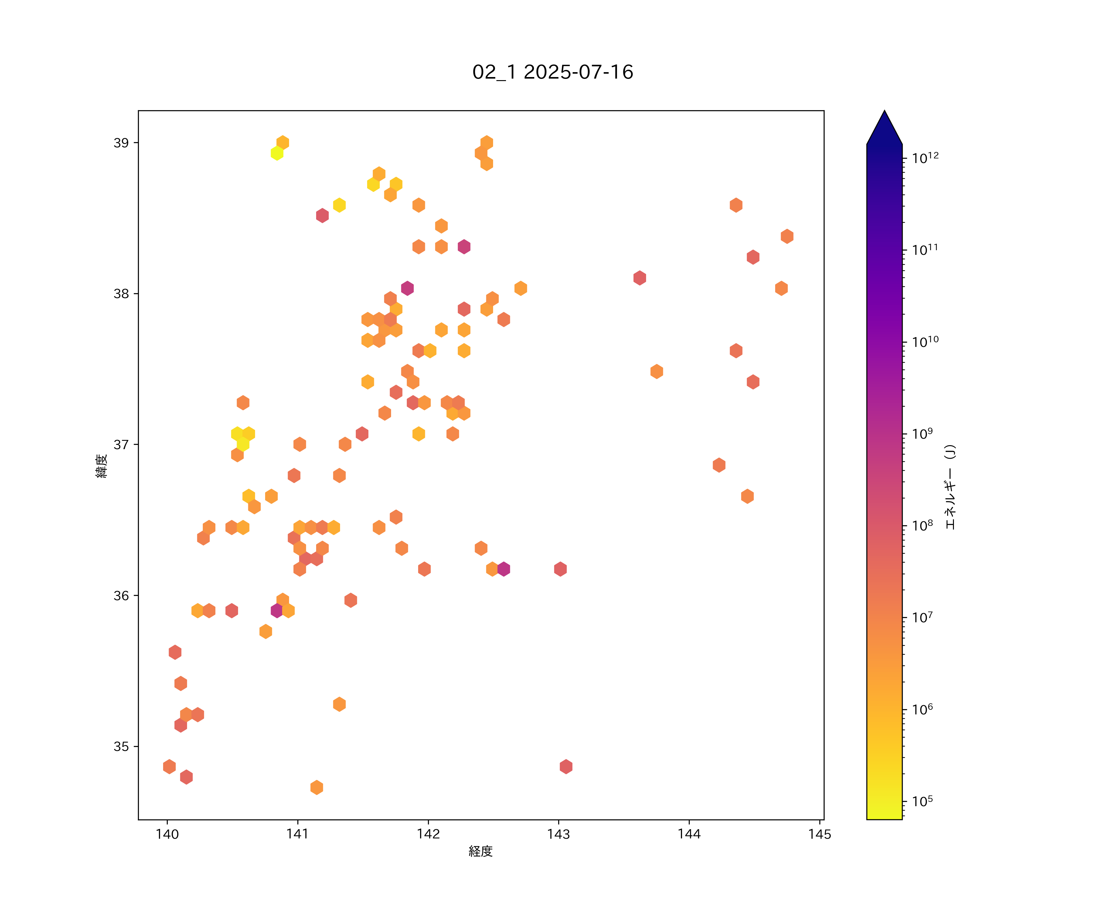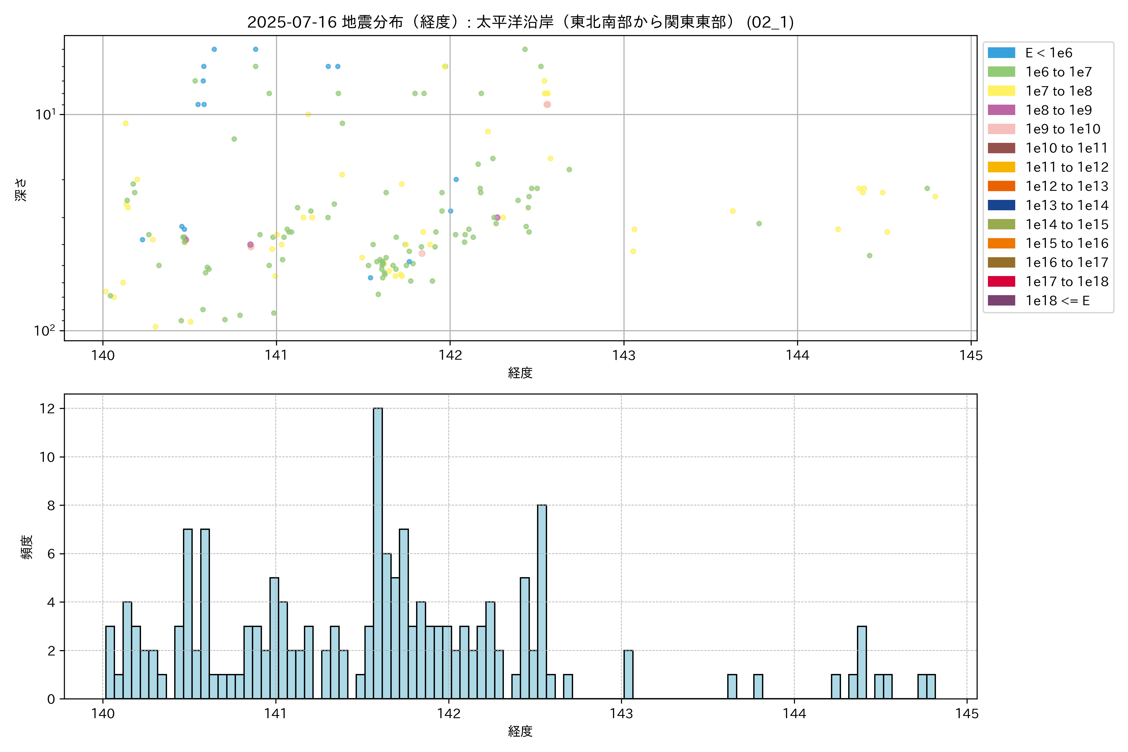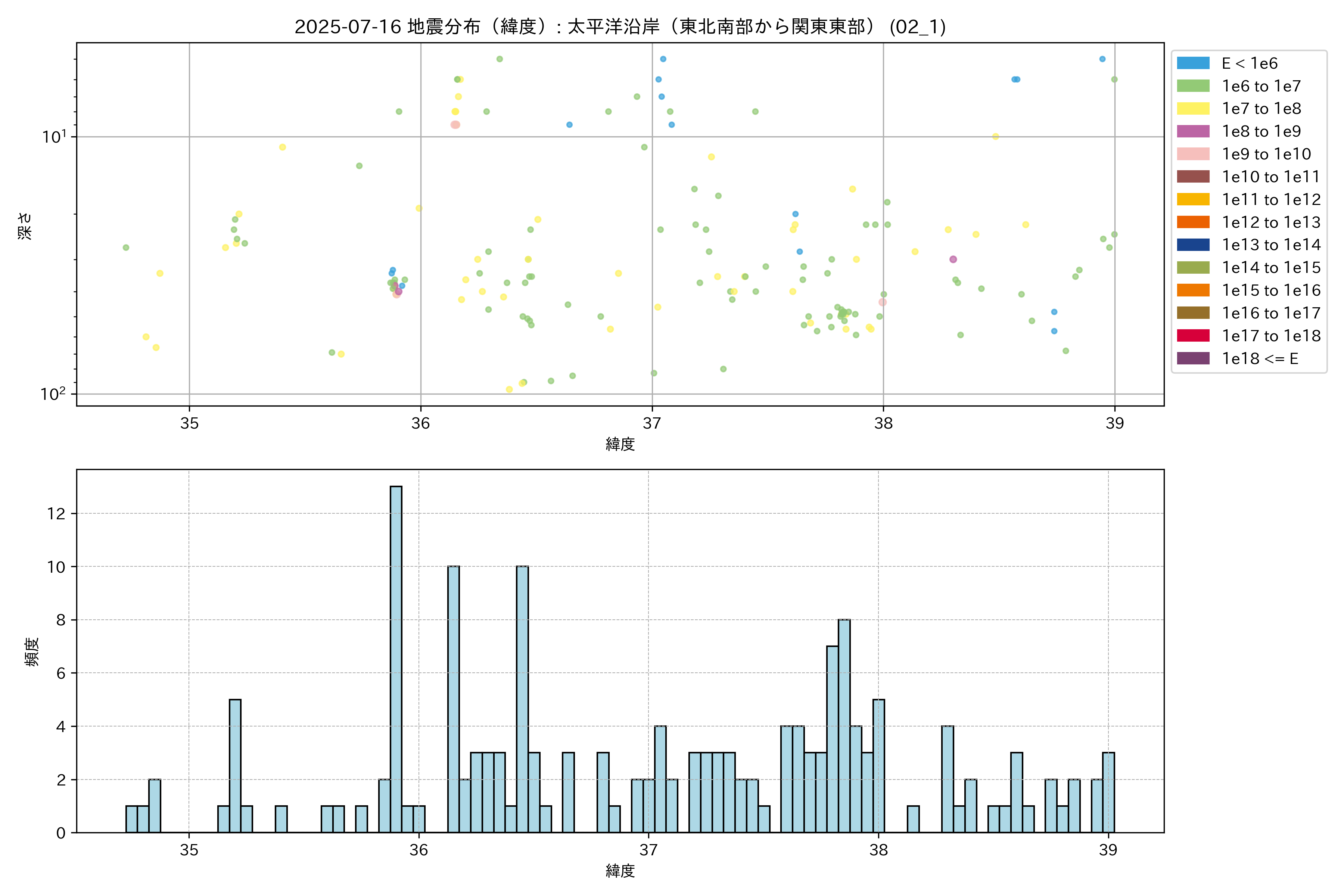 2025年07月16日 太平洋沿岸(東北南部から関東東部) エリア震源マップ