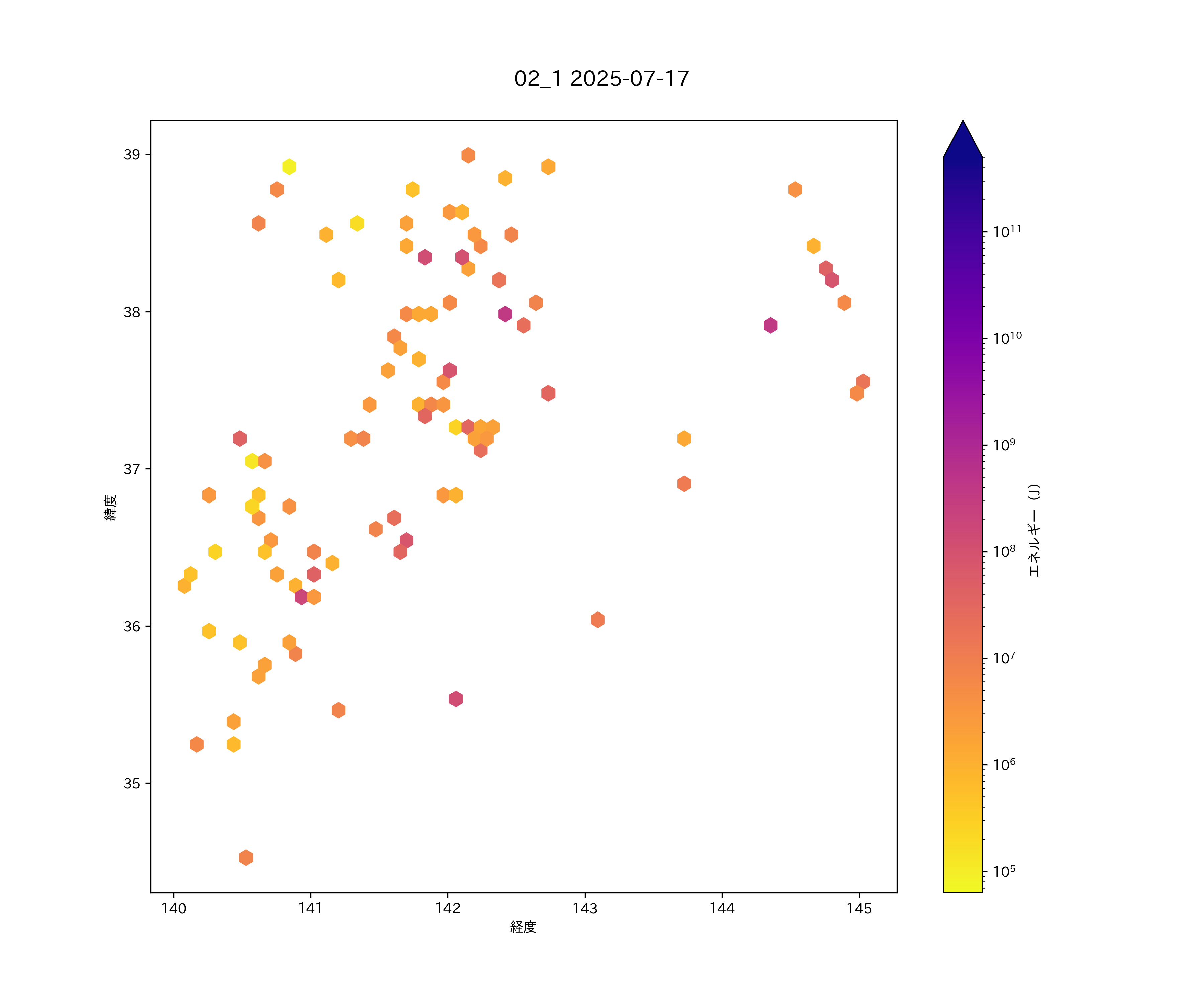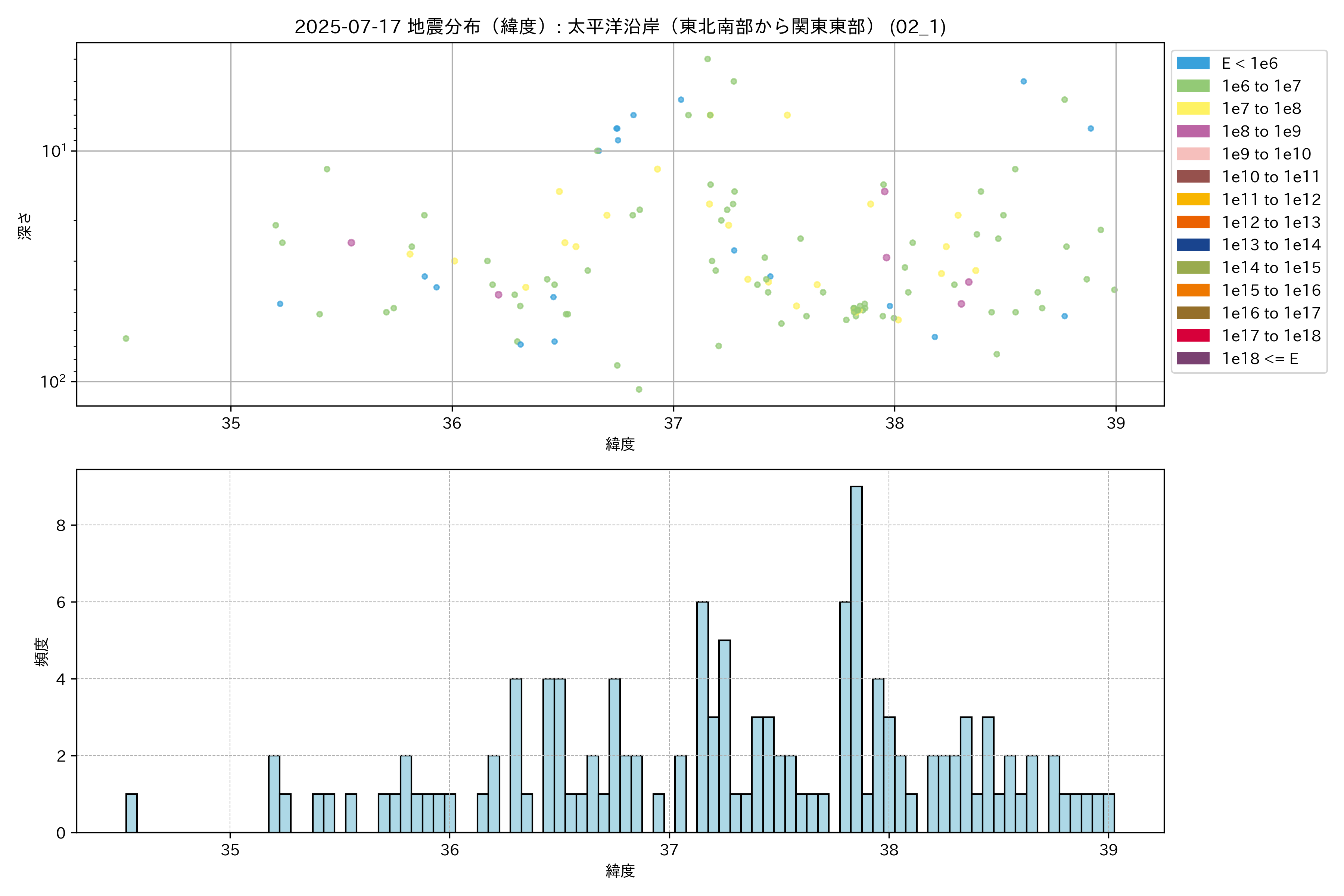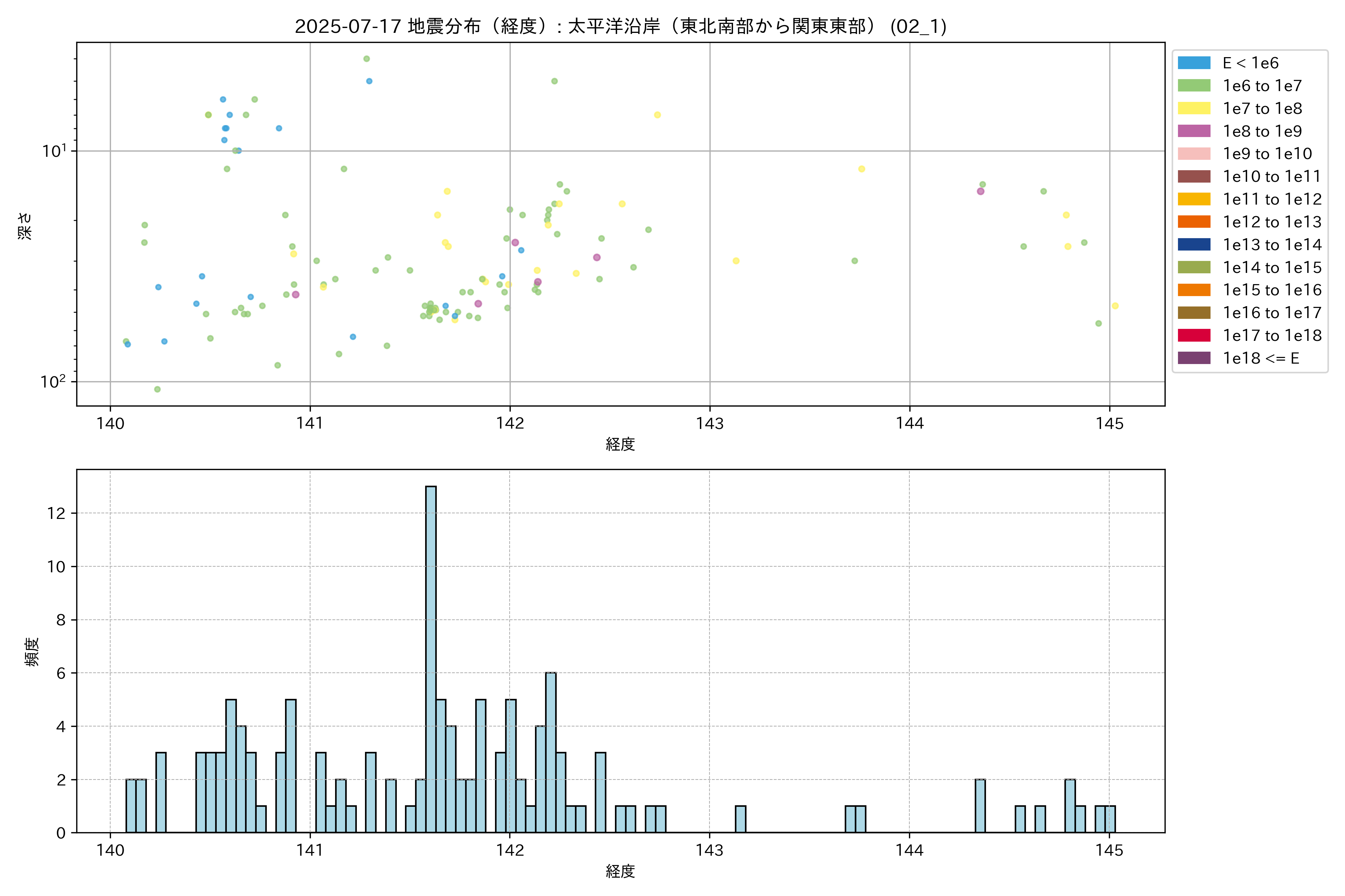 2025年07月17日 太平洋沿岸(東北南部から関東東部) エリア震源マップ