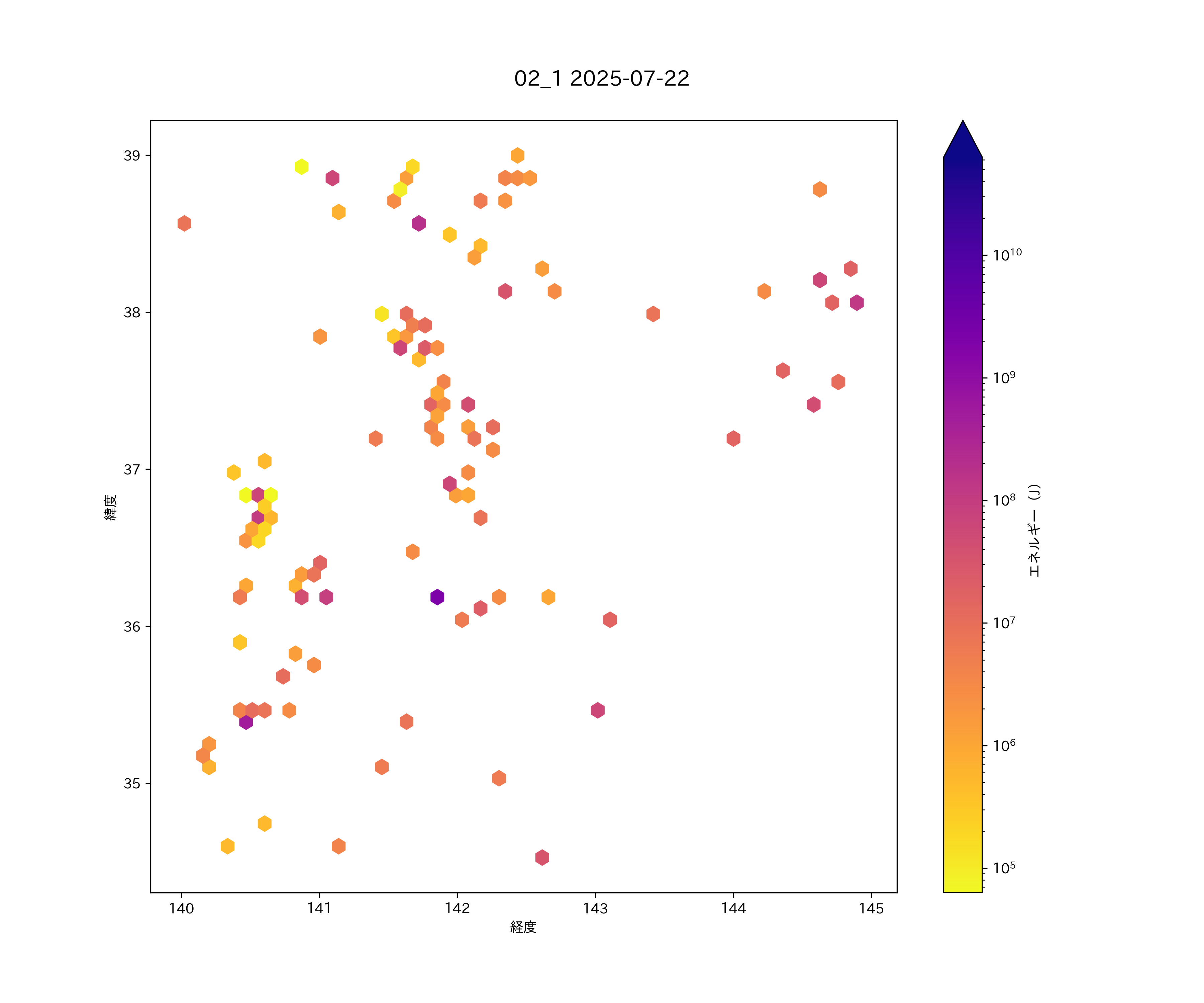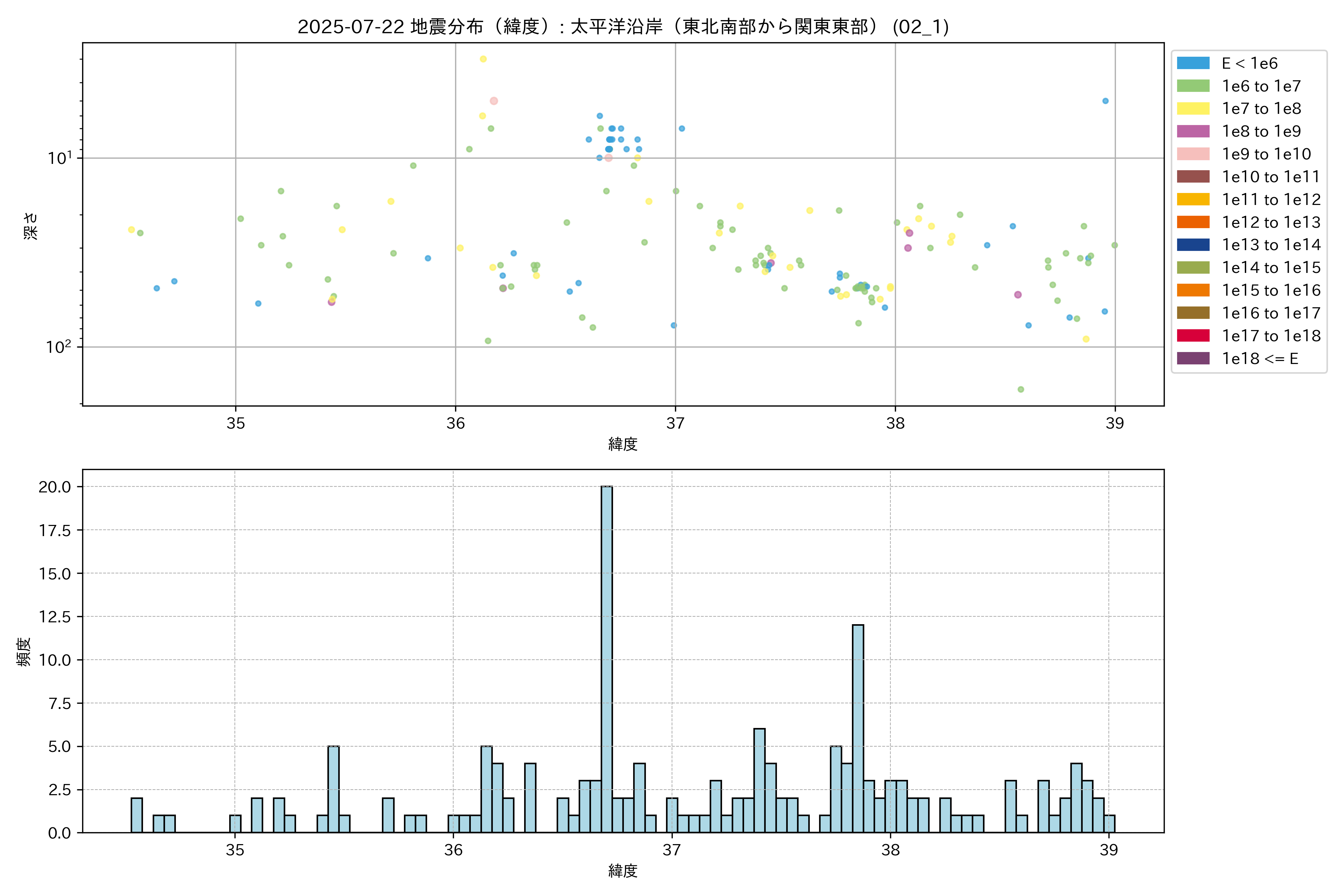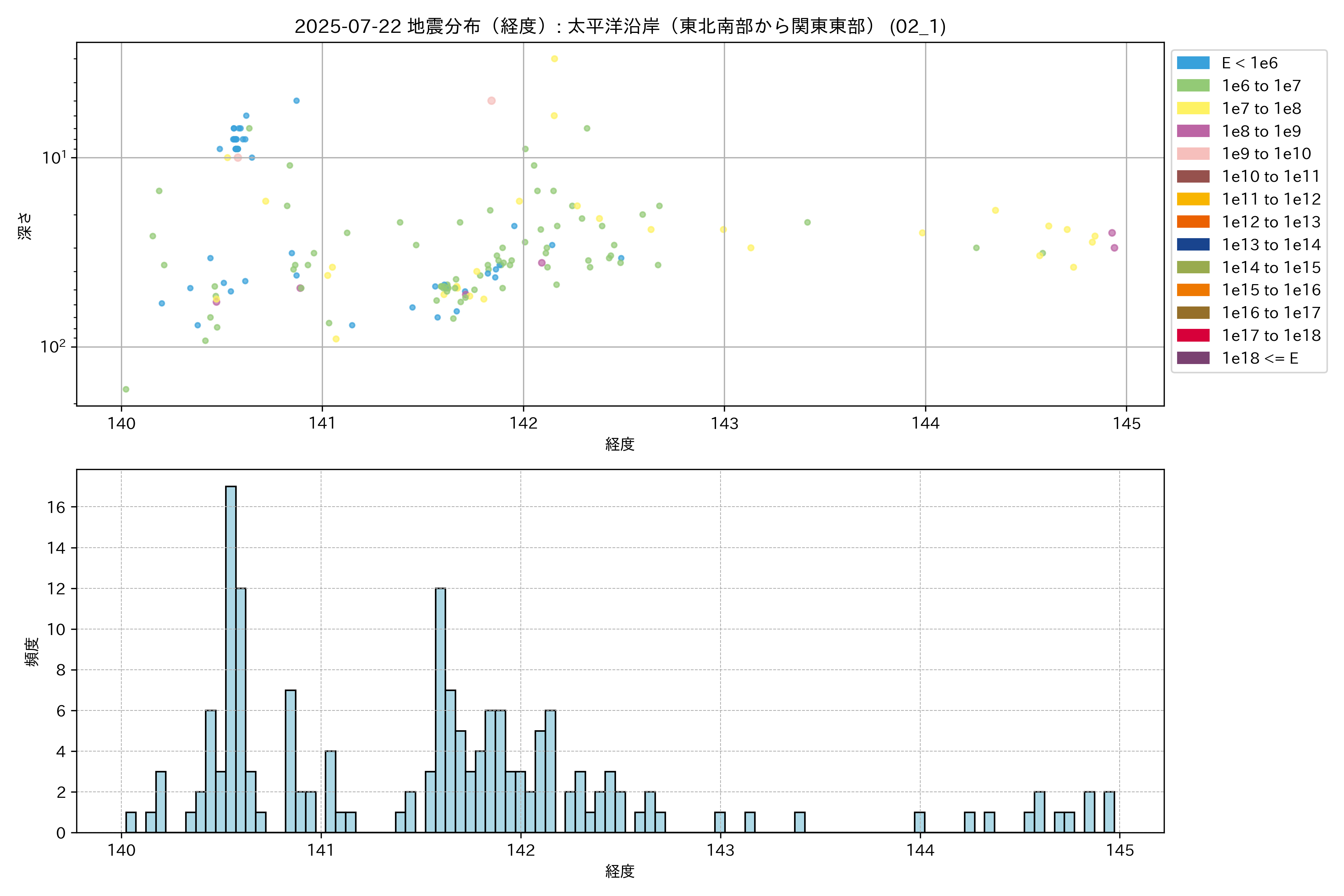 2025年07月22日 太平洋沿岸(東北南部から関東東部) エリア震源マップ