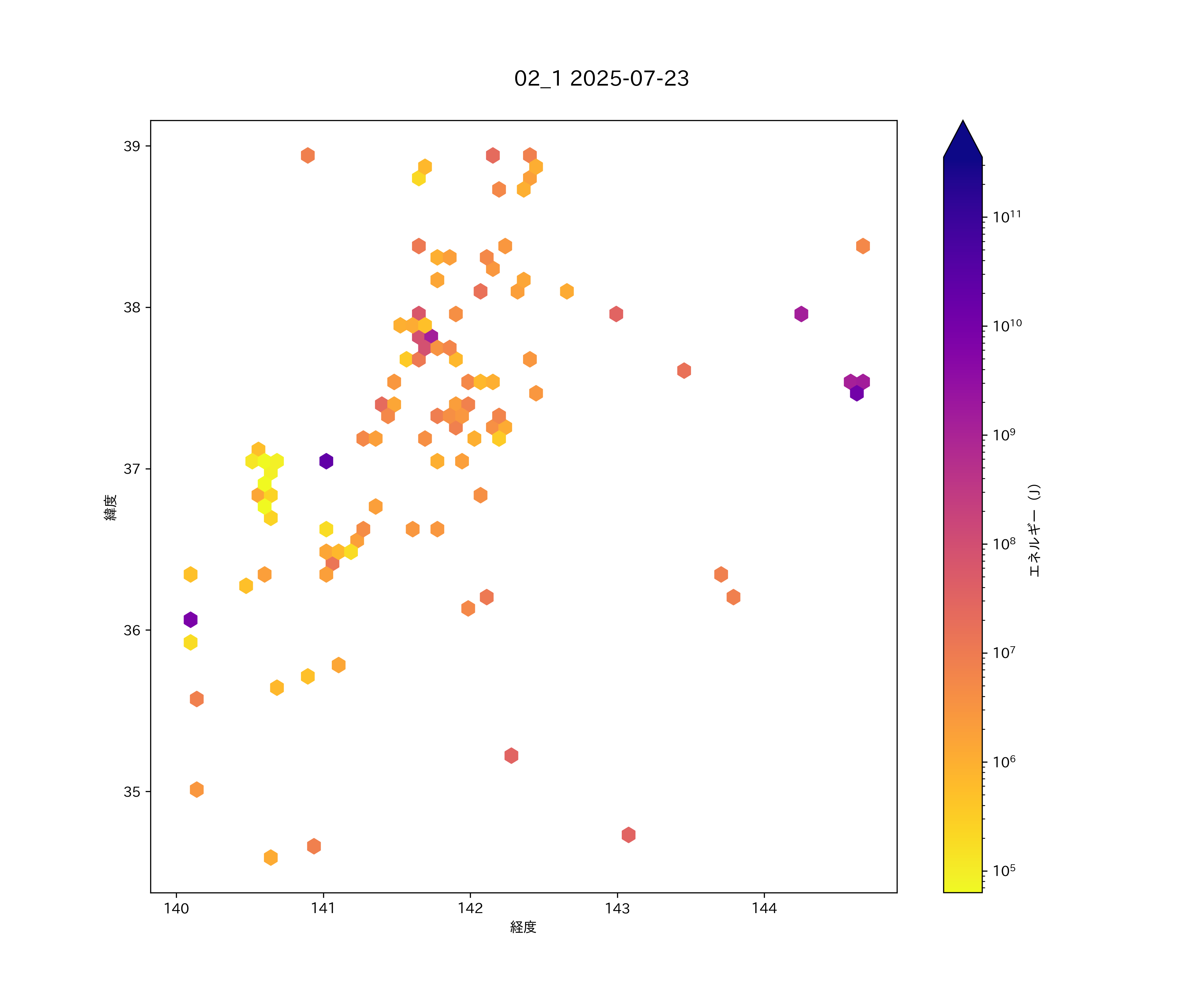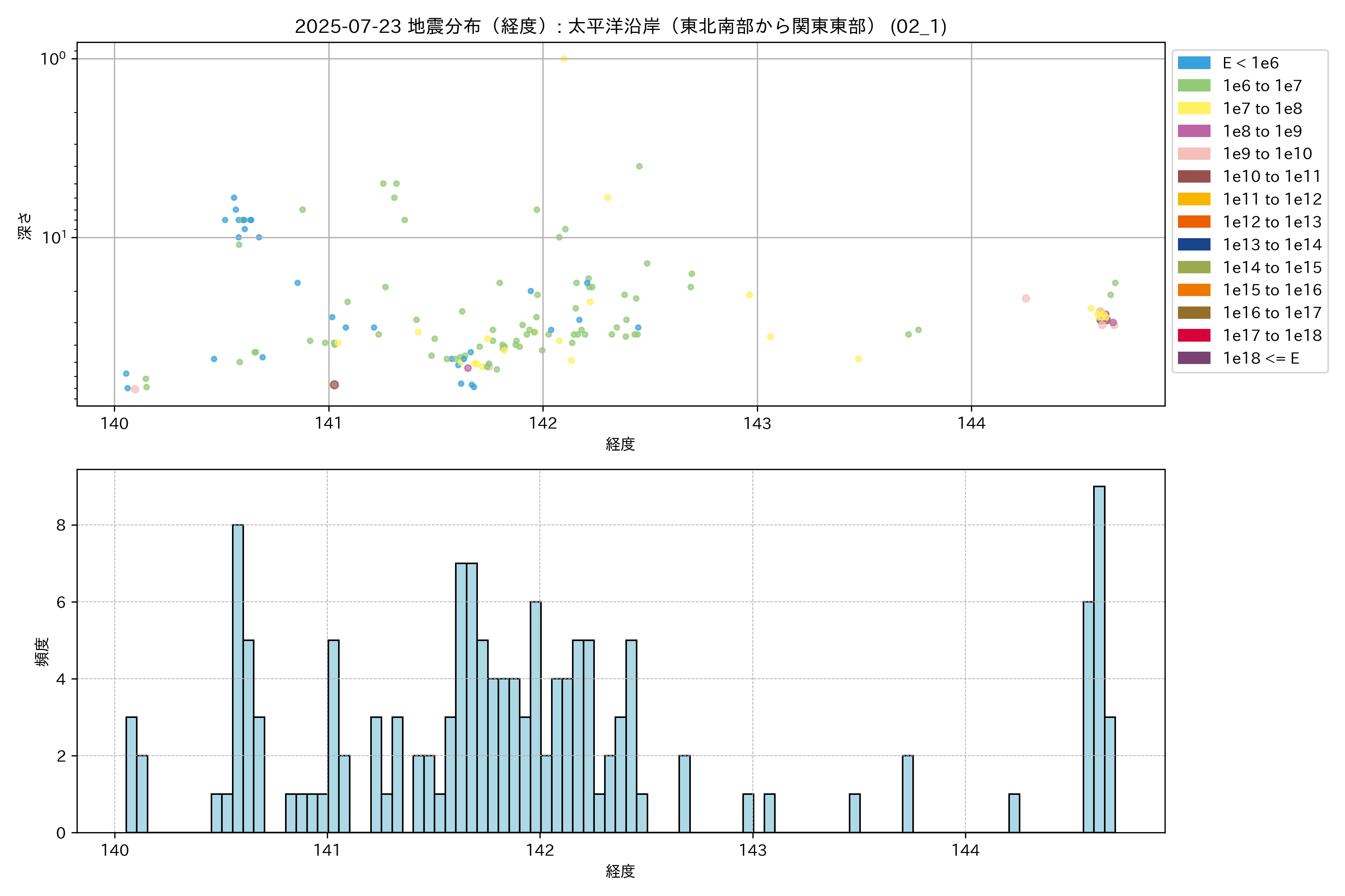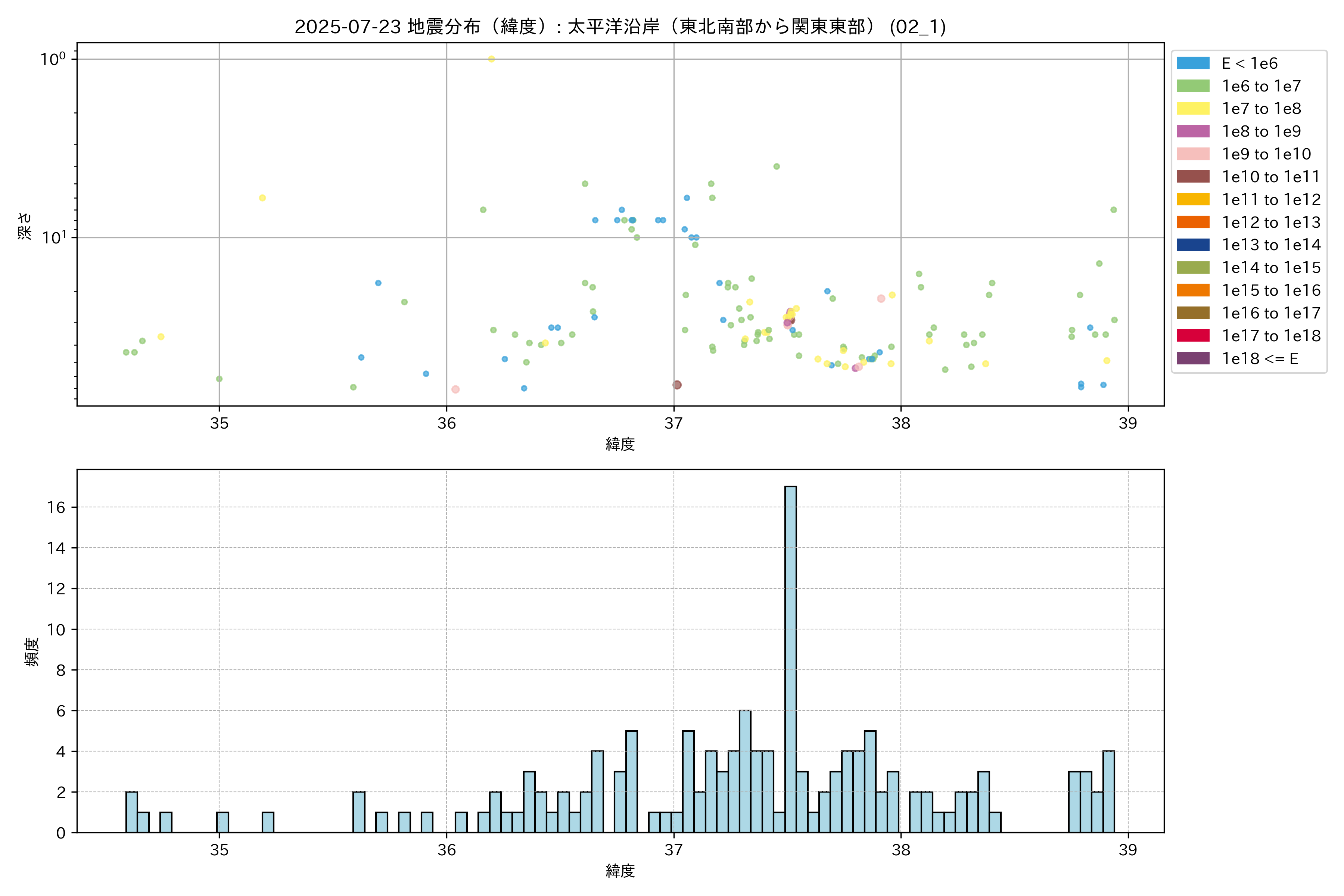 2025年07月23日 太平洋沿岸(東北南部から関東東部) エリア震源マップ