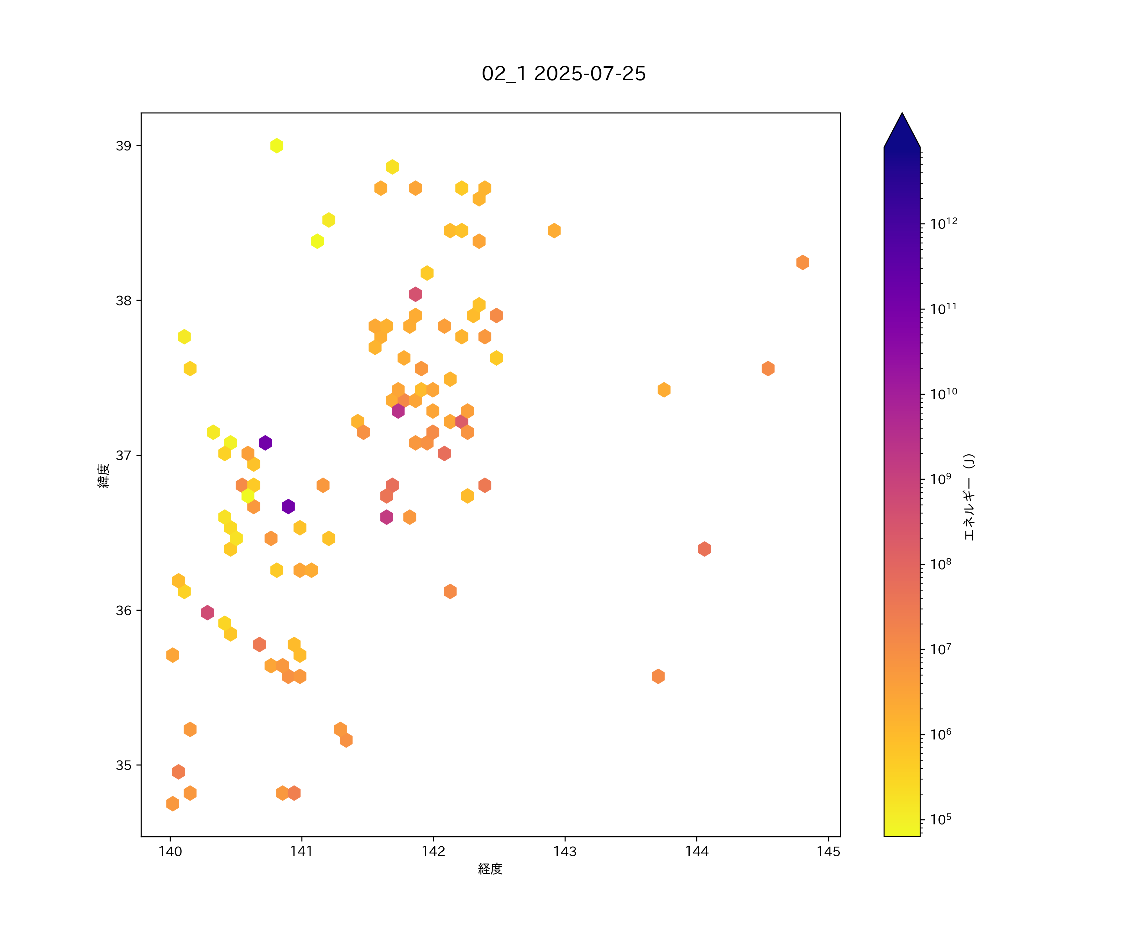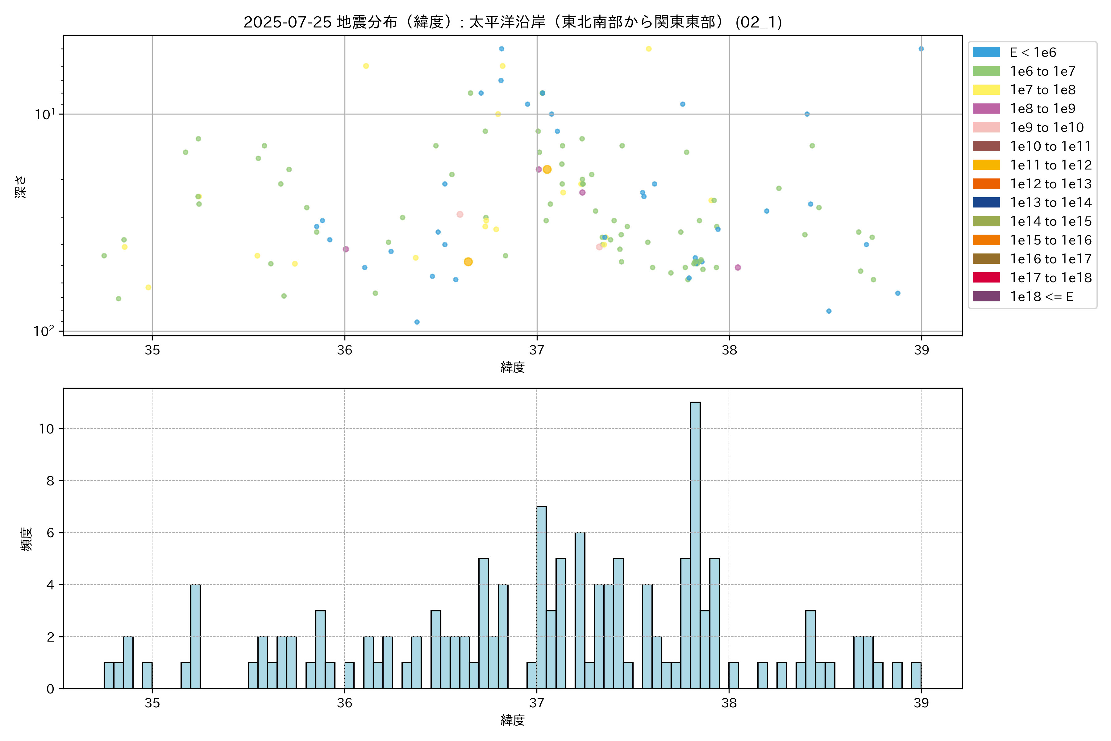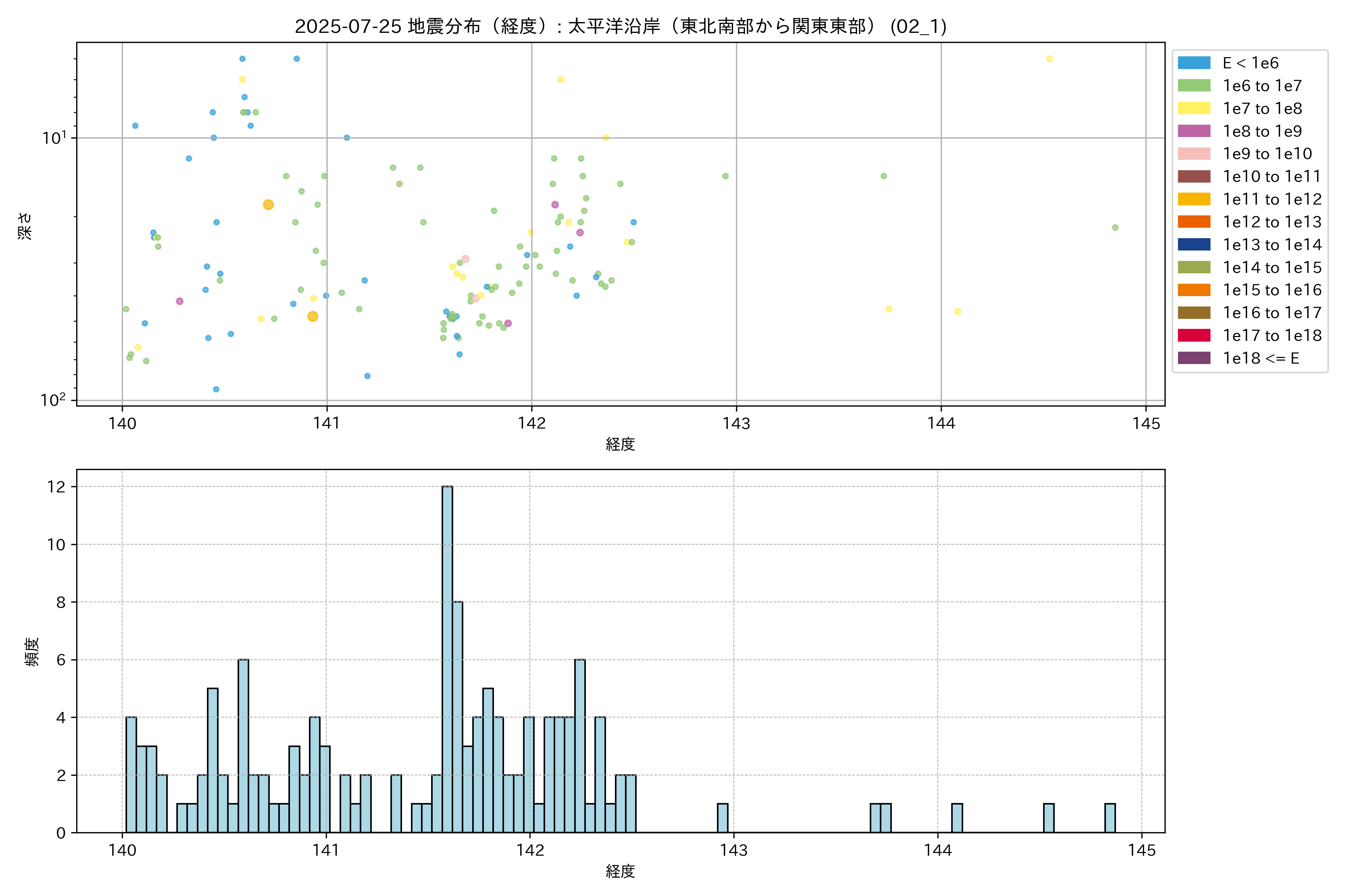 2025年07月25日 太平洋沿岸(東北南部から関東東部) エリア震源マップ