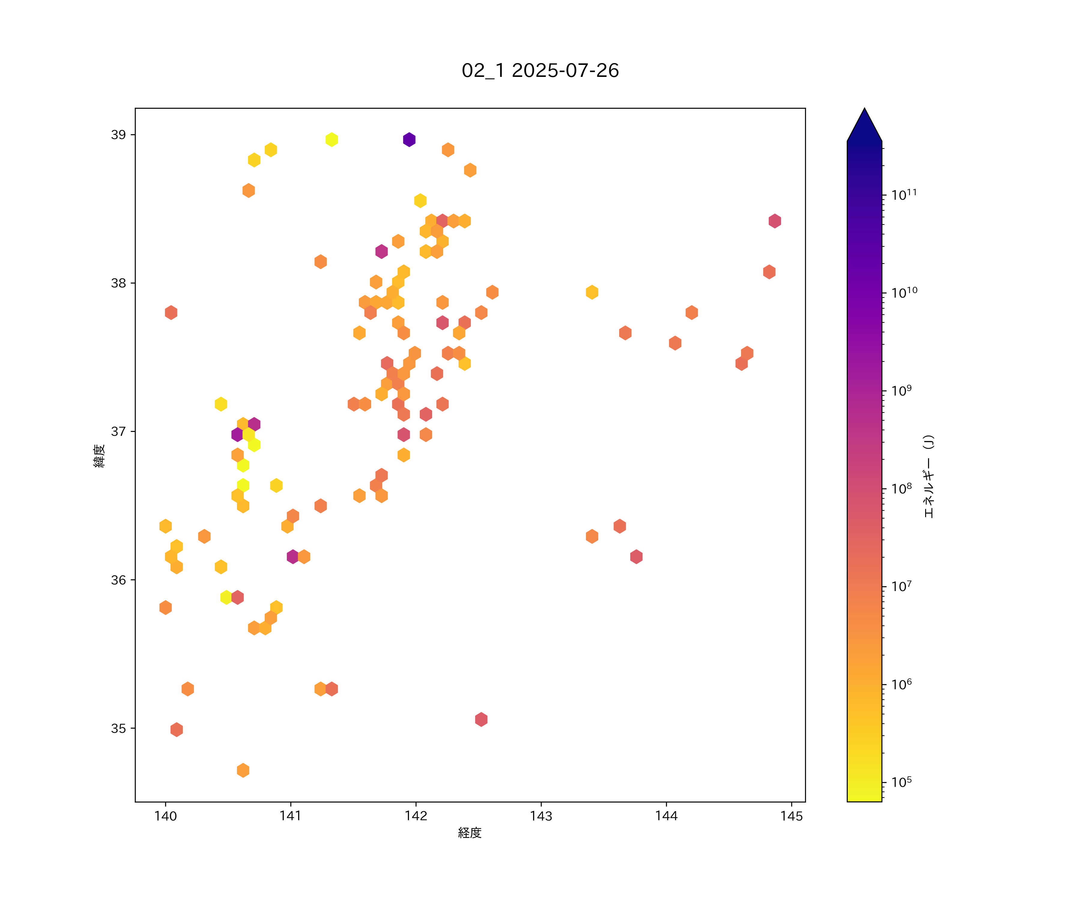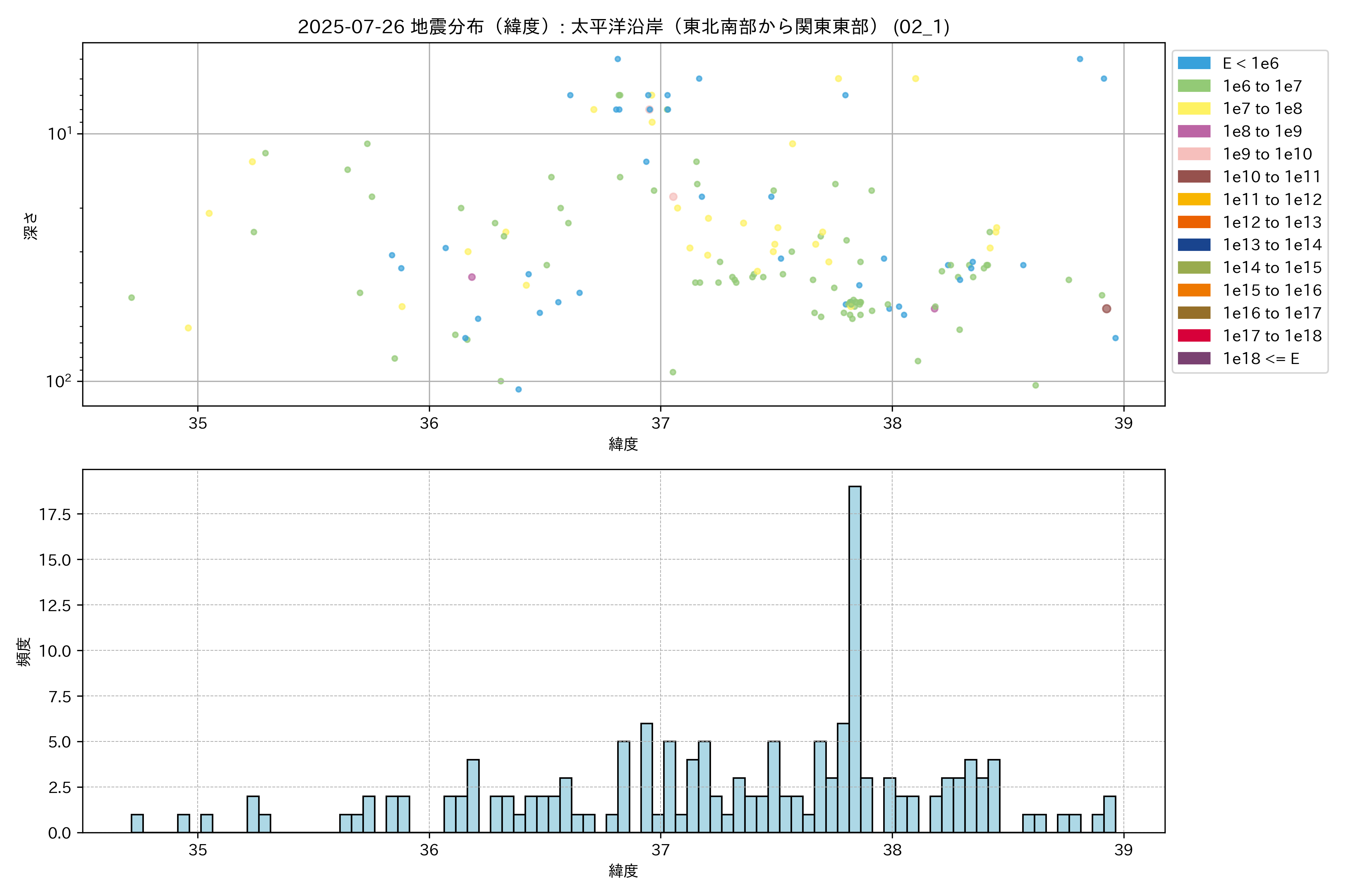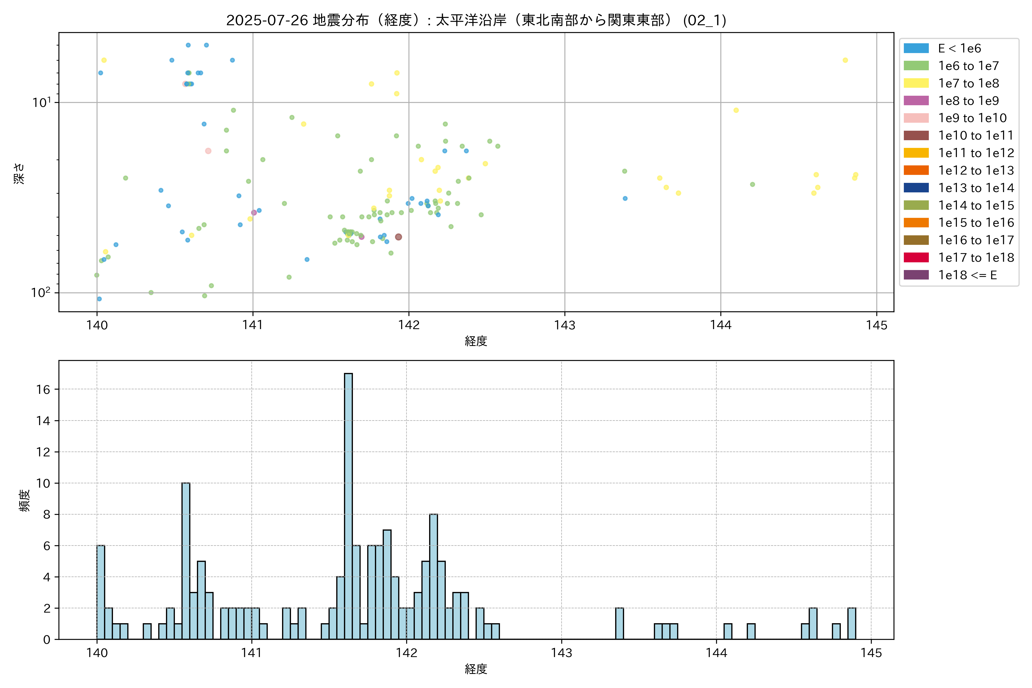 2025年07月26日 太平洋沿岸(東北南部から関東東部) エリア震源マップ