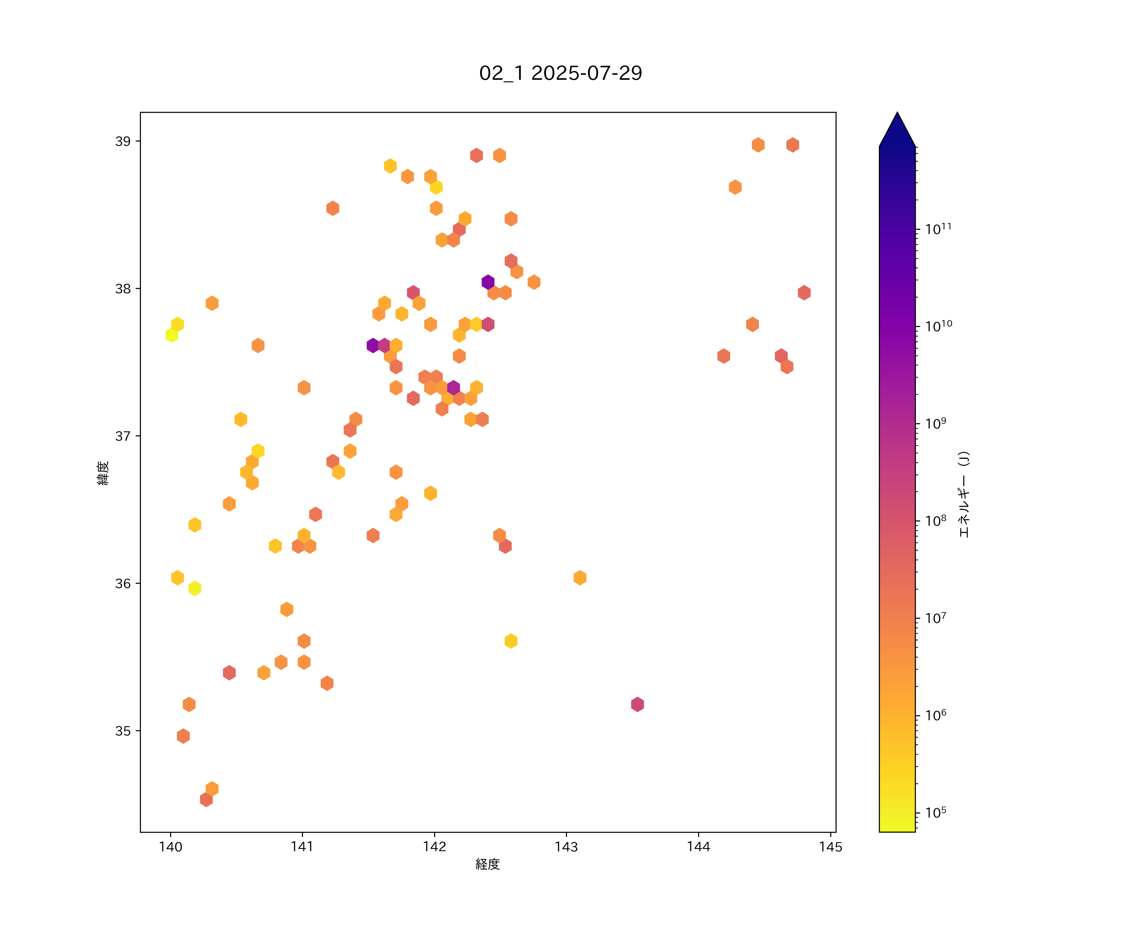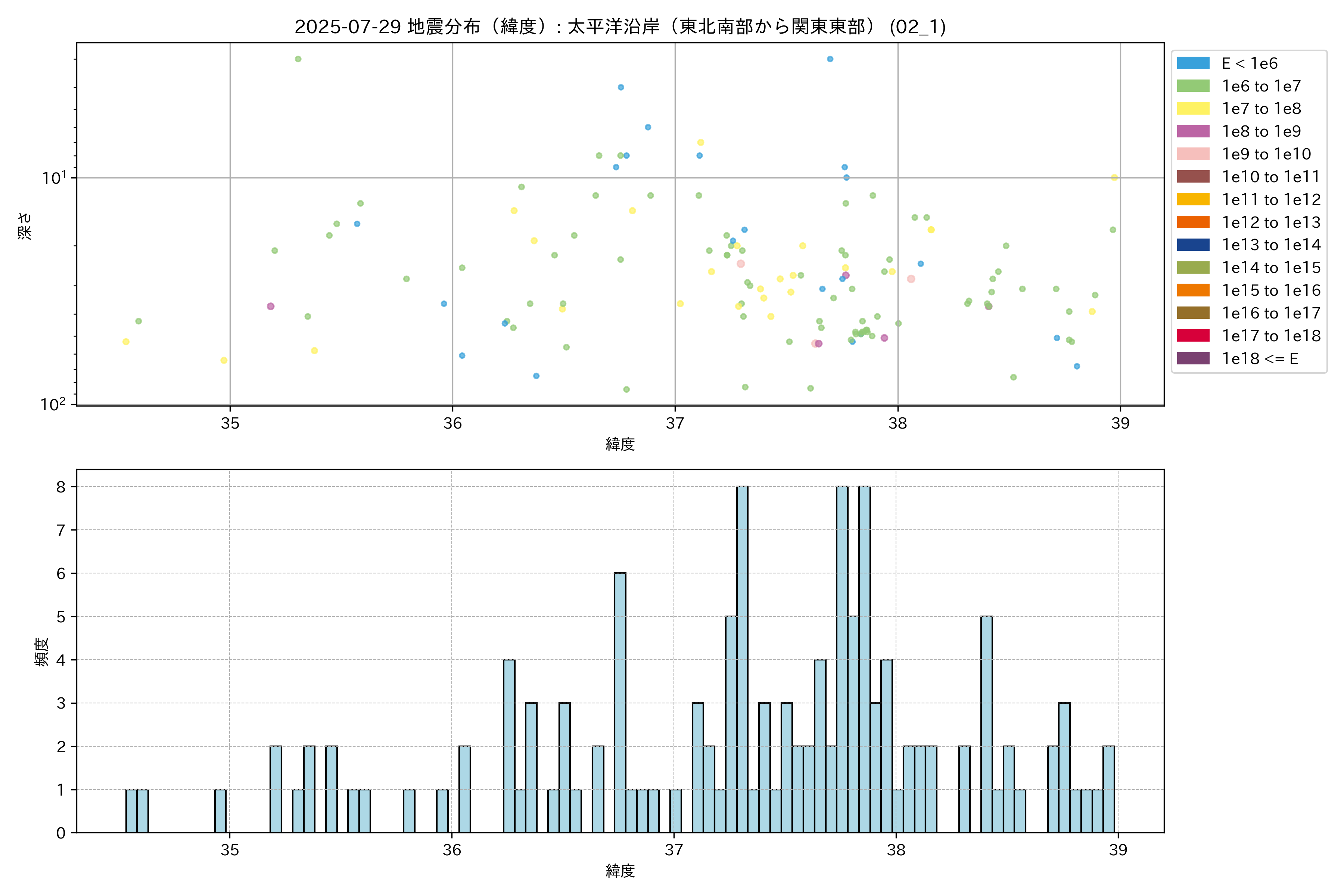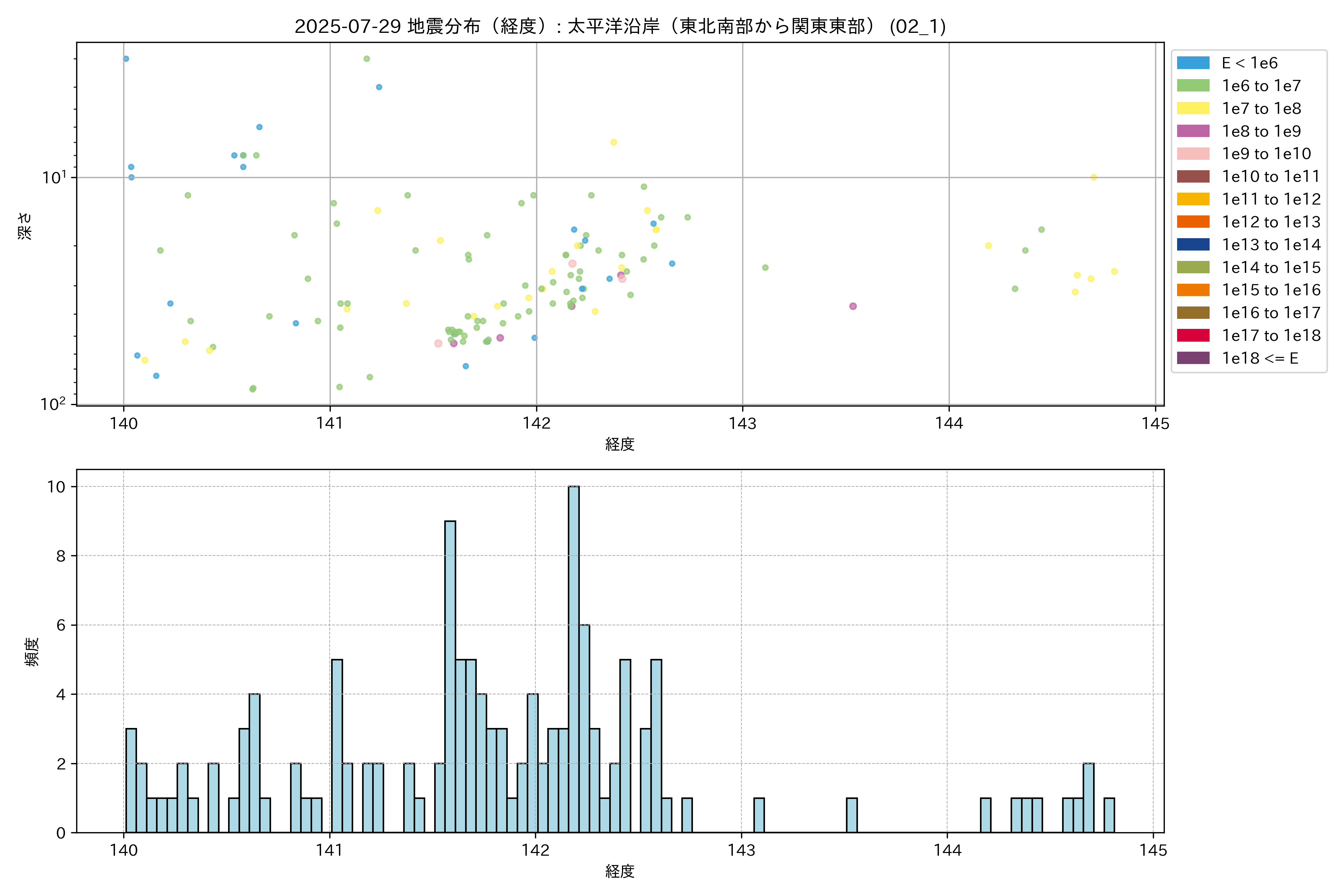 2025年07月29日 太平洋沿岸(東北南部から関東東部) エリア震源マップ