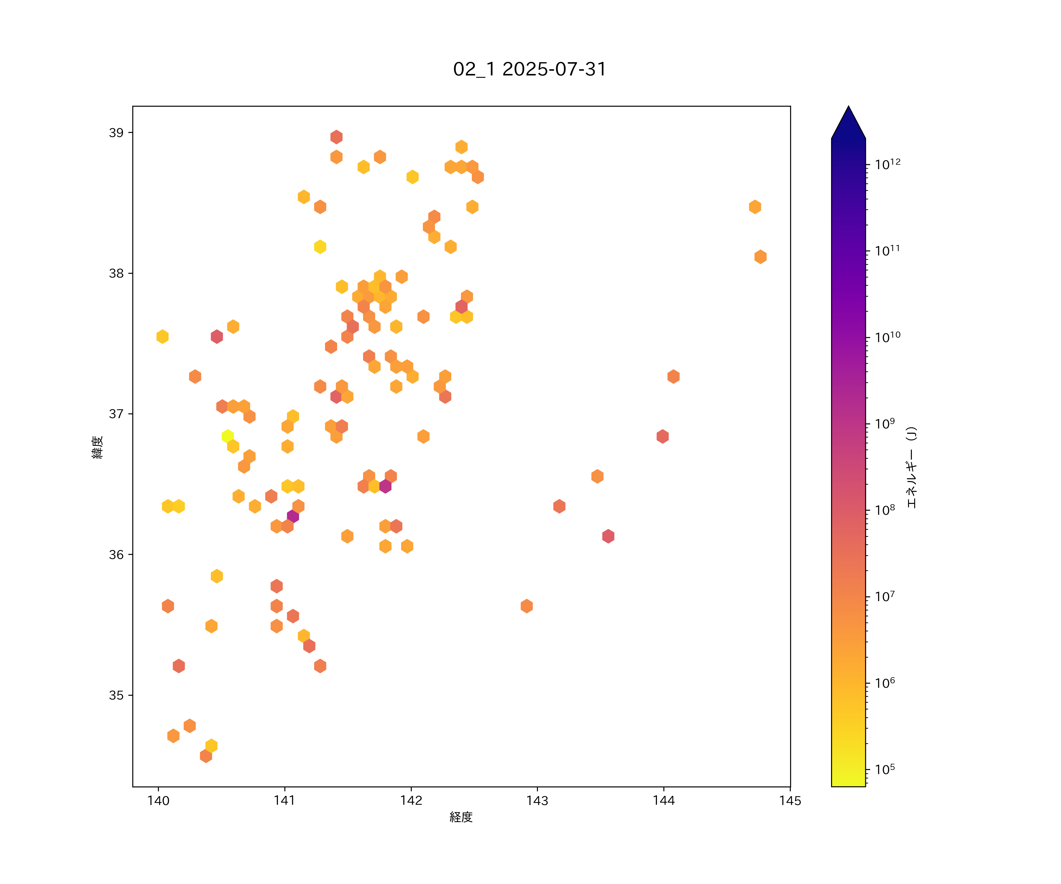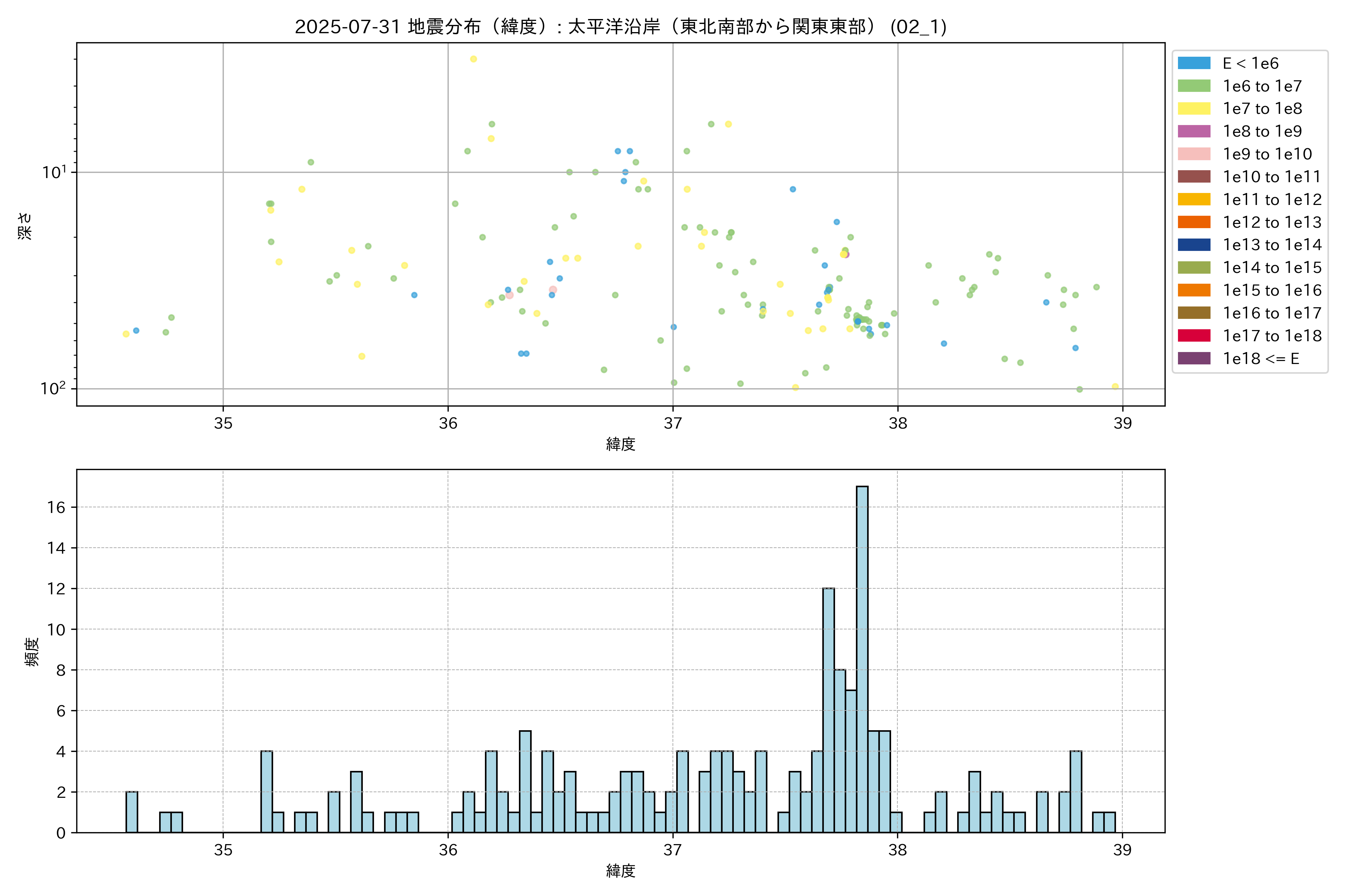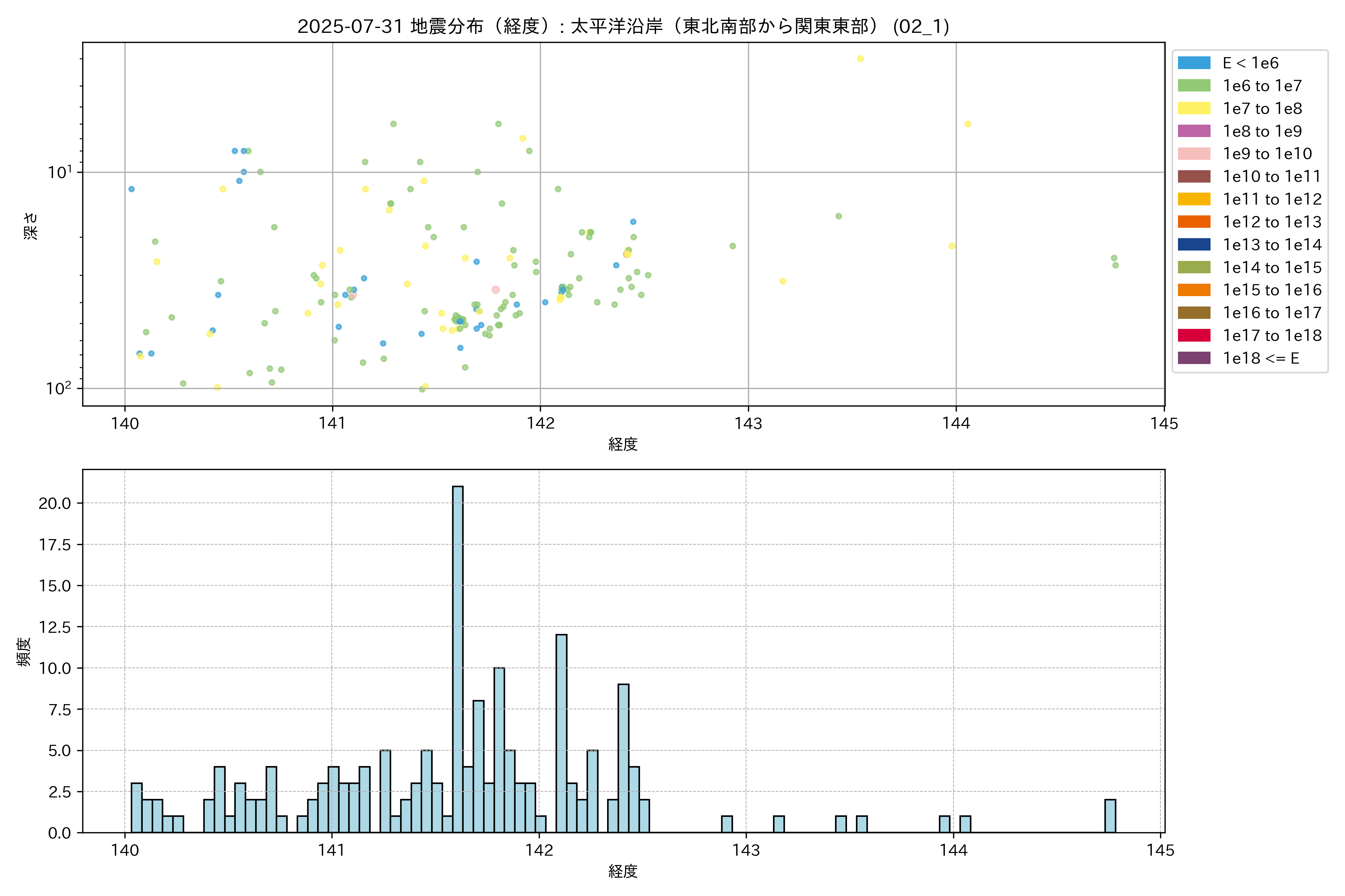 2025年07月31日 太平洋沿岸(東北南部から関東東部) エリア震源マップ