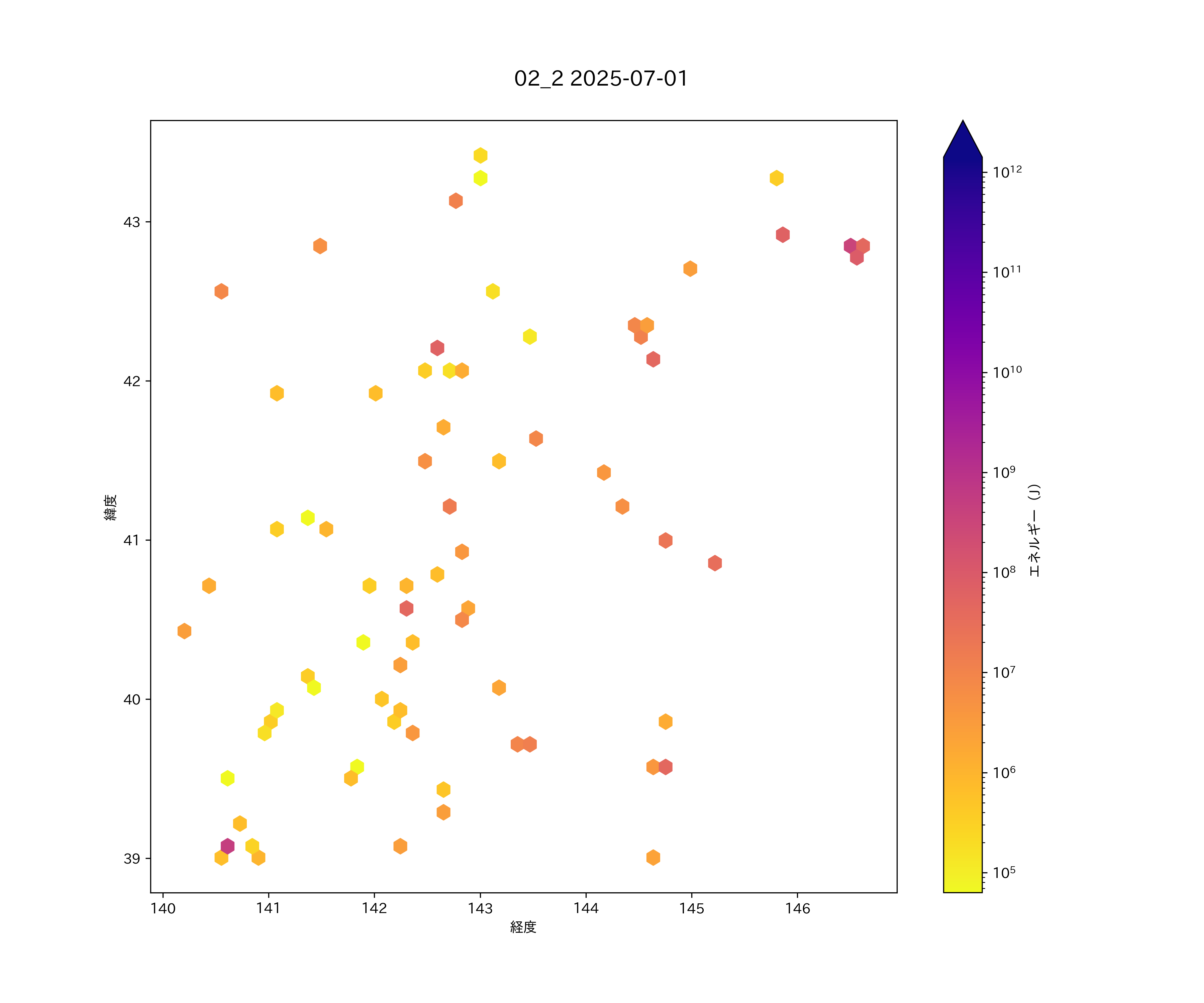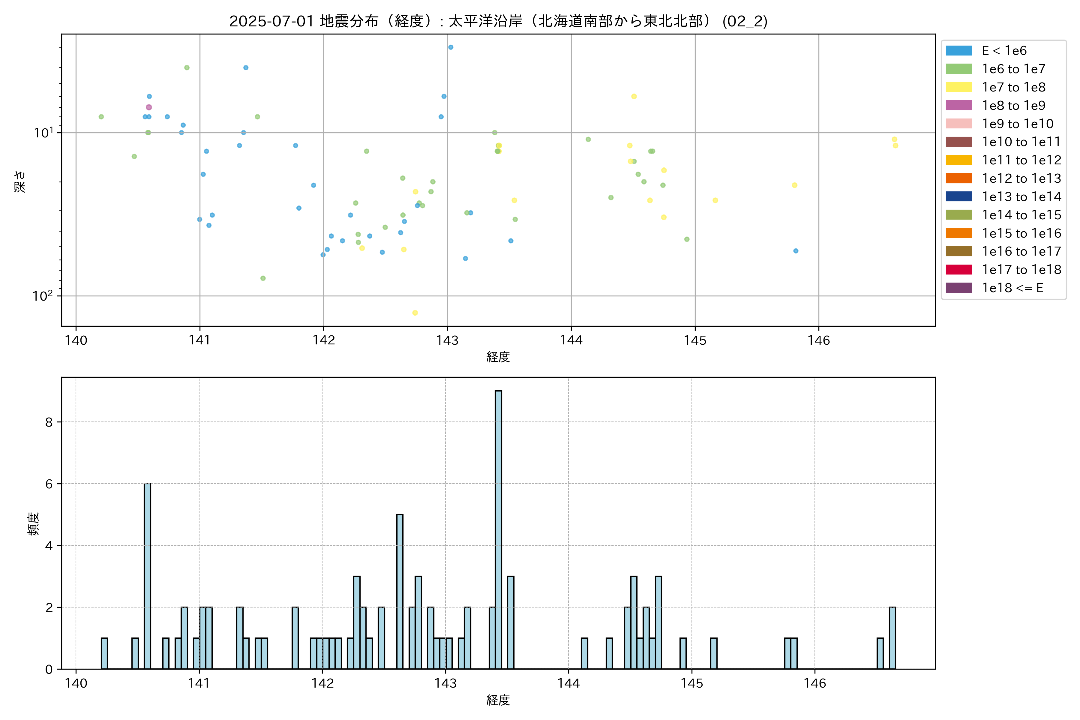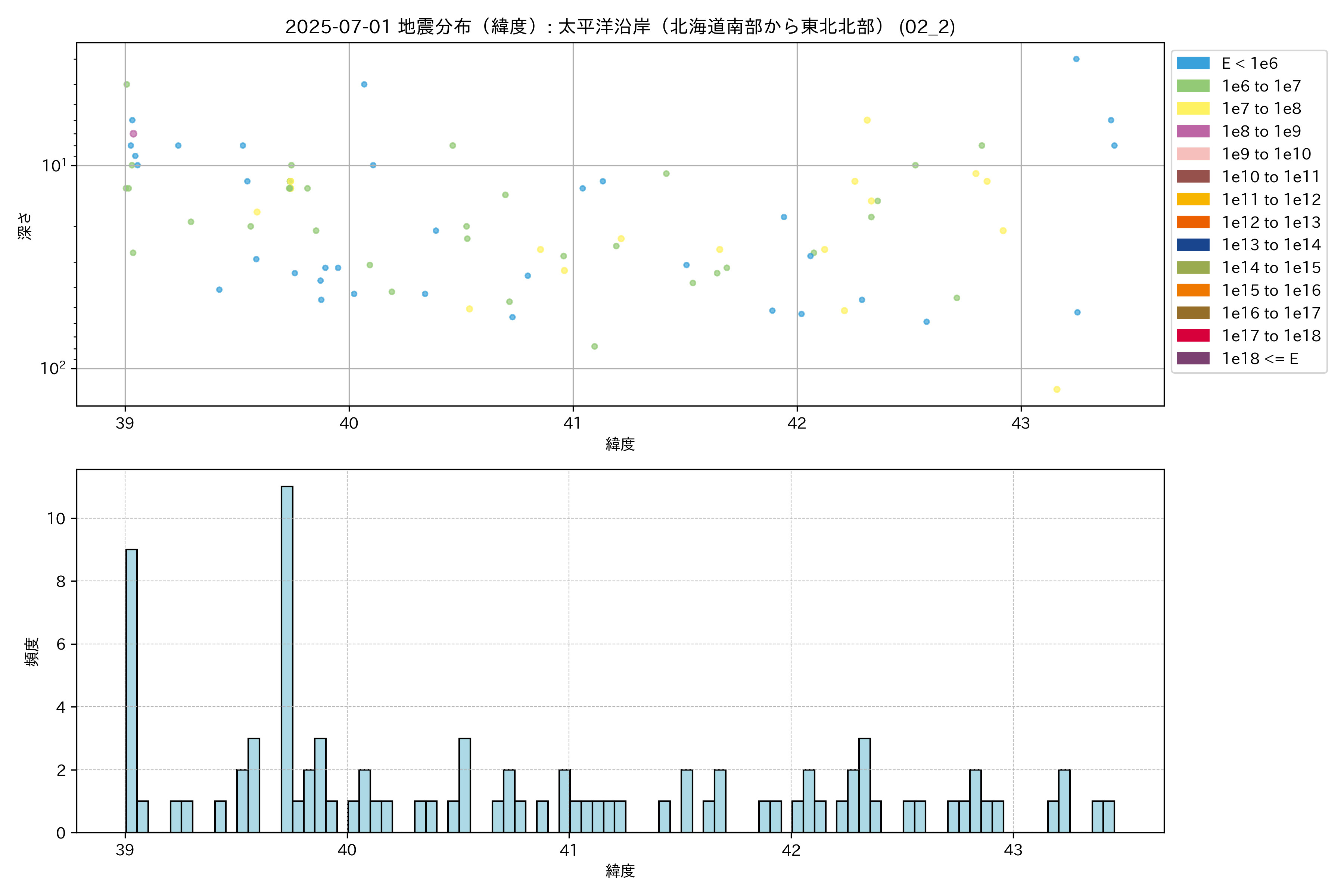 2025年07月01日 太平洋沿岸(北海道南部から東北北部) エリア震源マップ