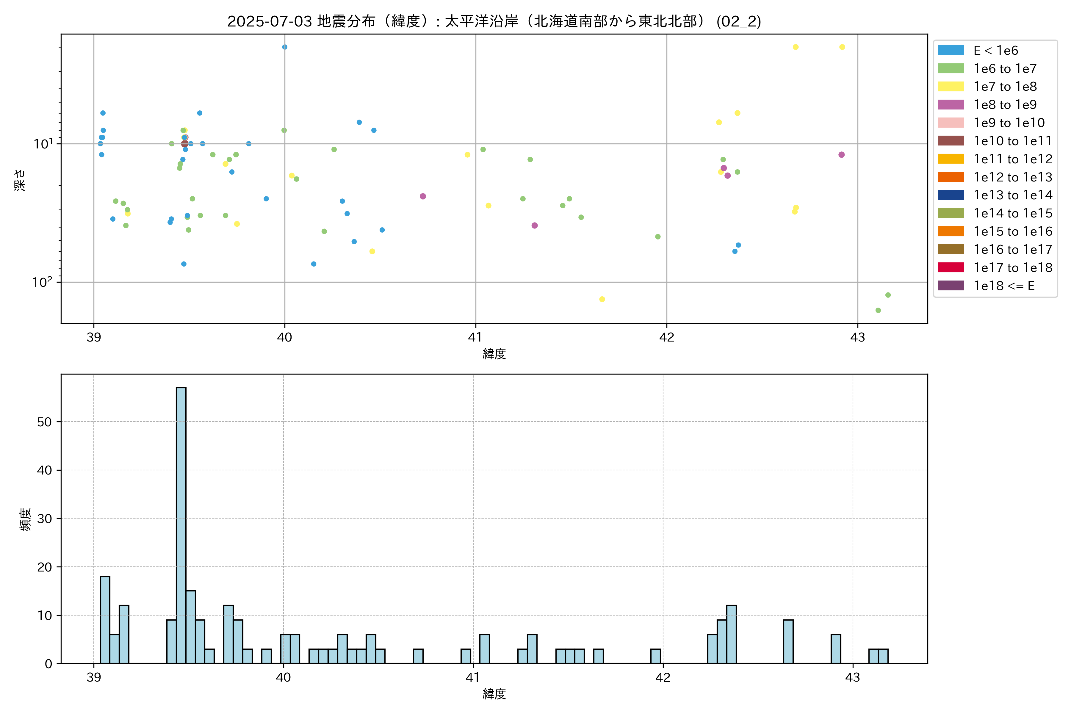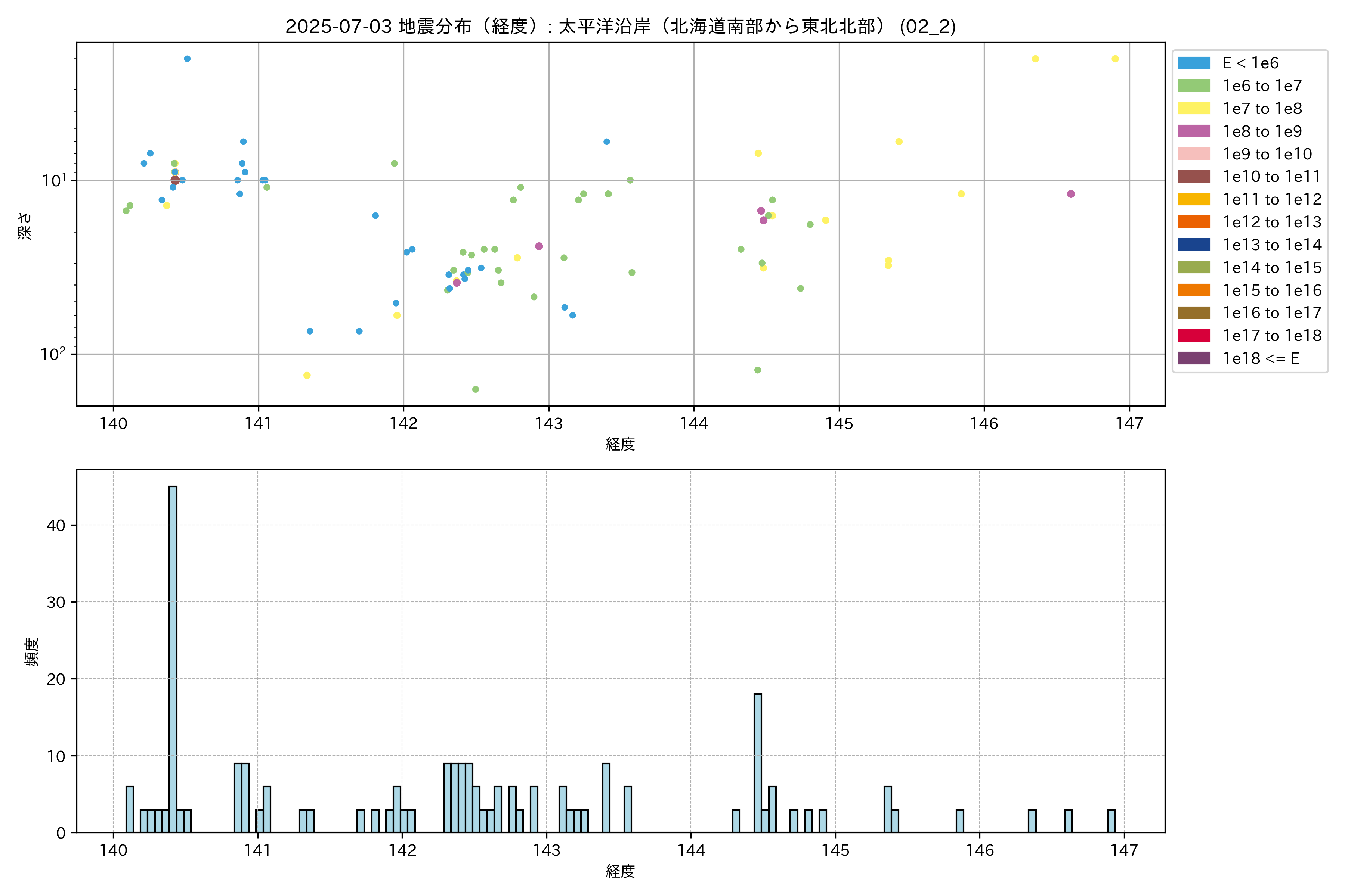 2025年07月03日 太平洋沿岸(北海道南部から東北北部) エリア震源マップ