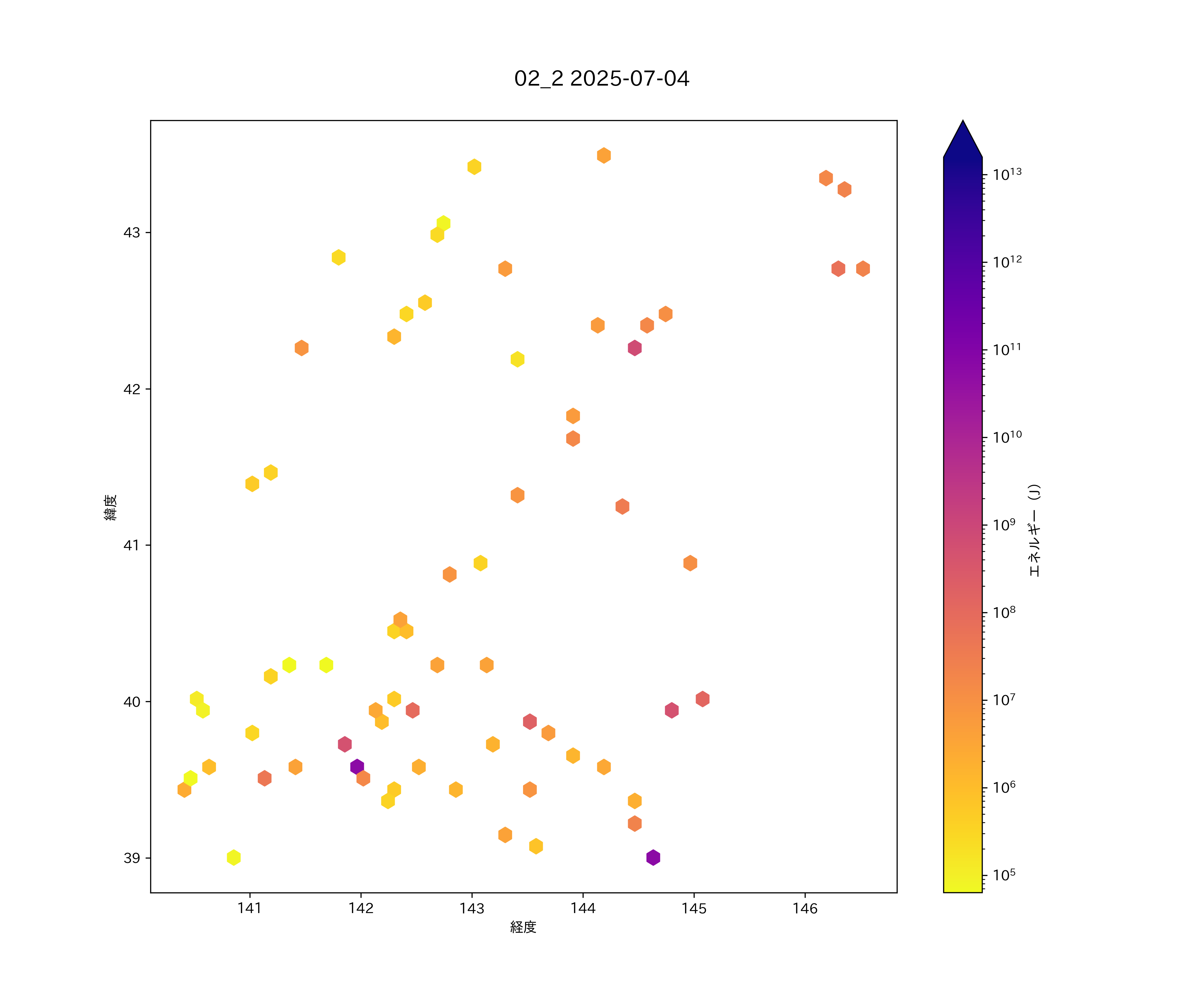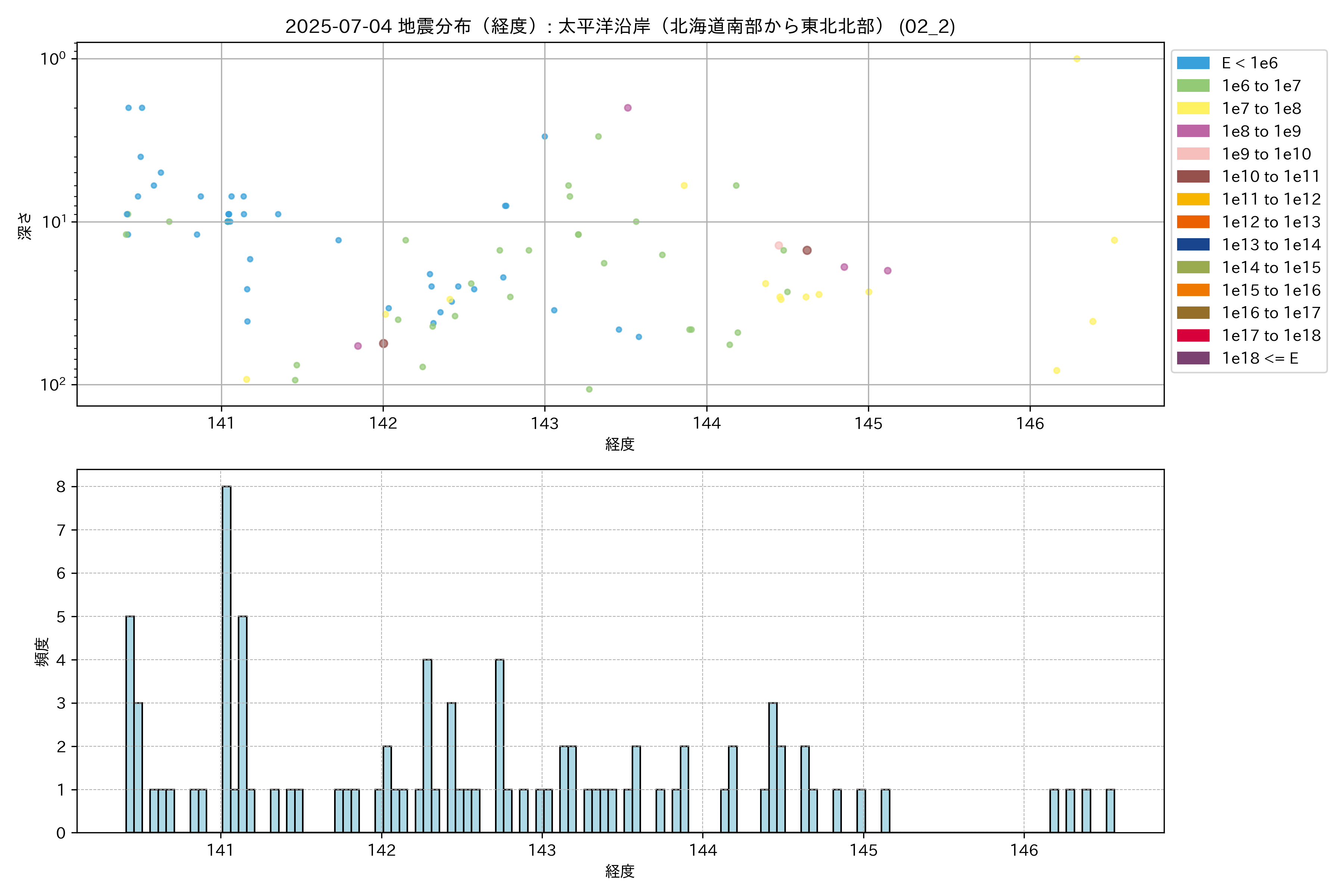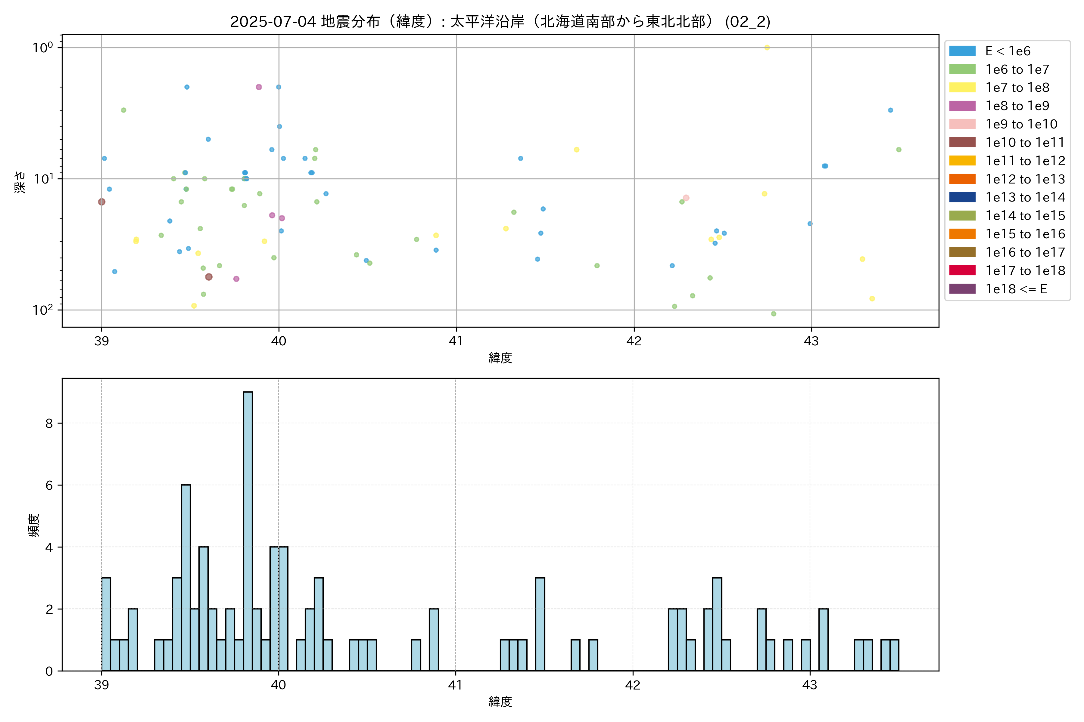 2025年07月04日 太平洋沿岸(北海道南部から東北北部) エリア震源マップ