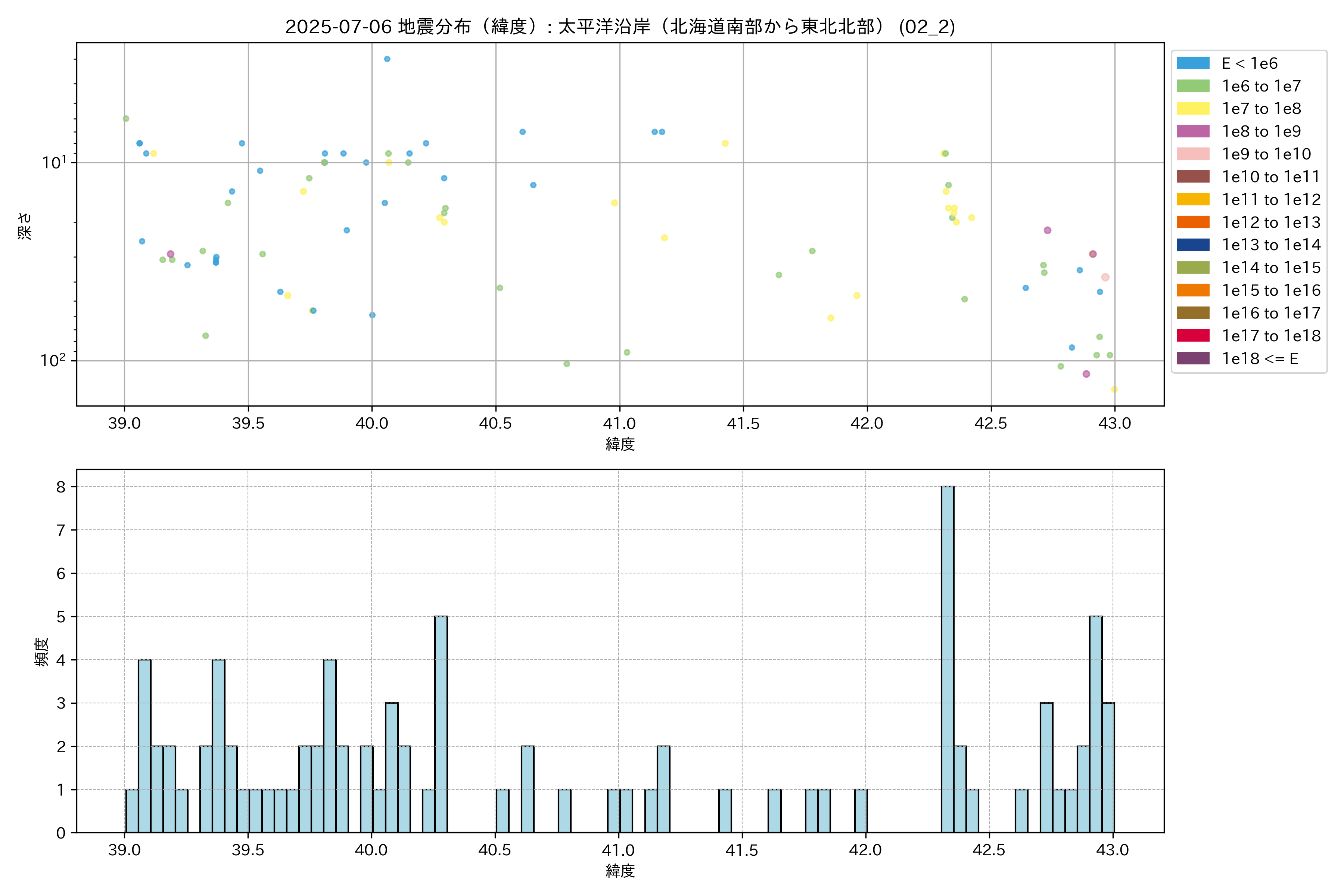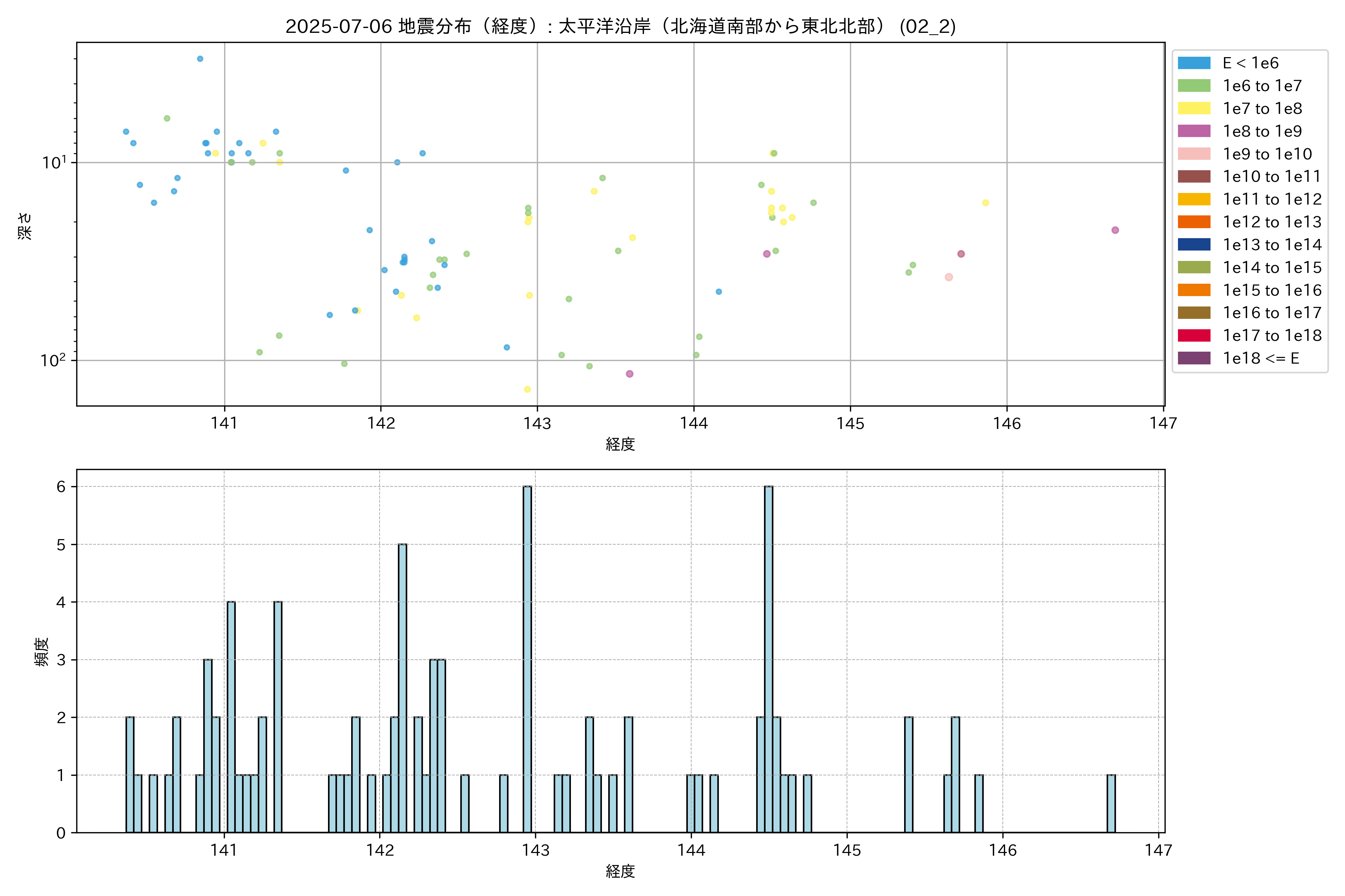 2025年07月06日 太平洋沿岸(北海道南部から東北北部) エリア震源マップ