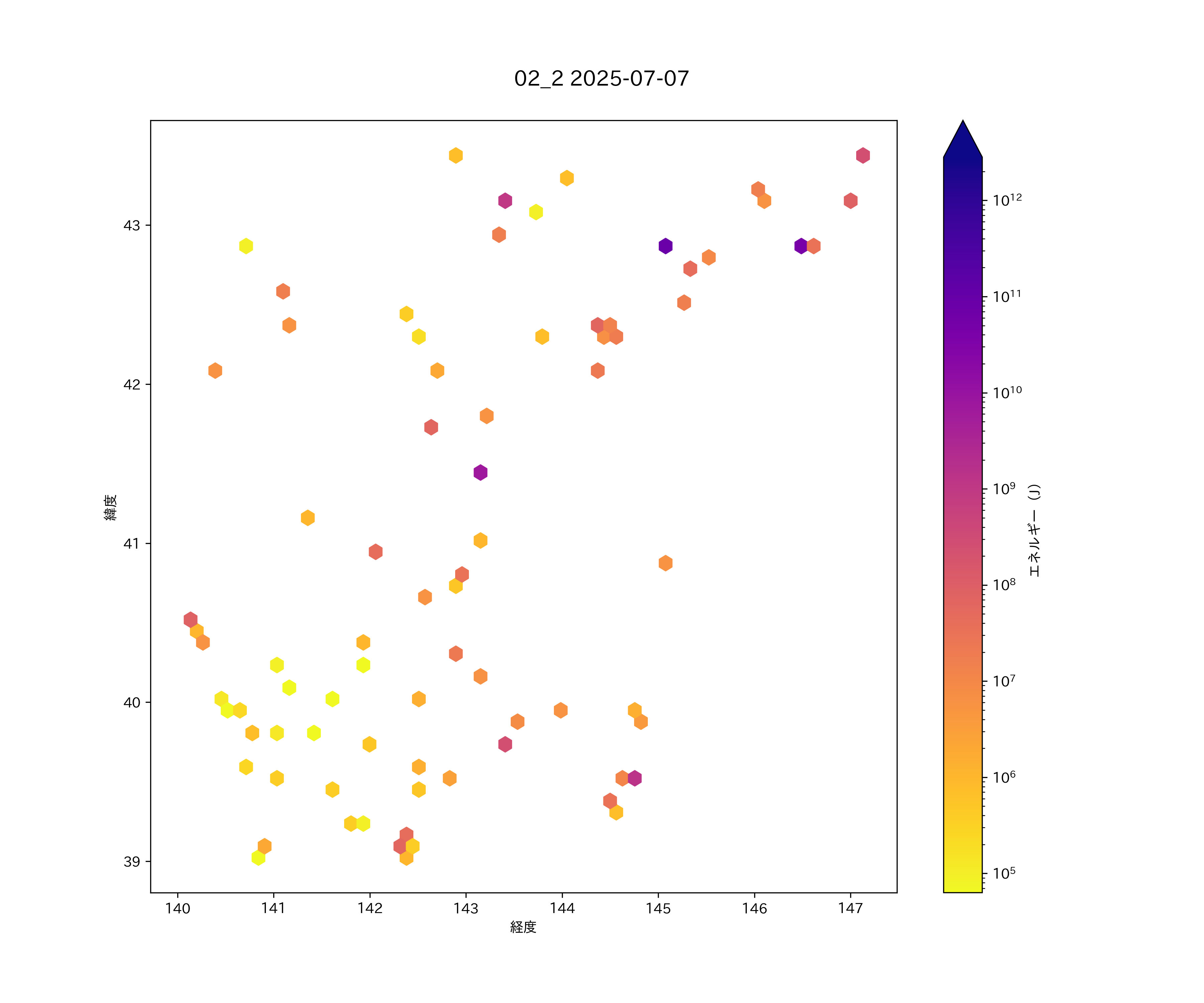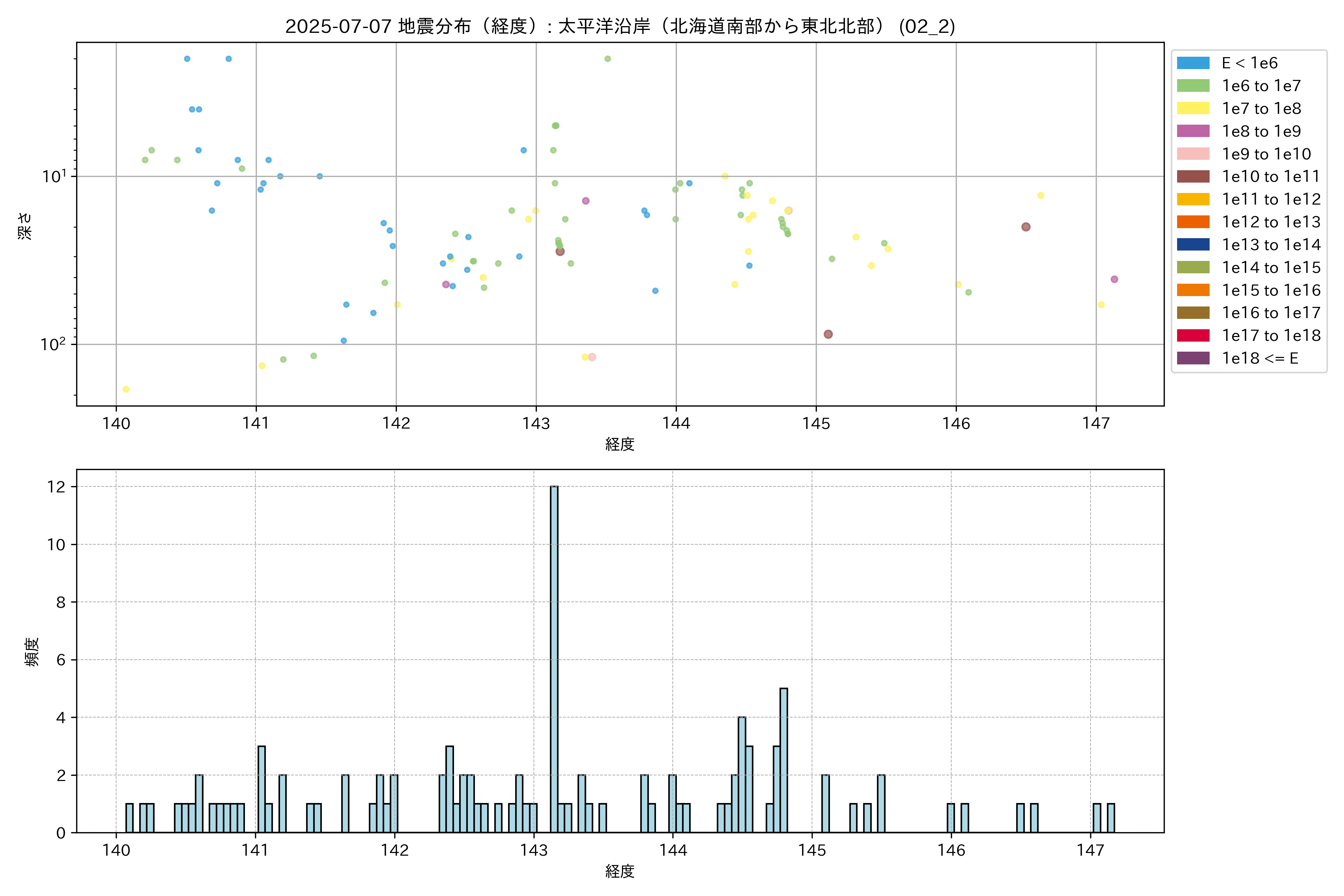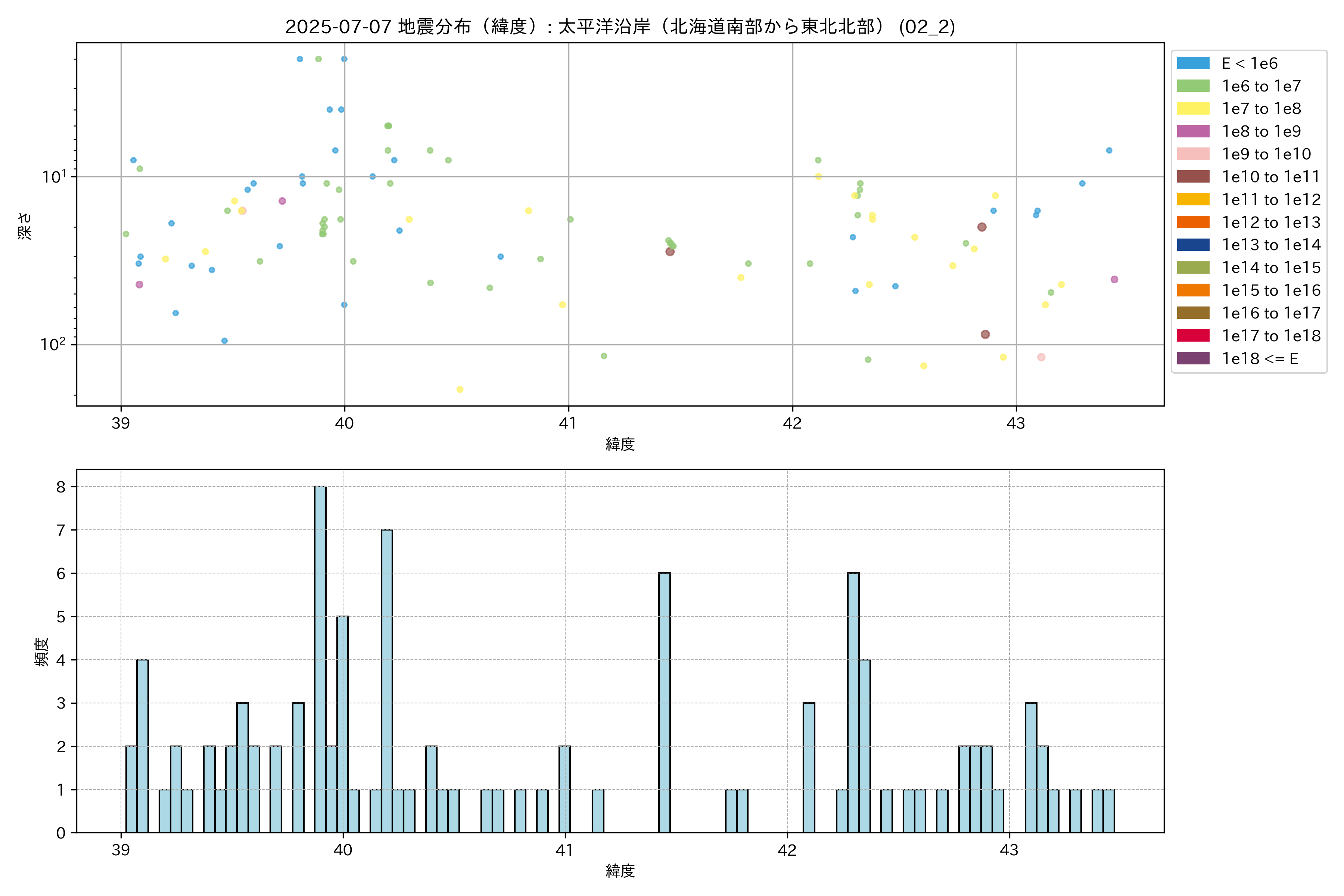 2025年07月07日 太平洋沿岸(北海道南部から東北北部) エリア震源マップ
