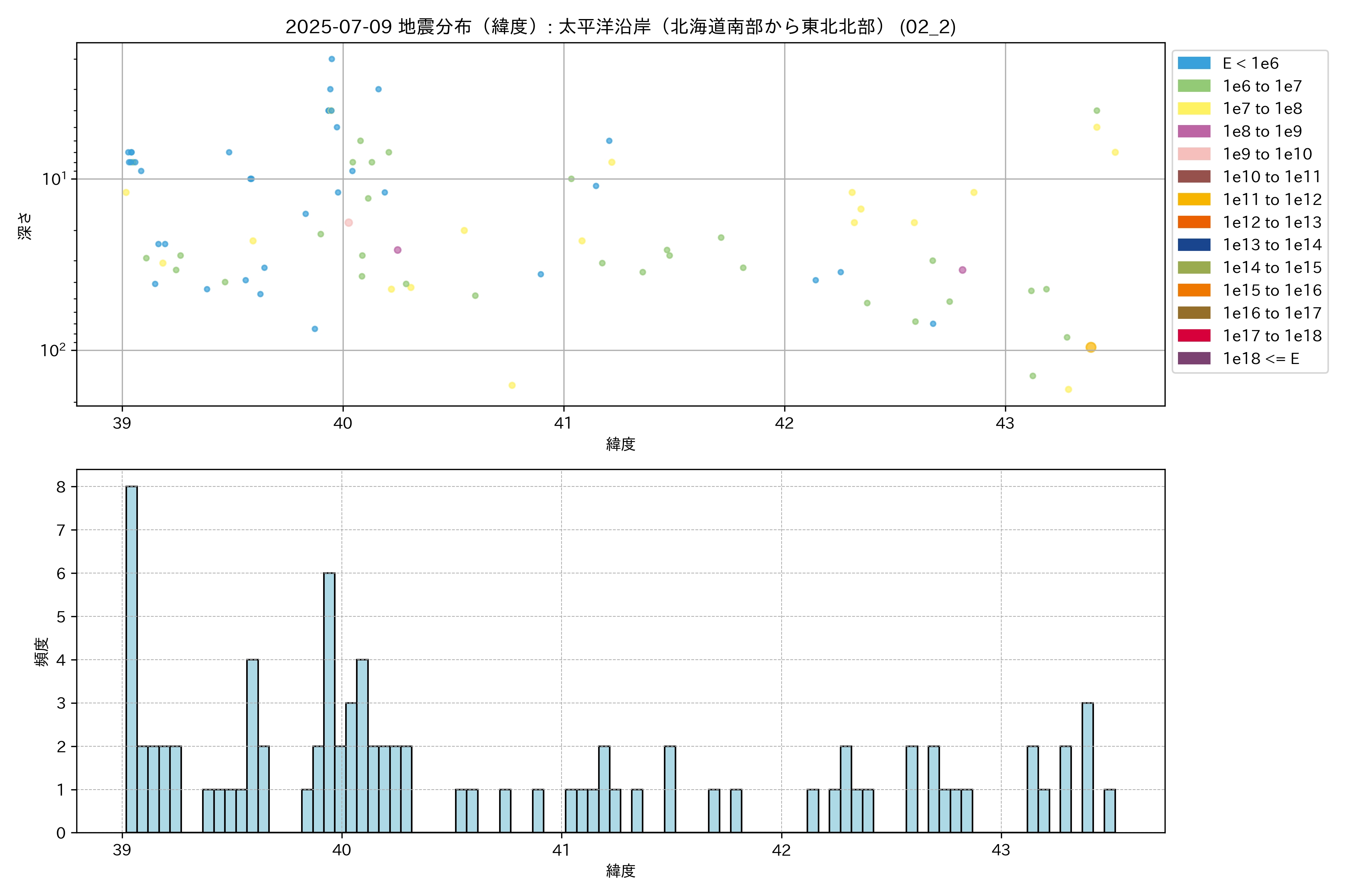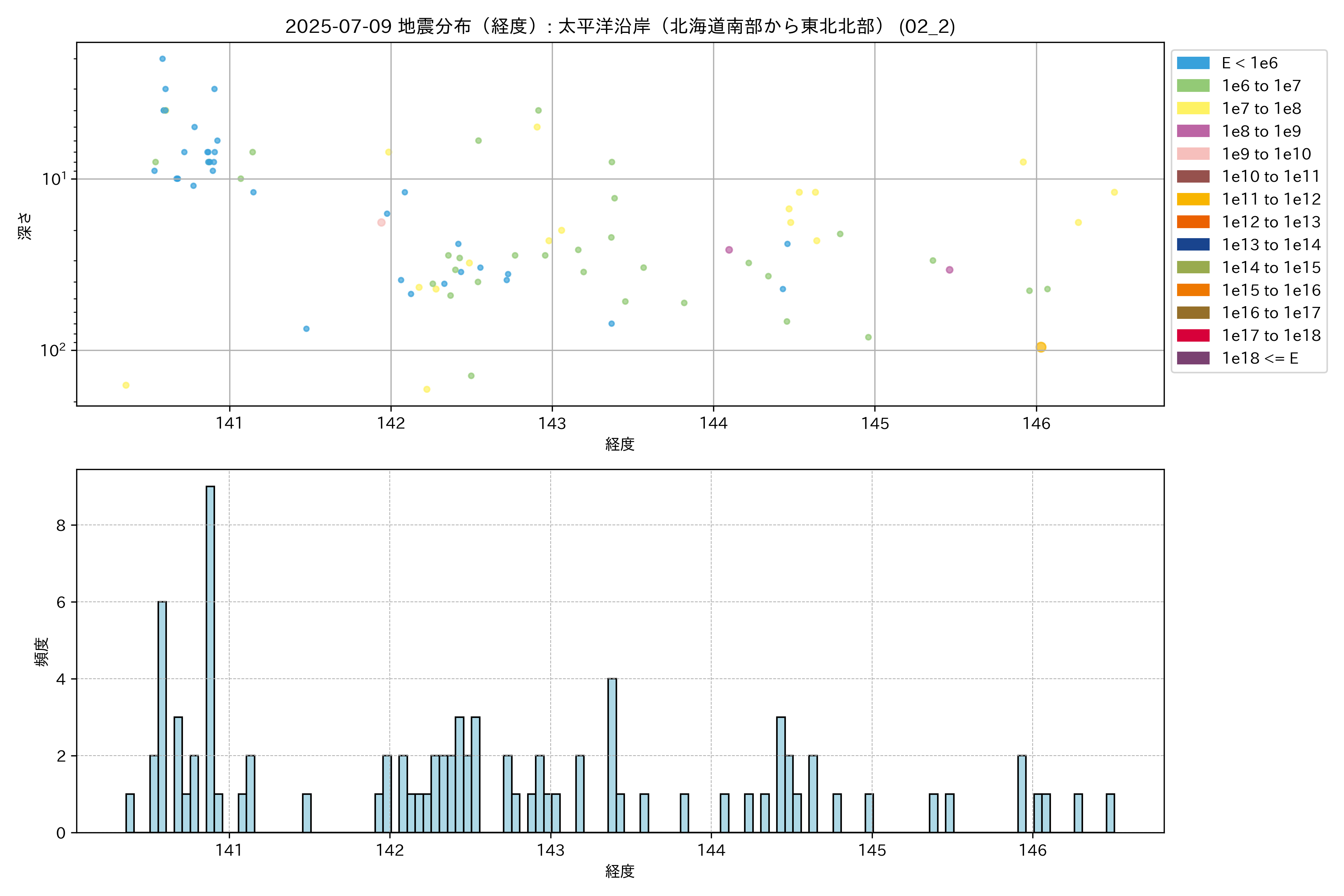 2025年07月09日 太平洋沿岸(北海道南部から東北北部) エリア震源マップ