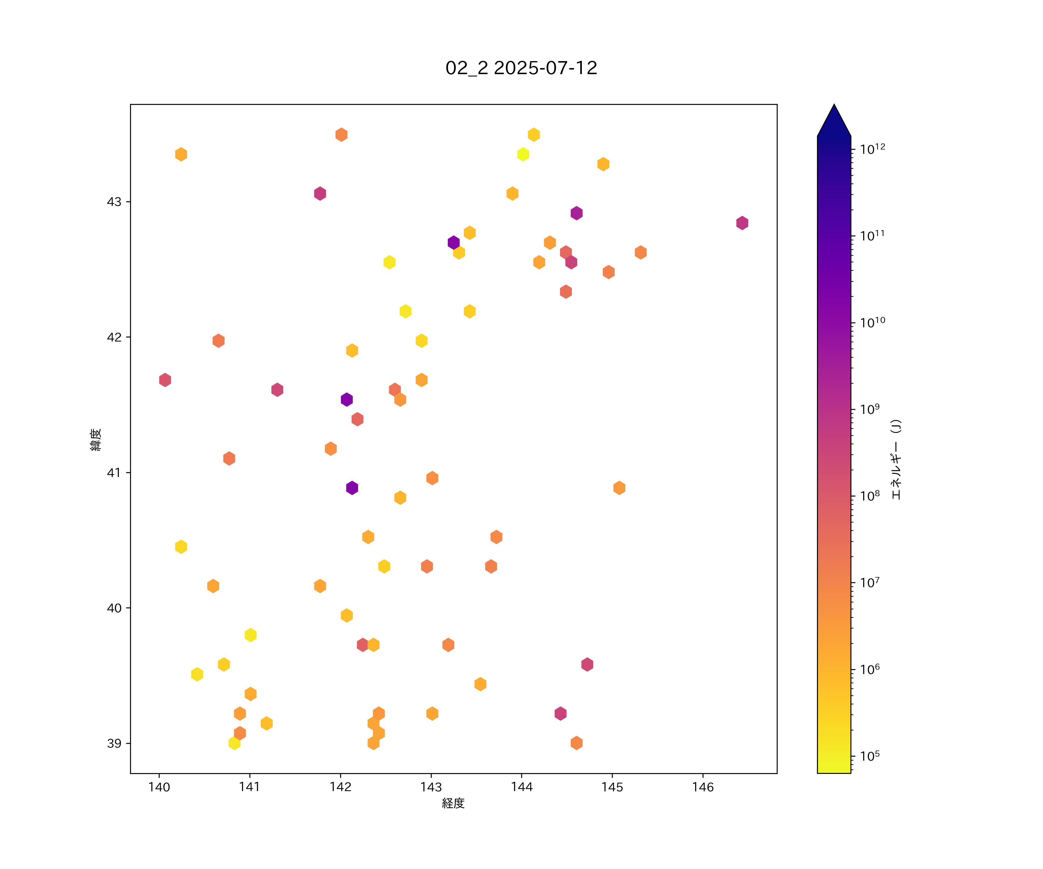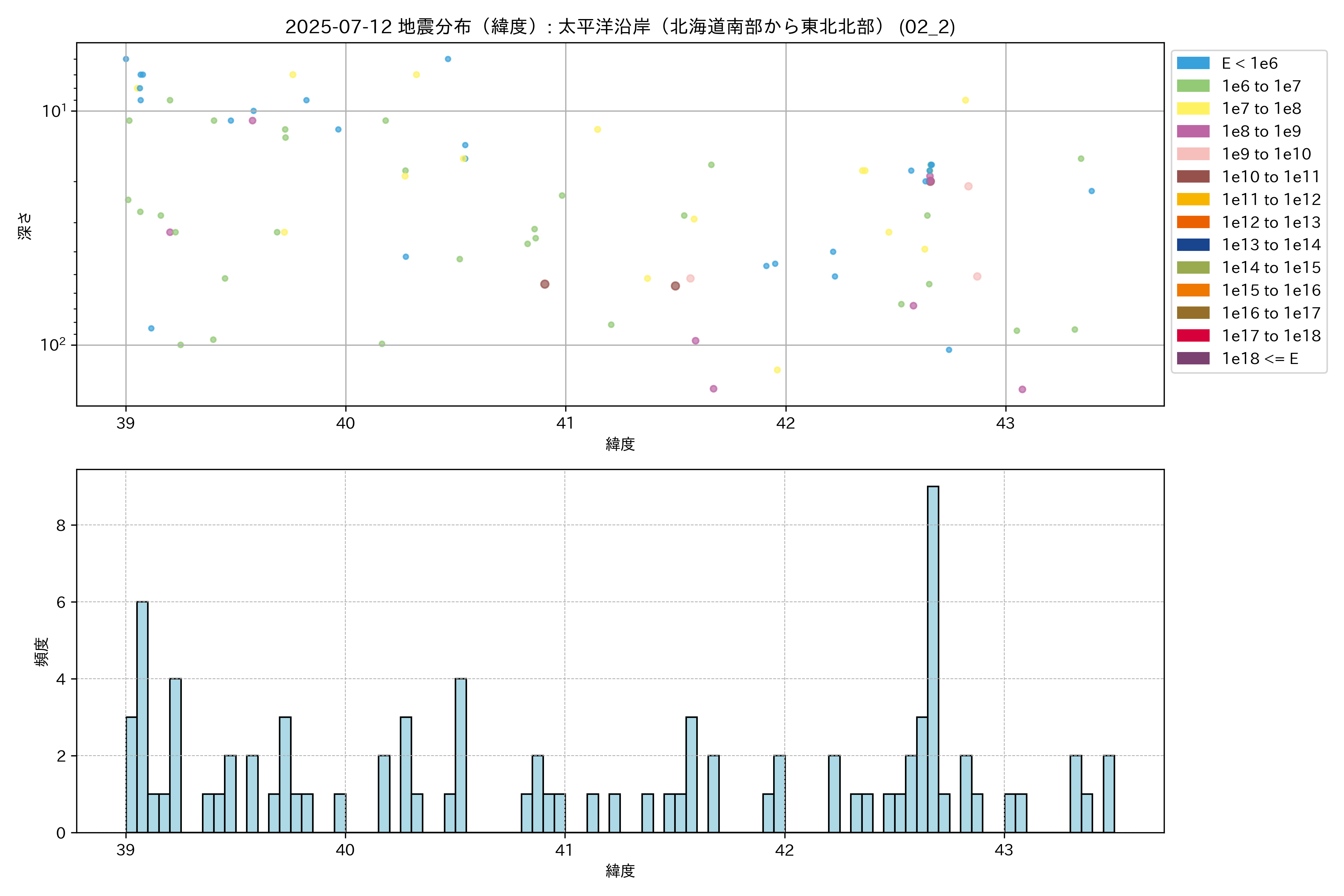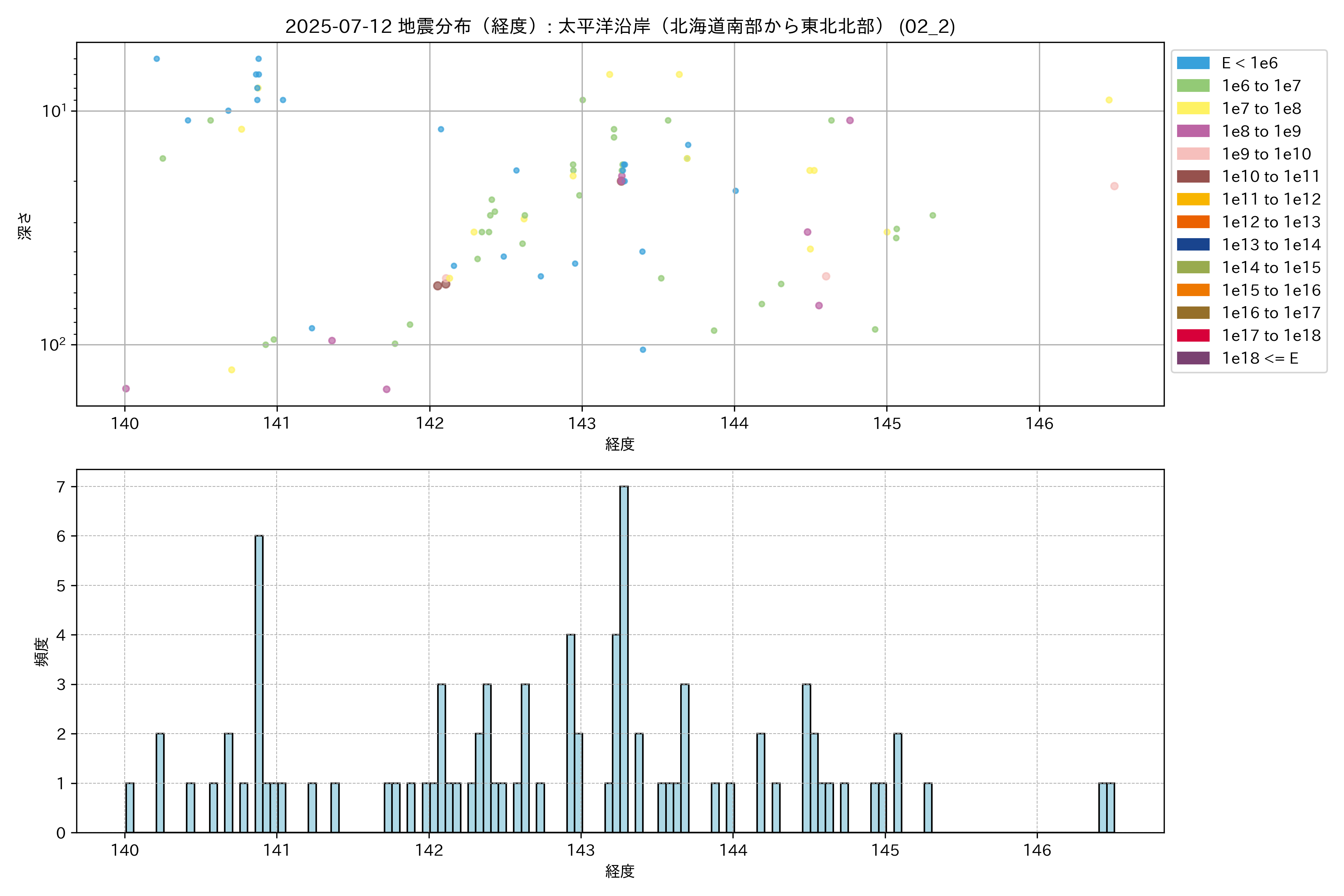 2025年07月12日 太平洋沿岸(北海道南部から東北北部) エリア震源マップ