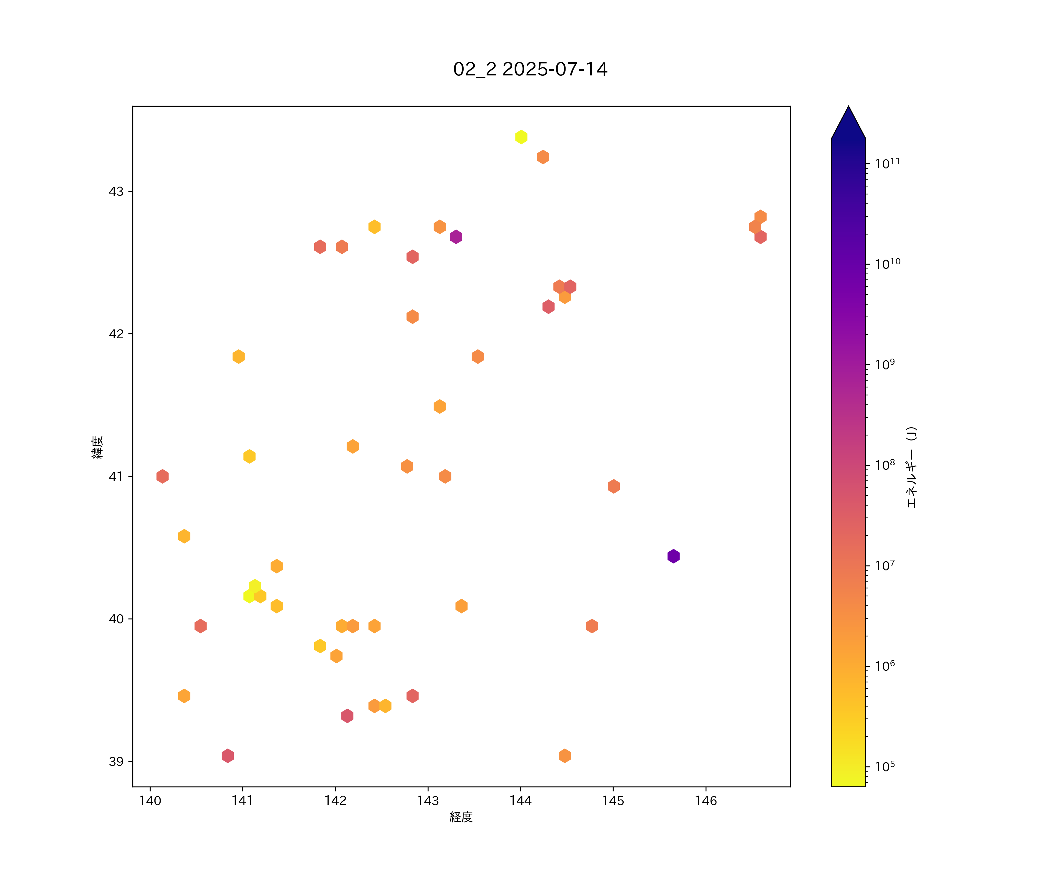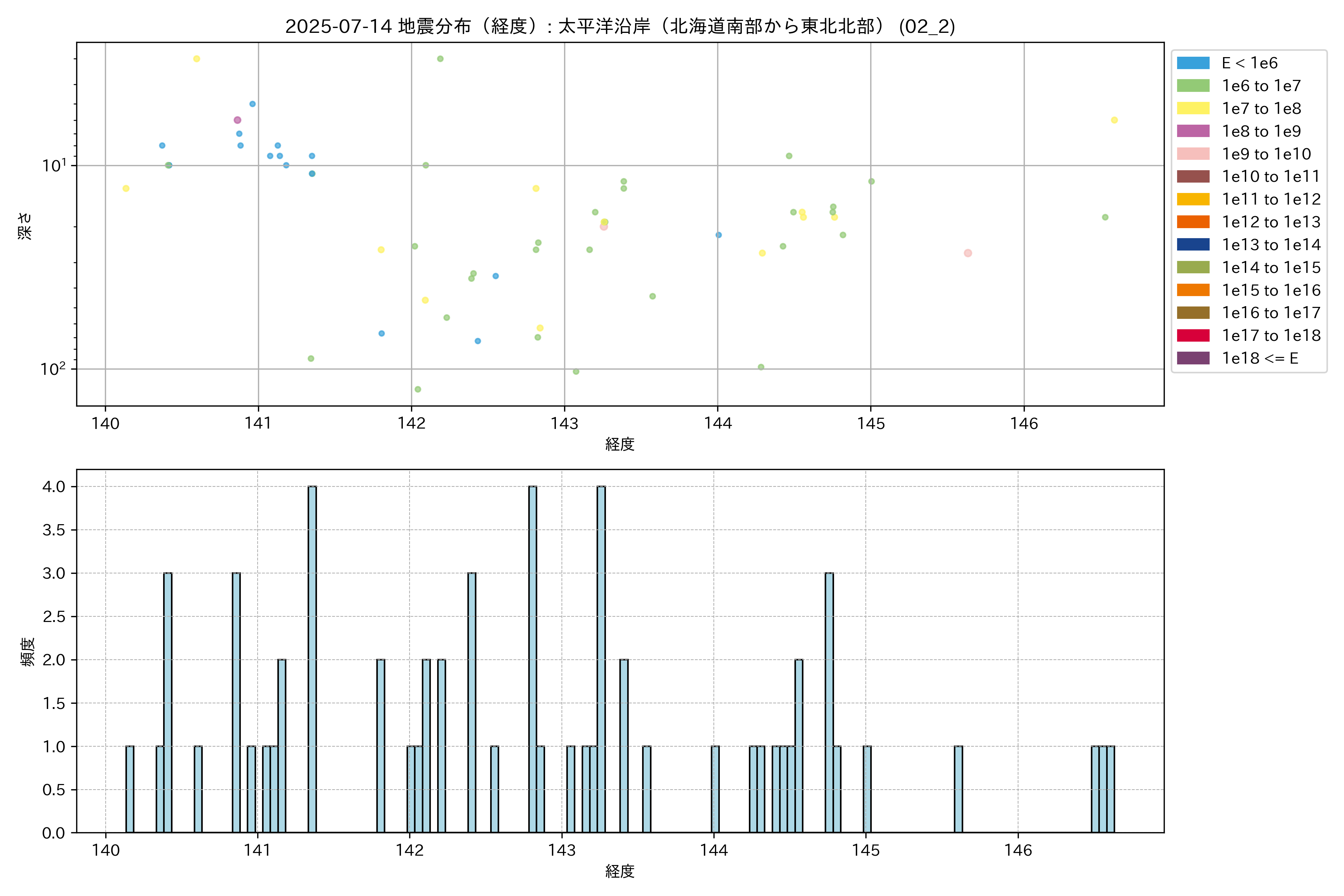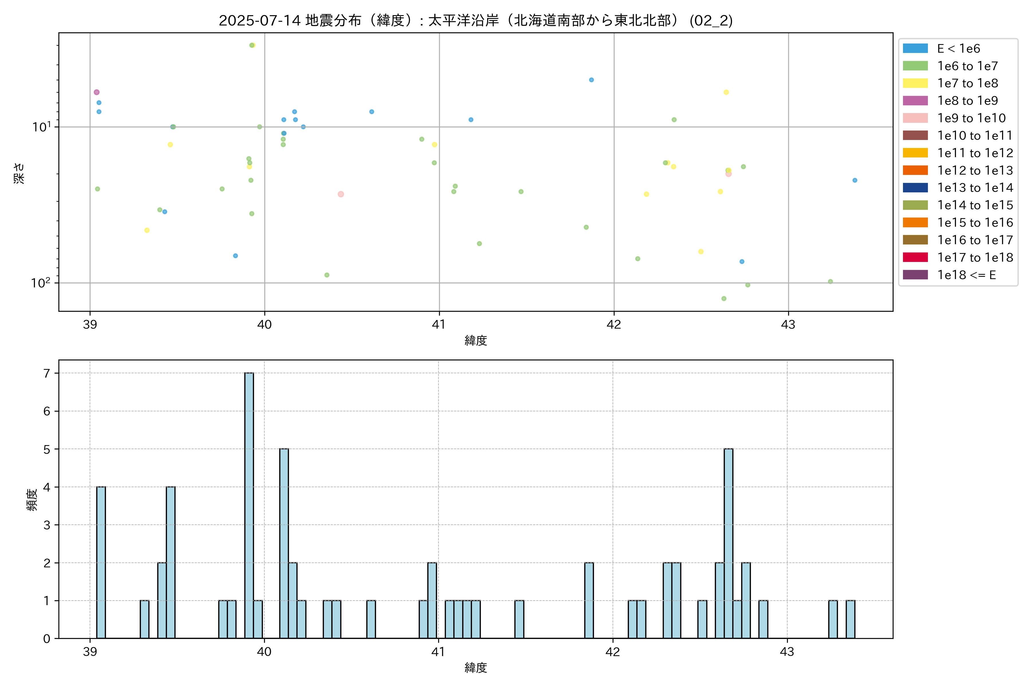 2025年07月14日 太平洋沿岸(北海道南部から東北北部) エリア震源マップ